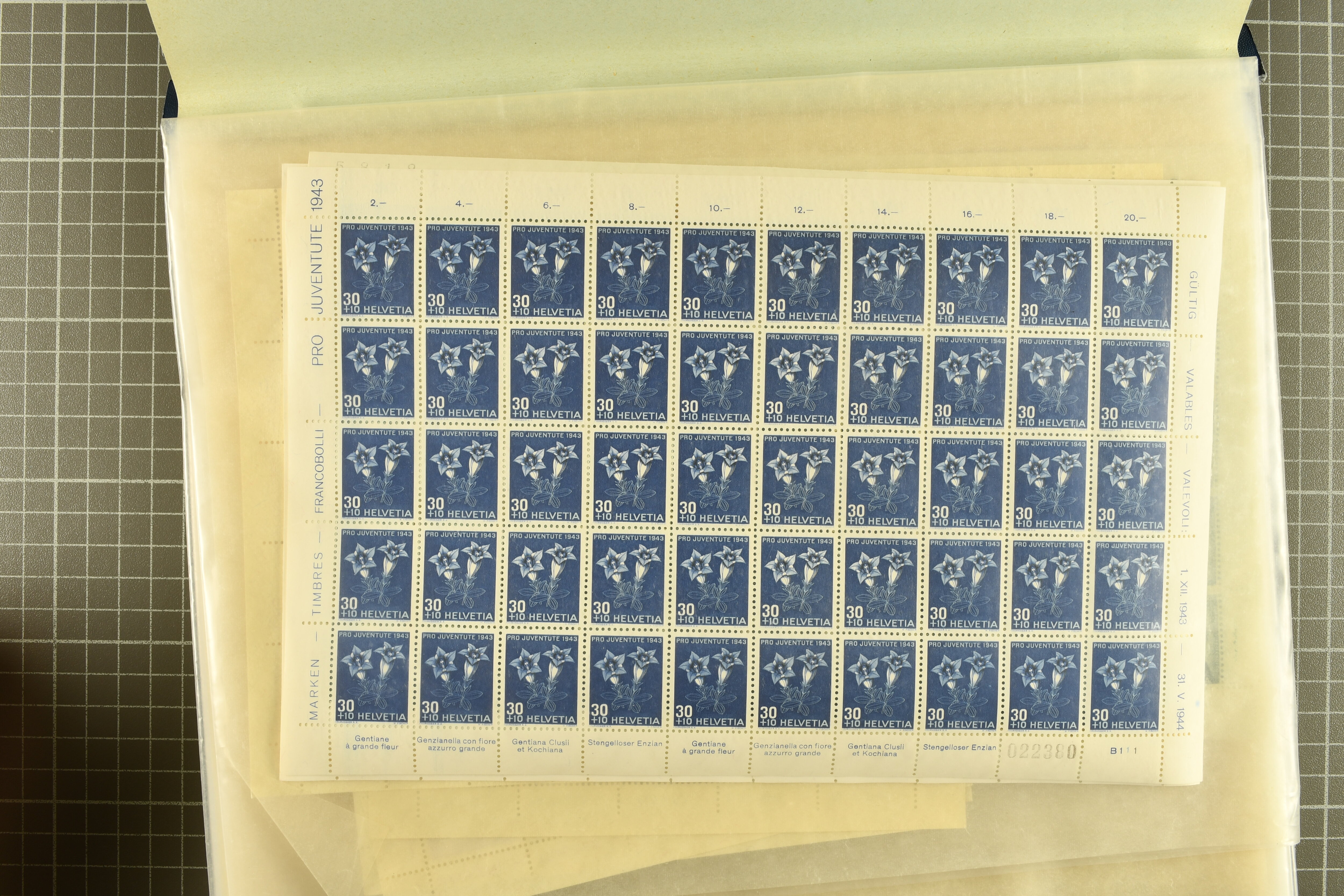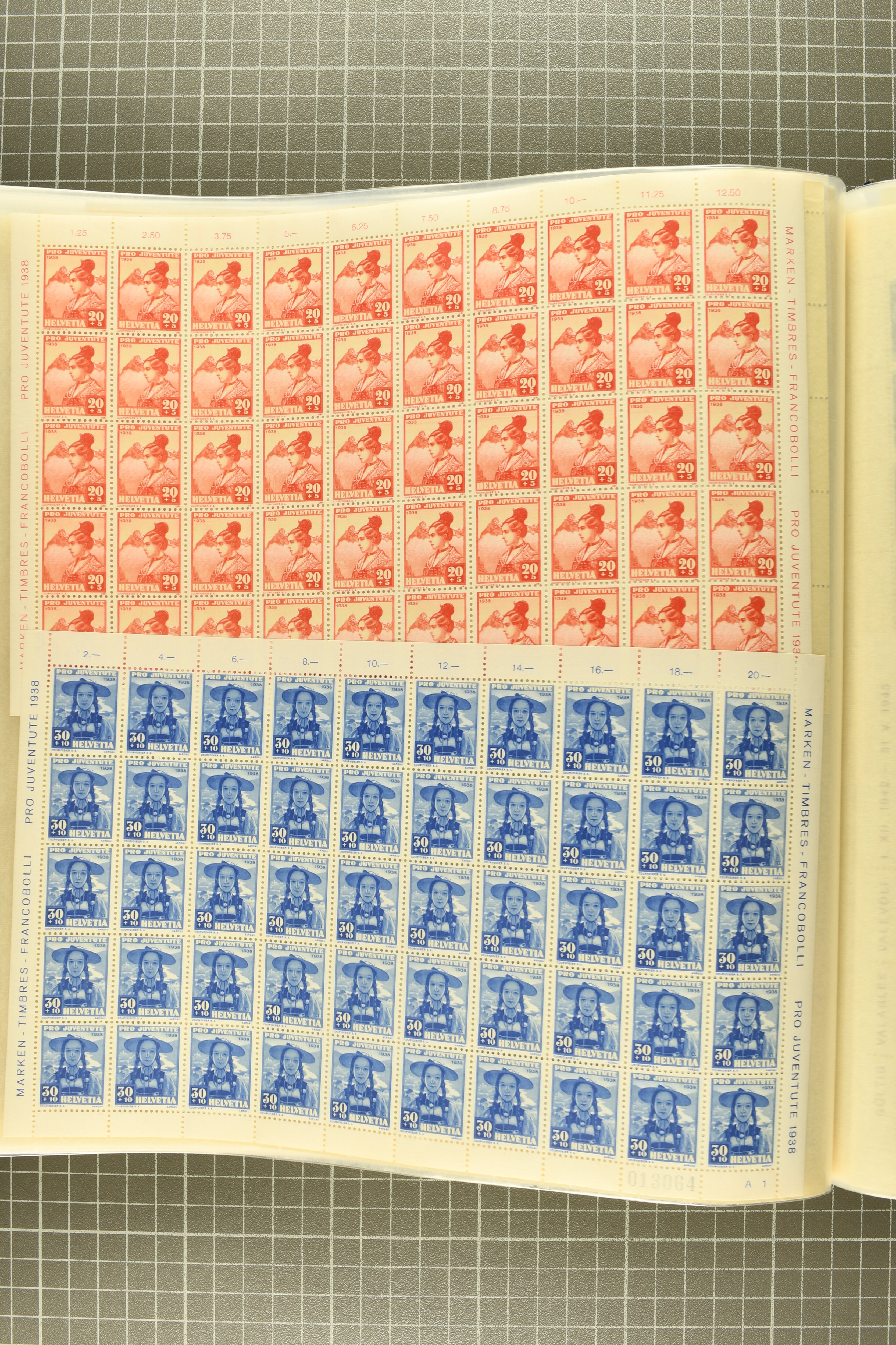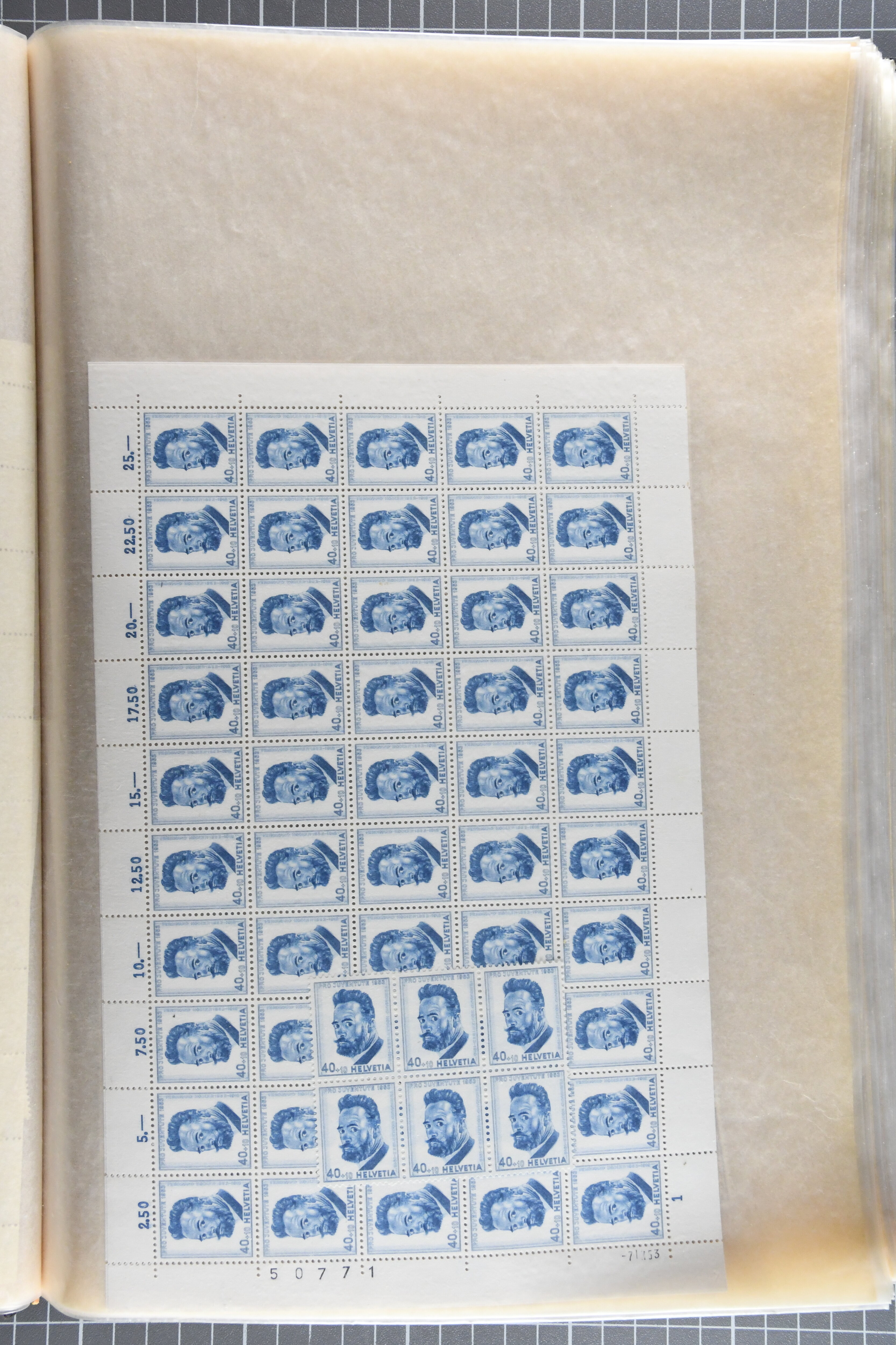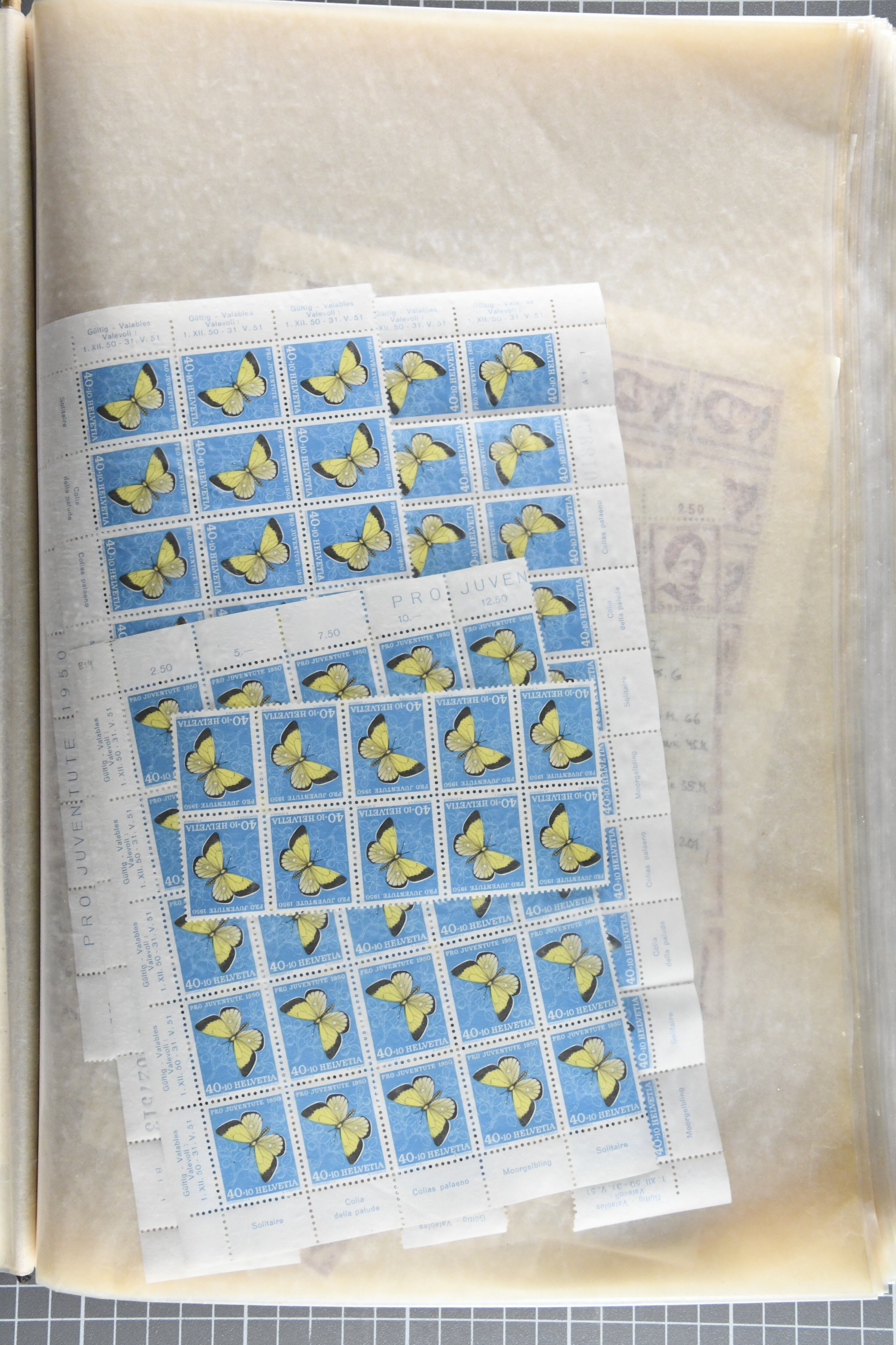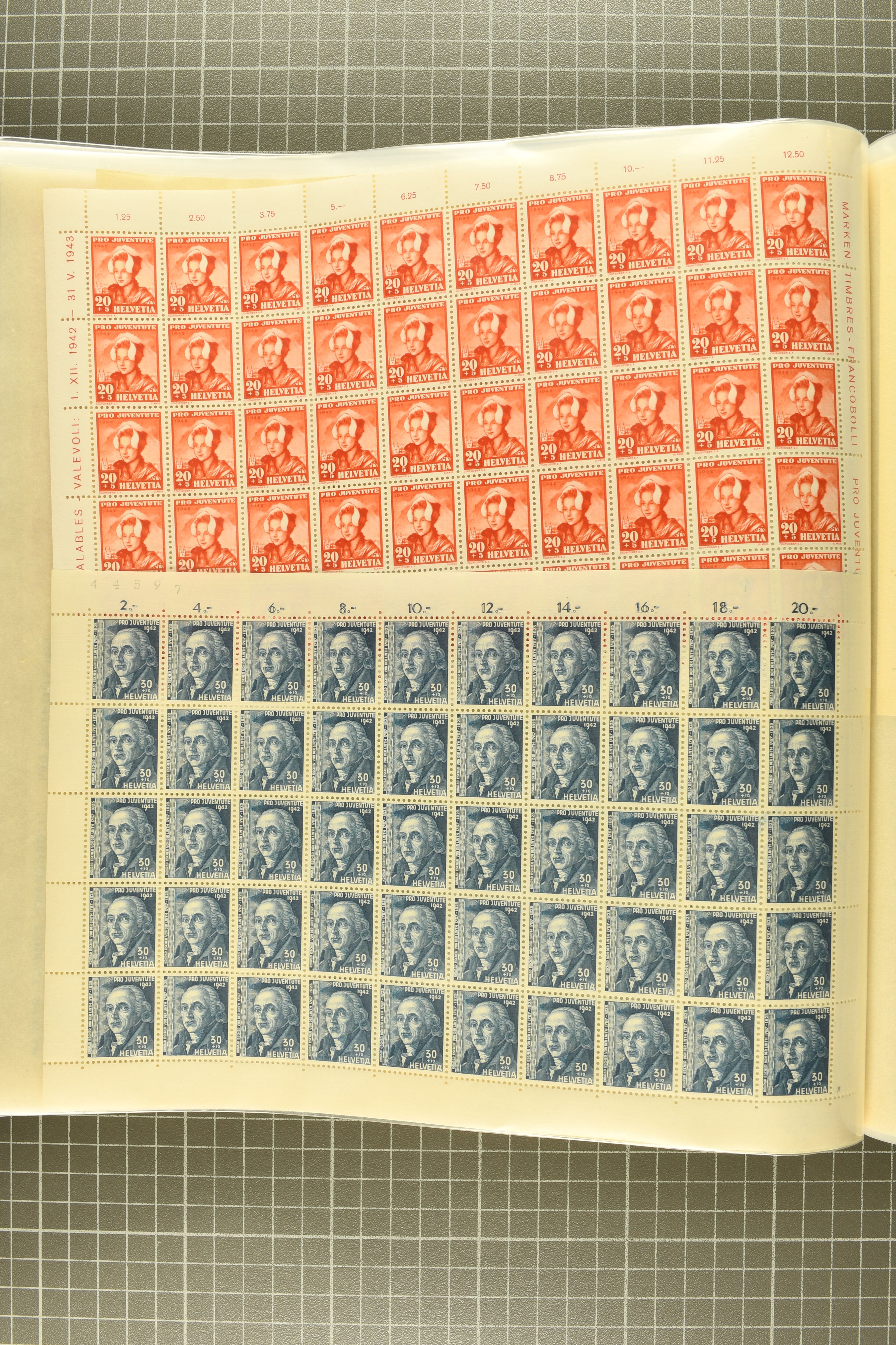1925/67: Umfangreicher Lagerbestand hunderter postfrischer und einiger gestempelter Bogen und Bogenteile. Dabei viele hohe Werte der frühen Jahre in kompletten Fünfziger- oder Hunderterbogen wie z.B. 1925, 30 Rp.