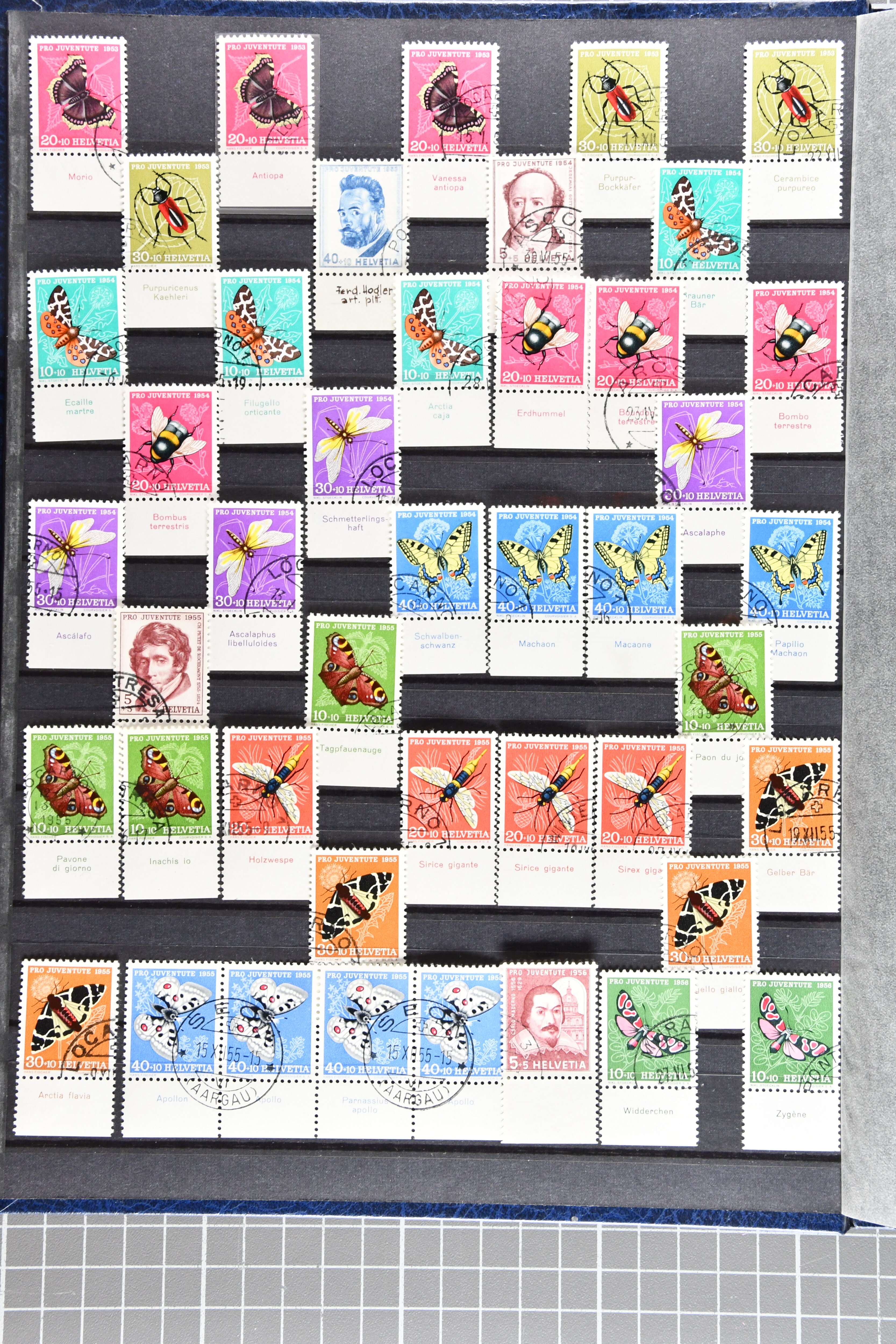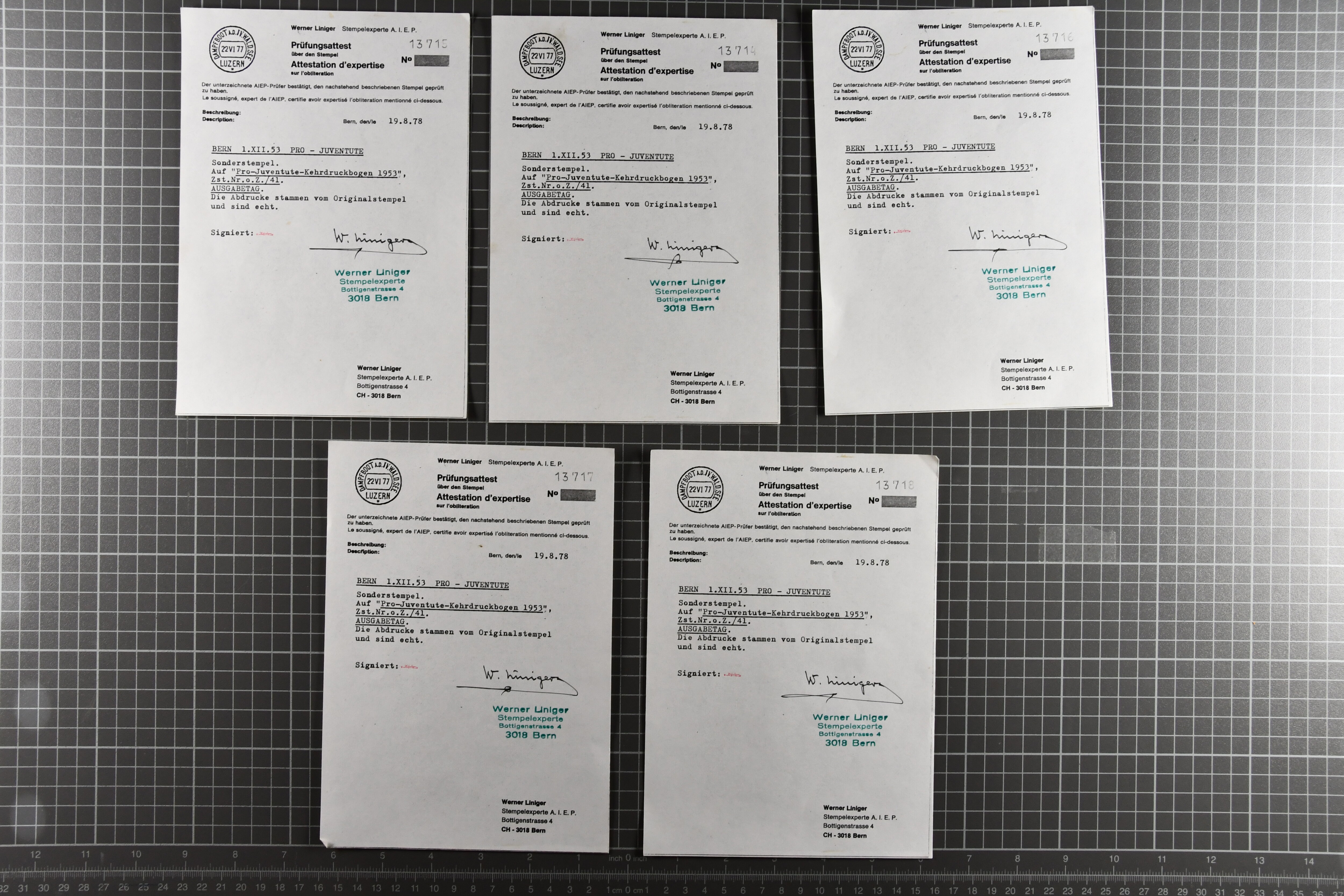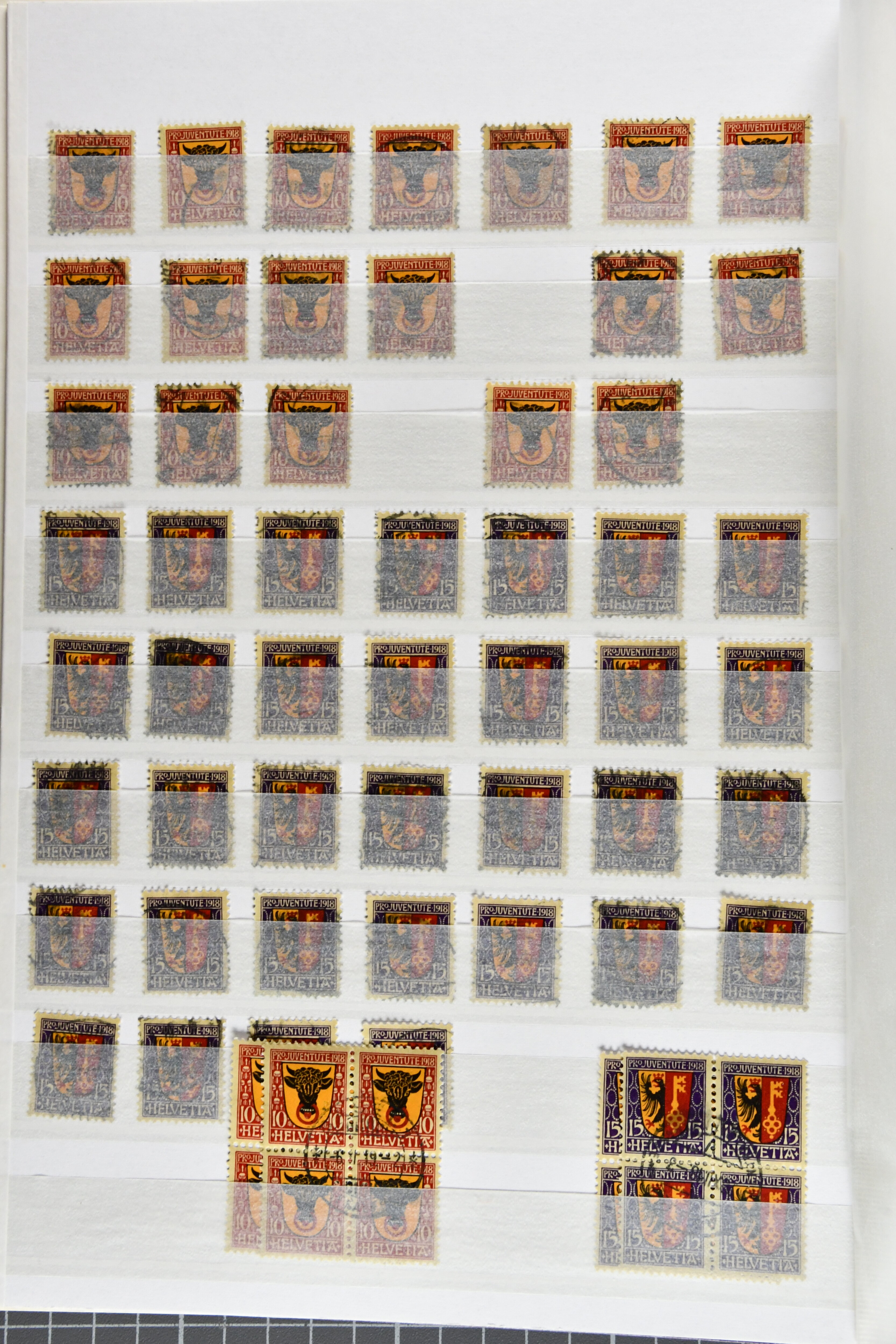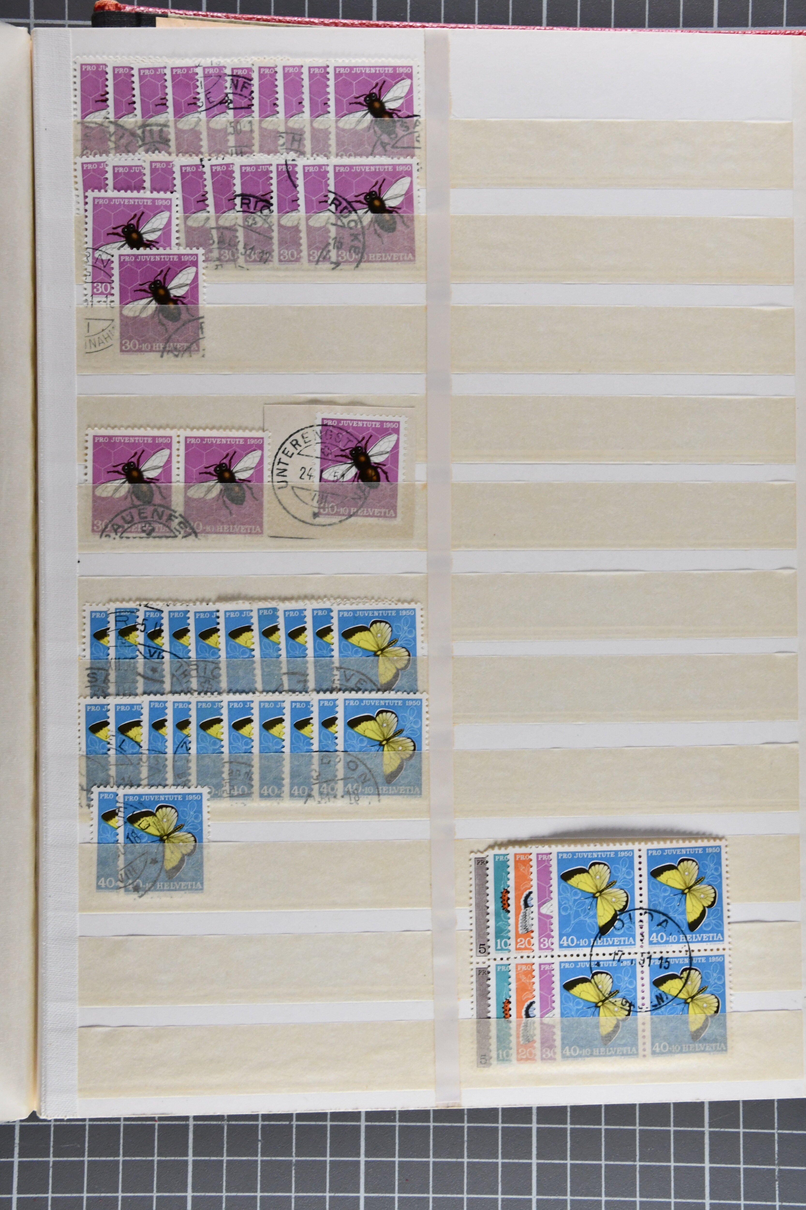 1953: Bestand Pro Juventute Kehrdruckbogen 1953: 12 Stück gestempelt (davon 7x mit offiziellem Ersttagsstempel und Gummi) sowie 25 ungebraucht oder postfrisch. Unter den ungebrauchten befindet sich ein Exemplar