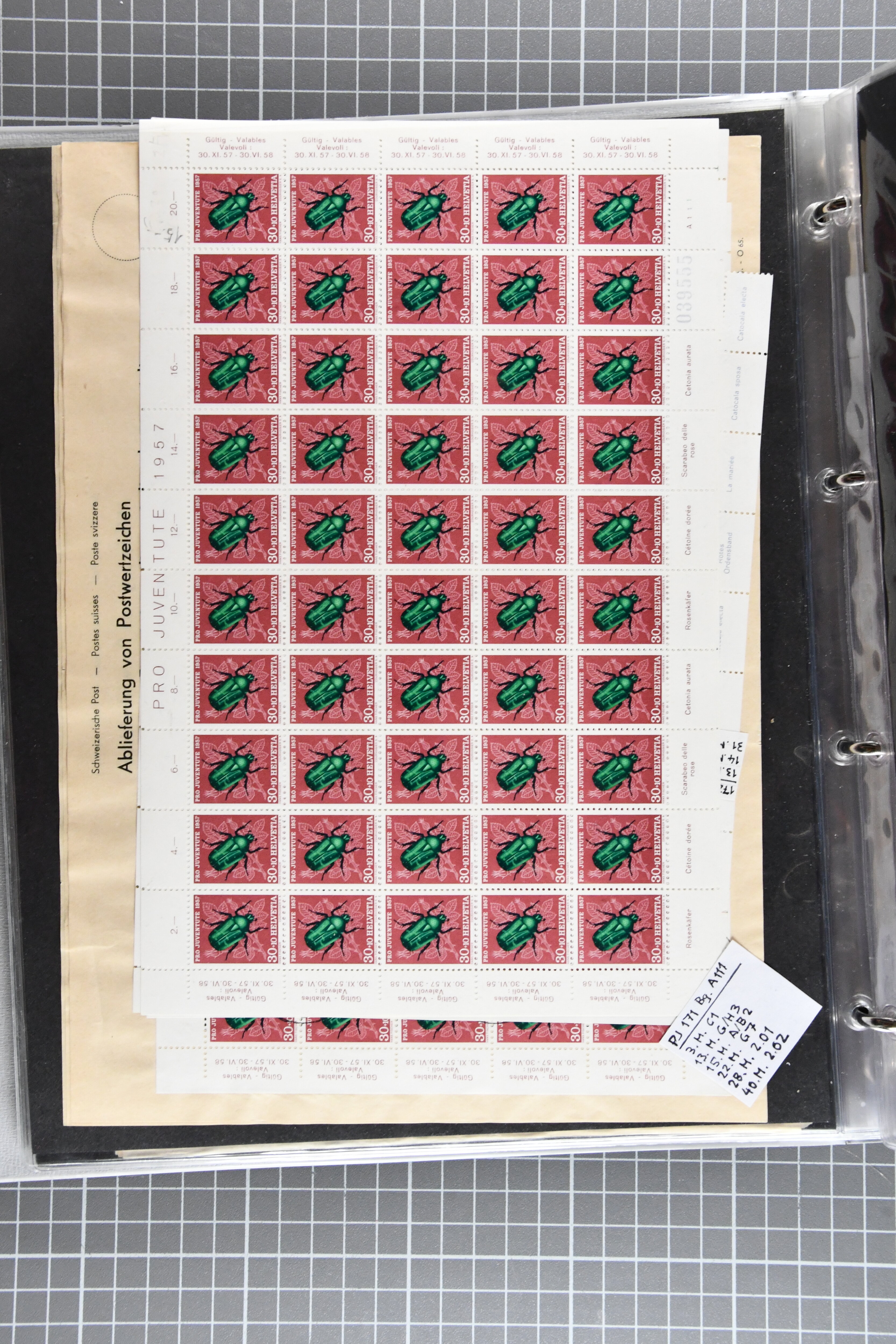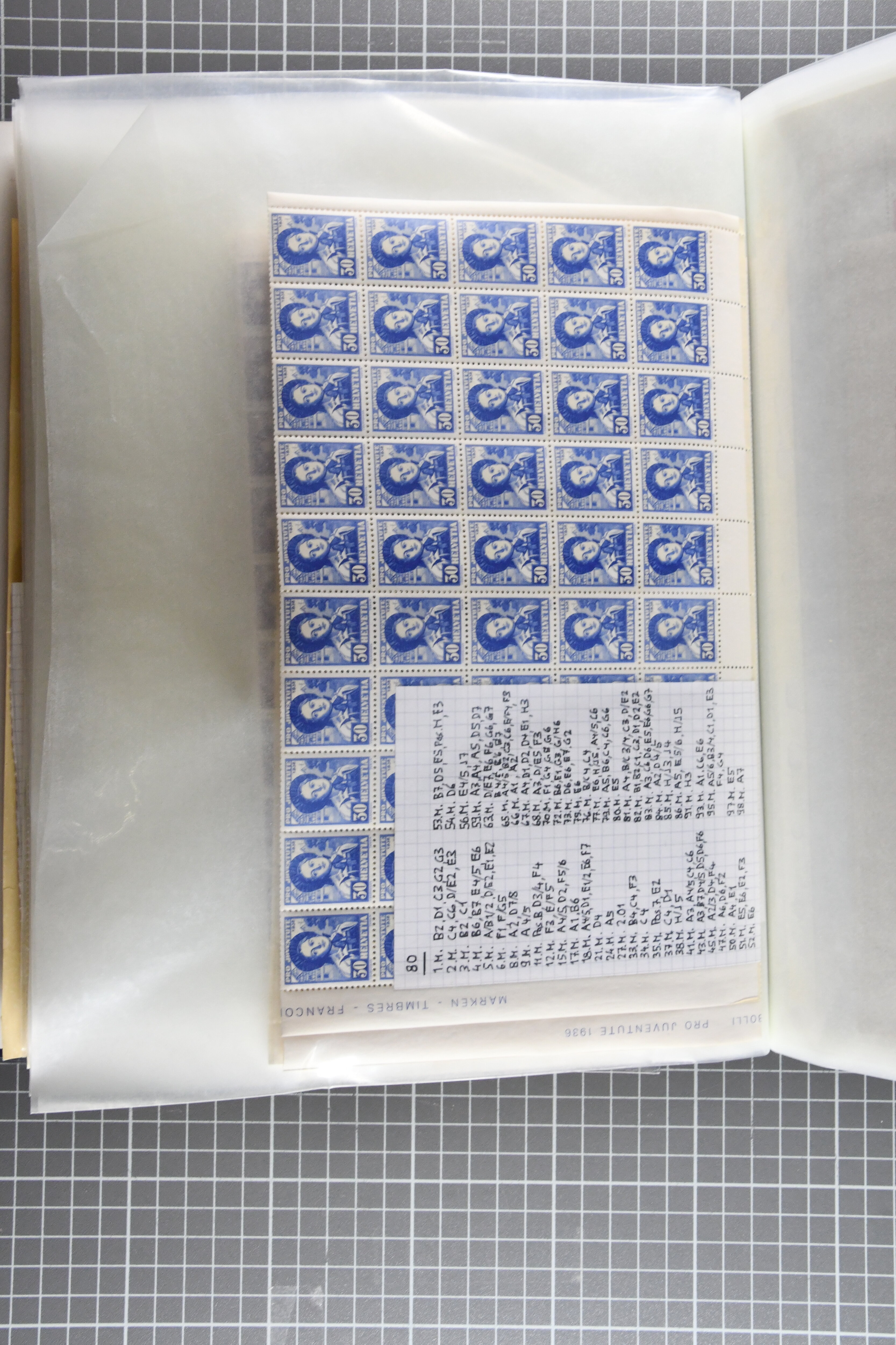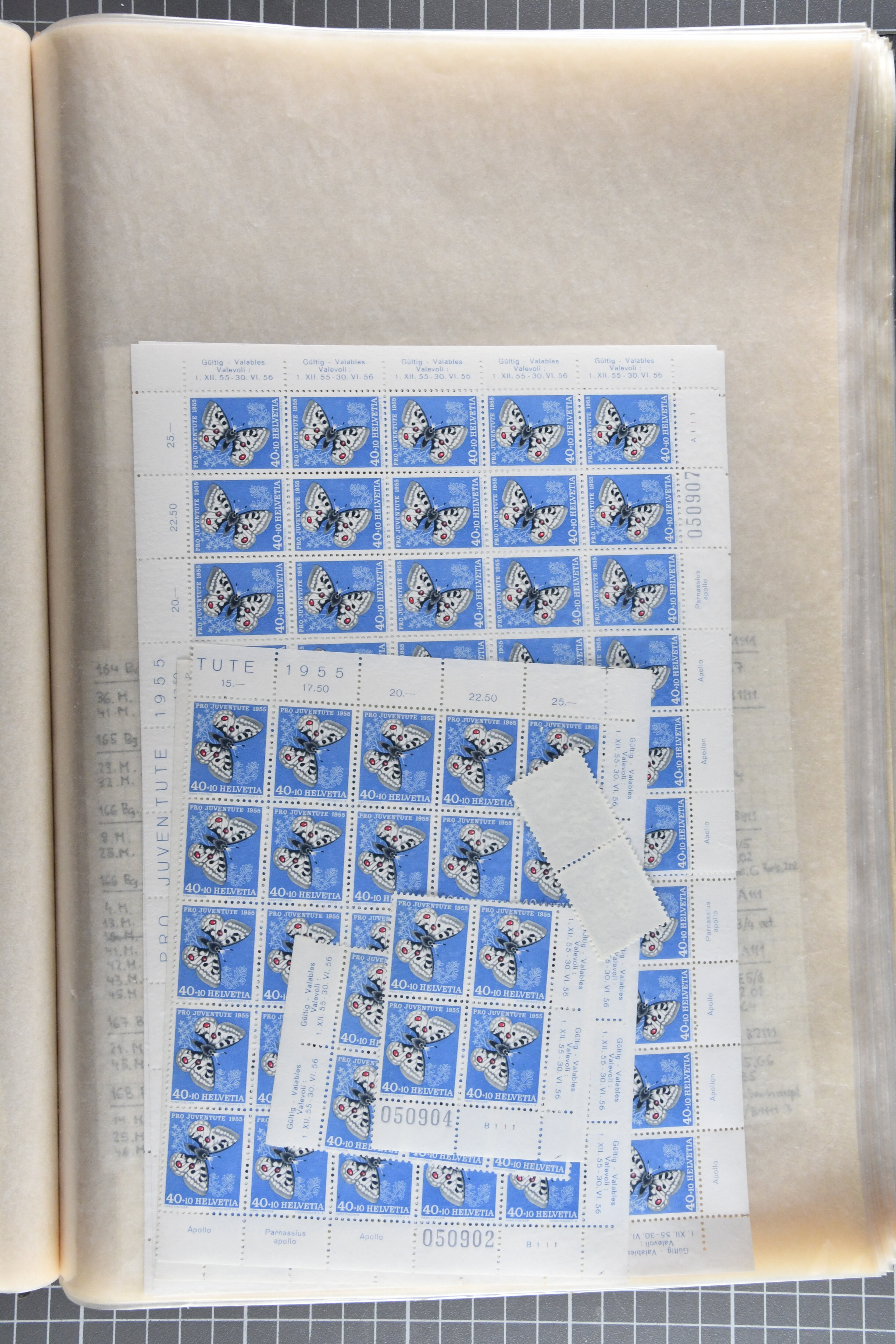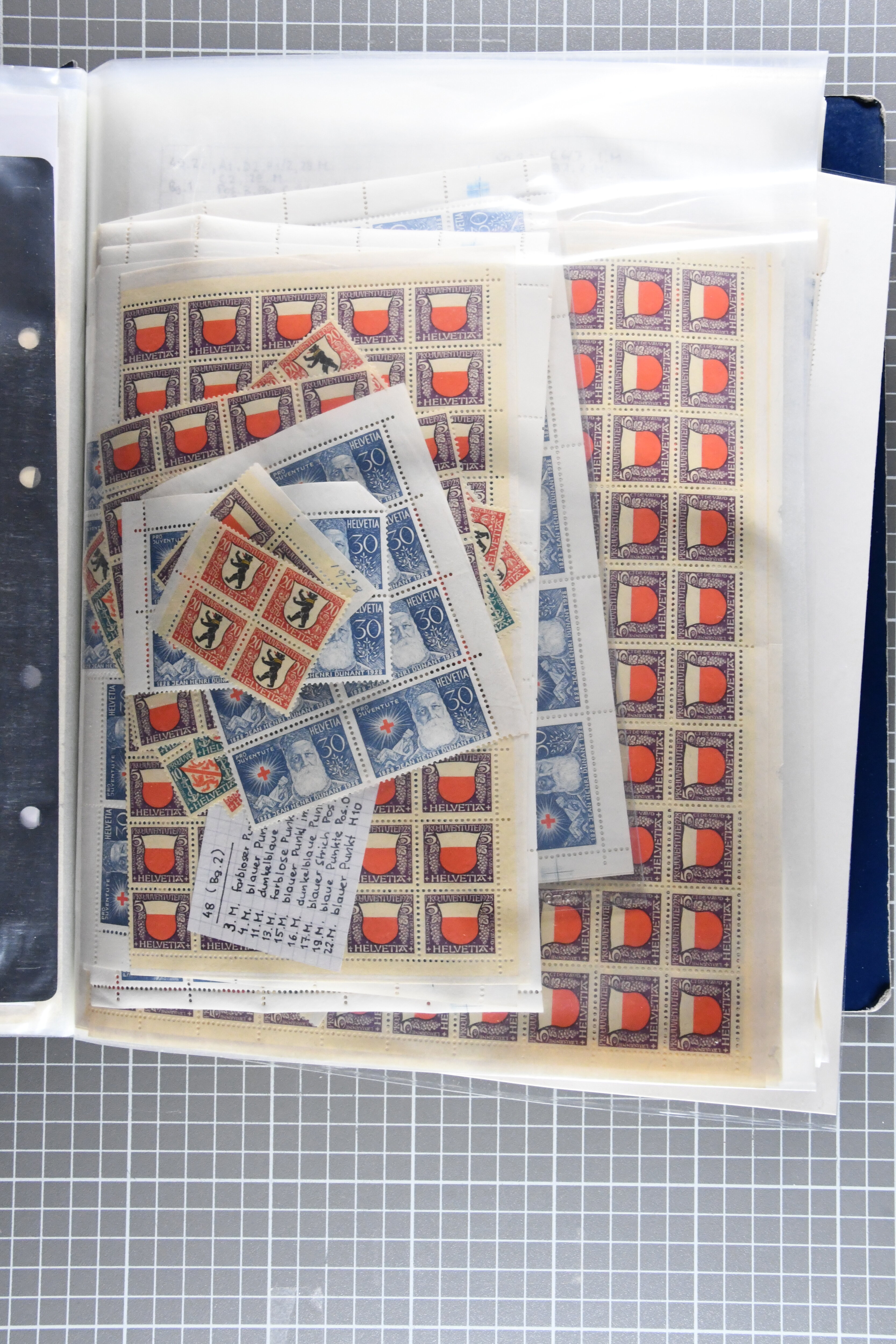 Schachteln mit in Tüten sortierten Abarten – insgesamt eine grosse Stückzahl. Ergänzt durch eine umfangreiche Dokumentation in fünf Ordnern.
