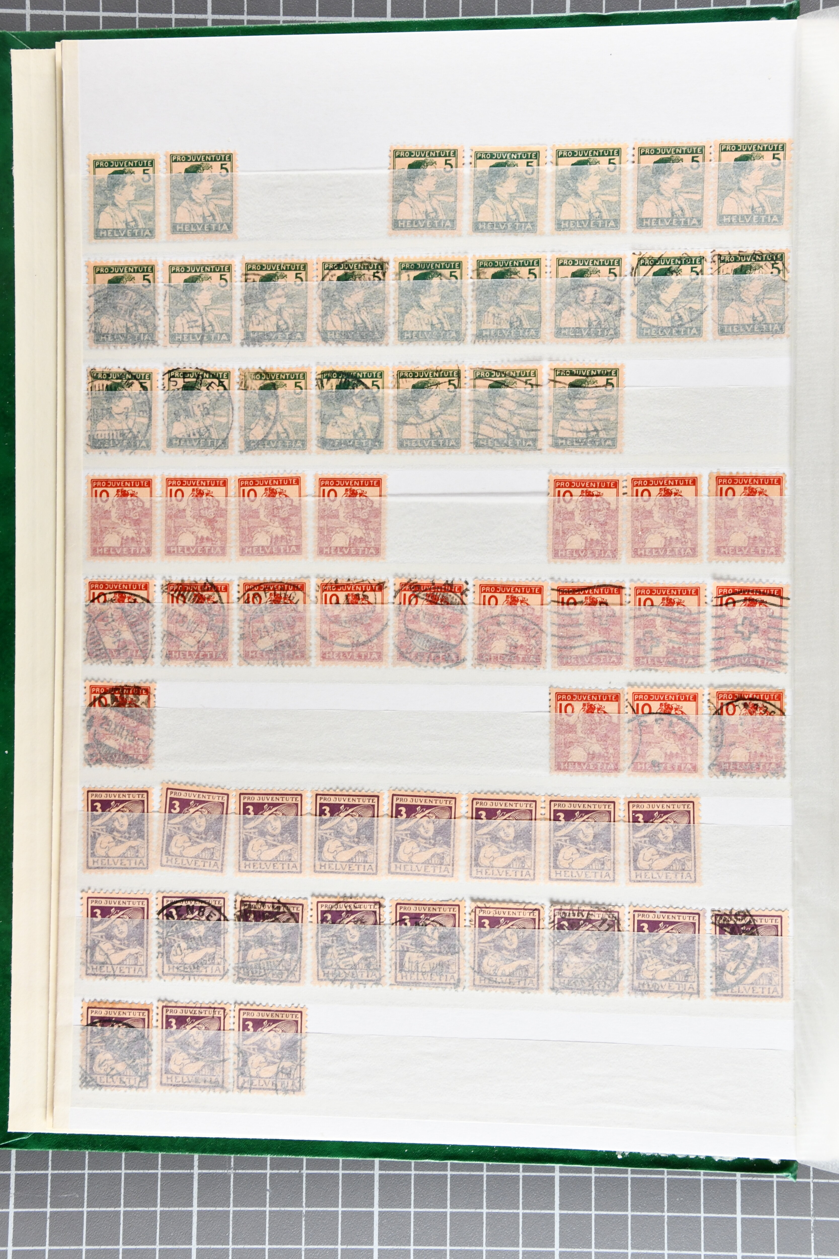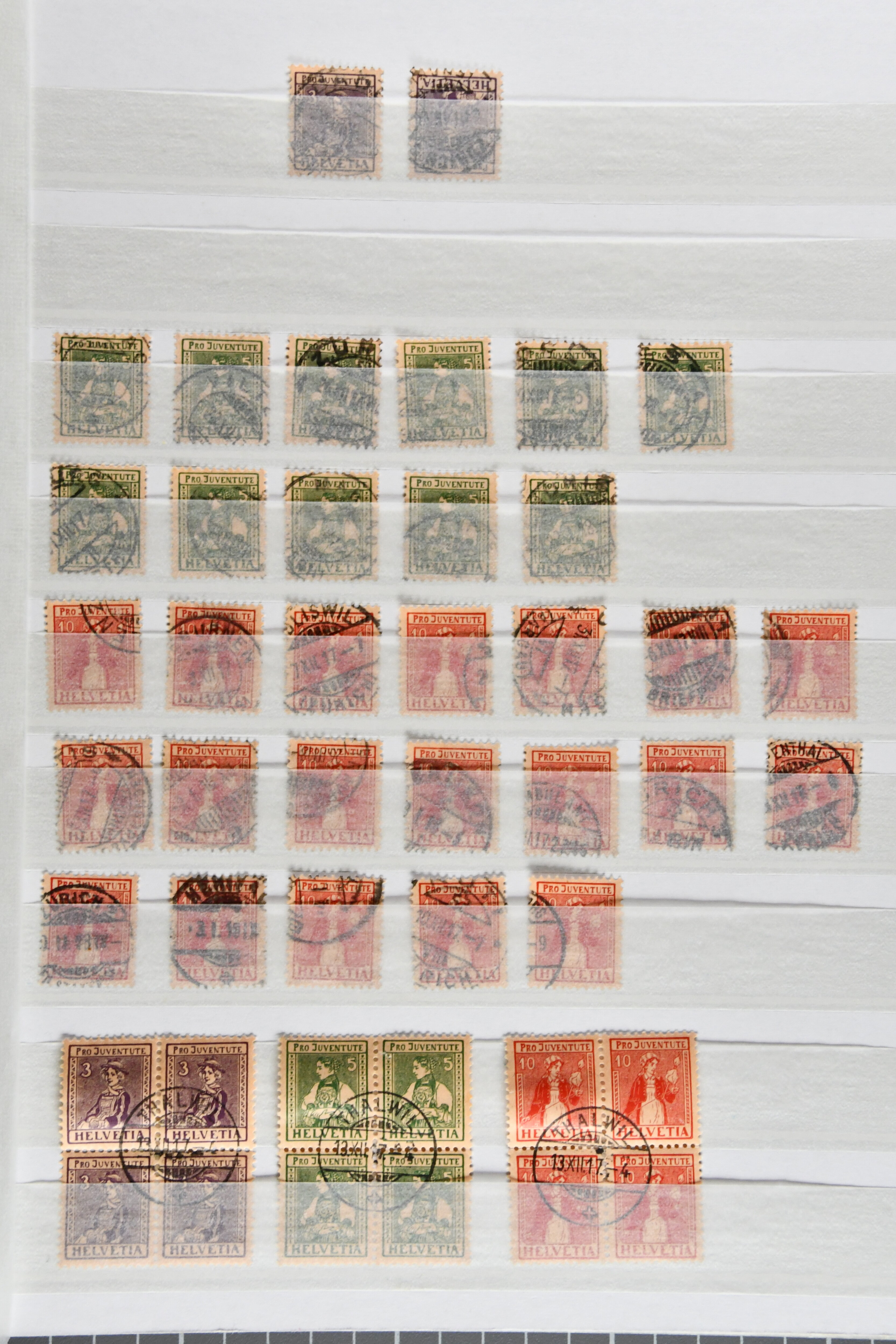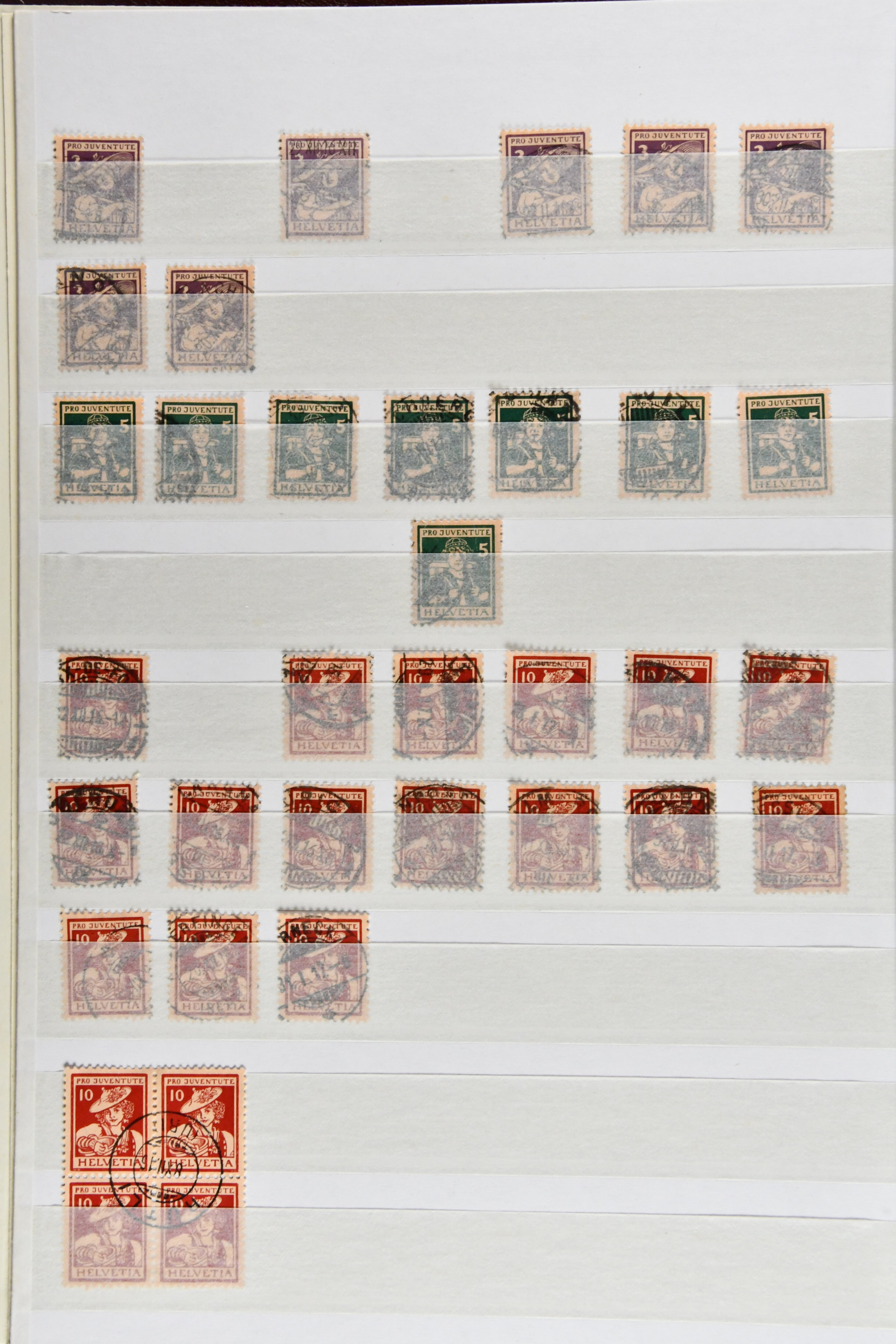 1912/80ca.: Vier Einsteckbücher, gefüllt mit gestempelten Pro Juventute-Marken, oft in beträchtlichen Mengen, teils nur die höheren Werte. In einem Album neben den Einzelwerten zahlreiche zentrisch gestempelte