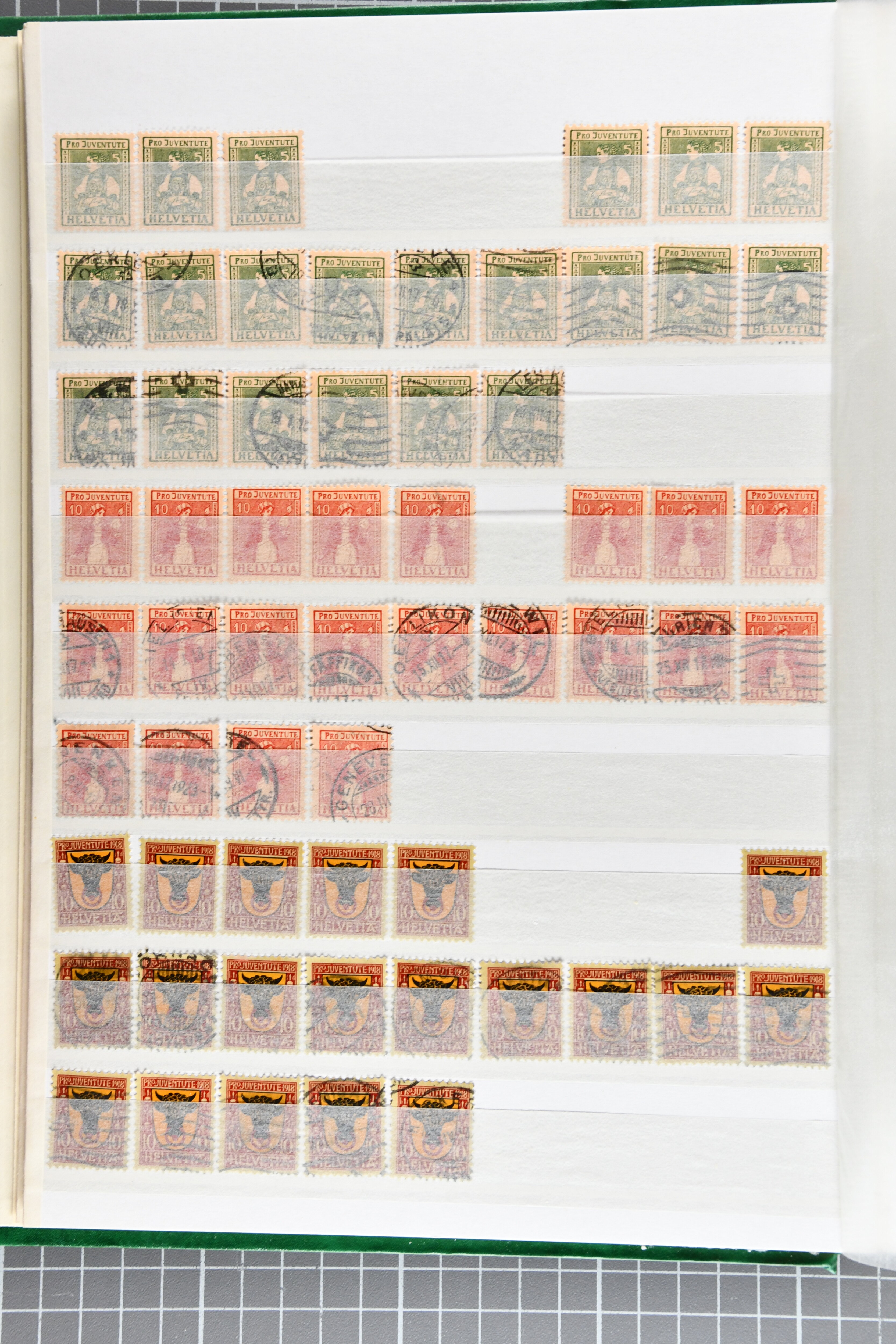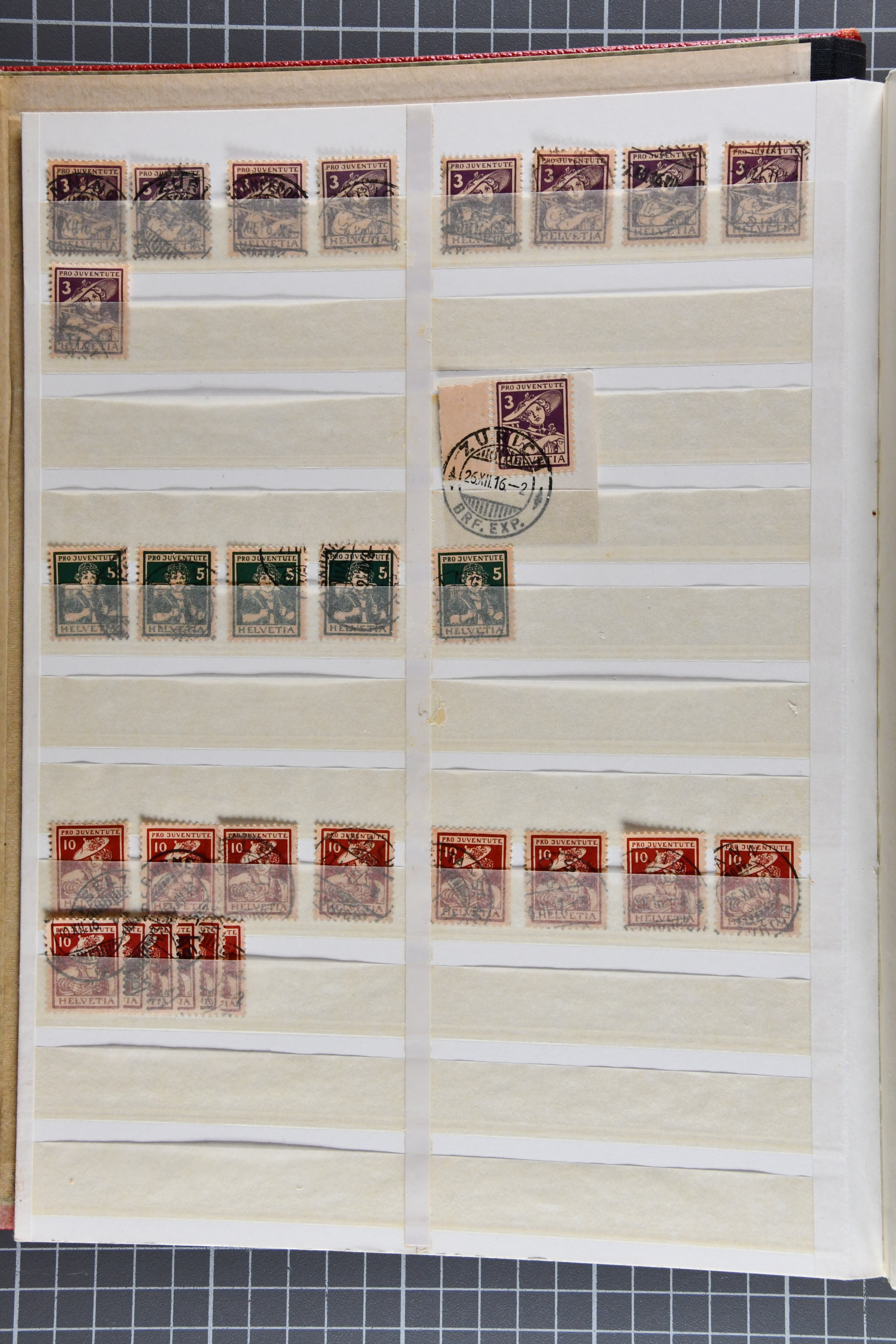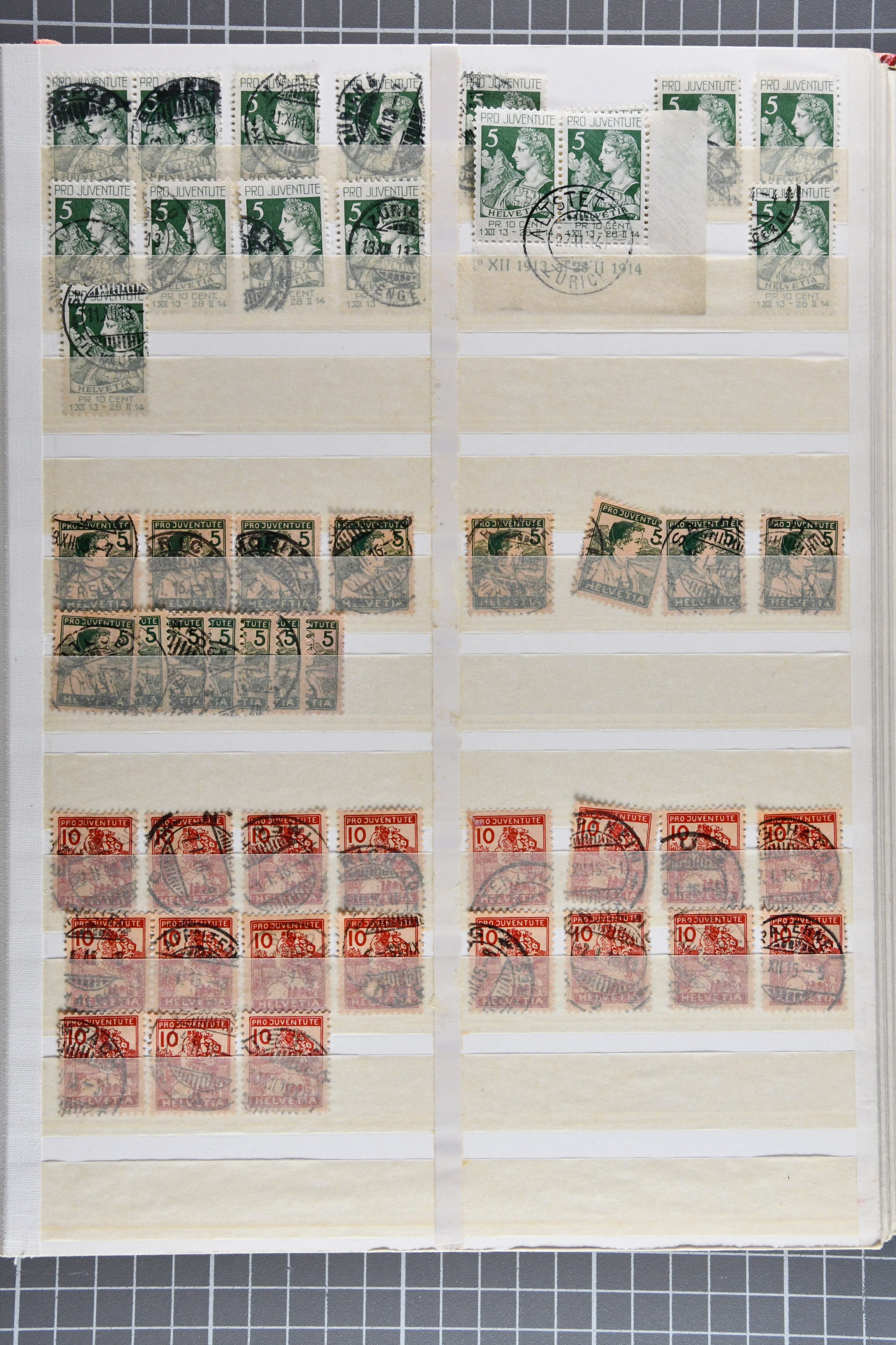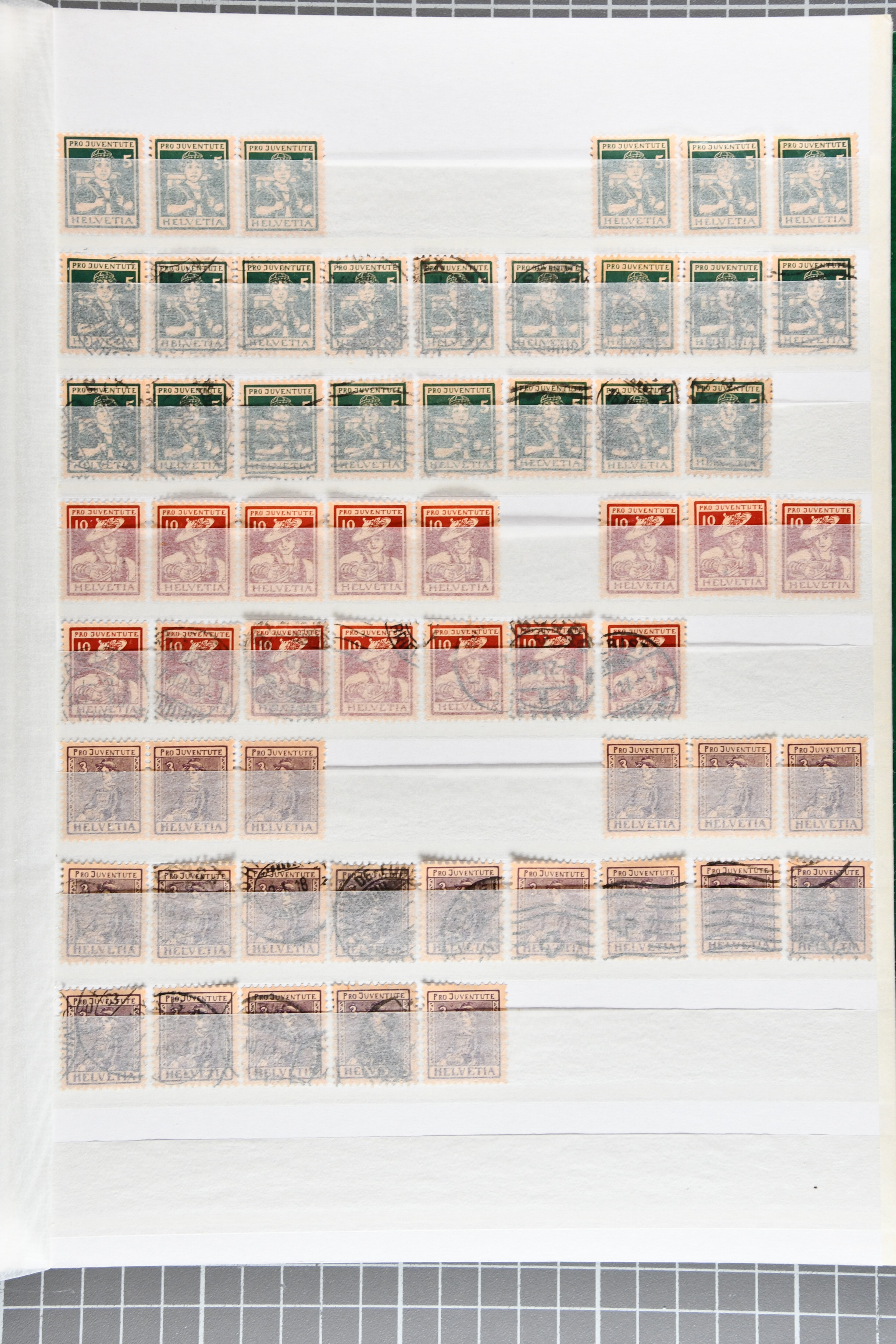 1912/80ca.: Vier Einsteckbücher, gefüllt mit gestempelten Pro Juventute-Marken, oft in beträchtlichen Mengen, teils nur die höheren Werte. In einem Album neben den Einzelwerten zahlreiche zentrisch gestempelte