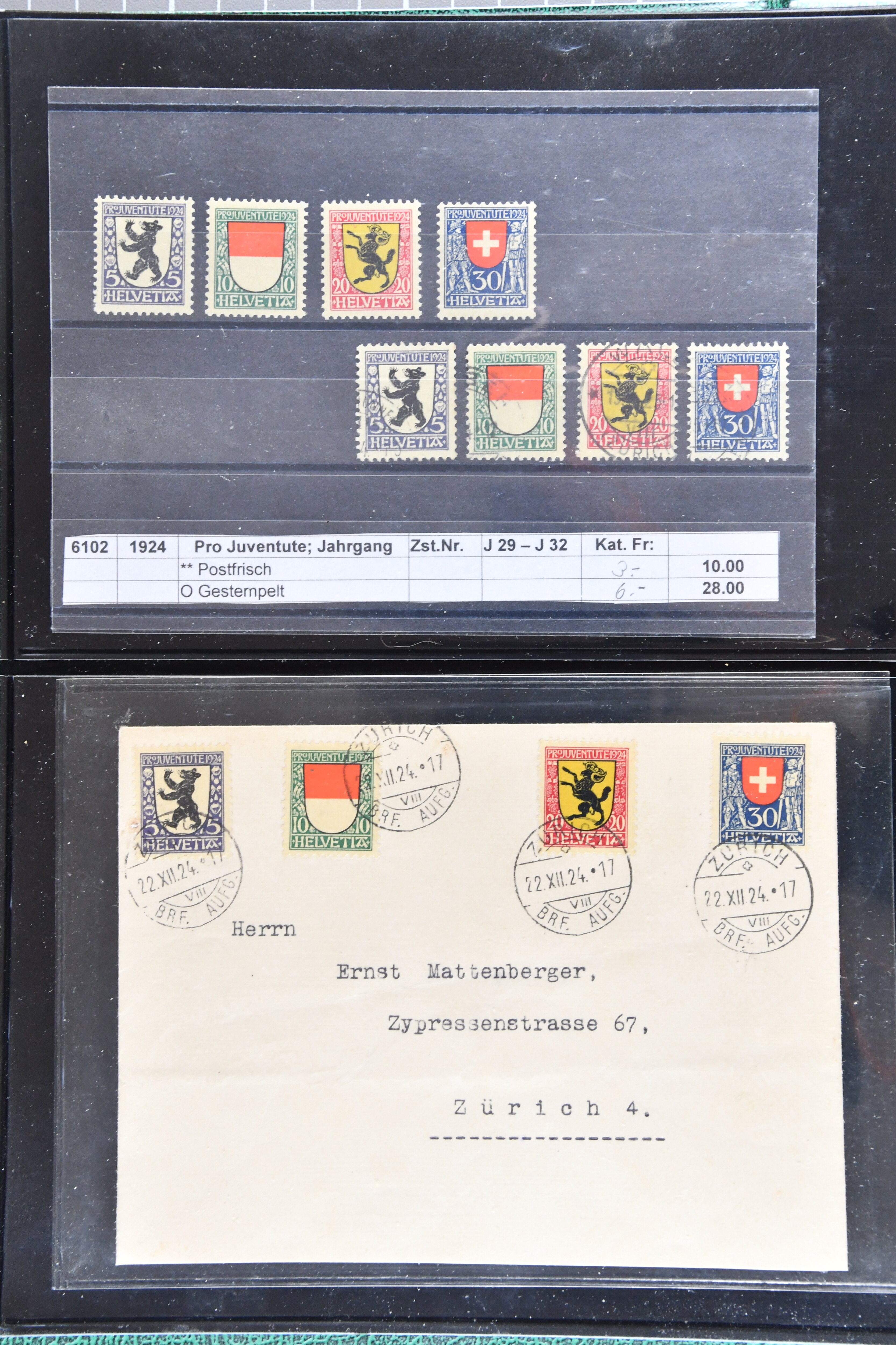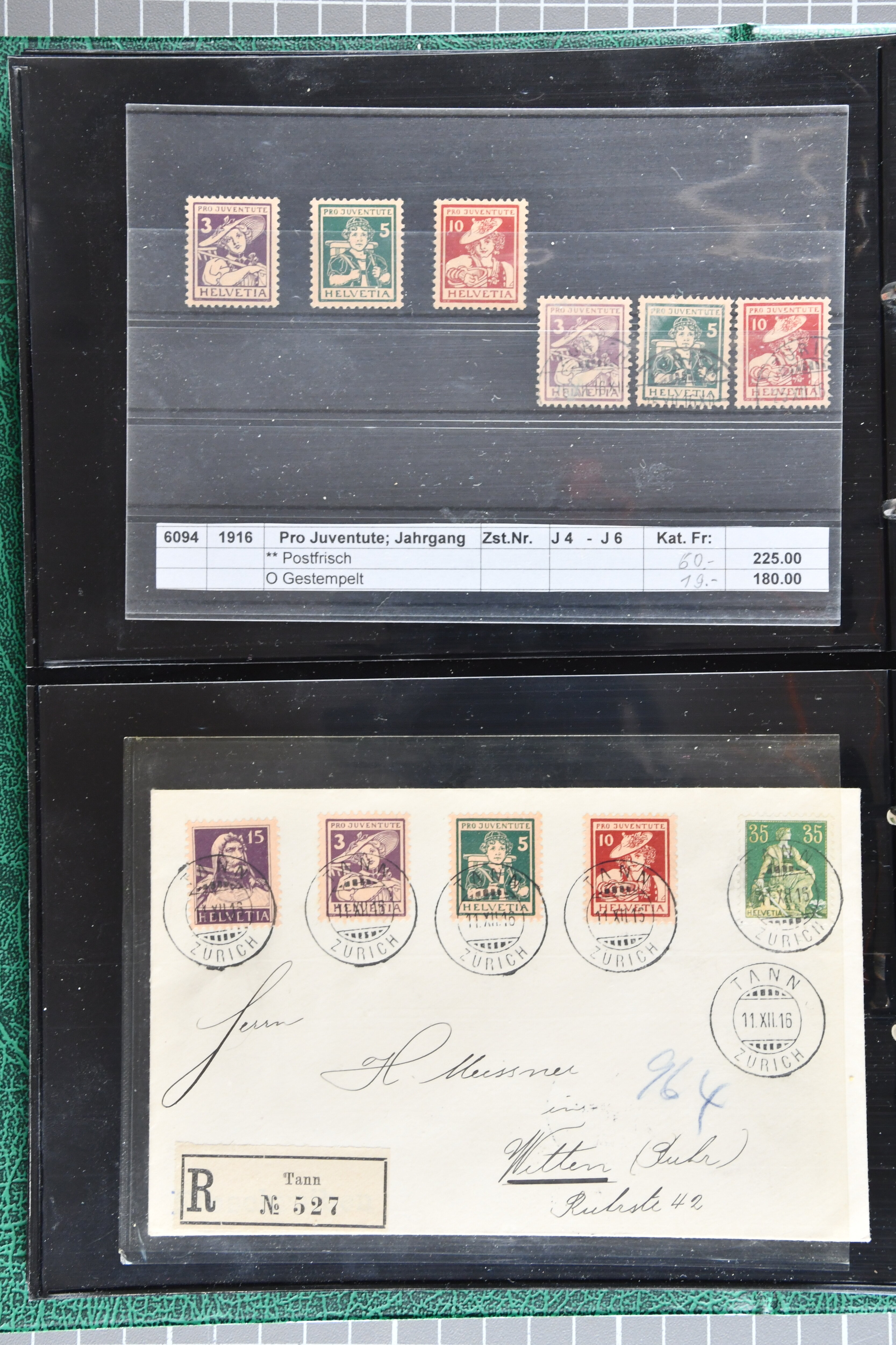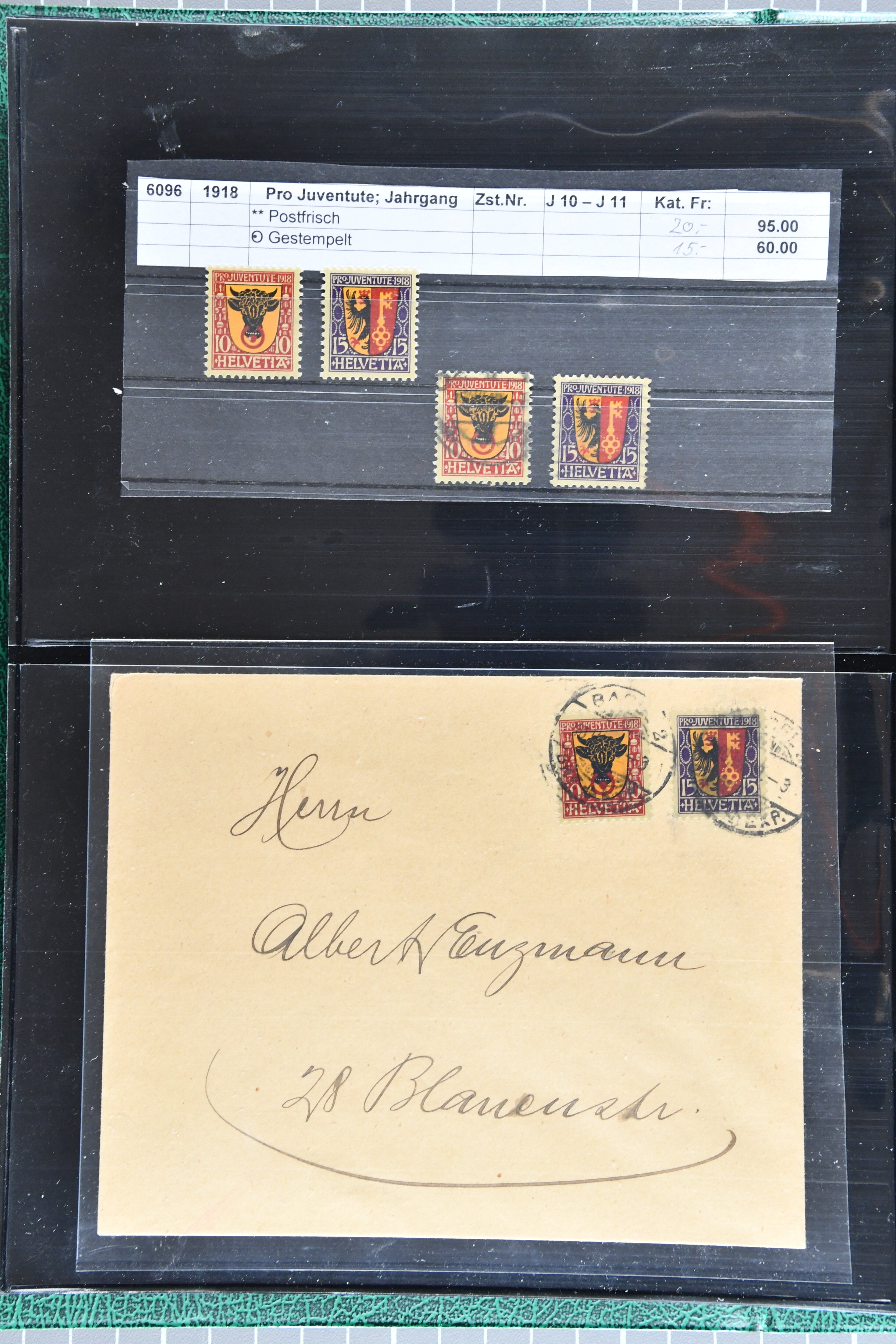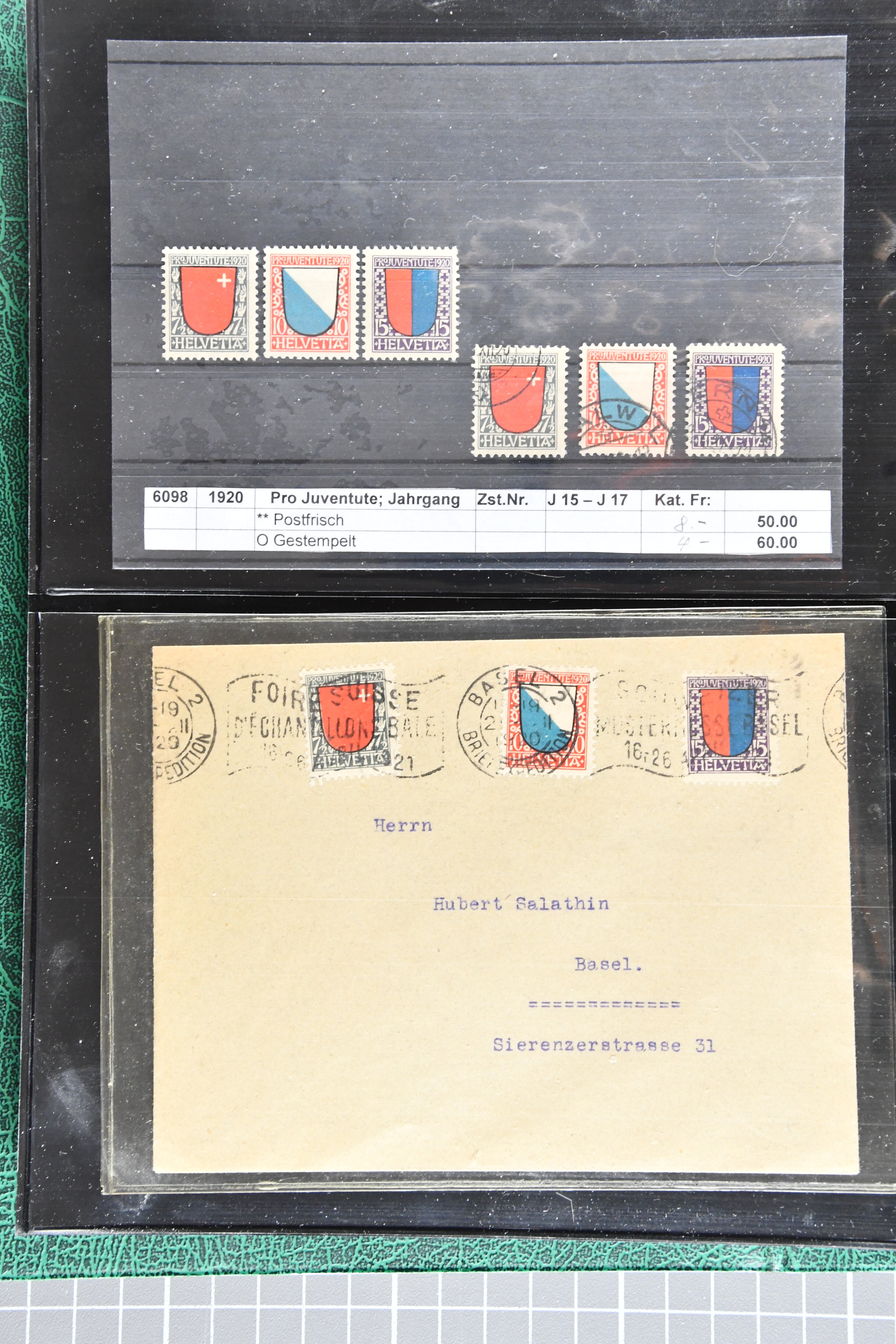 sowie gest. im waagr. Paar mit Normalmarke. Die Jahrgänge ab 1964 dann oft mit sauberen Vollstempeln resp. für die postfrischen Marken einem Frankaturwert von knapp CHF 100.00. Ein gepflegtes Objekt in sehr guter Erhaltung; sechs Befunde, fünf