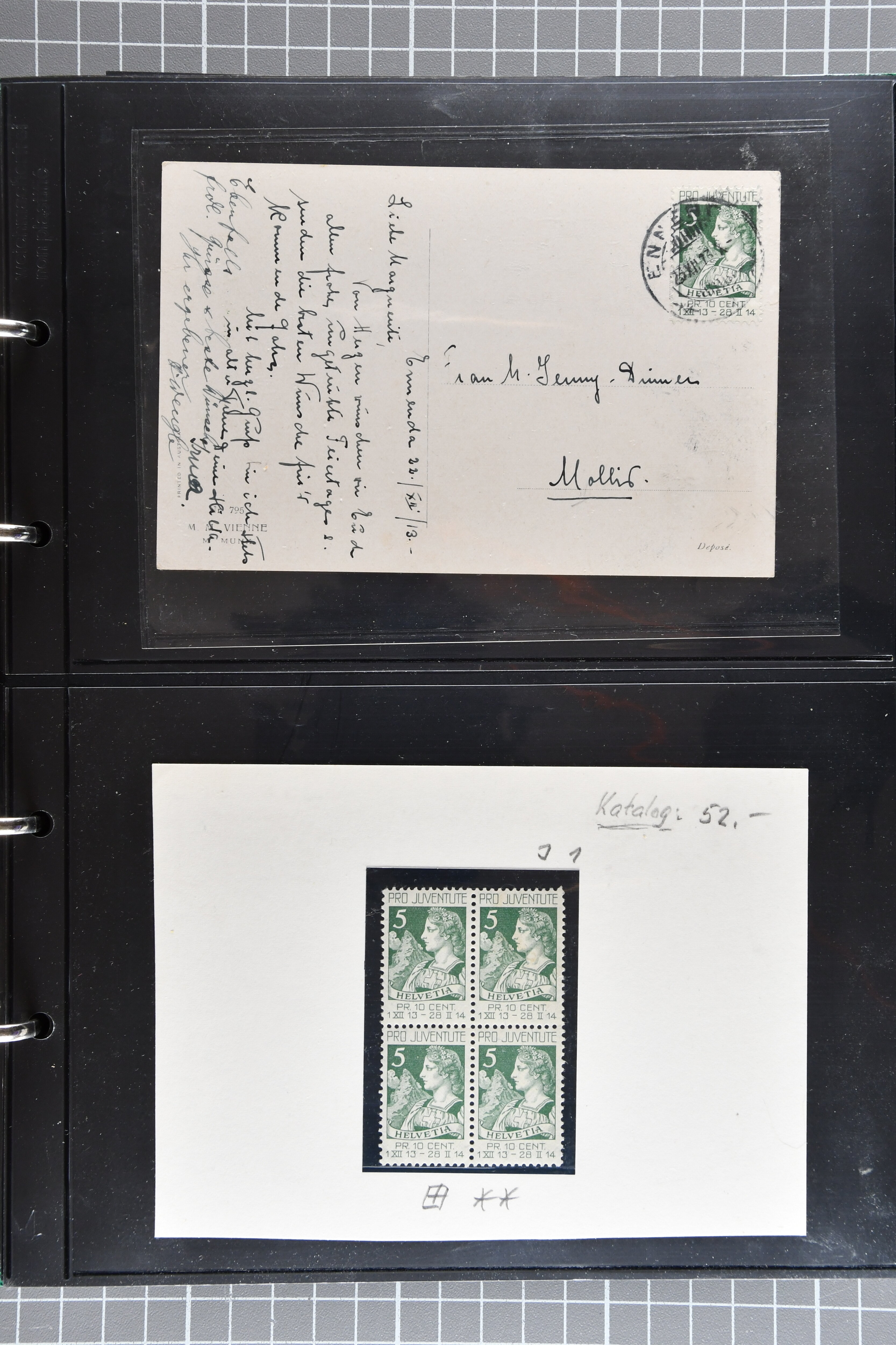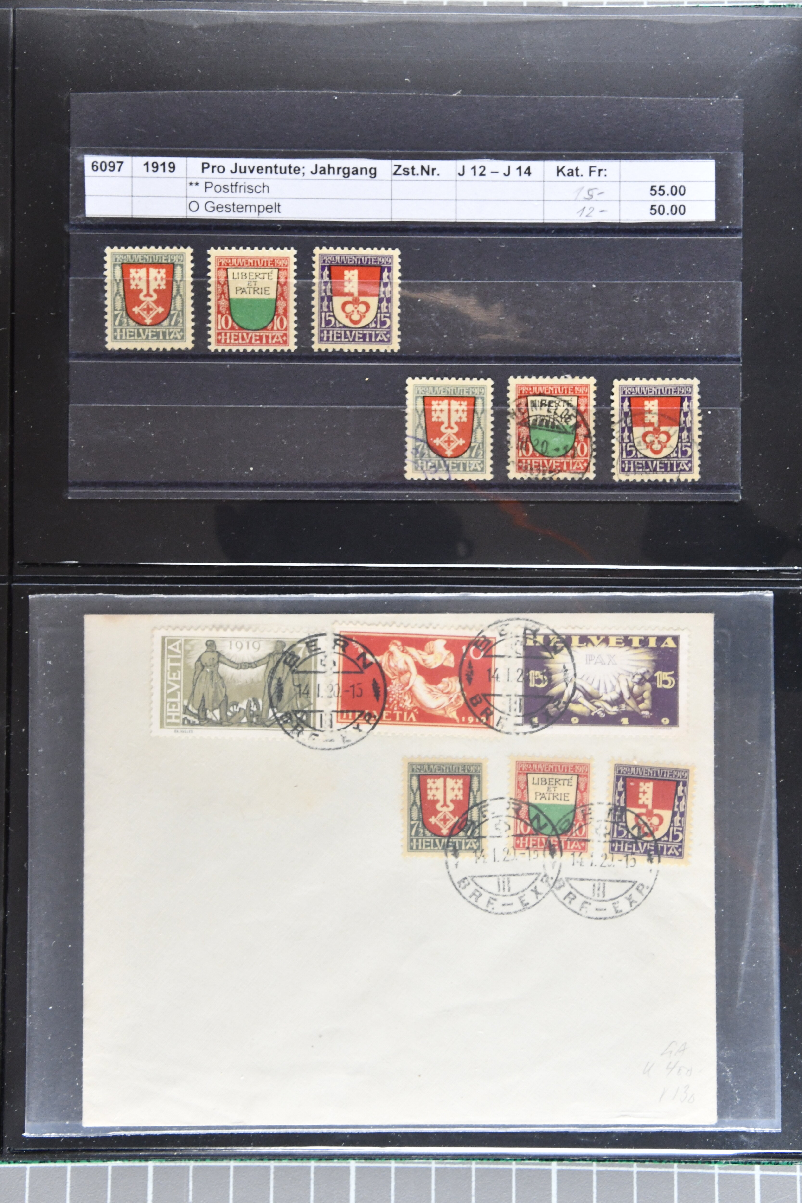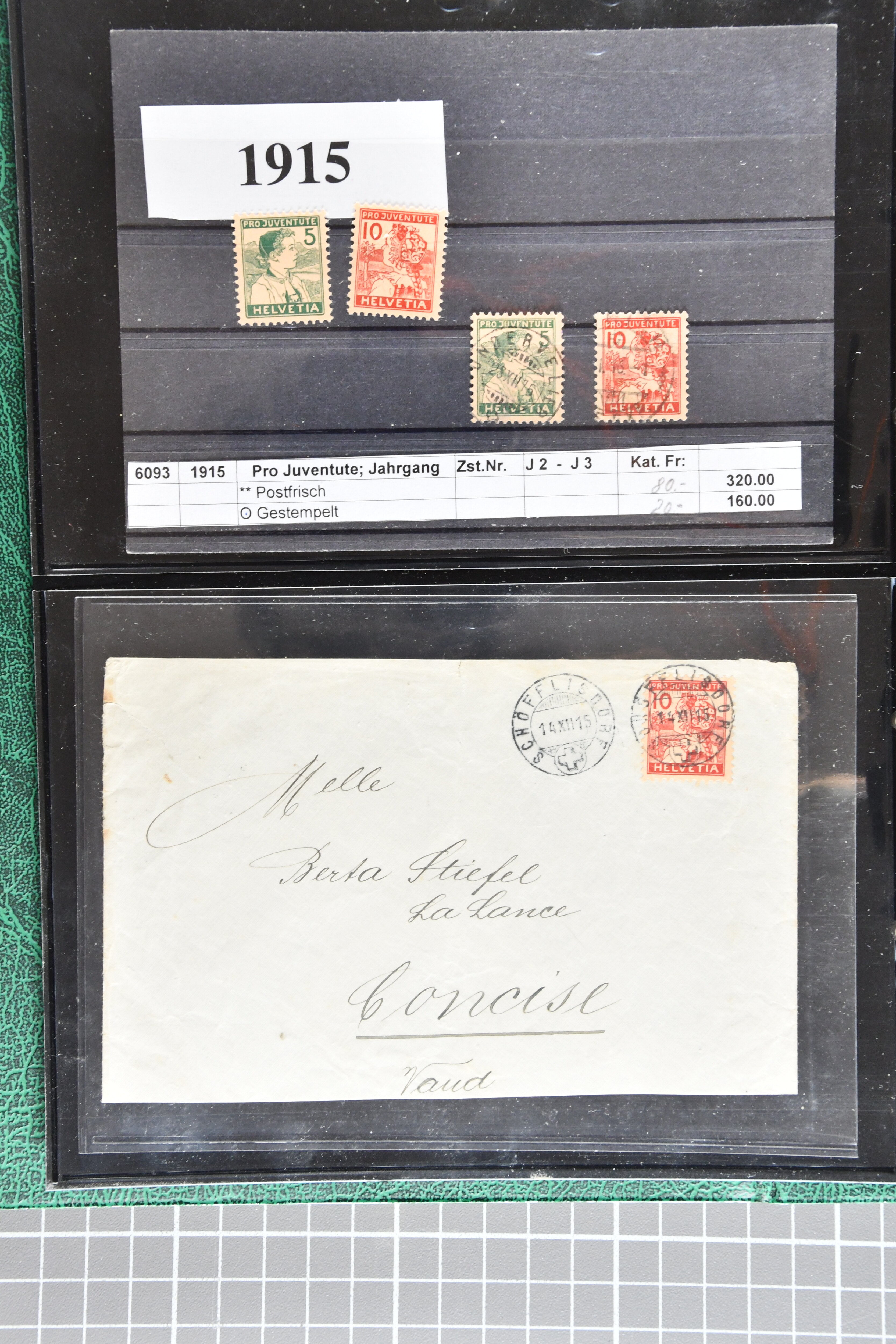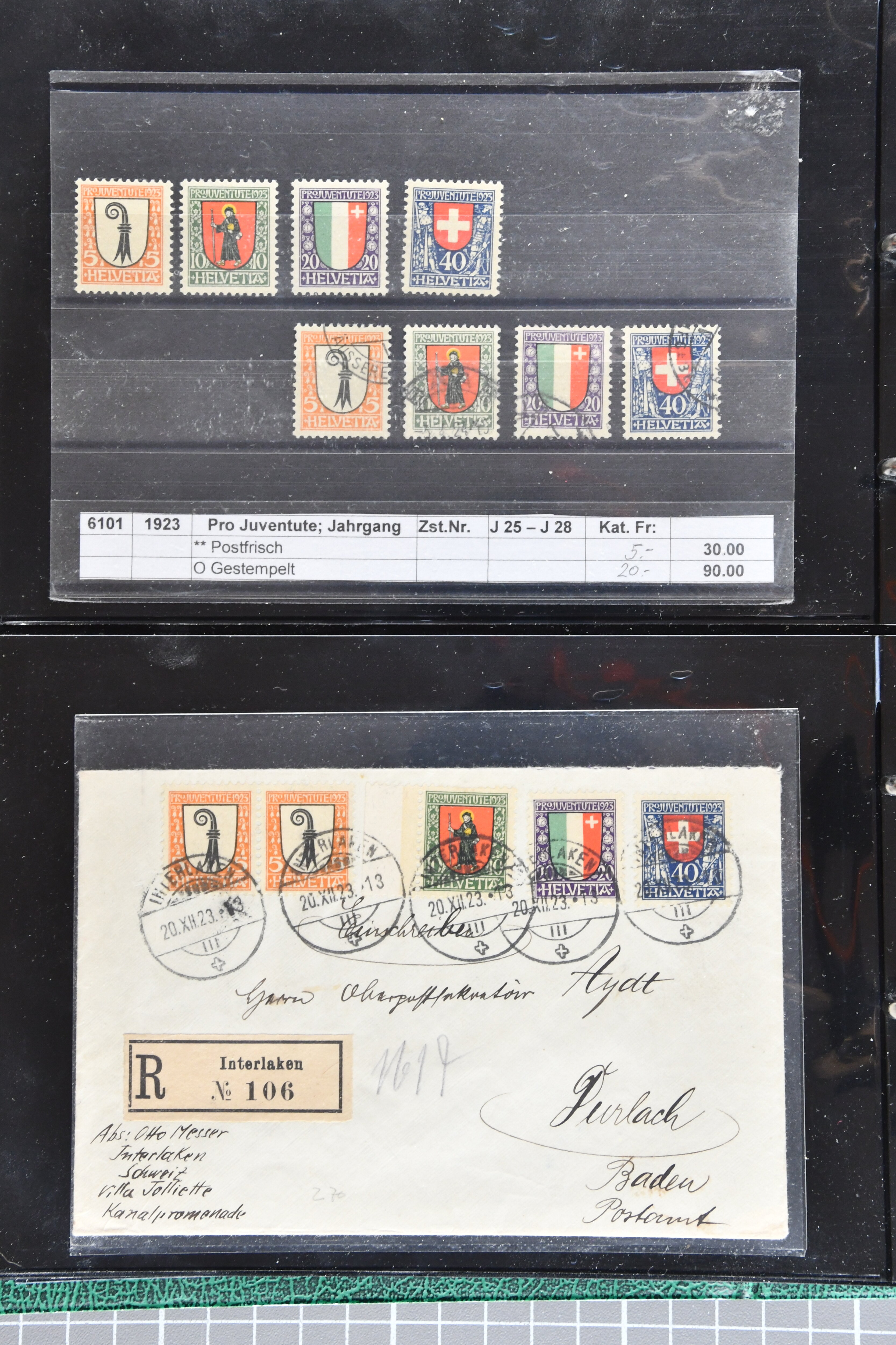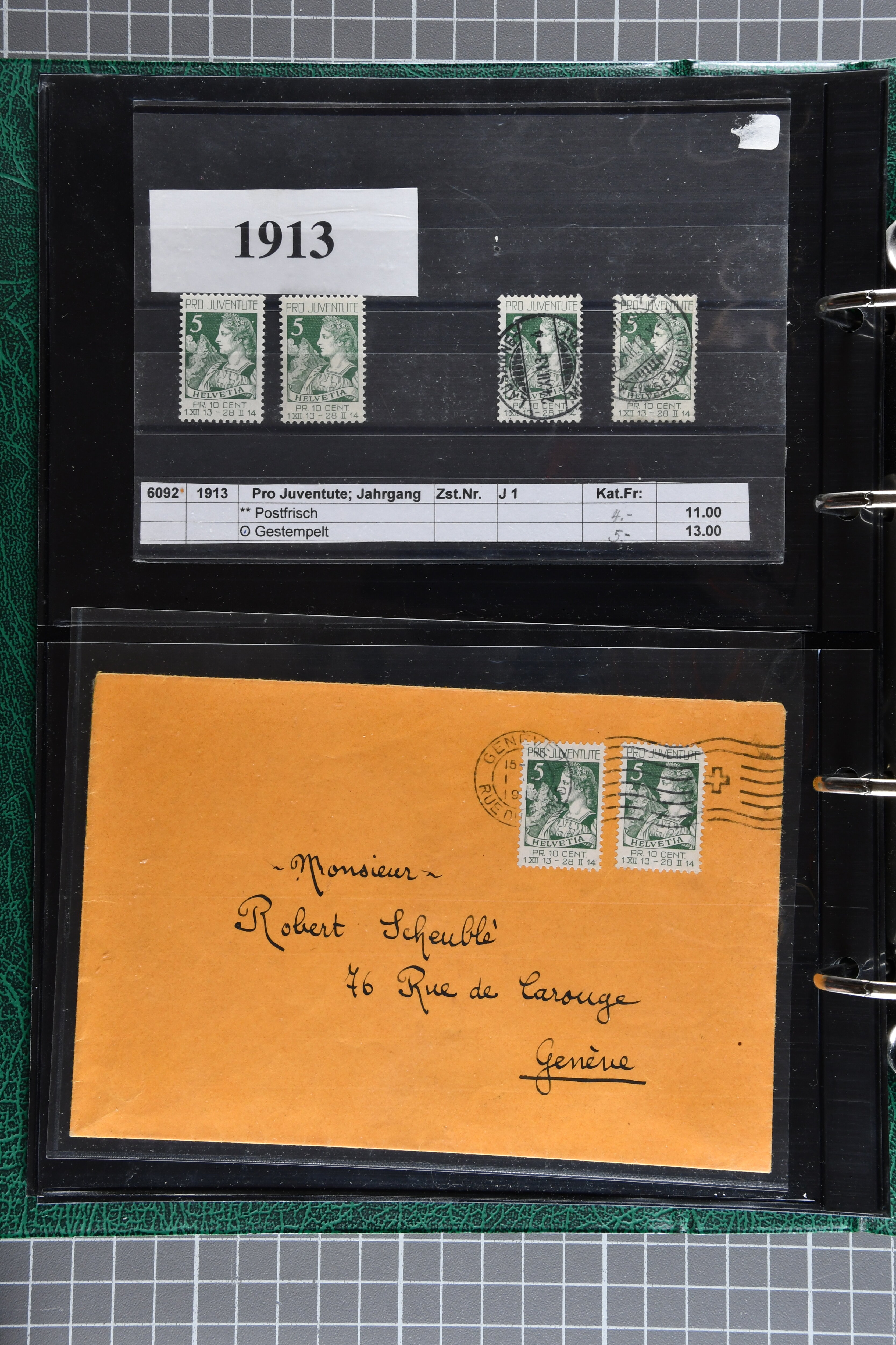 sowie gest. im waagr. Paar mit Normalmarke. Die Jahrgänge ab 1964 dann oft mit sauberen Vollstempeln resp. für die postfrischen Marken einem Frankaturwert von knapp CHF 100.00. Ein gepflegtes Objekt in sehr guter Erhaltung; sechs Befunde, fünf