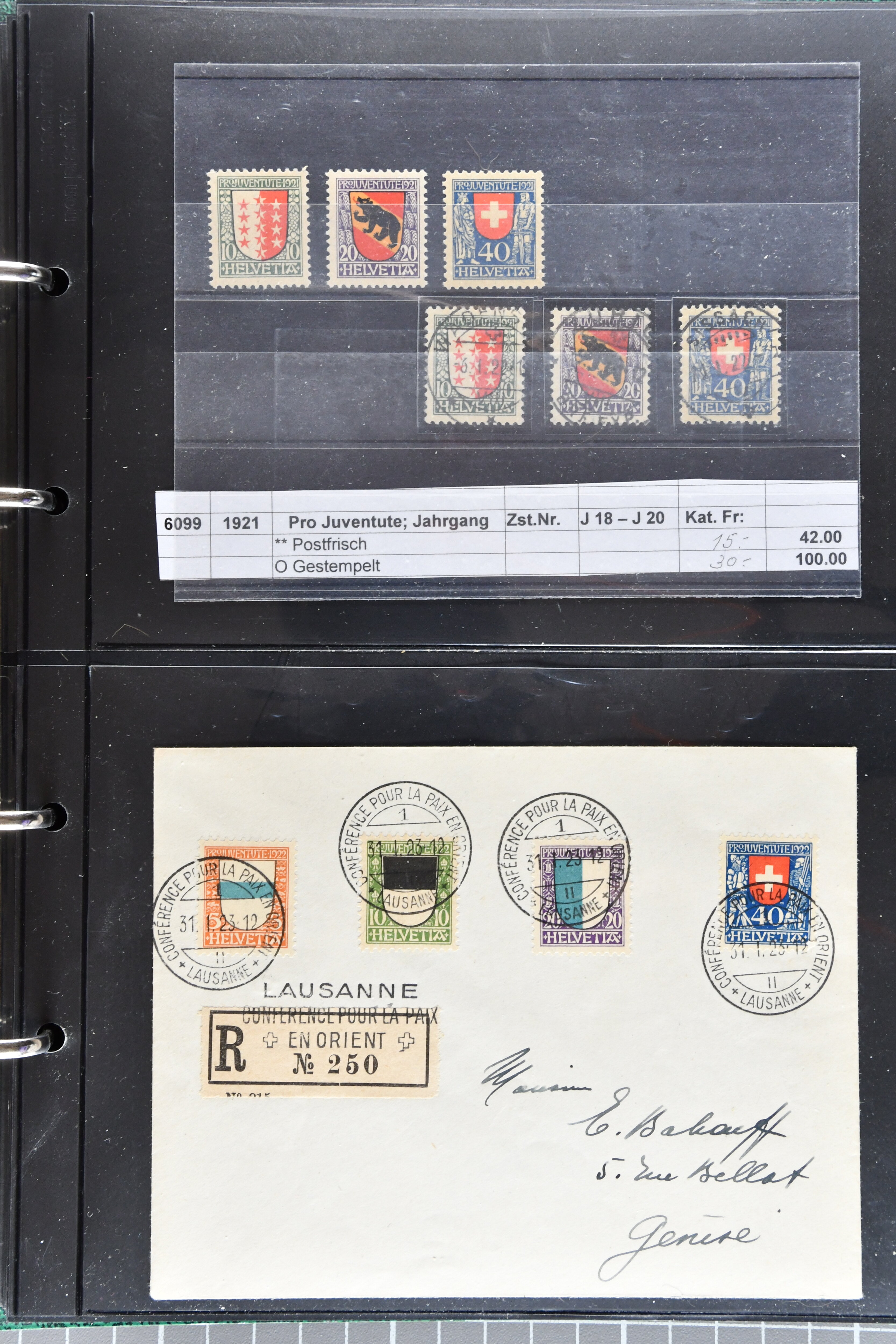 ersttagsgestempelt. Ein Dublettenalbum umfasst lose Werte ab 1912, gestempelt, überwiegend in guter Bedarfserhaltung, die moderneren Ausgaben sind ersttagsgestempelt. Ein weiteres Briefalbum enthält einige interessante Belege aus Sammler- und