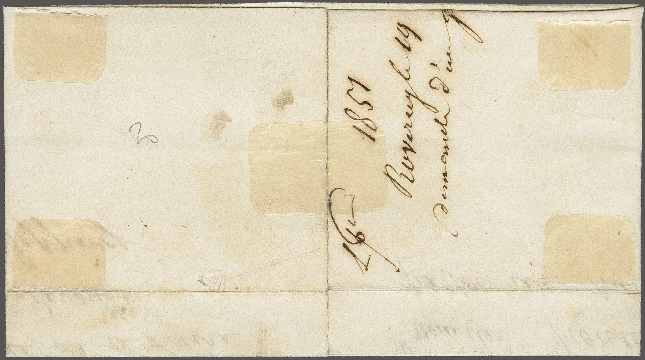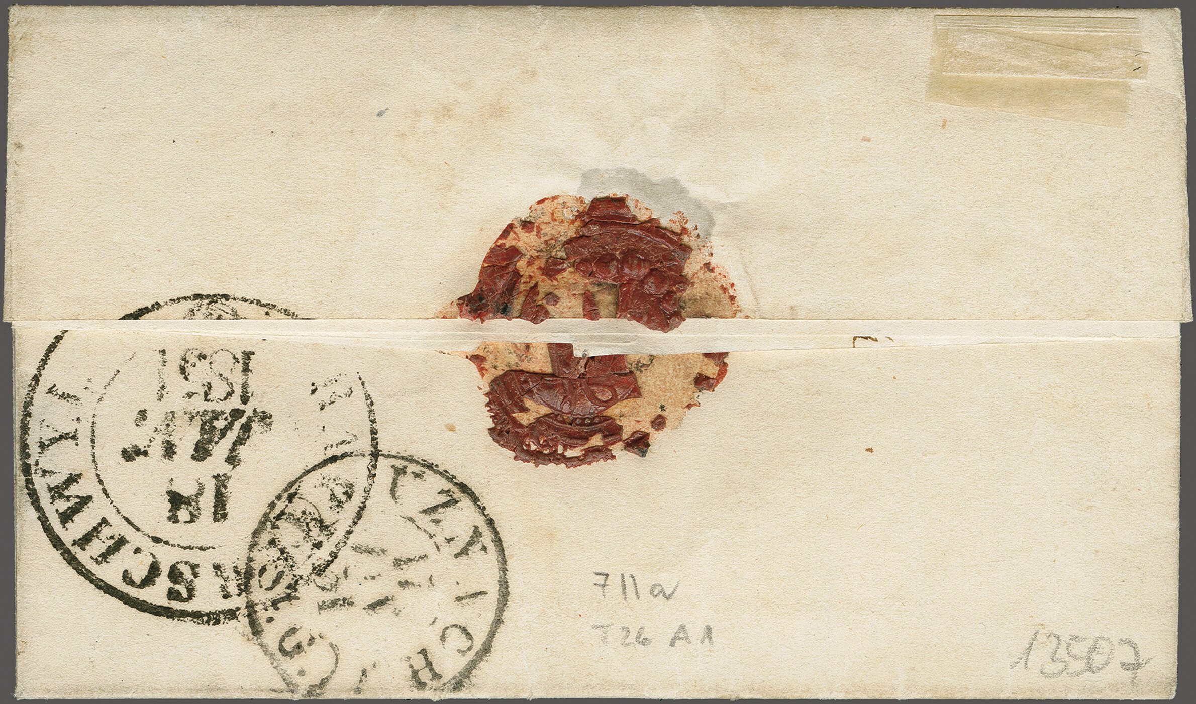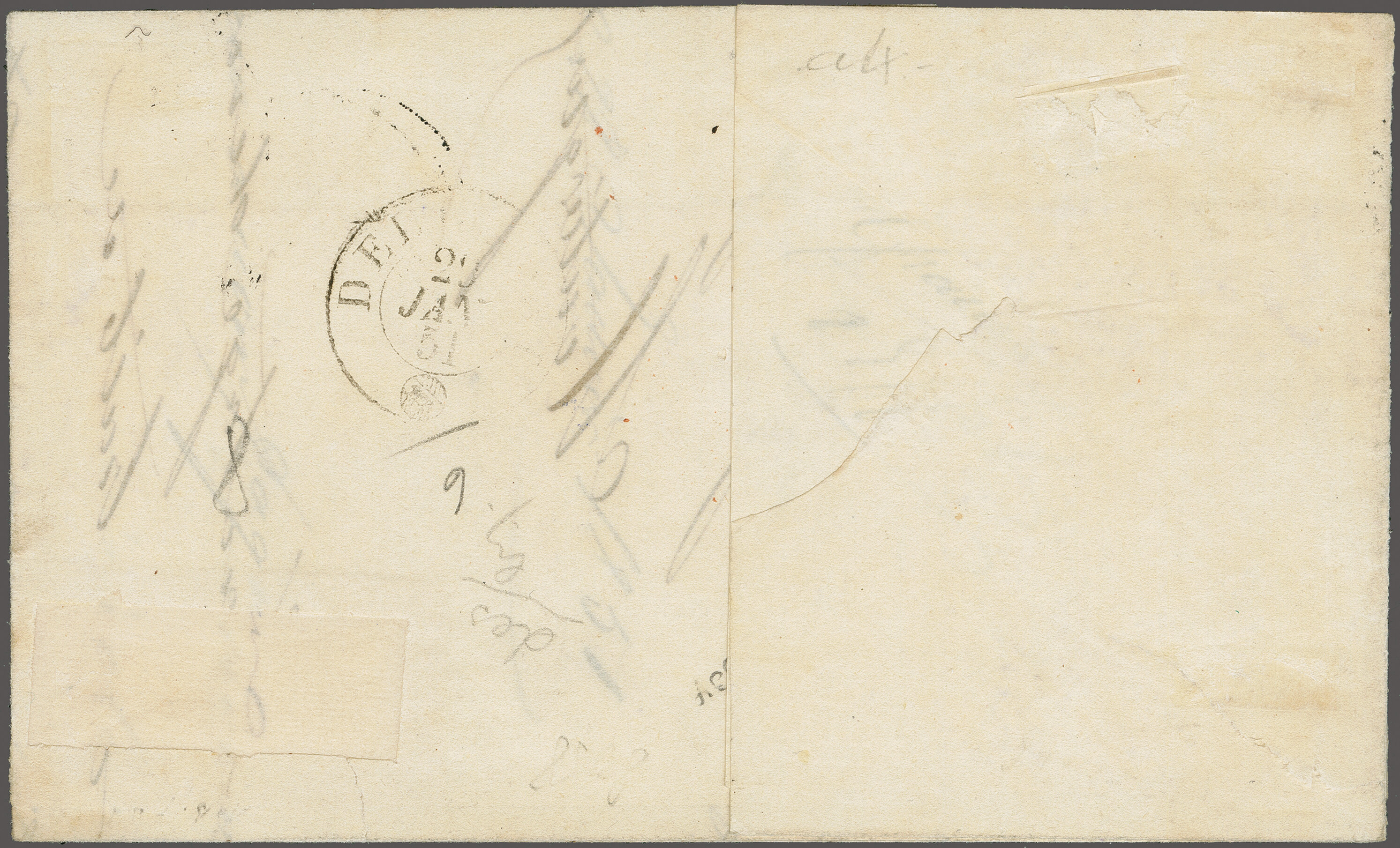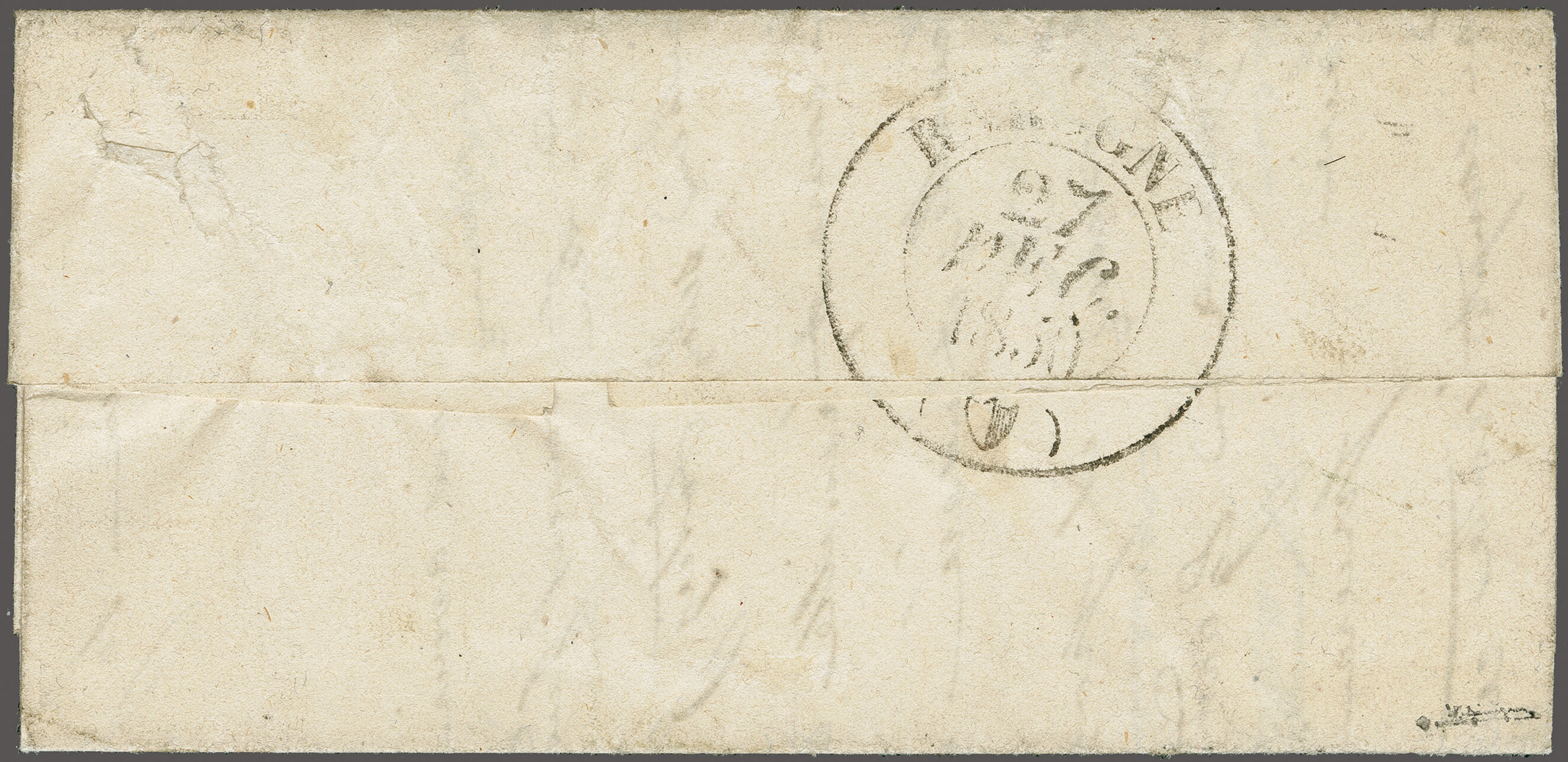 11½M" in derselben Farbe auf frischer Faltbriefhülle im 1. Briefkreis nach Aubonne (waagr. Registraturbugspur durch den unteren Teil der Marke schön ausgeglättet). Eine sehr seltene, nur während der 1. Januarhälfte 1851, zur Verwendung gekommene