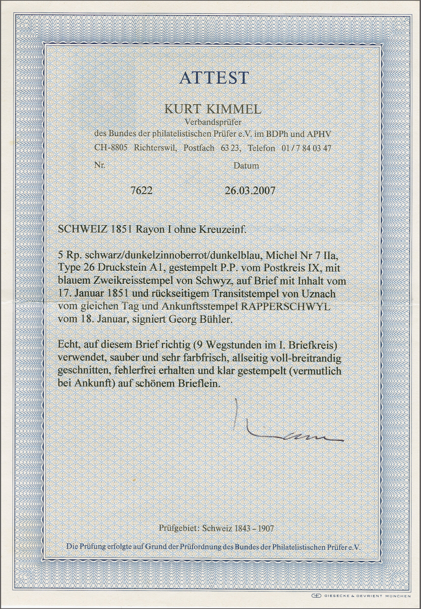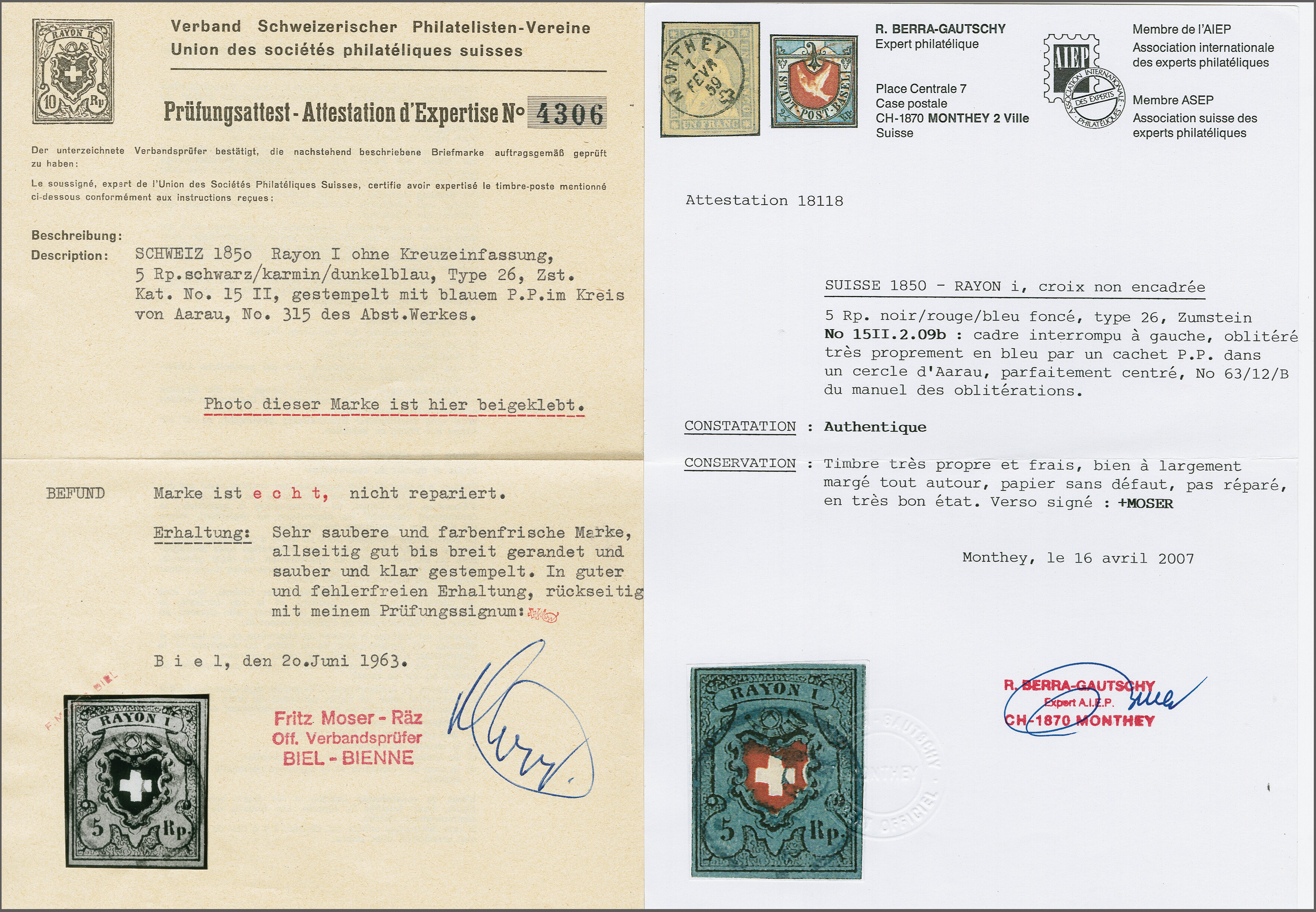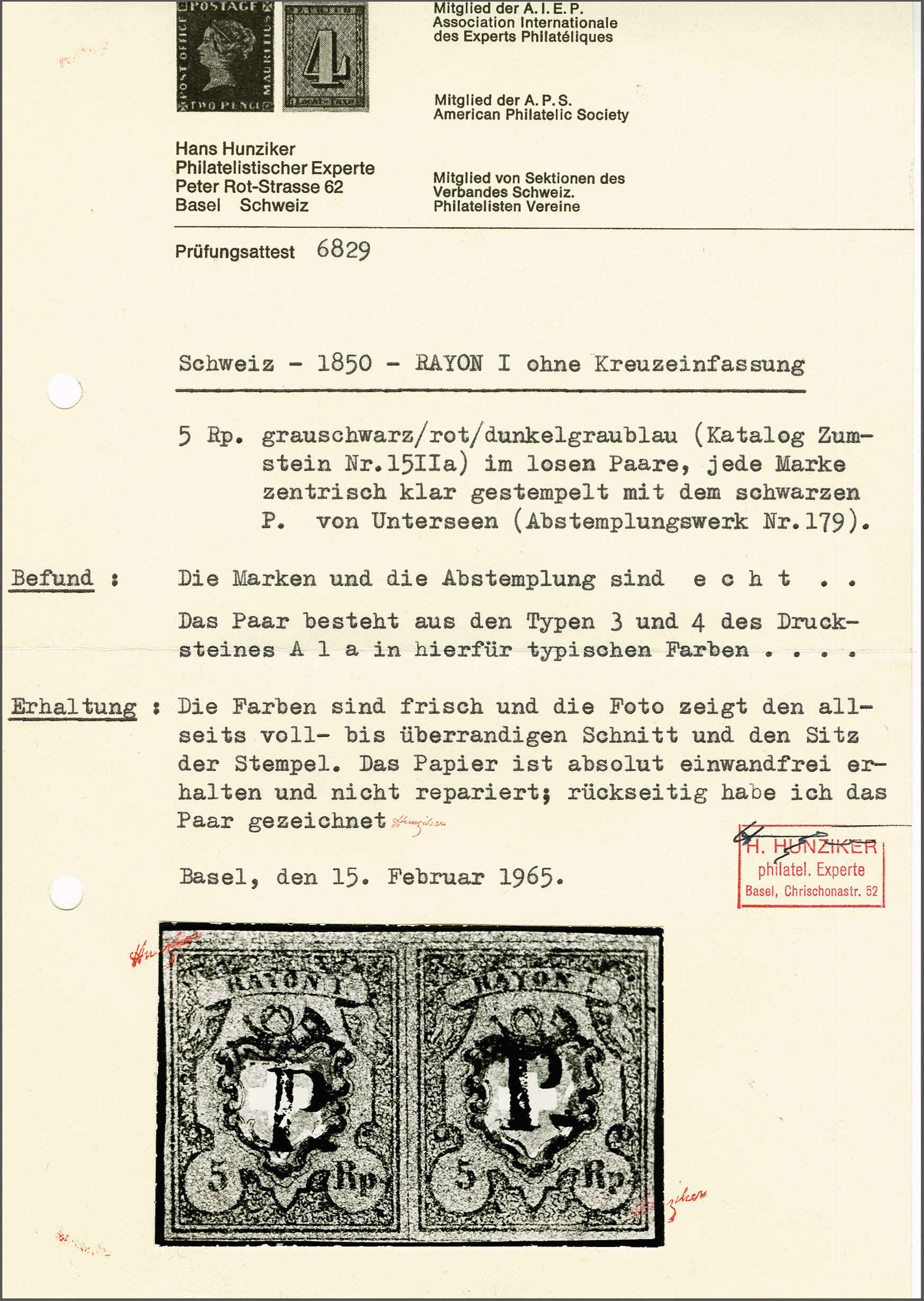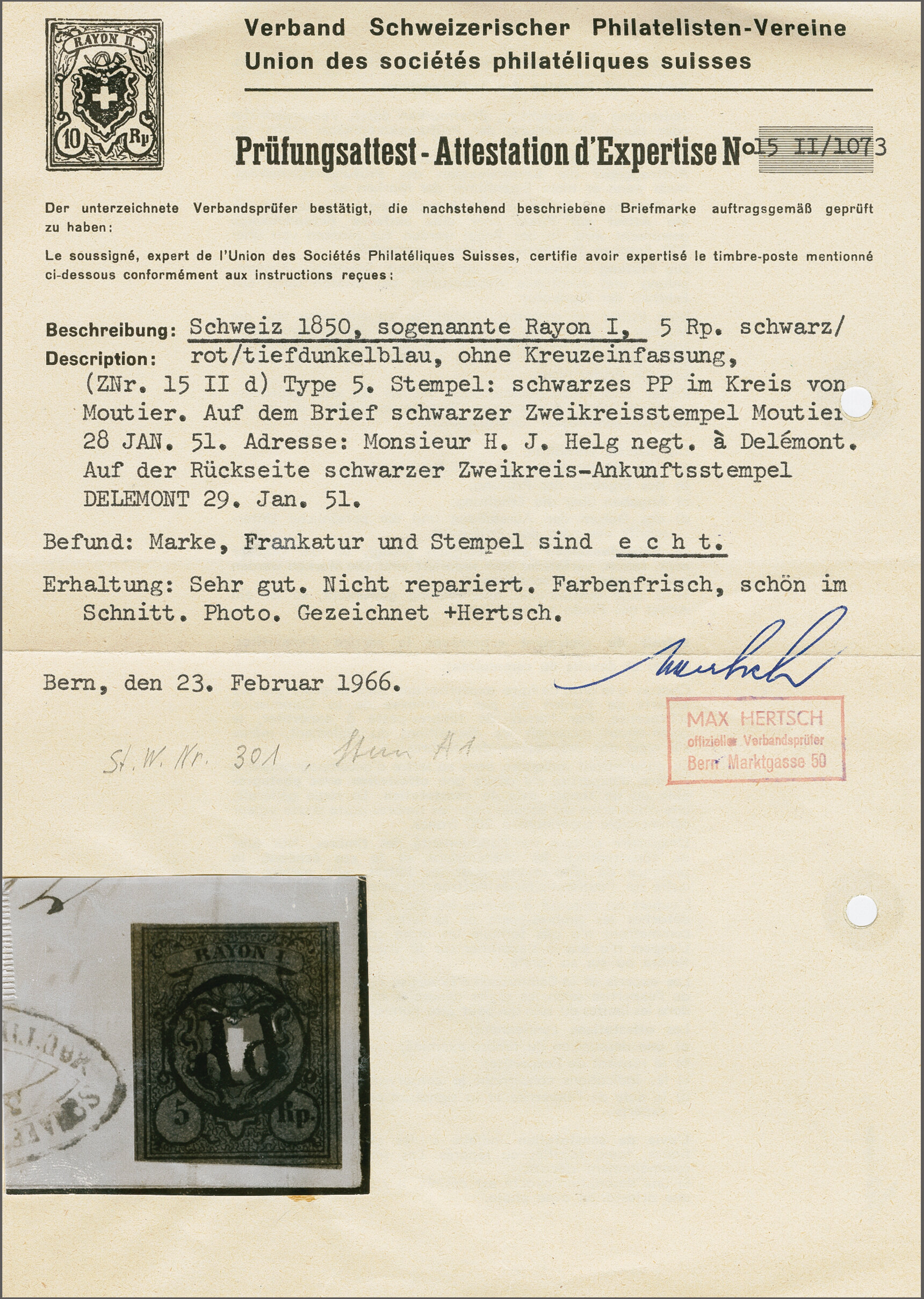 Diena & G. Bolaffi, Attest Rellstab (1989). SBK=CHF 750. (Image 1)