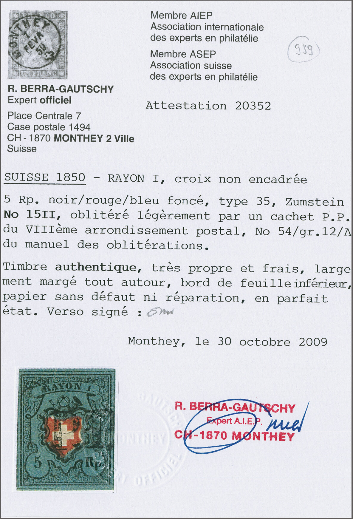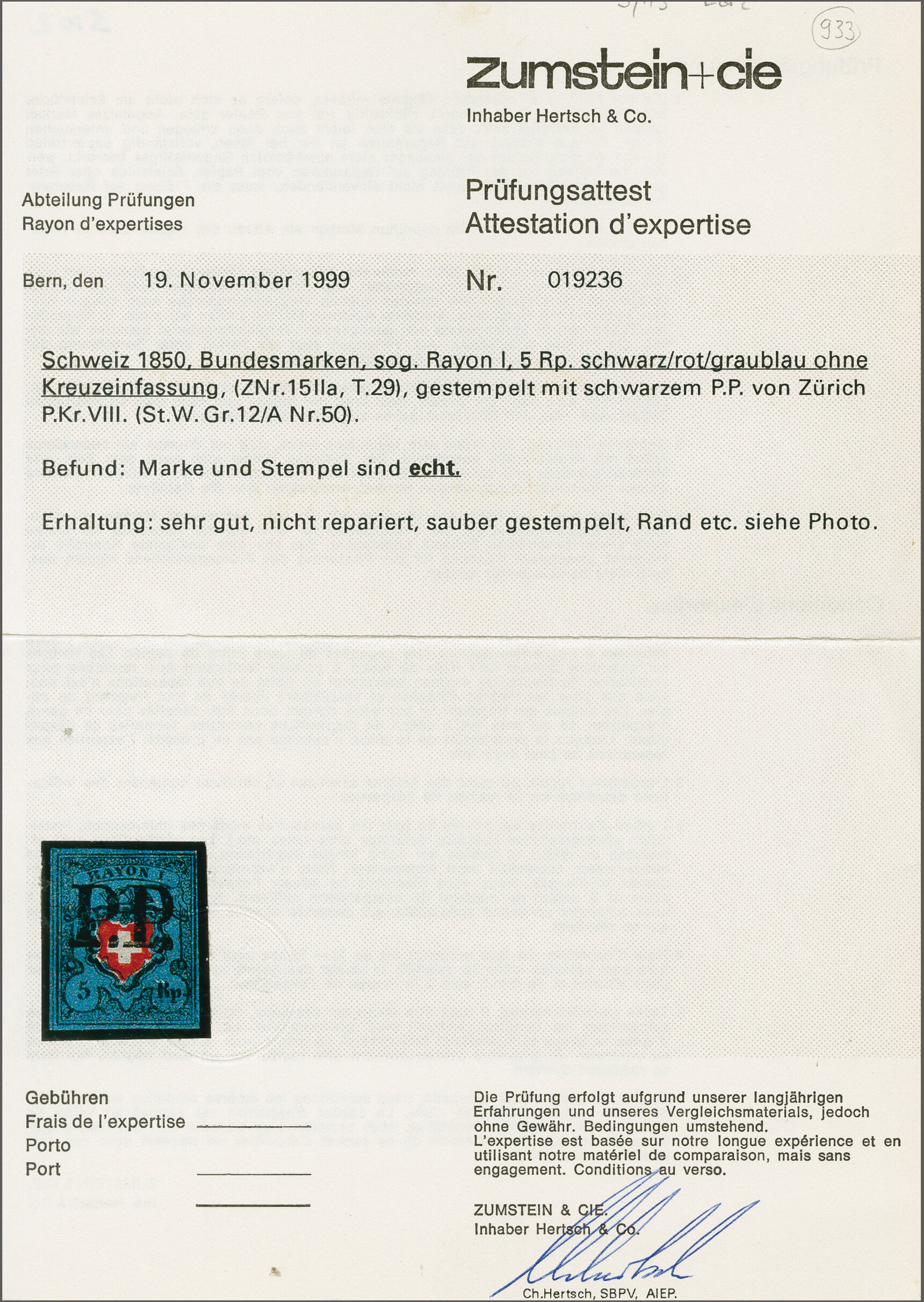Attest Eichele (2008). SBK = CHF 900+. (Image 1)