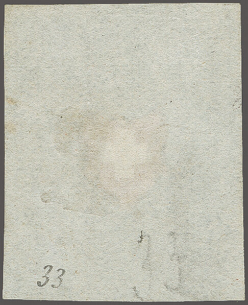 Type 33, farbfr. und breit- bis meist überrandig mit kompletten Trennlinien auf drei Seiten, ideal klar entw. mit schwarzem "P.P." des IX. Postkreises. Attest Renggli (1989) SBK = CHF 750. (Image 1)