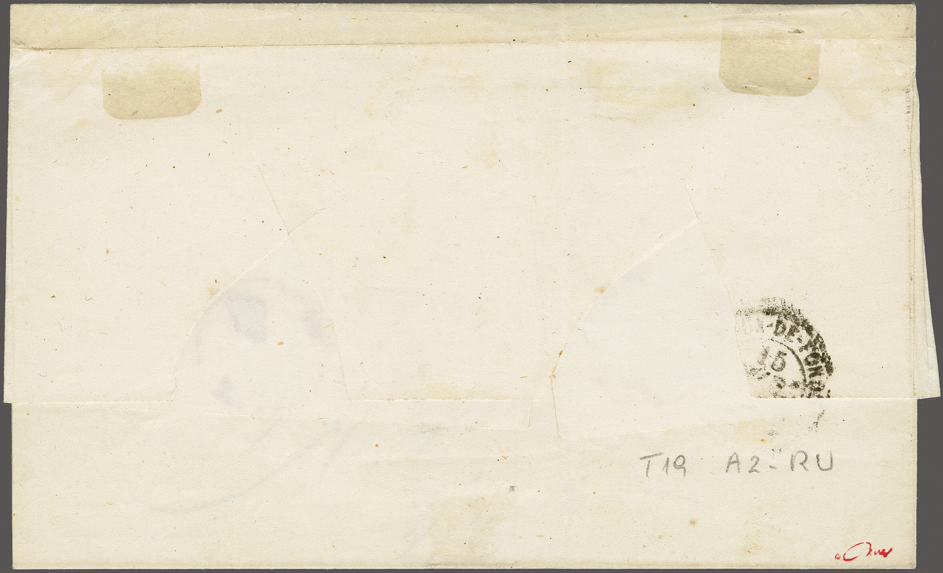 Stein B: Type 26 r/u, farbfr. und breitrandig, klar und zentrisch entw. mit dem sehr seltenen schwarzen Kreisstempel von Bützberg (AW 9) sowie voll aufges. blauem "P.D." des Postkreis Bern (AW 325/6). Eine sehr seltene