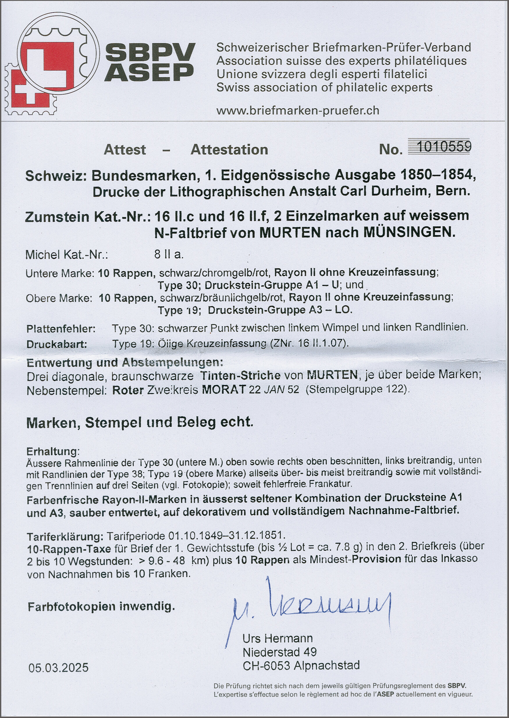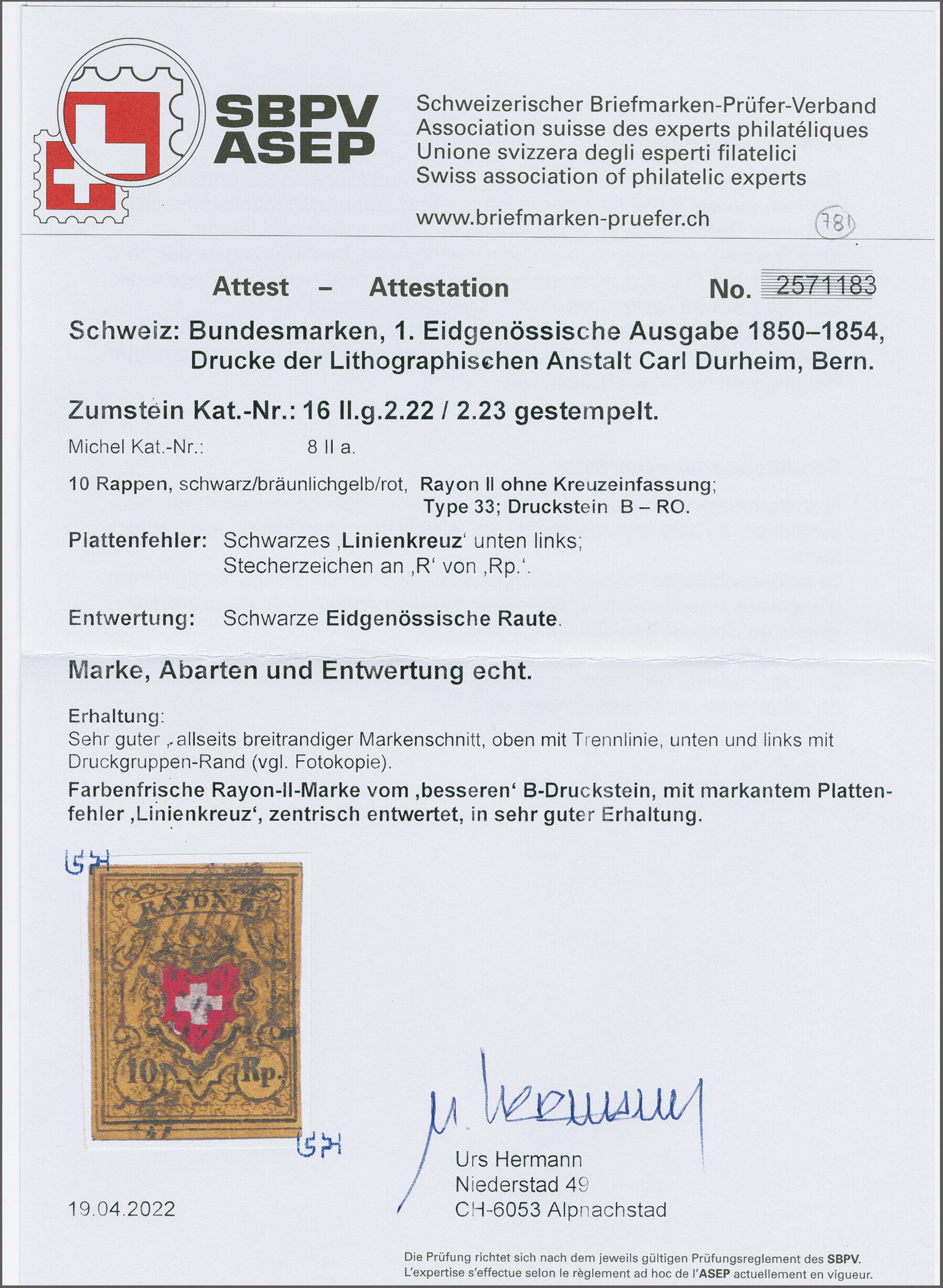 gesuchter Plattenfehler; Attest Hermann (2022). SBK=CHF 1'850. (Image 1)
