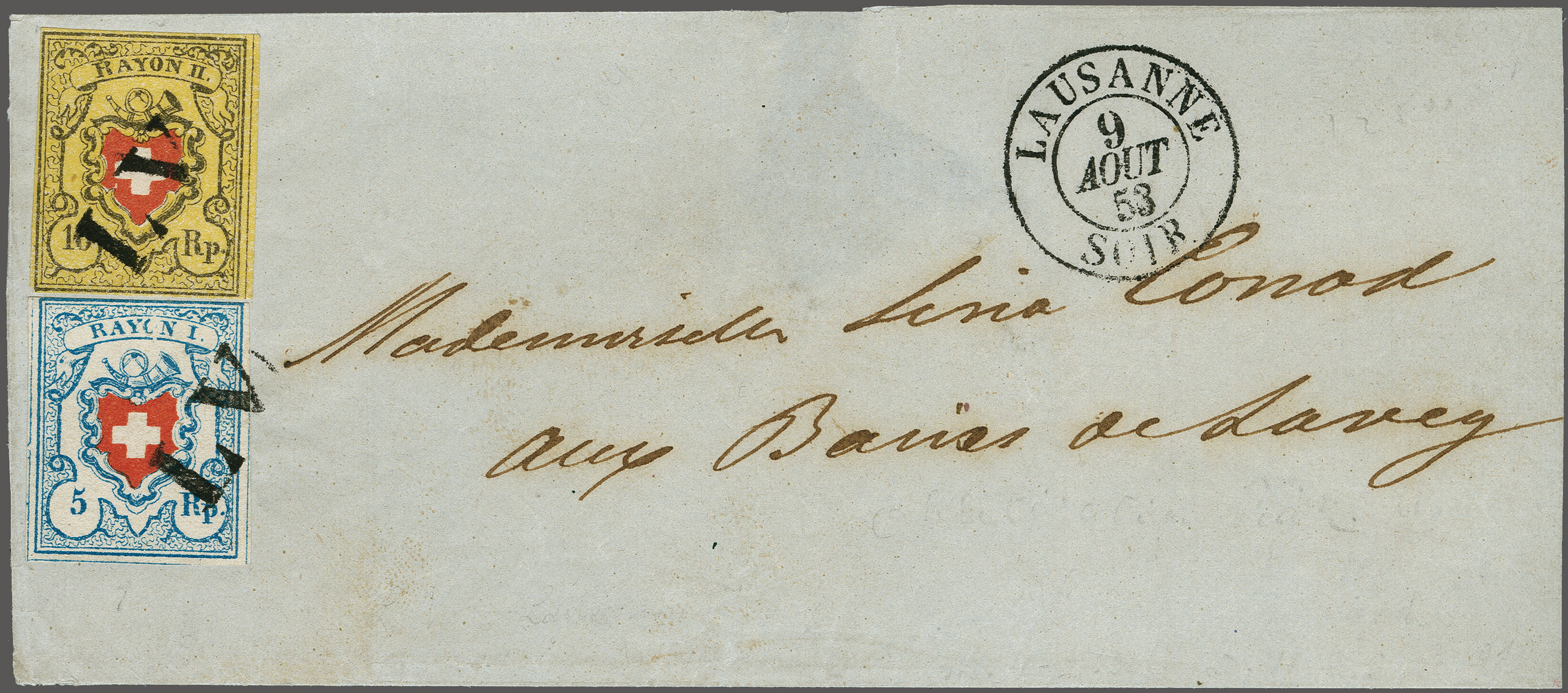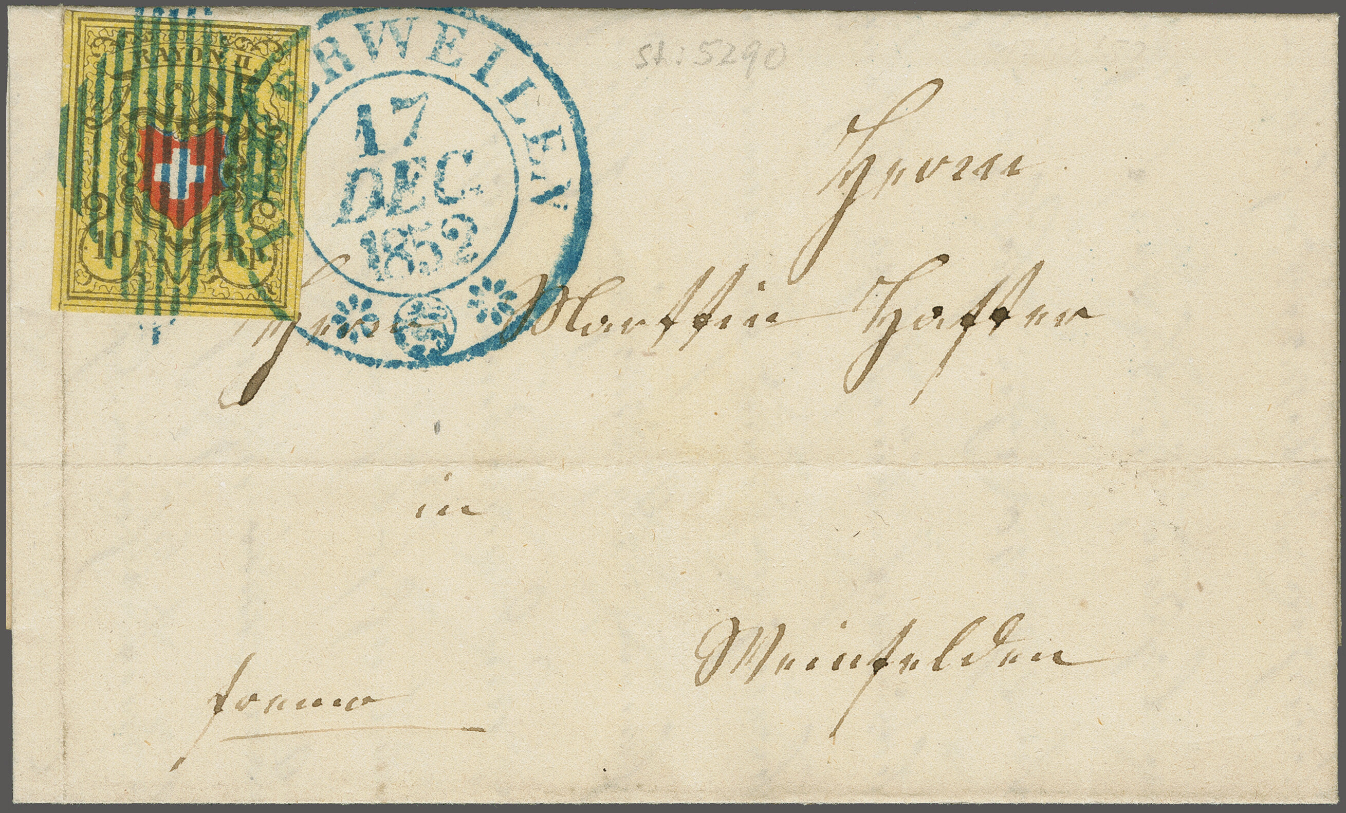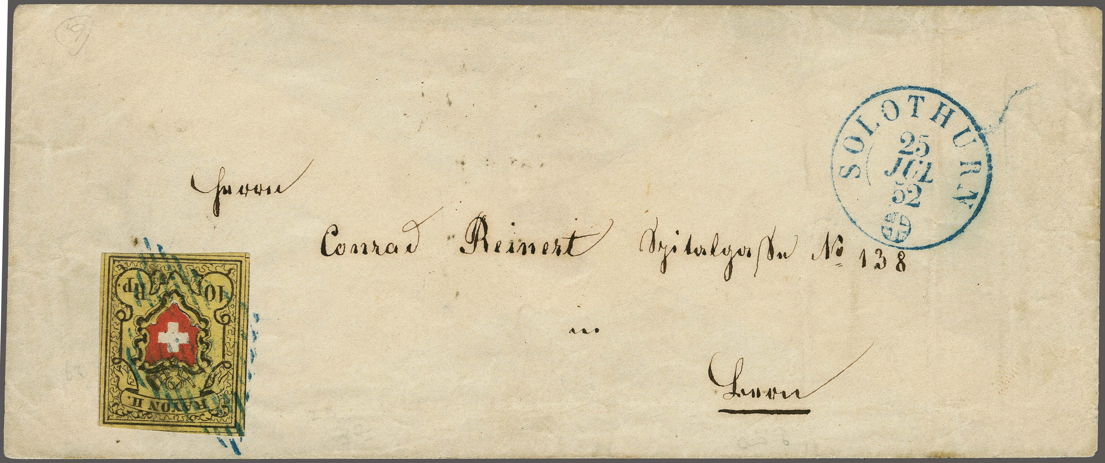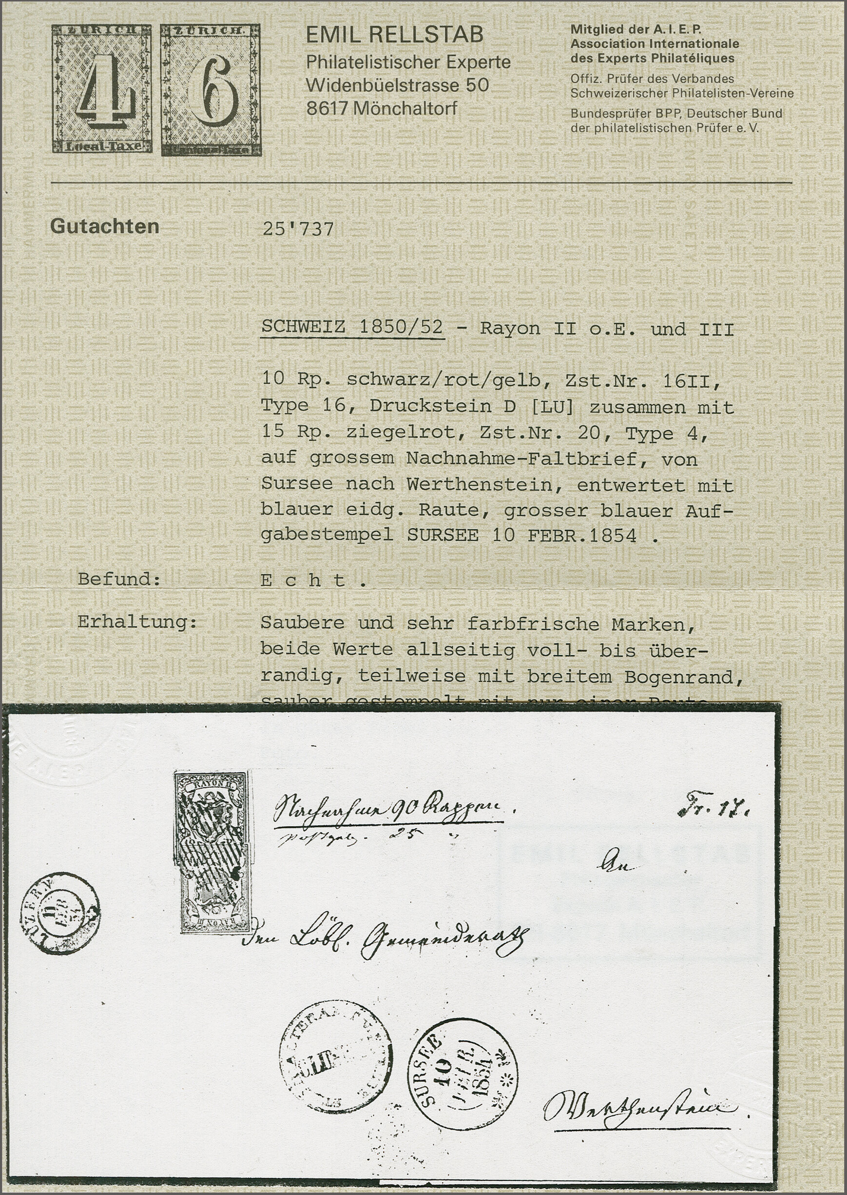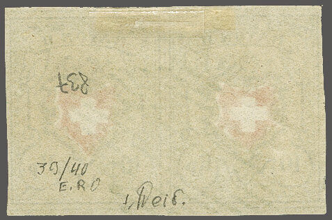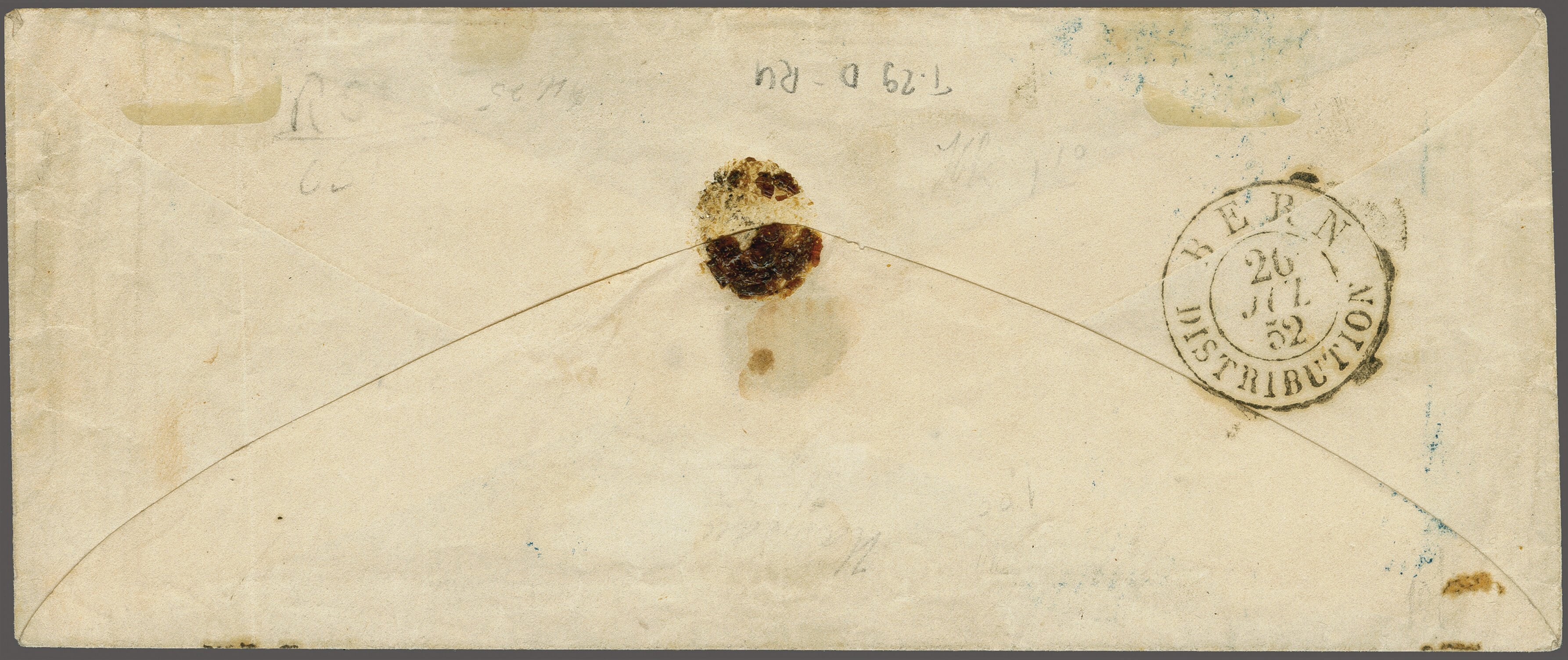 Abgebildet und diskutiert in: Henri Grand, "Oblitérations Suisses 1843-1854", S. 234 Provenienz: Angebot Ernst Müller, Basel, beworben auf der Titelseite der Firmenzeitschrift "Die Basler Taube", 8/1 (März 1928); Giorgino-Auktion, Biel 18./19. März