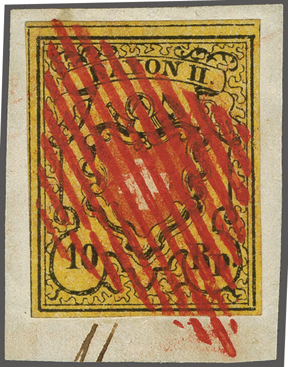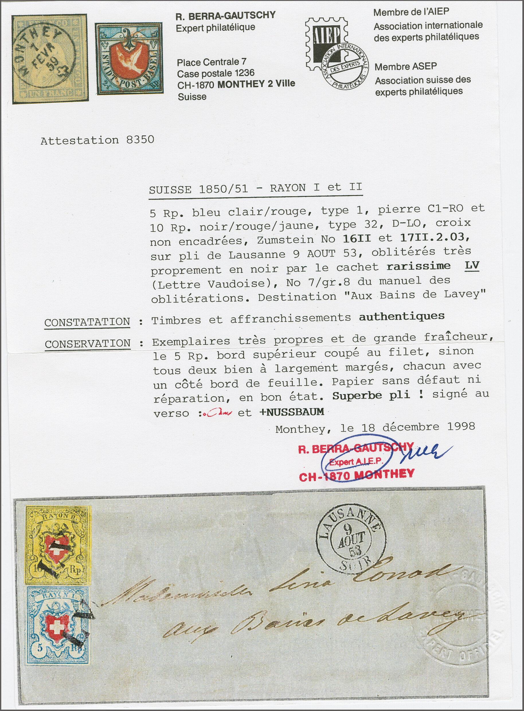 Altschweiz-Sammlung; signiert Nussbaum, Attest Berra (1998). Anmerkung: Gemäss dem Postvertrag zwischen dem Kanton Waadt und dem Königreich Sardinien vom 29. November 1832 diente der Ende 1832 von der Waadtländer Kantonalpost angeschaffte Stempel