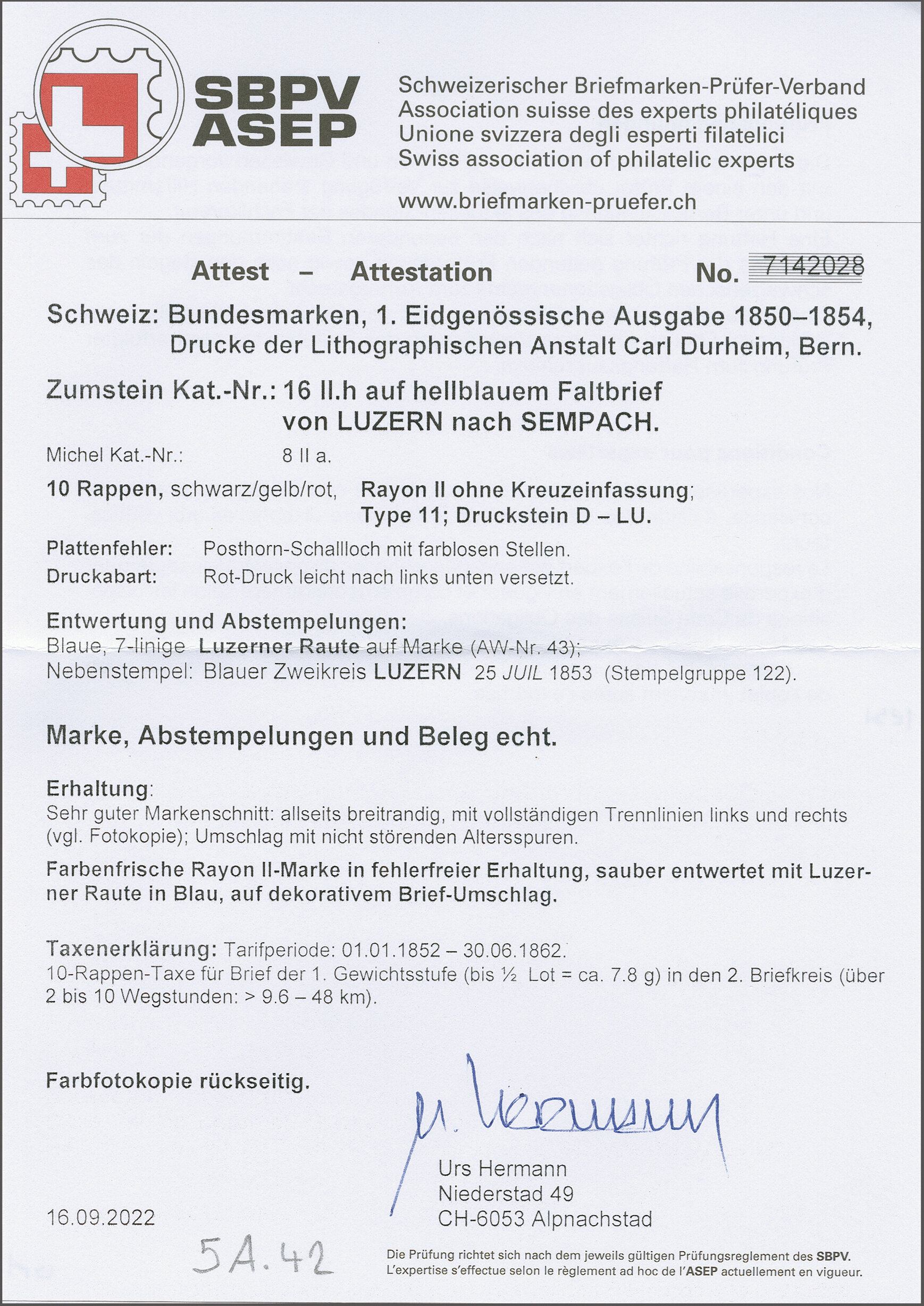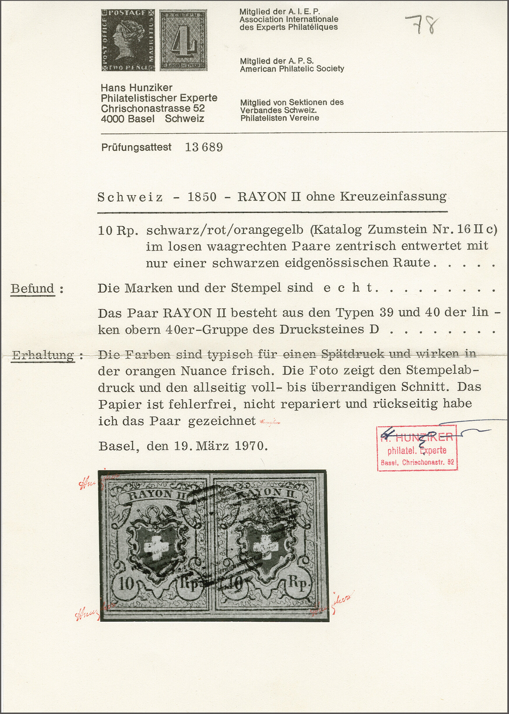 entw. mit schwarzer eidg. Raute. Attest Hunziker (1970). (Image 1)
