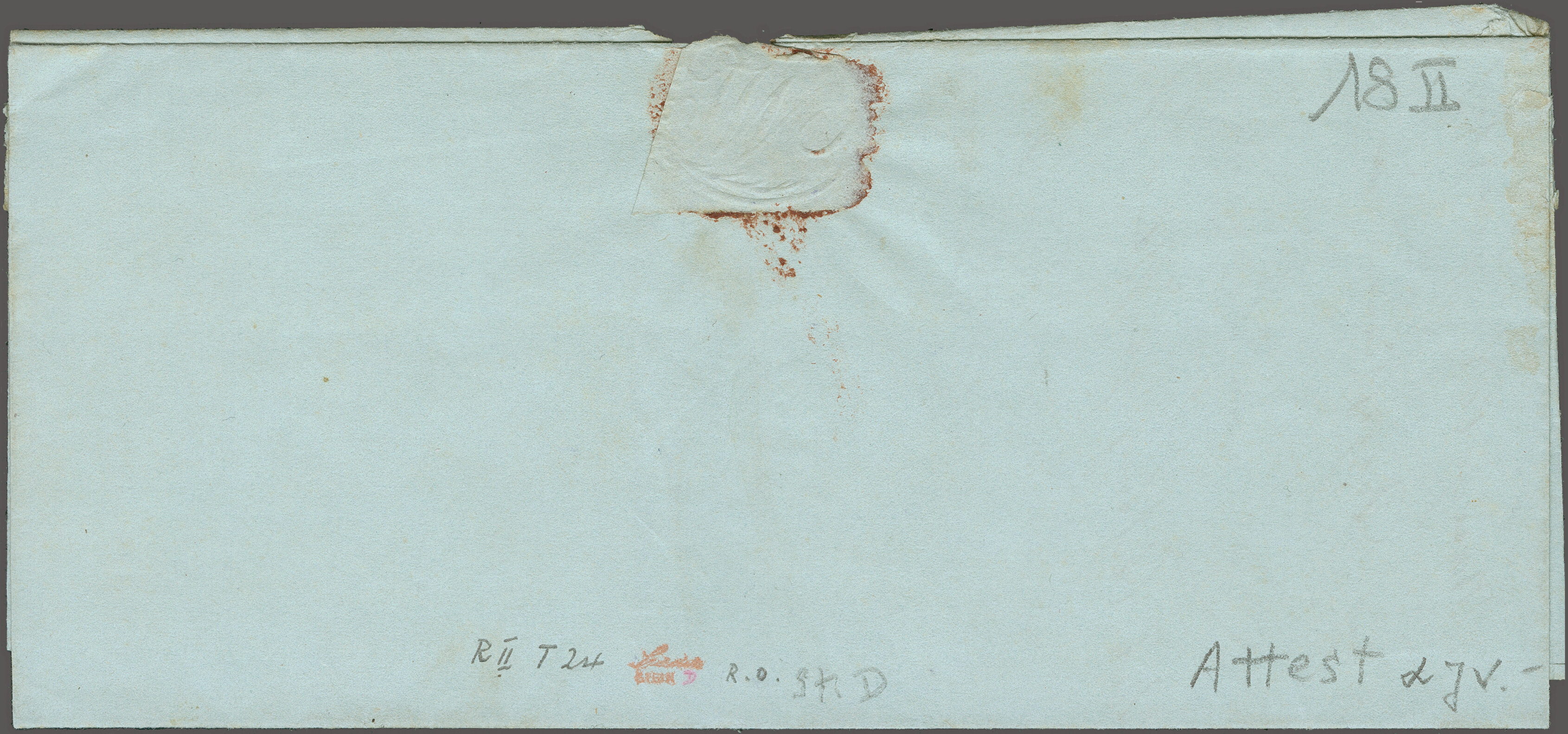 Stein D: Type 4 r/o, farbfr. und gut- bis überrandig, zart und dekorativ entw. mit rotem P.P. im Kreis (AW 313) mit nebenges. rotem Zierzweikreisstp. "PONTS-MARTEL 20 NOV. .." auf Faltbrief nach Montmirail. Ein ansprechender