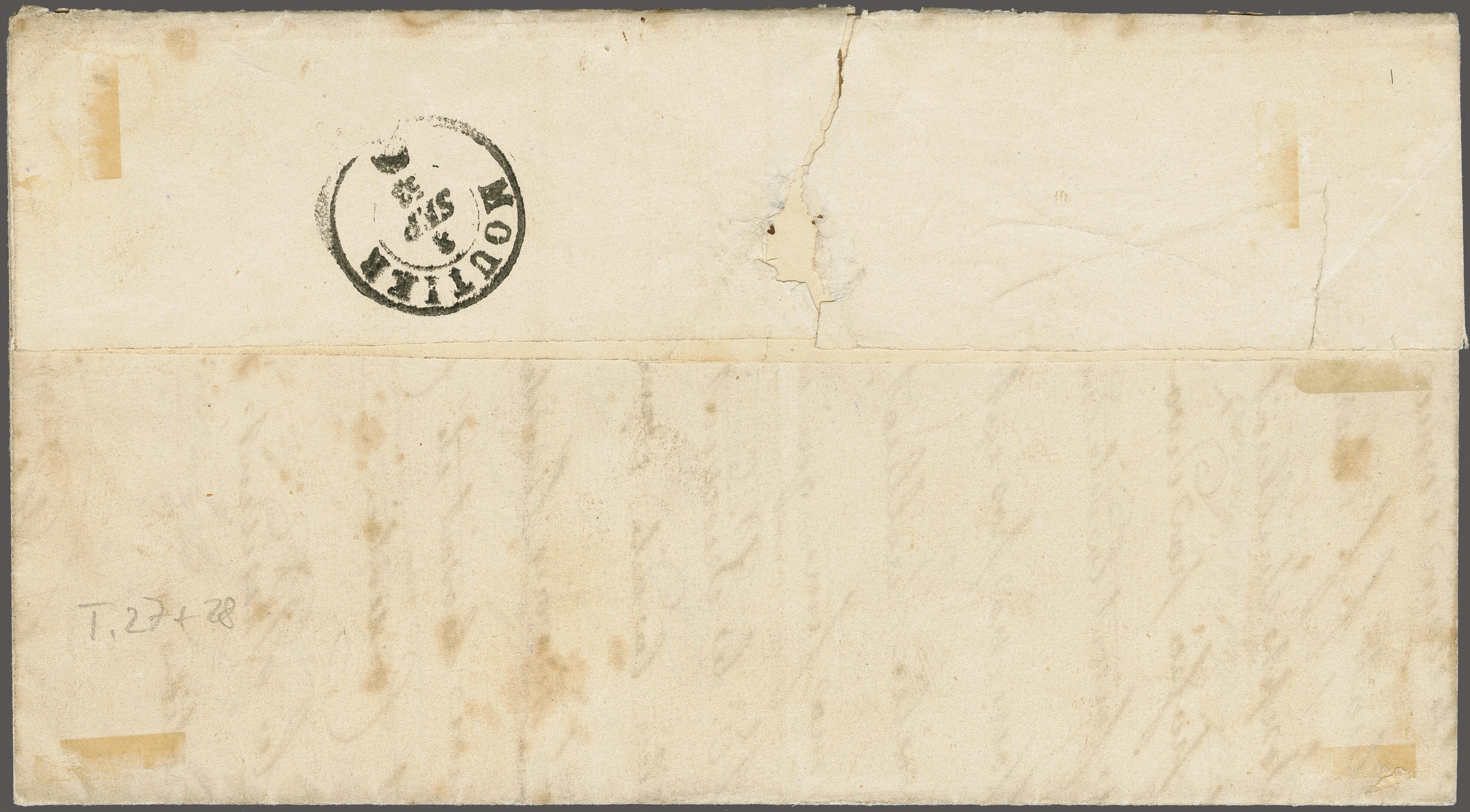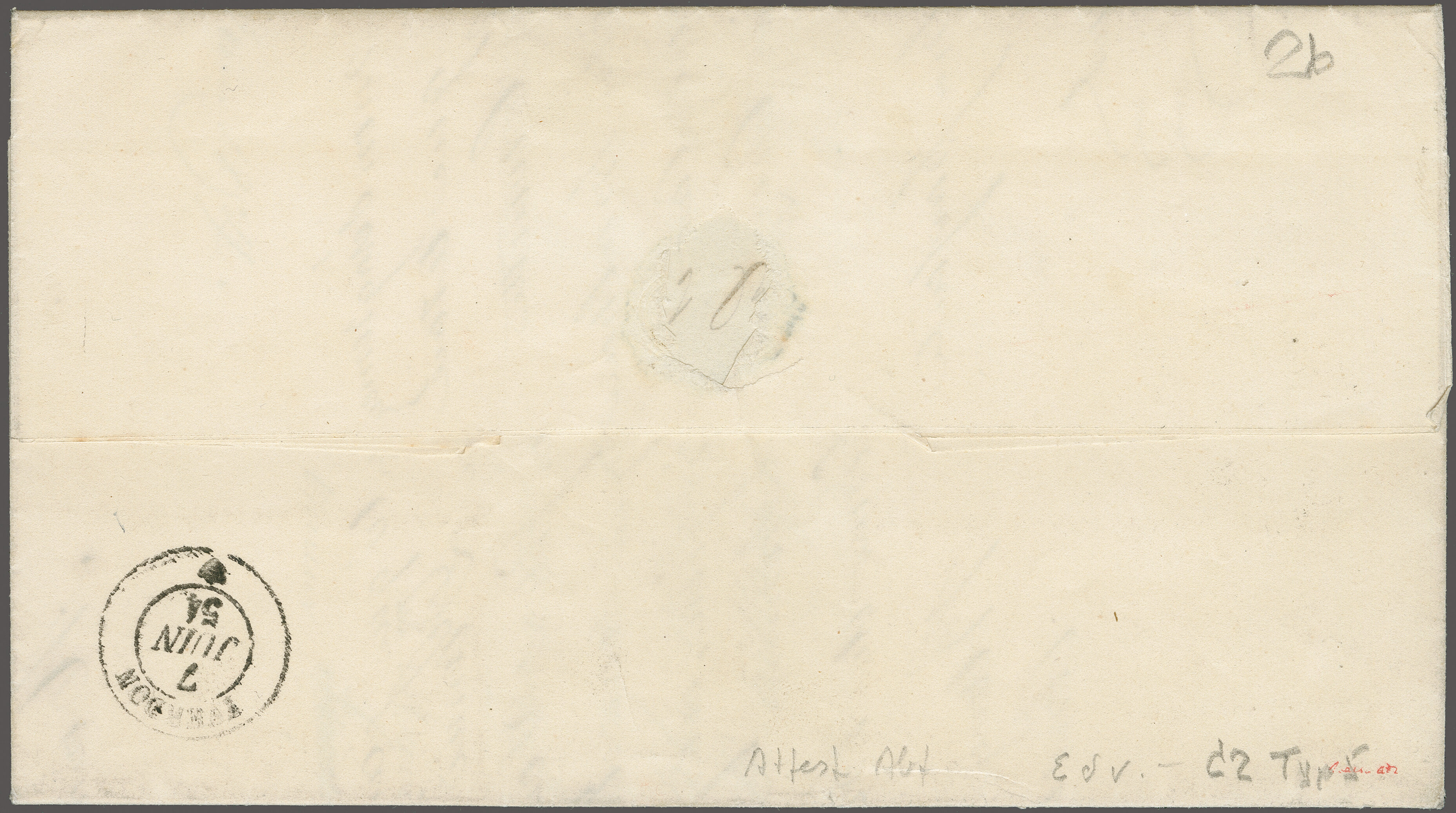 Stein C2: Type 26 l/o, farbfr. und voll- bis überrandig, zart und übergehend entw. mit Fingerhutstp. "LA CIBOURG 22 NOV. 53", nebenges. ebenfalls leicht übergehend wiederholt, auf volllständigem Faltbrief nach La