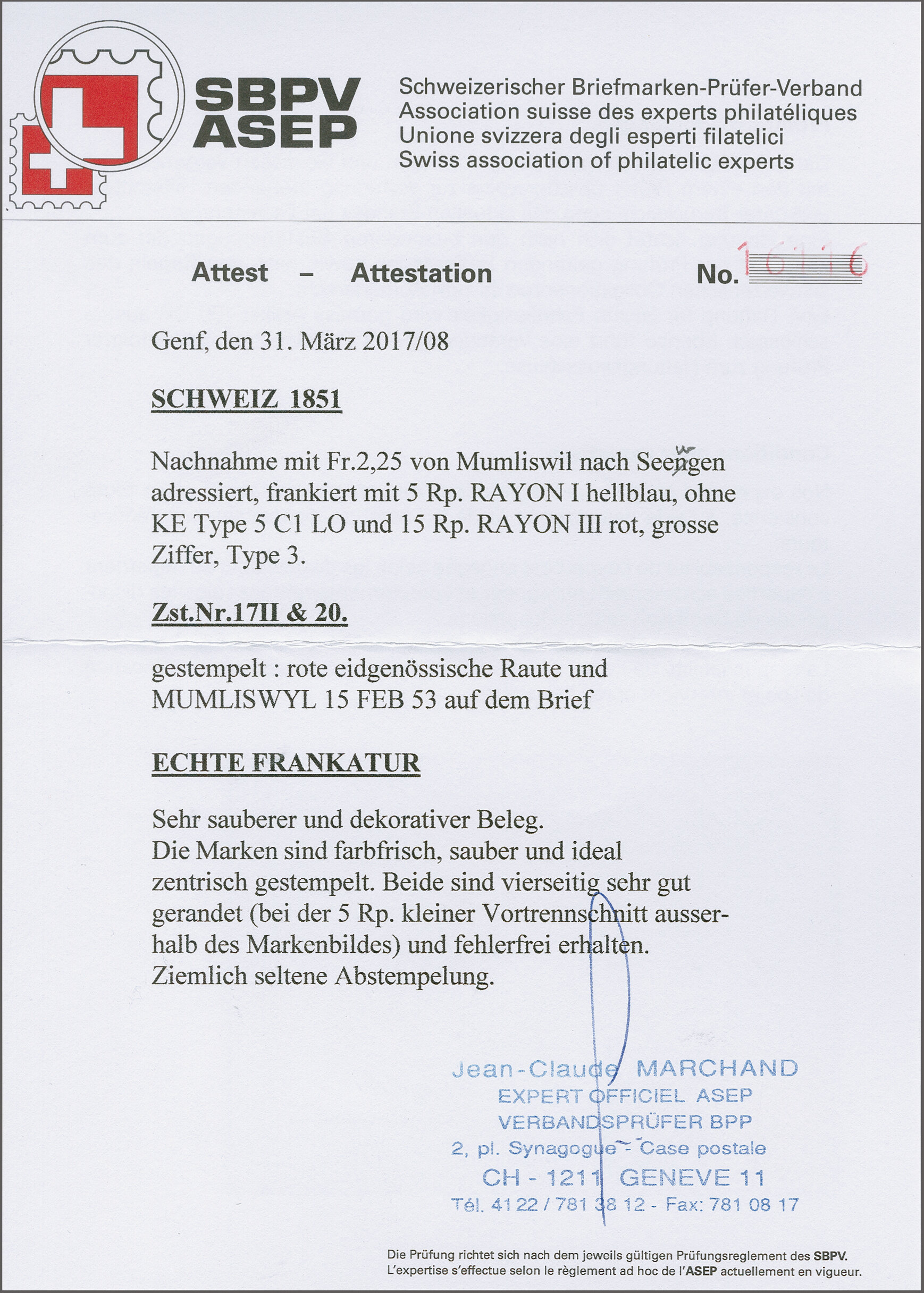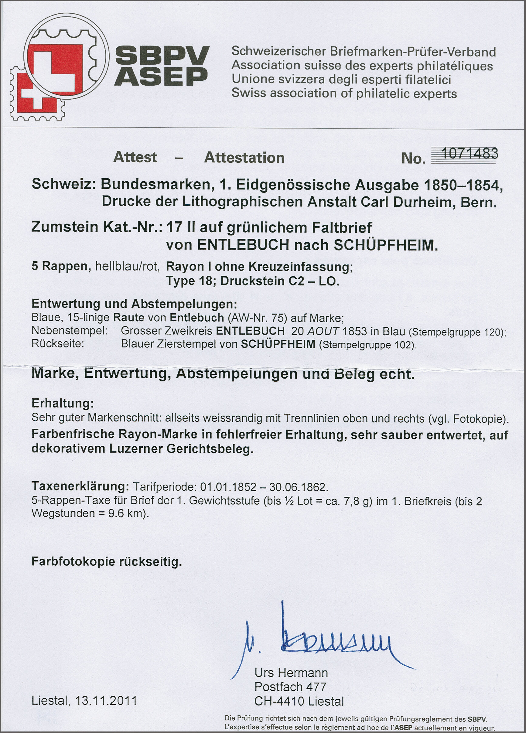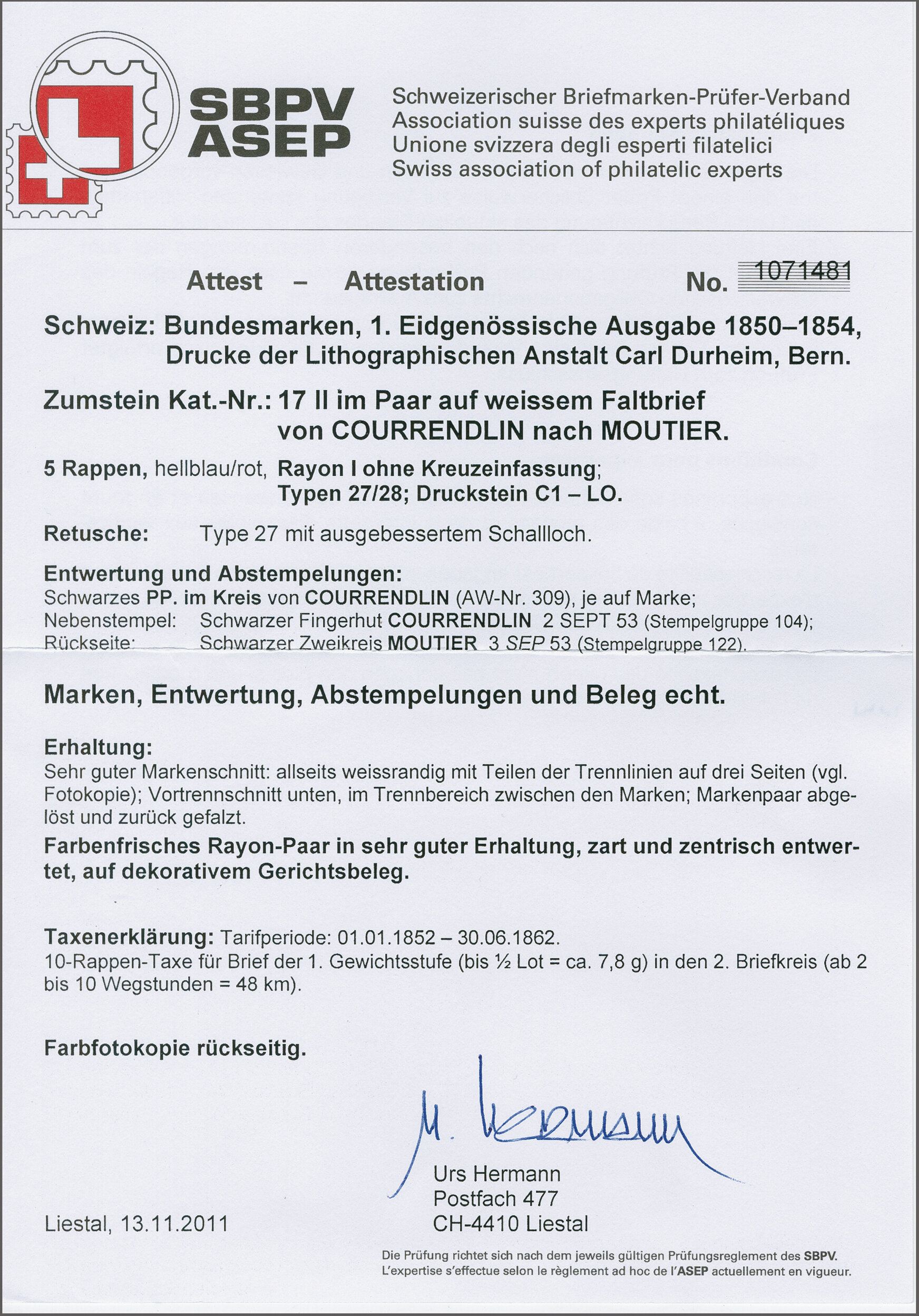 Eine seltene Jurassier Entwertung; Attest Hermann (2011). SBK=CHF 800. (Image 1)