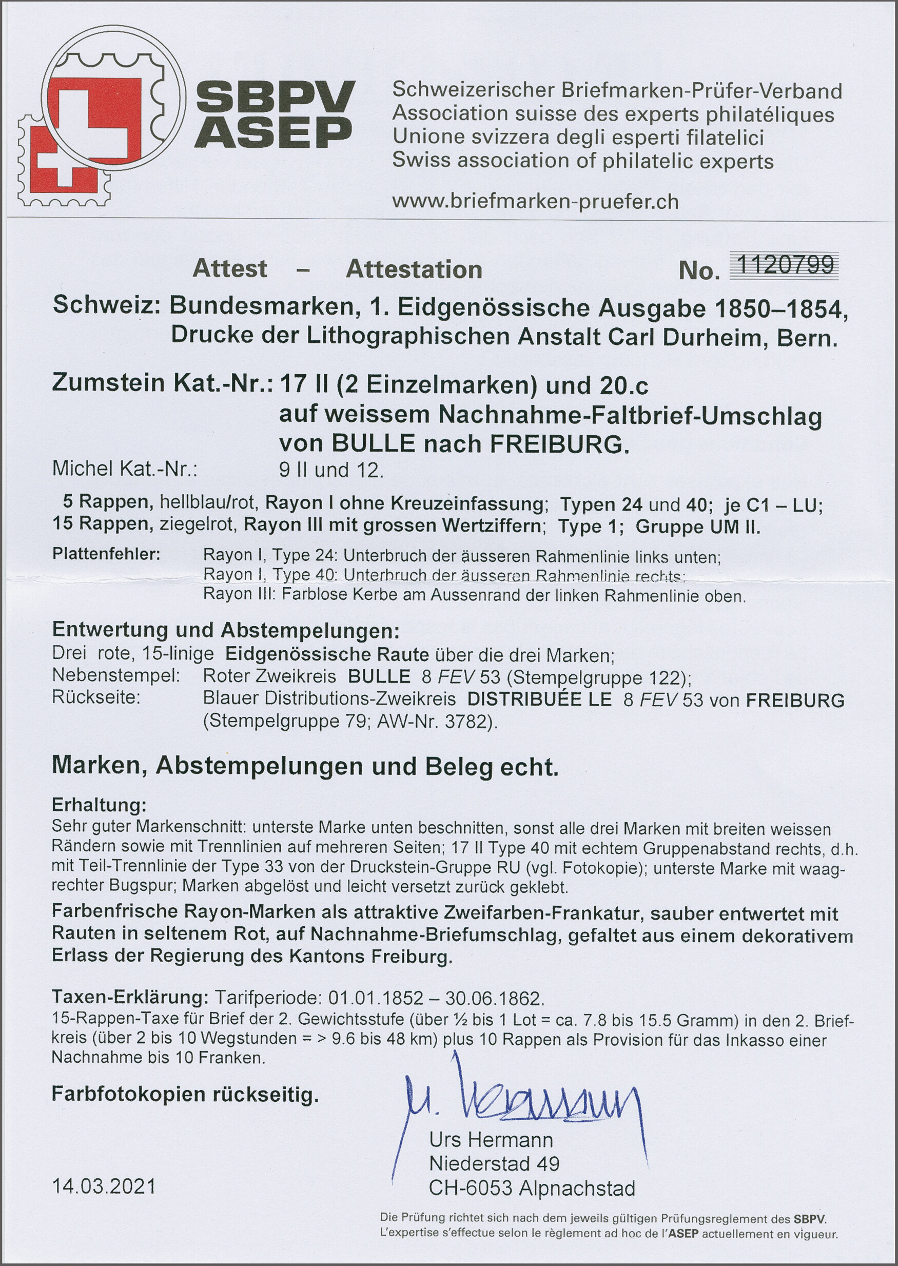 2. eidg. Tarif vom 1. Januar 1851. Ein Blickfang; Attest Hermann (2021). Anmerkung: Im Hinblick auf den dritten Dank- Buss- und Bettag seit Gründung des Bundesstaats ruft der Freiburger Regierungsrat seine Mitbürger auf: "Nous nous joindrons à tous