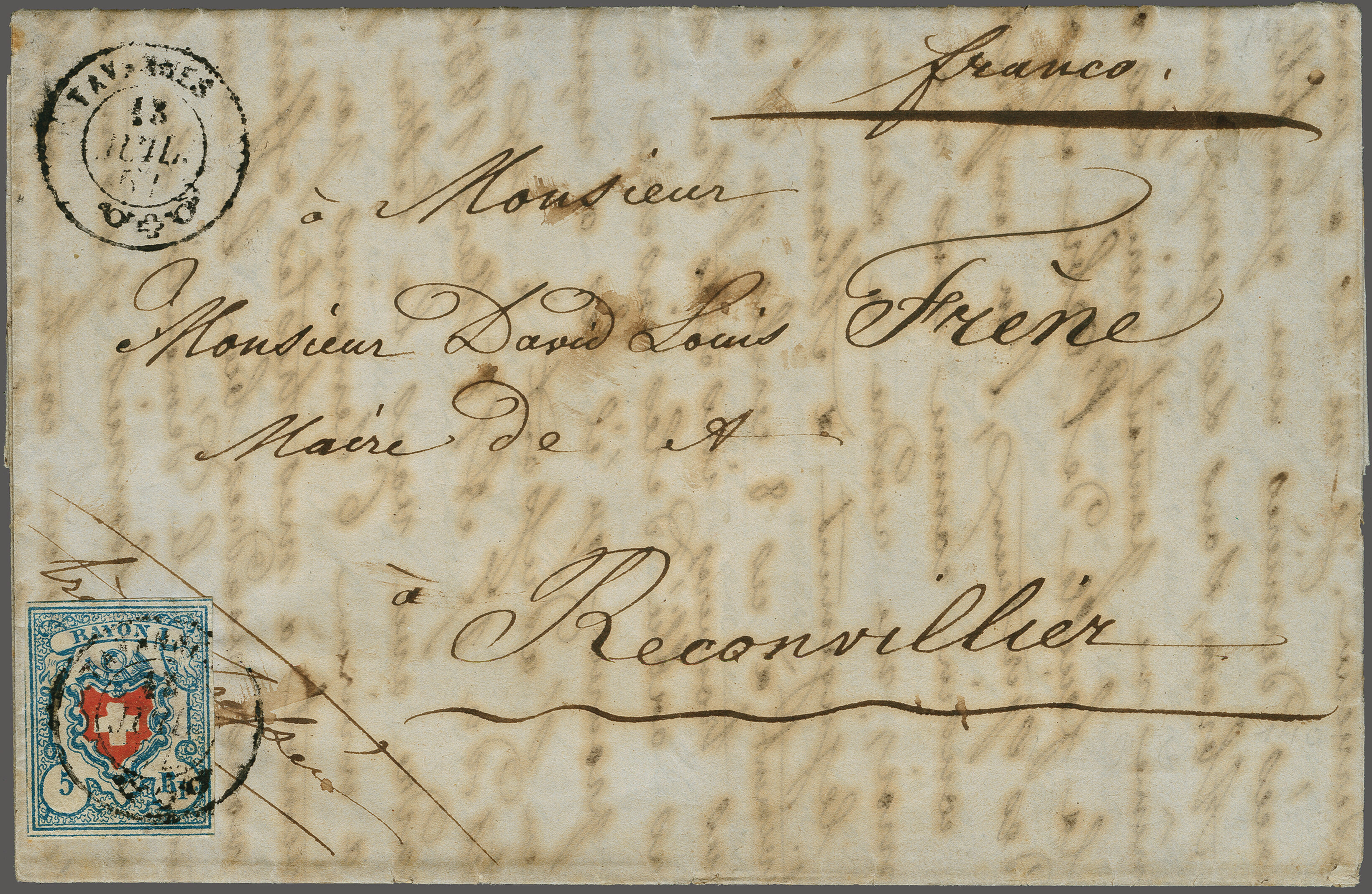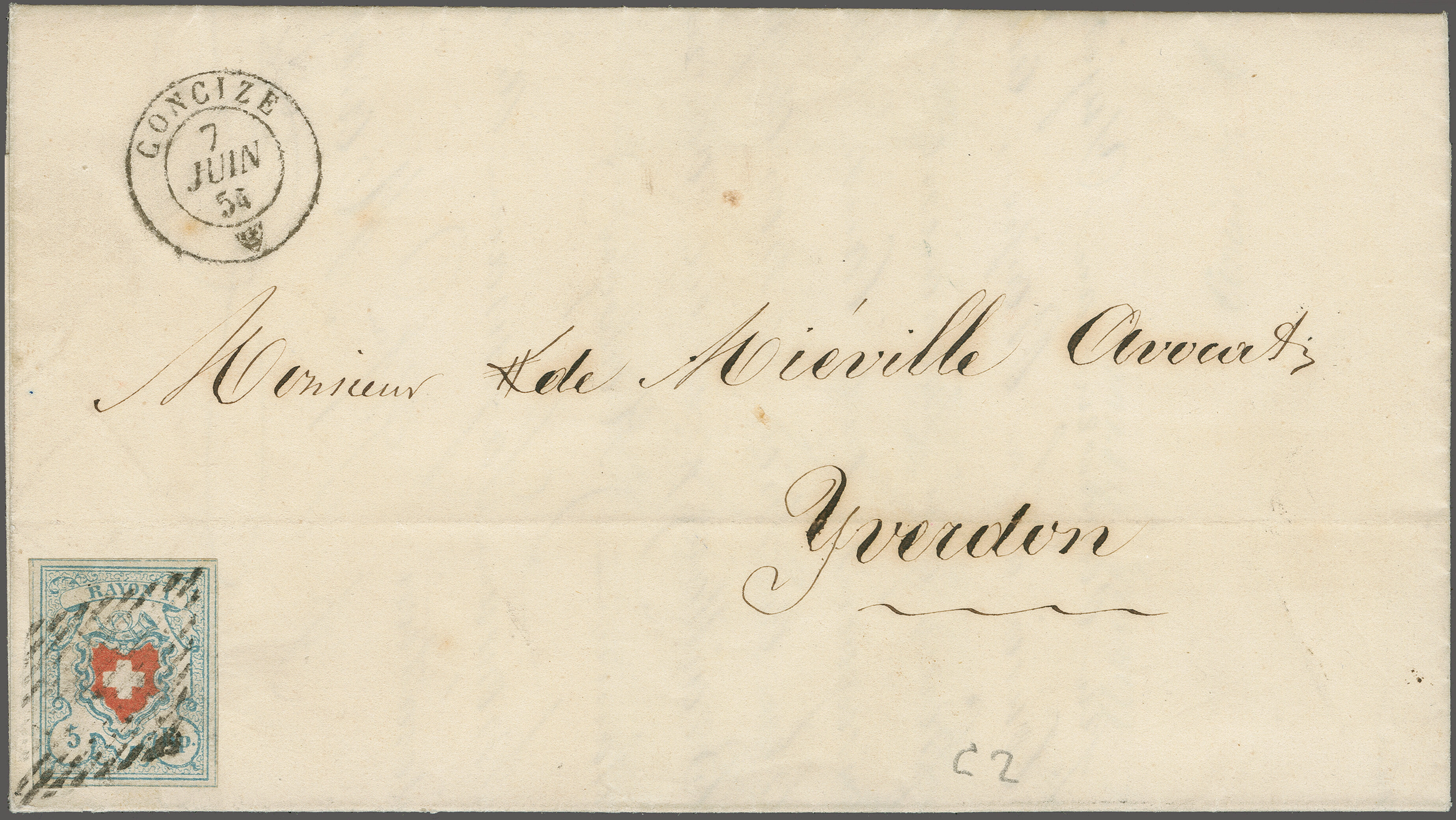 ein Mitglied der Waadtländer Anwaltsfamilie de Miéville in Yverdon. Rücks. Ankunftsstp. vom selben Tag. Signiert Abt, Attest Hermann (2022). (Image 1)