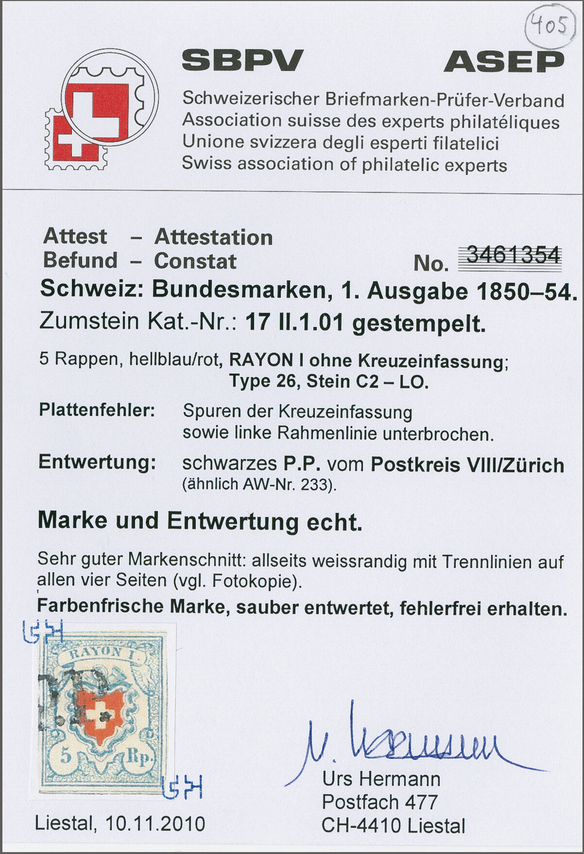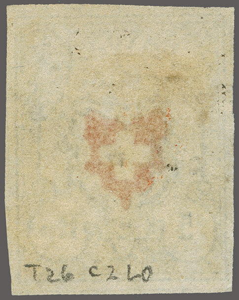 Stein C2: Type 26 l/o mit Spuren der Kreuzeinfassung, farbfr. und breit- bis überrandig, zart entw. mit schwarzem "P.P." des Postkreis Zürich (ähnl. AW 233). Attest Hermann (2010). (Image 1)