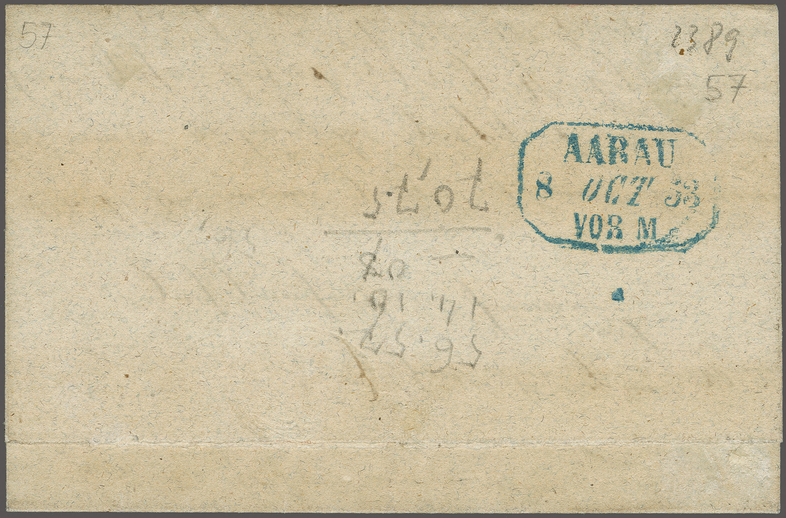 frischem und vollständigem Faltbrieflein datiert "Zeihen den 7ten Weinmonat 1853" und im 2. Briefkreis an den Verwalter des Aargauischen Kantonsarmenfonds in Aarau adressiert. Rücks. Ankunftsstp. vom Folgetag. (Image 1)