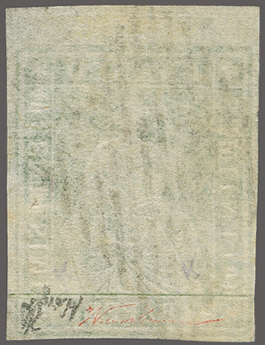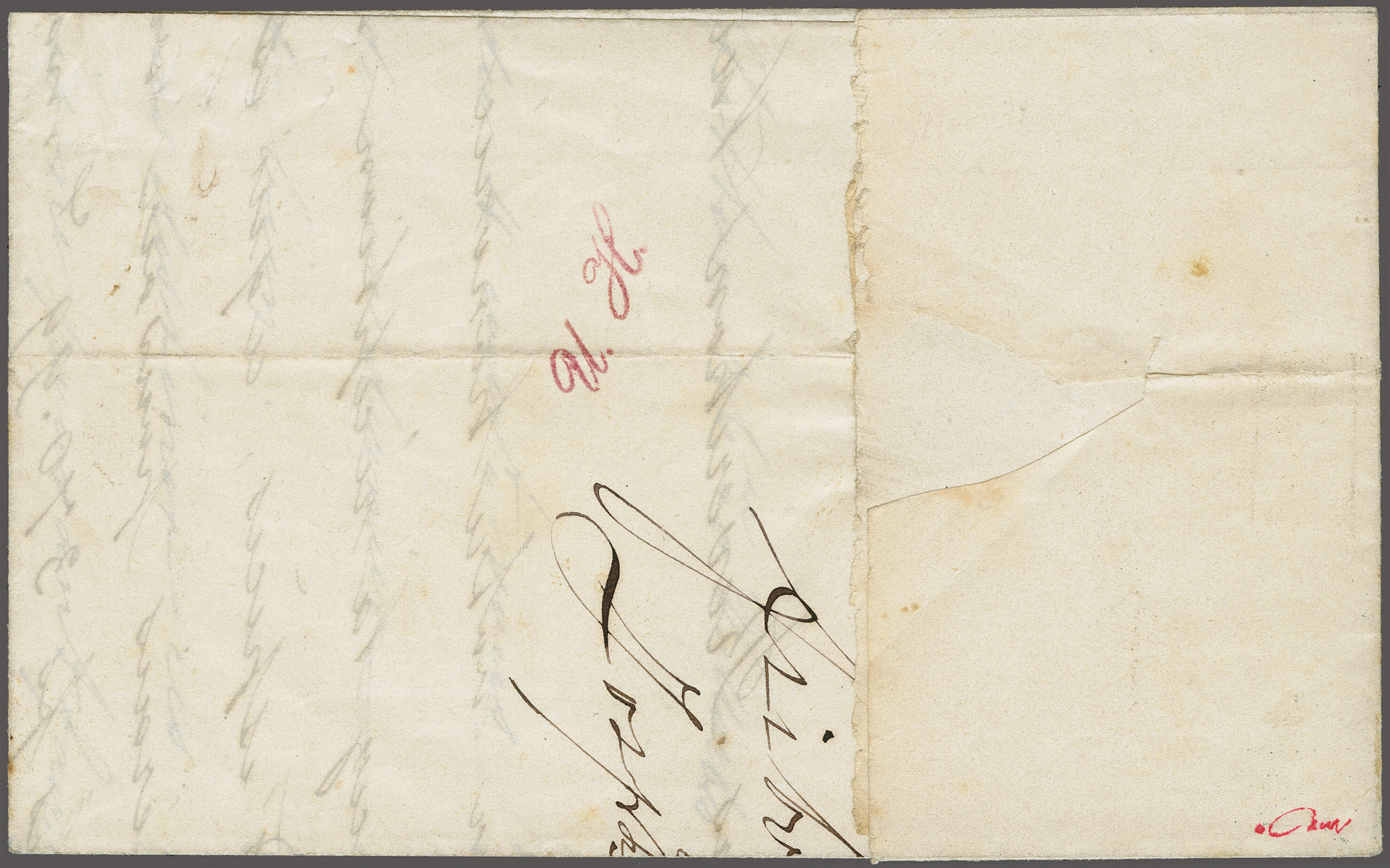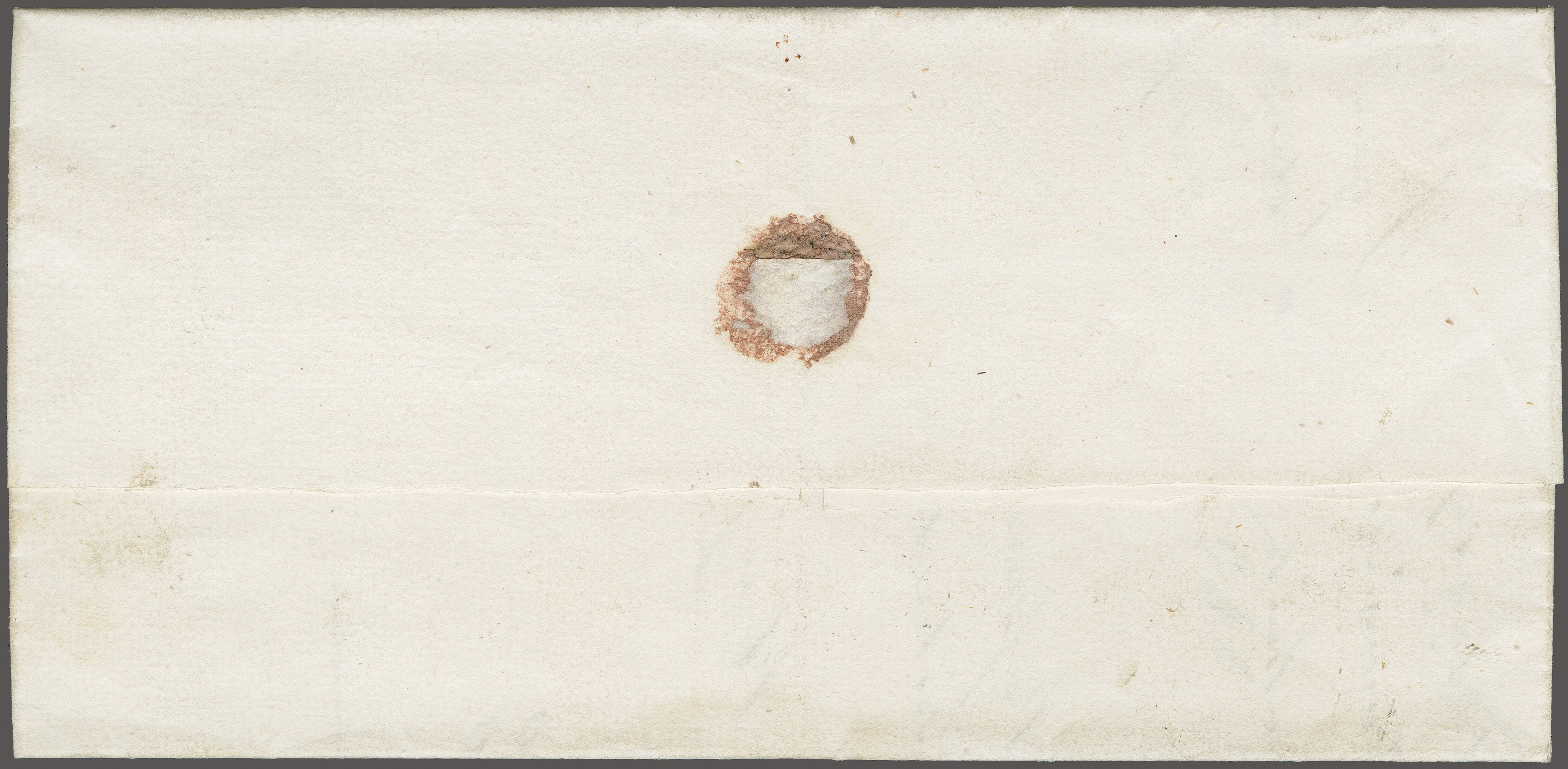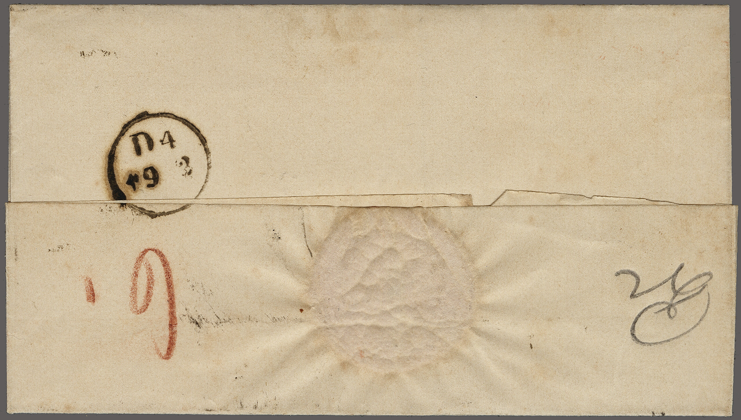 irrtümlich angebracht; die Vorausbezahlung des Portos über Alexandrien hinaus sollte erst 1857 möglich werden. Der erste bekannte frankierte Brief nach China überhaupt und eine spektakuläre Verwendung der Strubelausgabe in ihrer zweiten Woche; ein