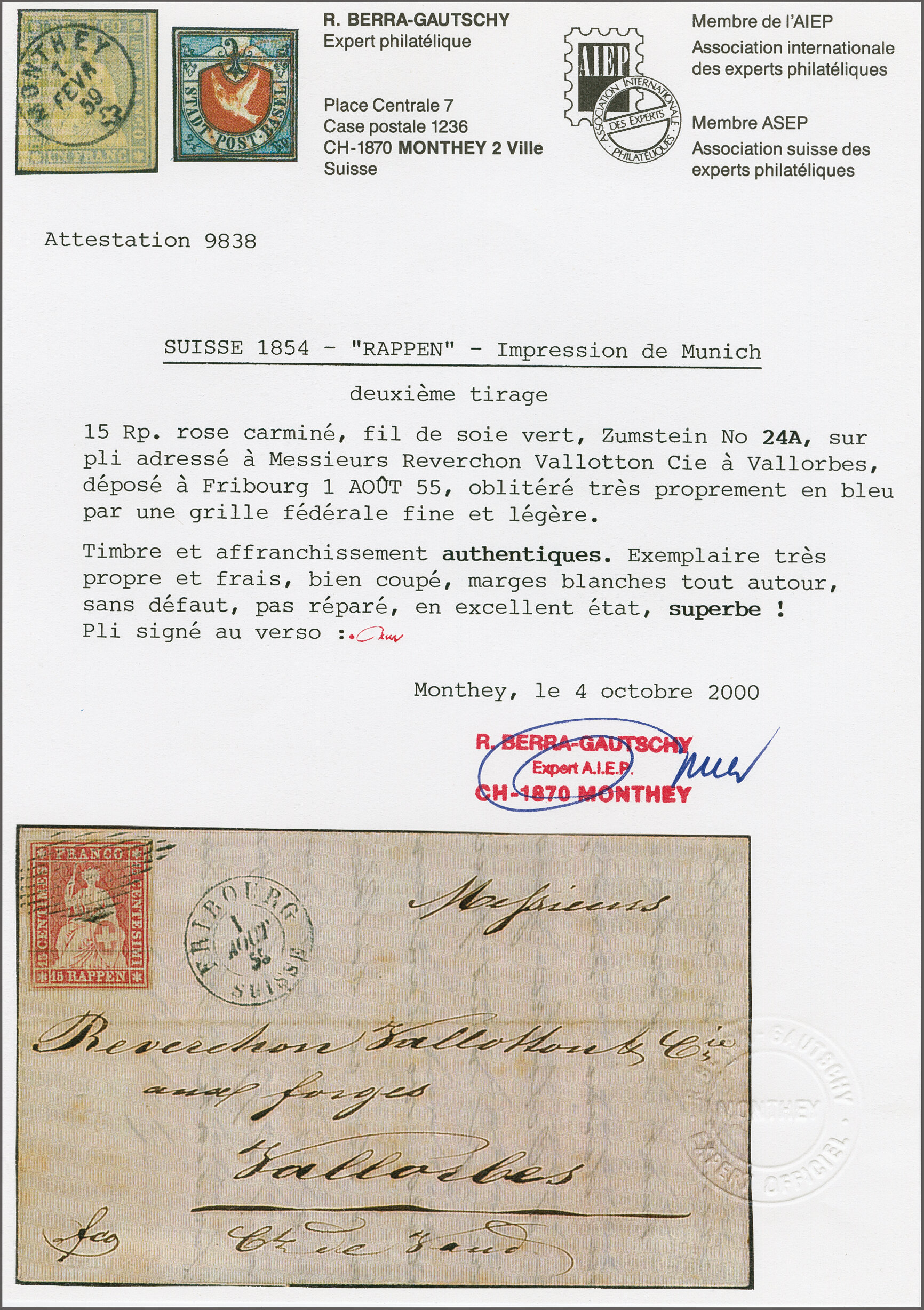 Faltbrief im 3. Briefkreis an die Eisenwerke Vallorbes. Attest Berra (2000). (Image 1)