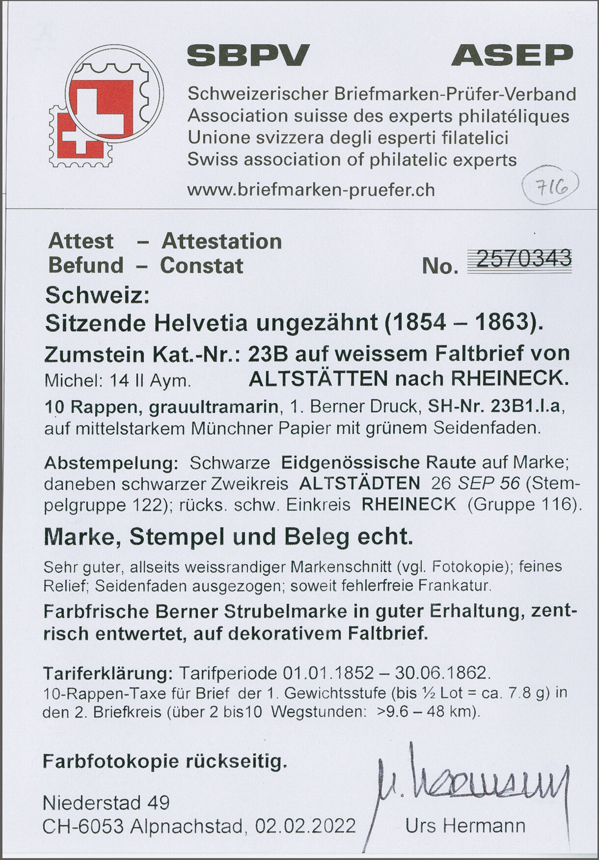 schweizerischen Briefrayon über Frankreich nach Grossbritannien, Attest Eichele (2022). (Image 1)