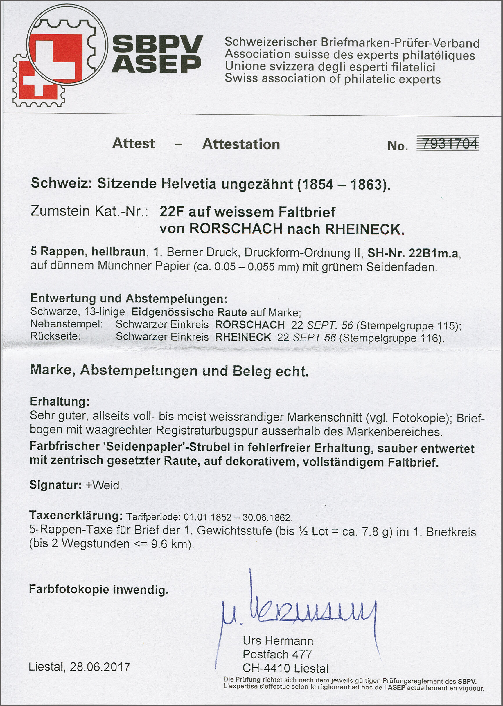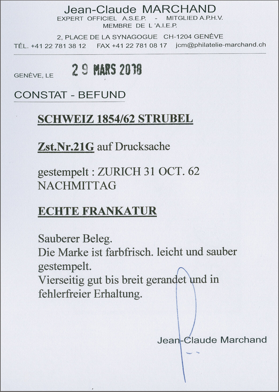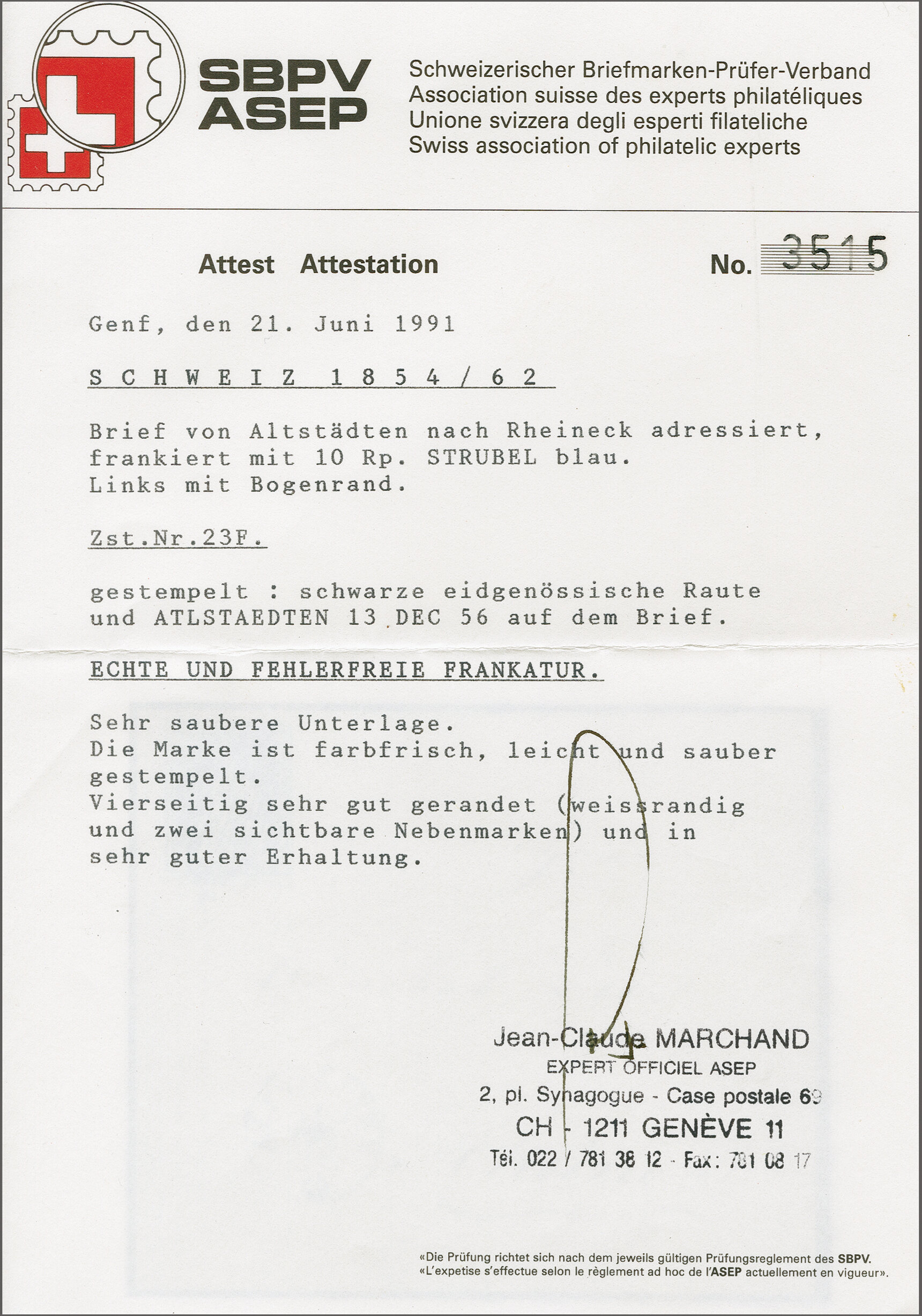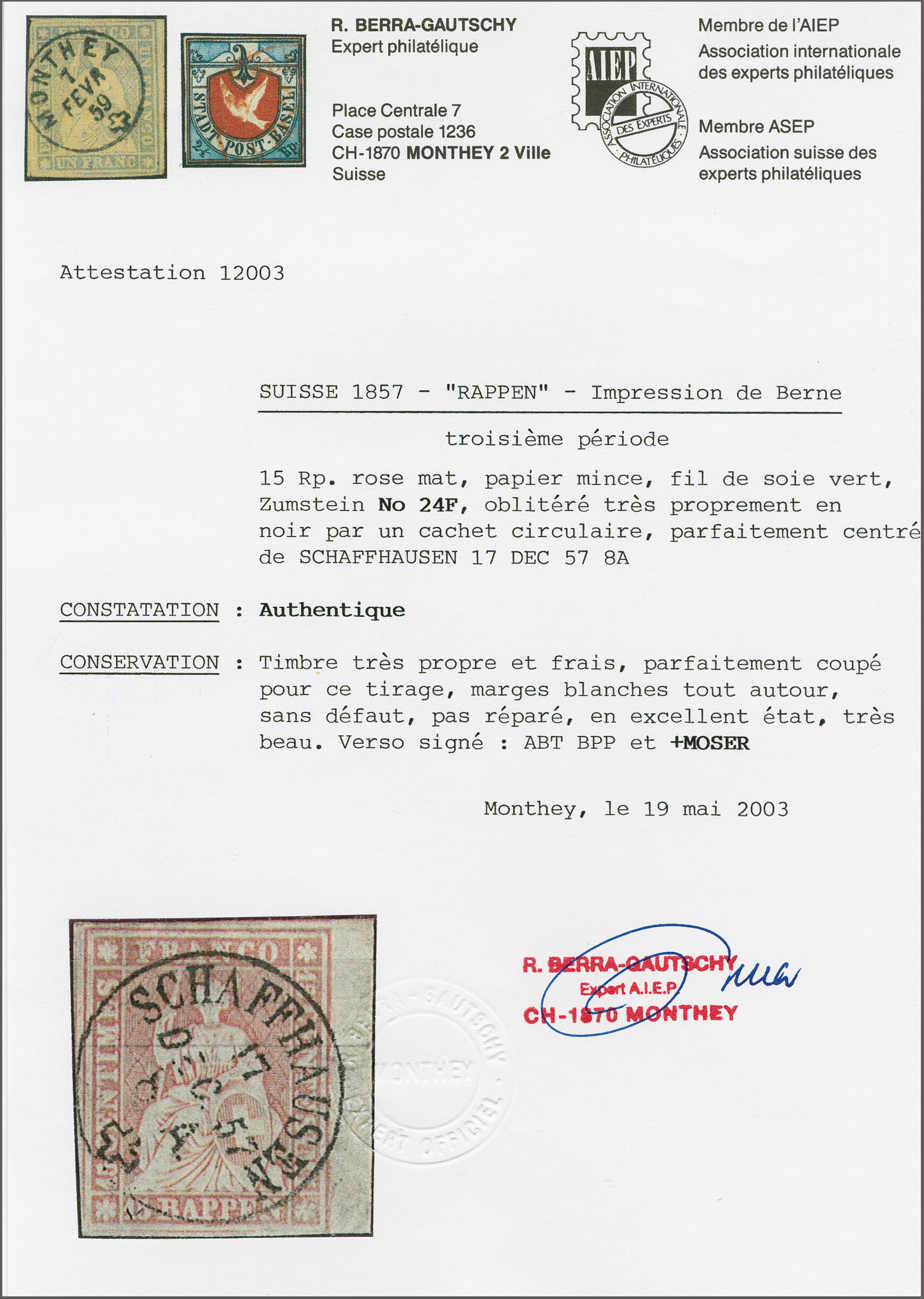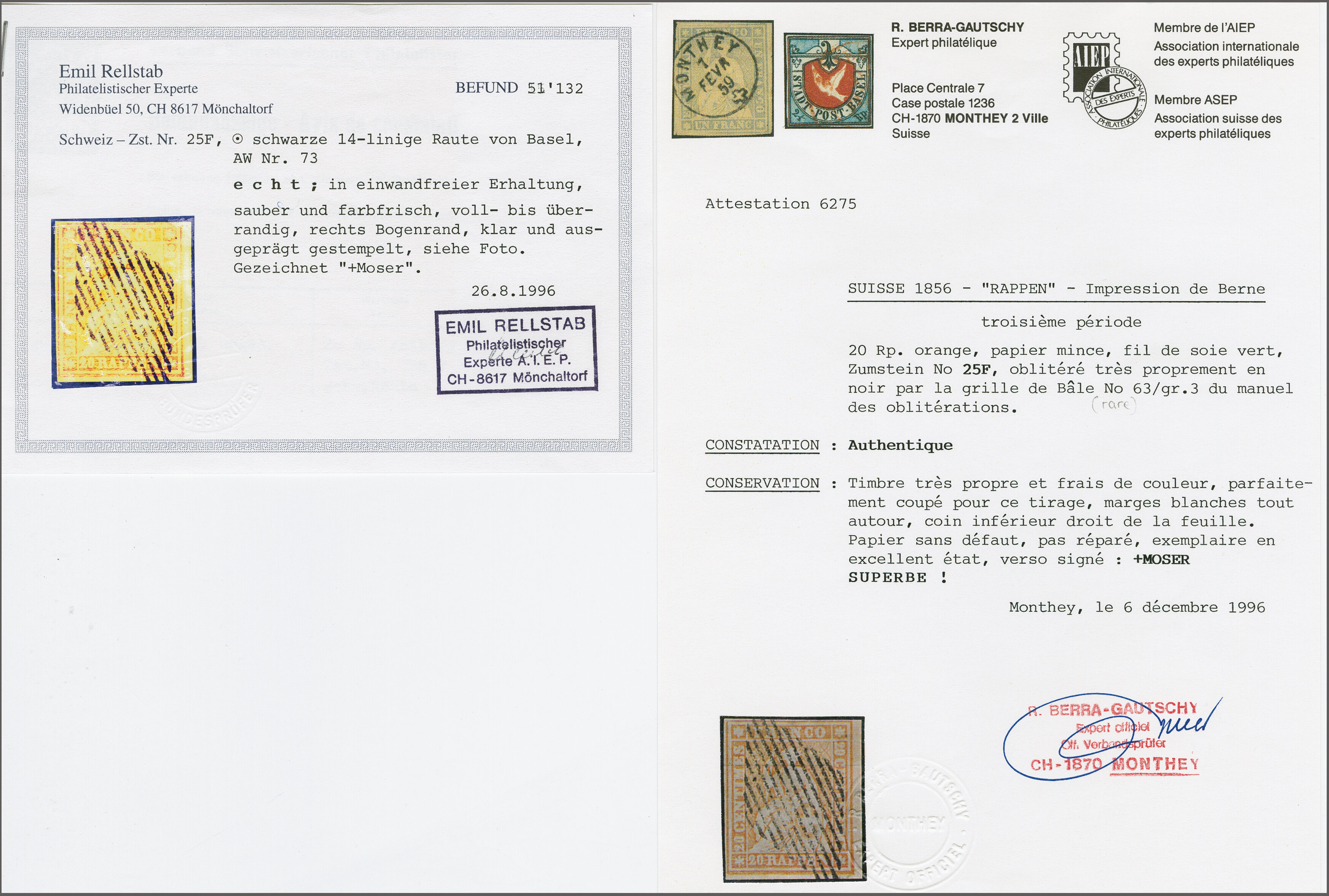 seltenen Entwertung; signiert Moser, Befund Rellstab (1996), Attest Berra (1996). (Image 1)