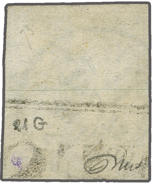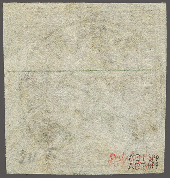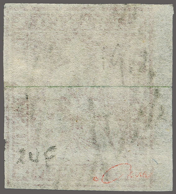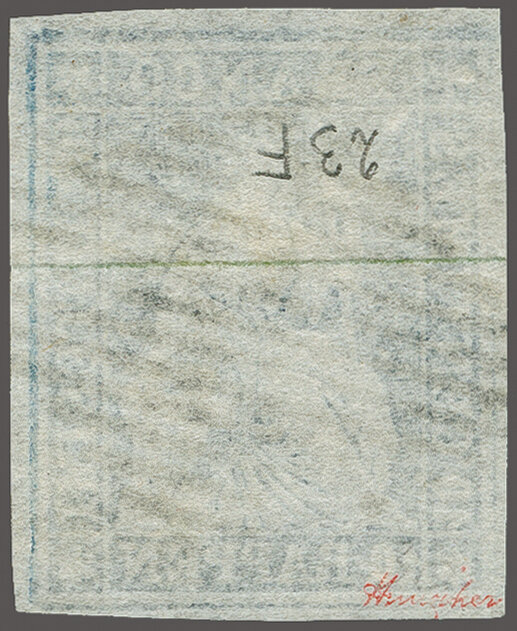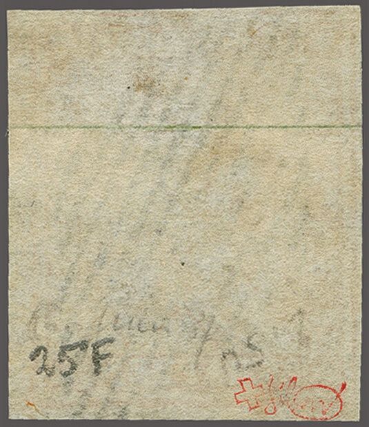 Spuren von Stempelfarbe in der rechten unteren Ecke, die ehemals doppelten Seidenfäden beide ausgefallen). In dieser Erhaltung eine seltene Marke; Atteste von der Weid (2011), Hermann (2025). SBK=CHF 4'500. (Image 1)