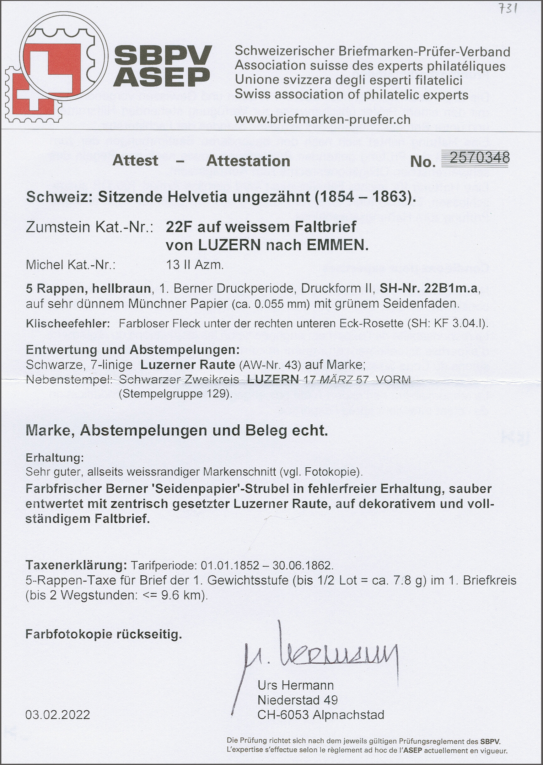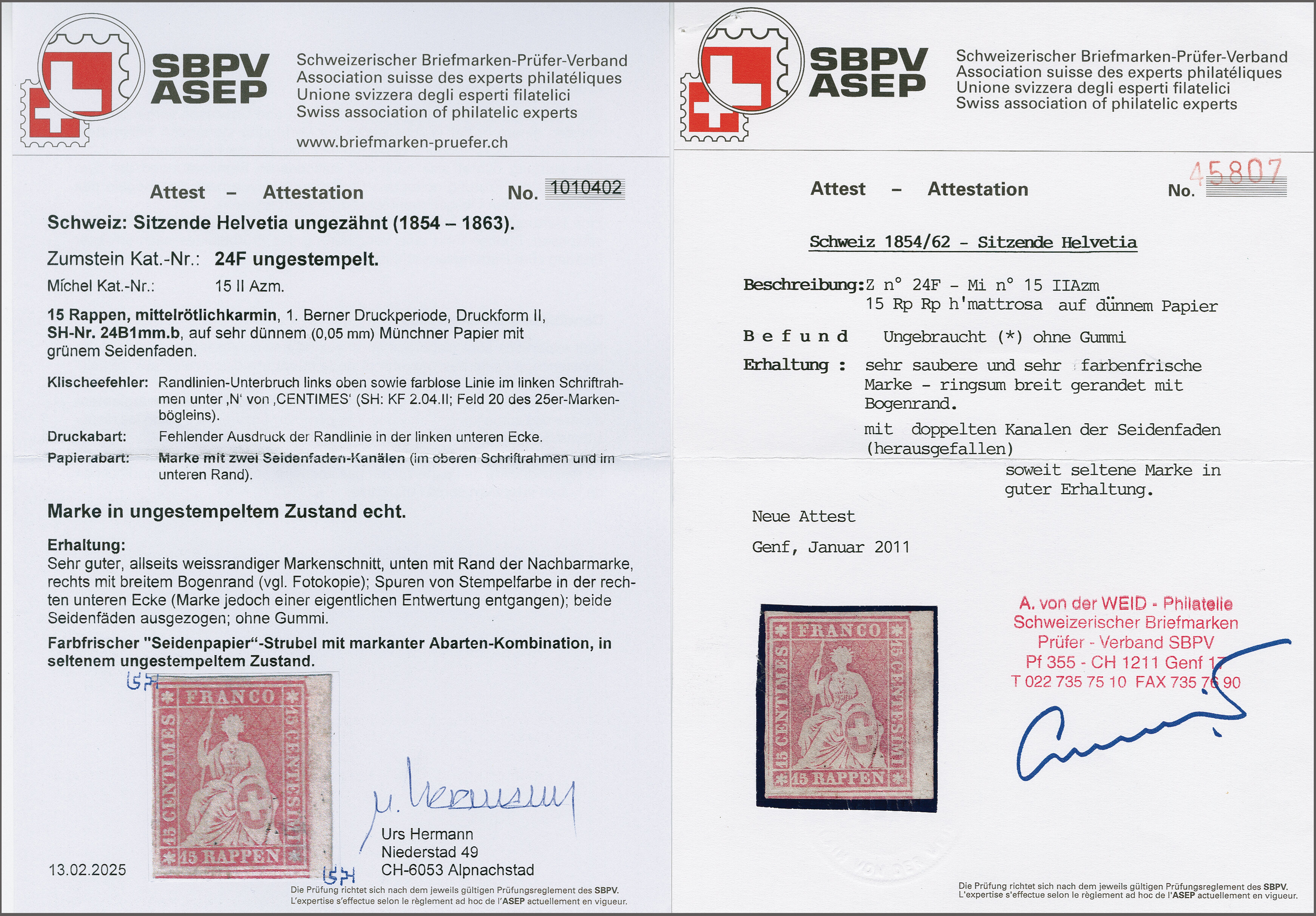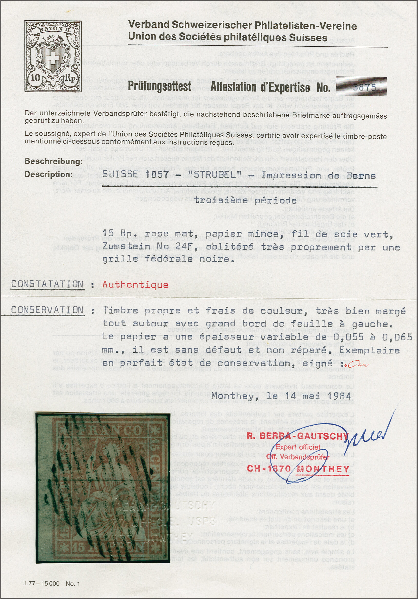 seltenen Seidenpapier-Strubel, Attest Hermann (2022) SBK = CHF 2'800. (Image 1)