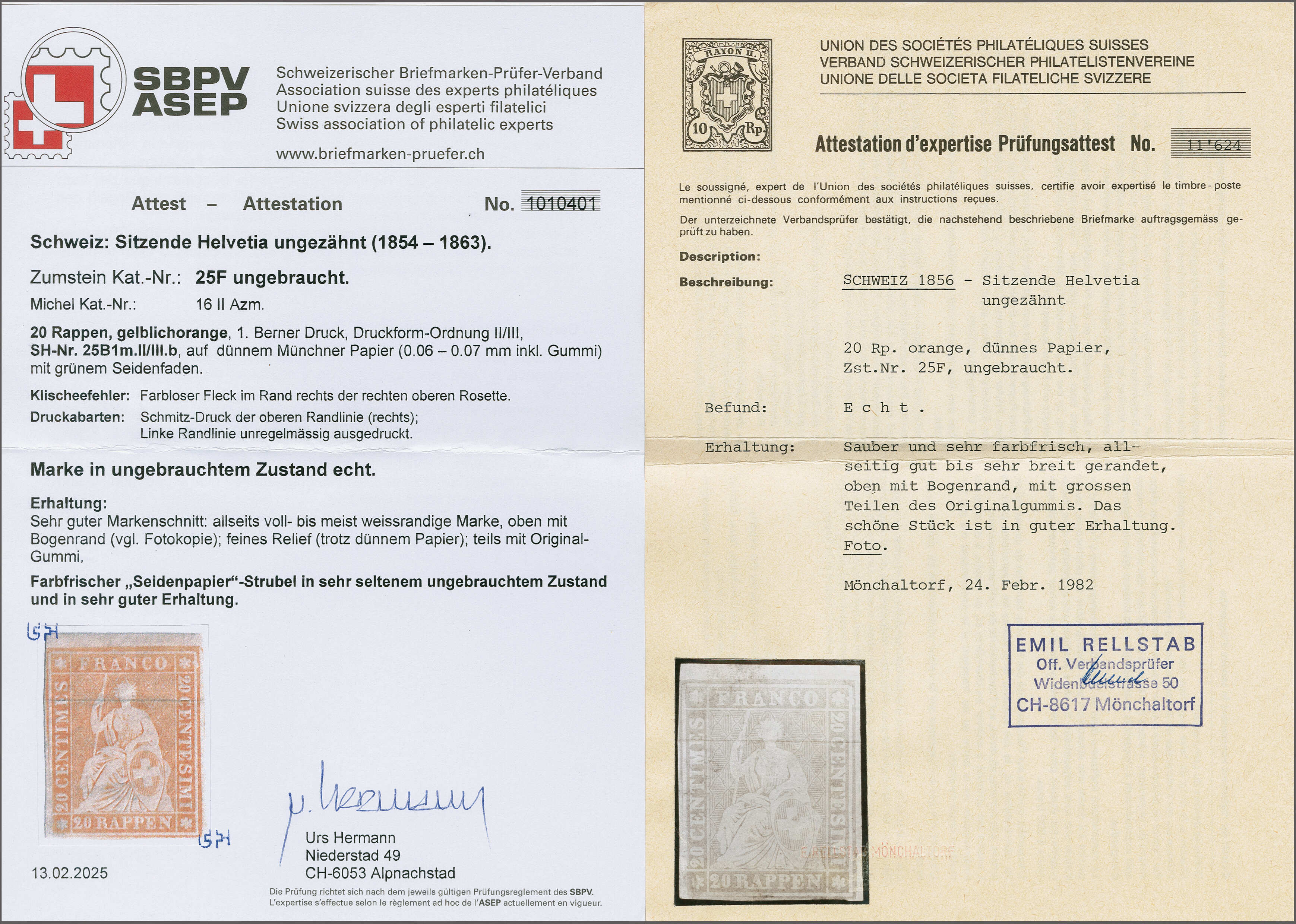 ansprechendes Exemplar dieser seltenen ungebrauchten Marke; Atteste Rellstab (1982) und Hermann (2025). SBK=CHF 5'500. (Image 1)