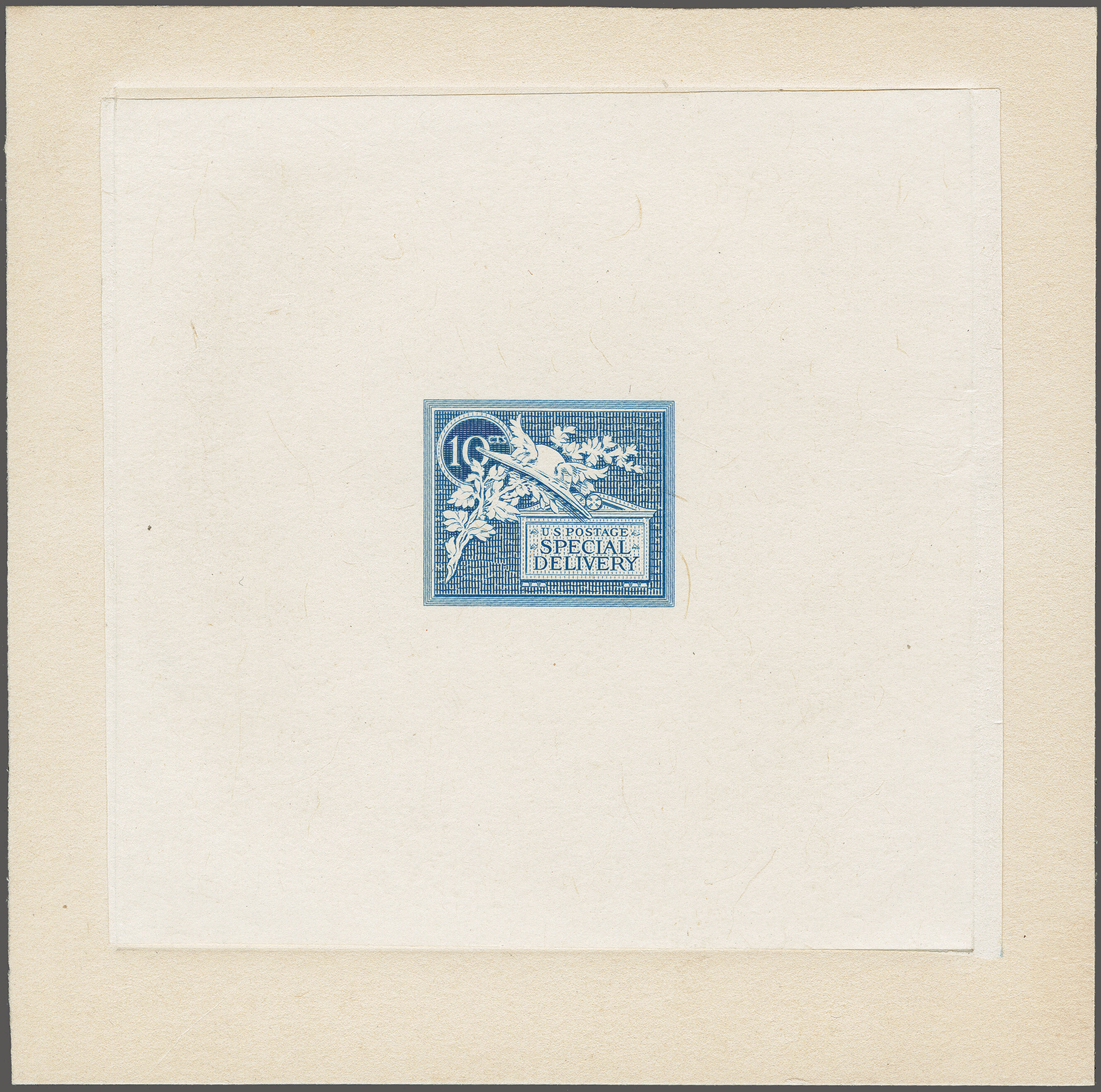 57 (*) image1922: 10 c. Grey Violet Issue 1922: 10 c. deep ultramarine, large die proof on India of the approved design, die sunk on full-size card, approximately 203x151mm, handwritten in blue "Approved June 20, 1922 / Postmaster General" and signed "Hubert Work" in black, blue Bureau "1160100" handstamp on reverse, an exceptional example of this approved design, one of two colours approved by the Postmaster General, fresh and extremely fine. (Image 1) (Image 2) (Image 3)