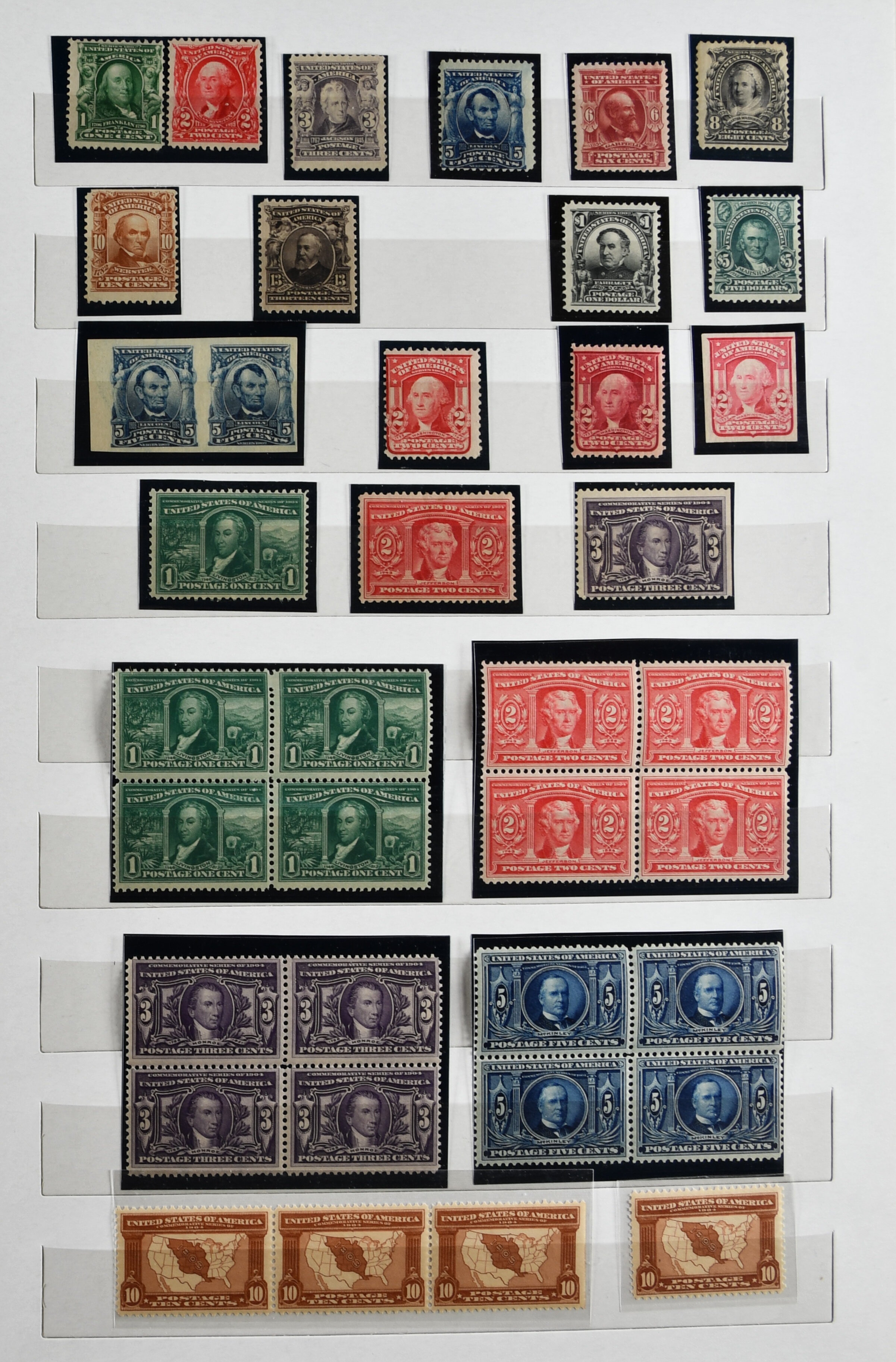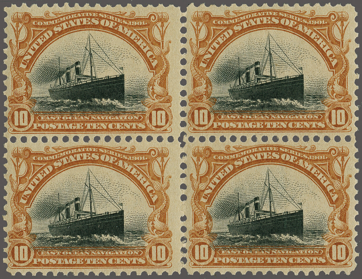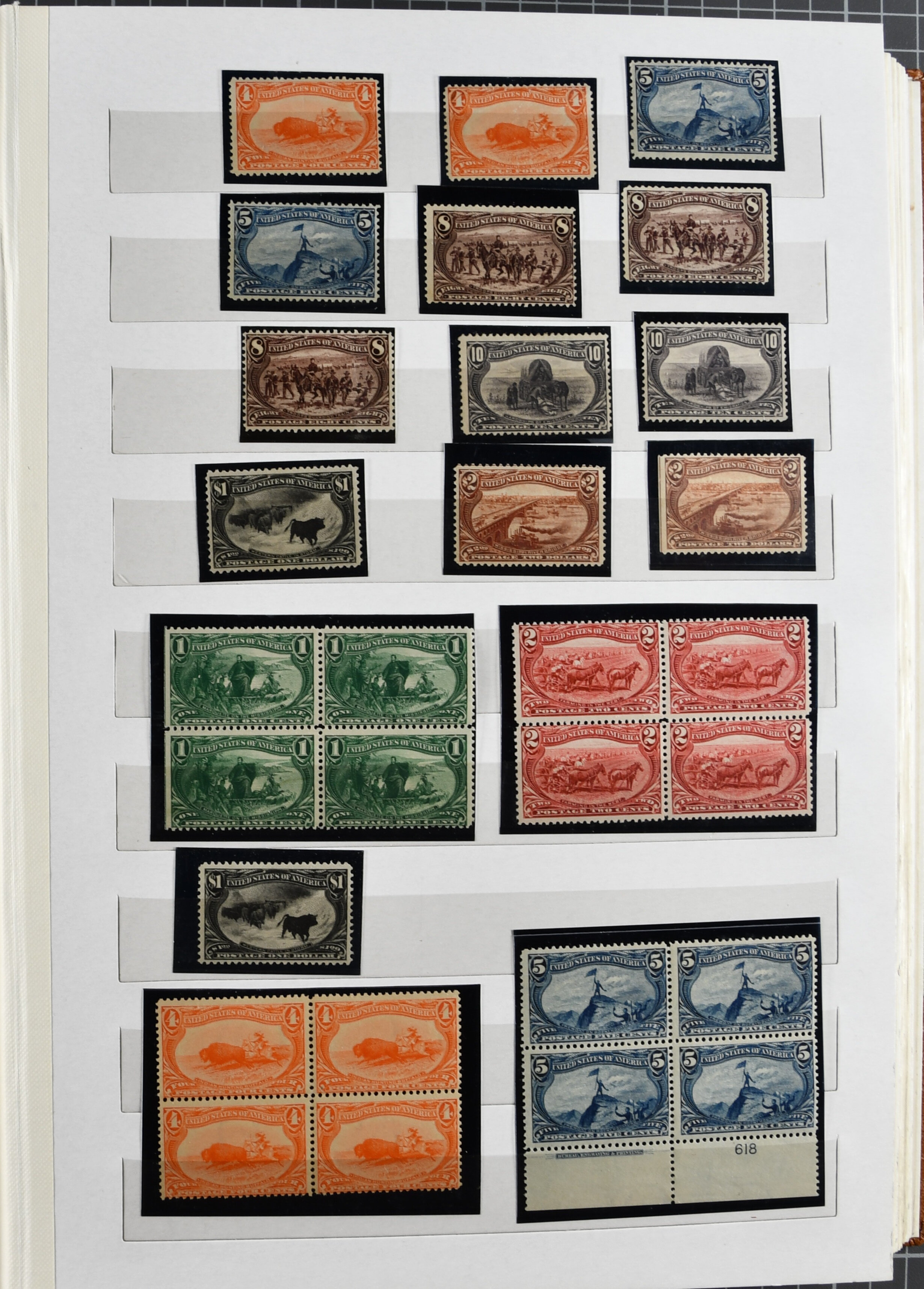 101 **/*/bof image1901 (May 1): Pan-American Exposition set of six values in unused blocks of four, all well centred and of fine fresh colour, the 4 c. deep red-brown & black large part og., the balance all fresh and fine, unmounted og. Scott = $ 3'200+. (Image 1) (Image 2)