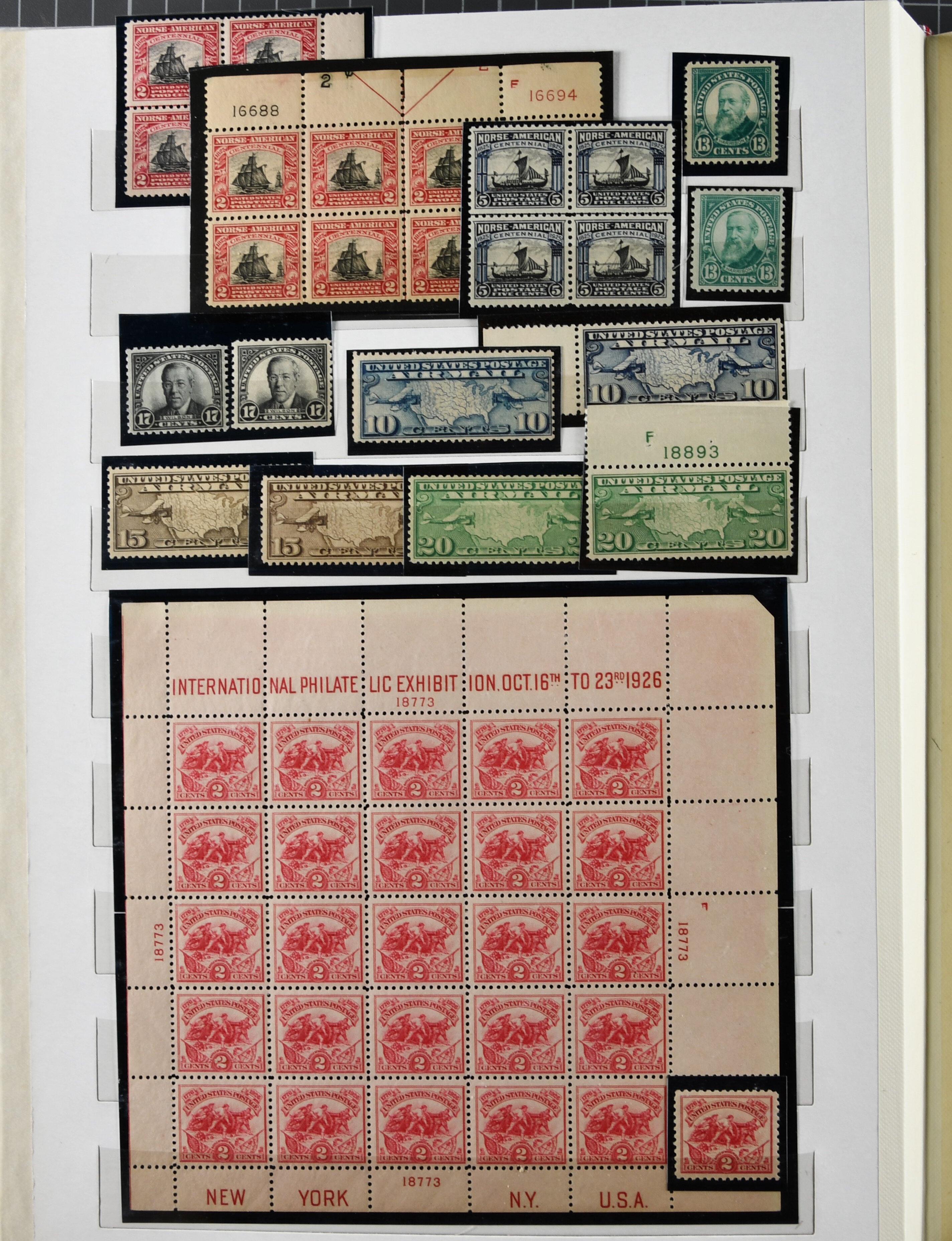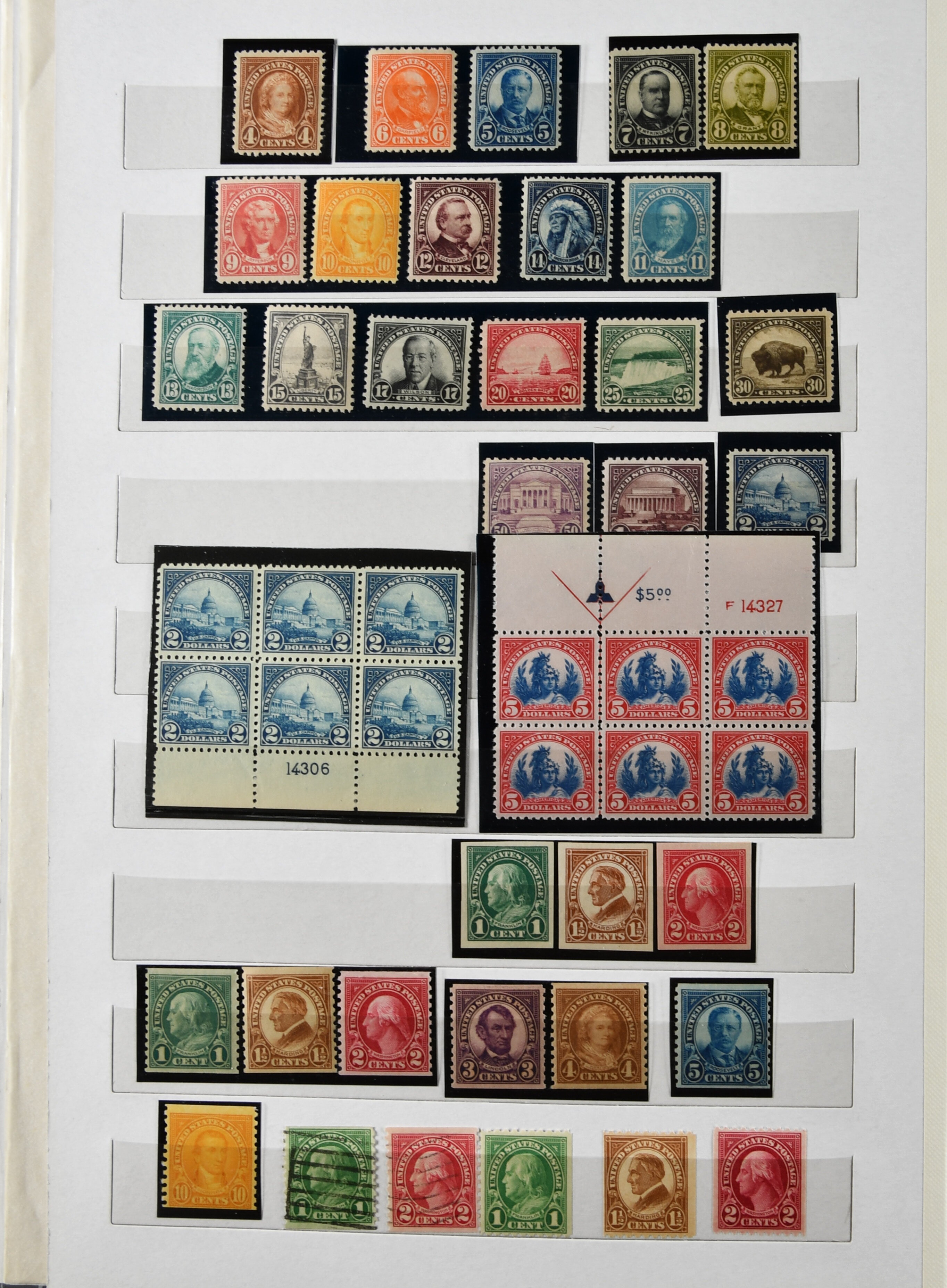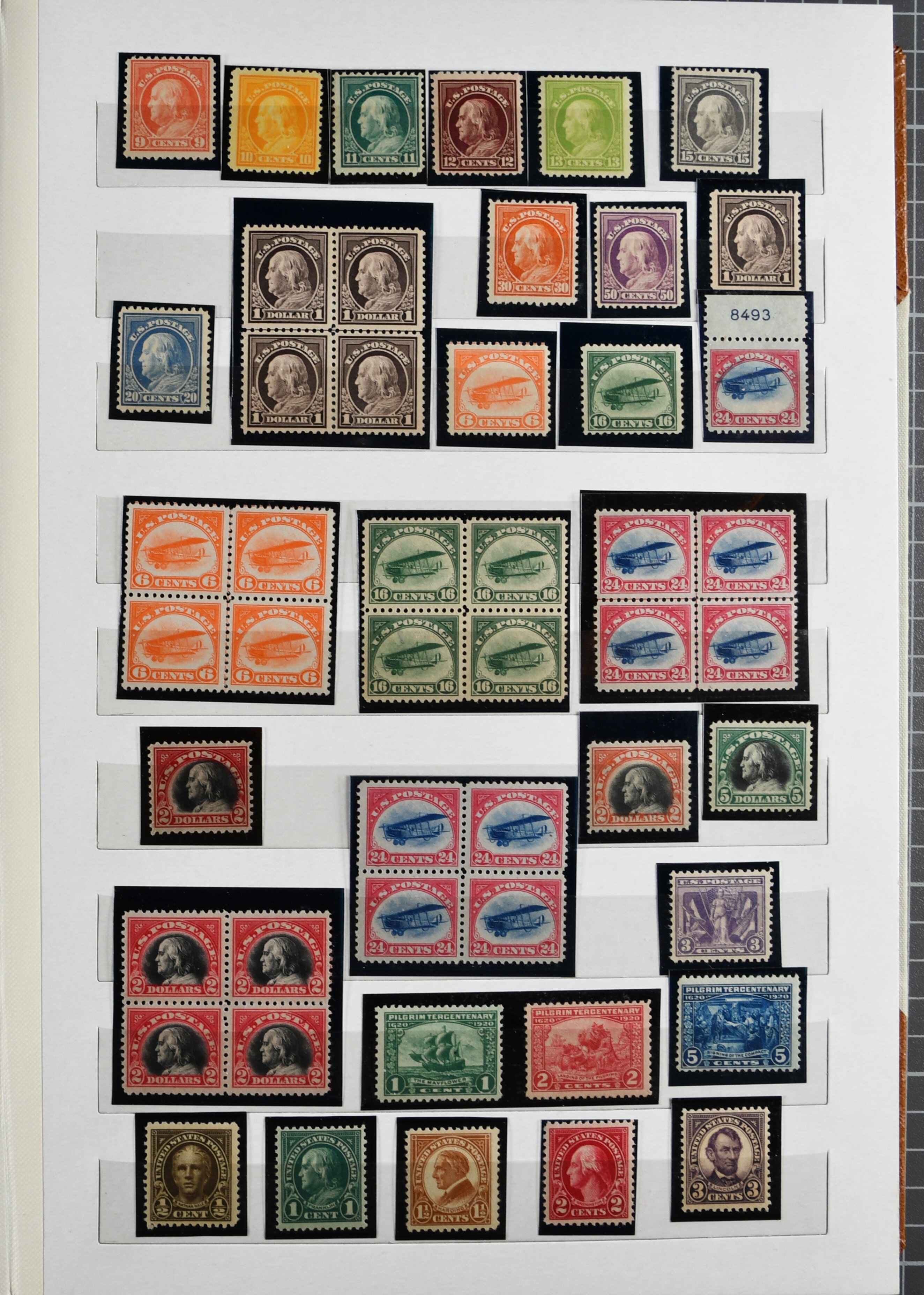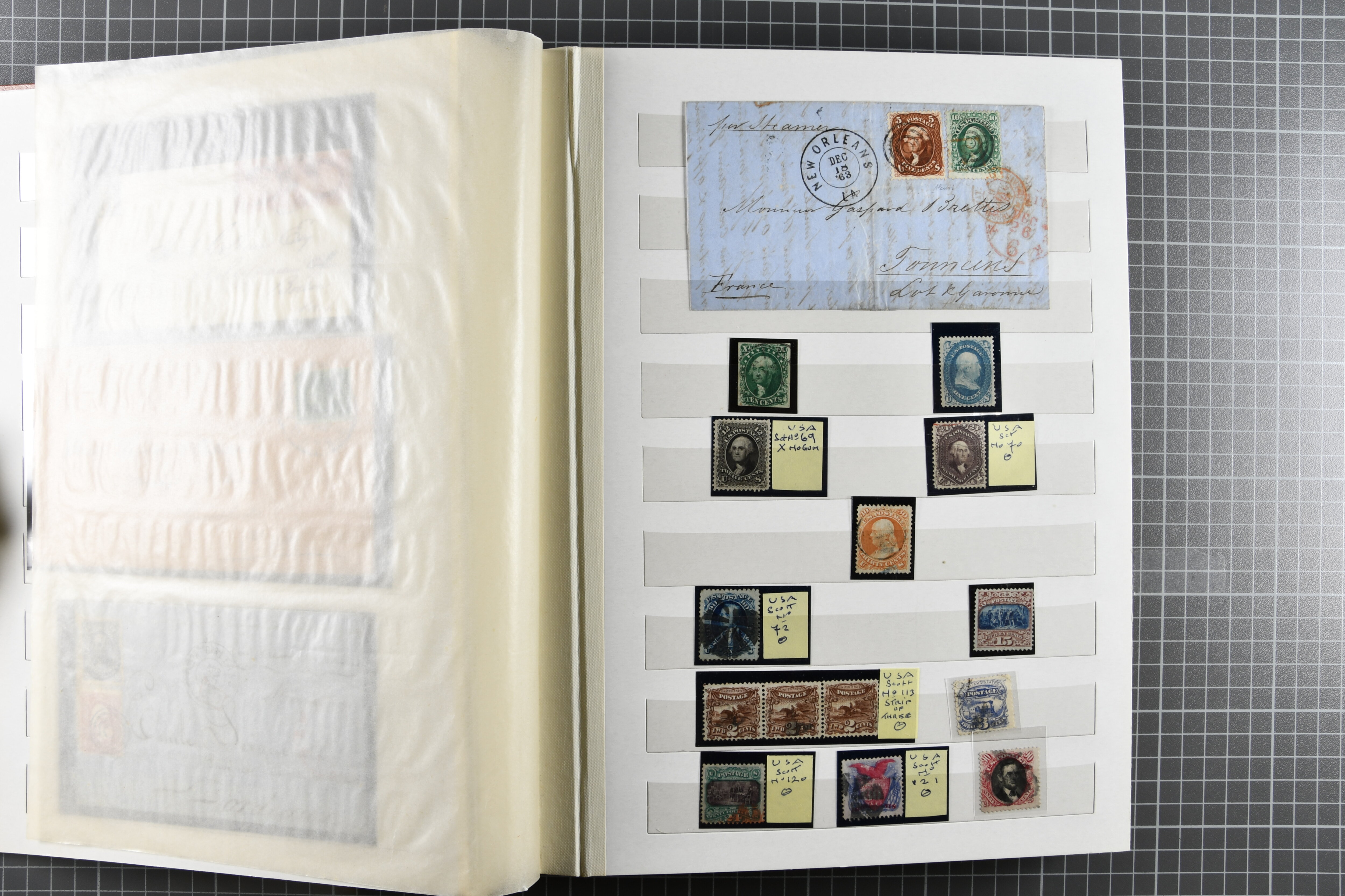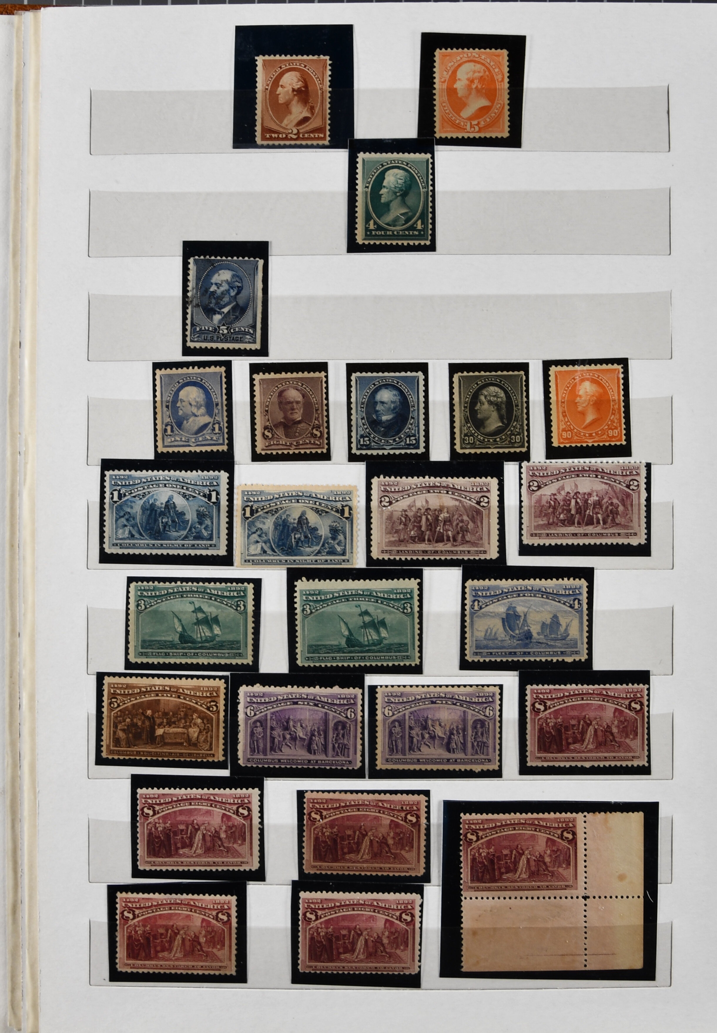 107 **/*/cover/bof imageLots & Collections, 1847/1997c.: Collection in three volumes with 1847 5 c. red-brown used, 1847 5 c. red-brown pair on cover from New York to Savannah; 1847 10 c. black used, 1861/62 3 c. and 12 c. used on 1863 cover from New Orleans to France, 1861/62 5 c. brown and 10 c. green used on 1863 cover from New Orleans to France; 1861 1 c. blue unused, 12 c. black unused, 90 c. blue used; 1869 2 c. brown used strip of three, 15 c. blue & brown Type II unused, 24 c. green & violet used, 30 c. ultramarine & carmine used, Lincoln 90 c. carmine & black used; 1890/93 definitive incl. 15 c., 30 c. and 90 c. orange unused, fantastic array of 1893 Columbus Issue with set incl. duplication to 50 c. unused, and $ 2, $ 3 and $ 4 unused and a used $ 2; Columbus 1893 issue in unused blocks of four: 1 c., 2 c., 3 c., 4 c., 5 c., 6 c. blocks (4, one sheet marginal); 8 c., 10 c. in marginal block of six, 15 c., 50 c., $ 1 corner marginal block, $ 4 corner marginal block and $ 5 in a corner marginal block; 1894 definitive issue set of thirteen to Marshall $ 5 green unused incl. additional 50 c.; 1898 Trans-Mississippi set of nine unused with some duplication incl. additional $ 1 black and $ 2 orange-brown; Trans-Mississippi multiples with blocks of four 1 c., 2 c., 4 c., 5 c. marginal block, 8 c. marginal block and 10 c., pairs of 10 c. and 50 c. sage green; 1901 Pan-American set of six unused; 1902/03 definitive set to 13 c. unused plus $ 1 and $ 5 unused, 1906 Lincoln 5 c. imperf. pair unused, 1904 Louisiana set of five unused (4 sets), 1907 Jamestown set of three with 1 c. block of four, 2 c. in blocks of four and six (both sheet marginal) and 5 c. block of six unused; 1908/09 $ 1 violet-brown unused, 1912/16 set of 16 values to $ 1 unused, 1915 Panama-Pacific 10 c. orange unused; 1917 no wmk Madison $ 2 blue and Marshall $ 5 green unused, Marshall $ 5 green unused block of four; 1916/17 $ 1 violet-brown block of four unused, 1918 $ 2 orange-red and $ 5 green & black unused, 1918 Curtis Jenny set of three in unused blocks of four with additional 24 c. block; 1920 $ 2 carmine & black block of four unused, 1922/25 unused set with $ 2 and $ 5 values in blocks of six unused; 1923 Airmail 8 c. and 24 c. in unused blocks of four; 1926 Philatelic Exhibition sheets unused (2); 1929 Kansas and Nebraska overprint sets of 11 unused, 1930 Zeppelin set of three unused; 1933 Zeppelin 50 c. green unused (2), 1938 Prexies with $ 5 centreline block of four unused, thereafter seemingly complete unused to circa 1996 incl. range of Special Delivery issues. An outstanding collection (28 certificates) with careful viewing recommended Scott = $ 70'000+. (Image 1) (Image 2) (Image 3) (Image 4) (Image 5) (Image 6) (Image 7) (Image 8) (Image 9) (Image 10) (Image 11) (Image 12) (Image 13) (Image 14) (Image 15) (Image 16) (Image 17) (Image 18) (Image 19) (Image 20) (Image 21) (Image 22) (Image 23) (Image 24) (Image 25) (Image 26) (Image 27) (Image 28) (Image 29) (Image 30) (Image 31) (Image 32) (Image 33) (Image 34) (Image 35) (Image 36) (Image 37) (Image 38) (Image 39) (Image 40) (Image 41) (Image 42) (Image 43) (Image 44) (Image 45) (Image 46) (Image 47) (Image 48) (Image 49) (Image 50)