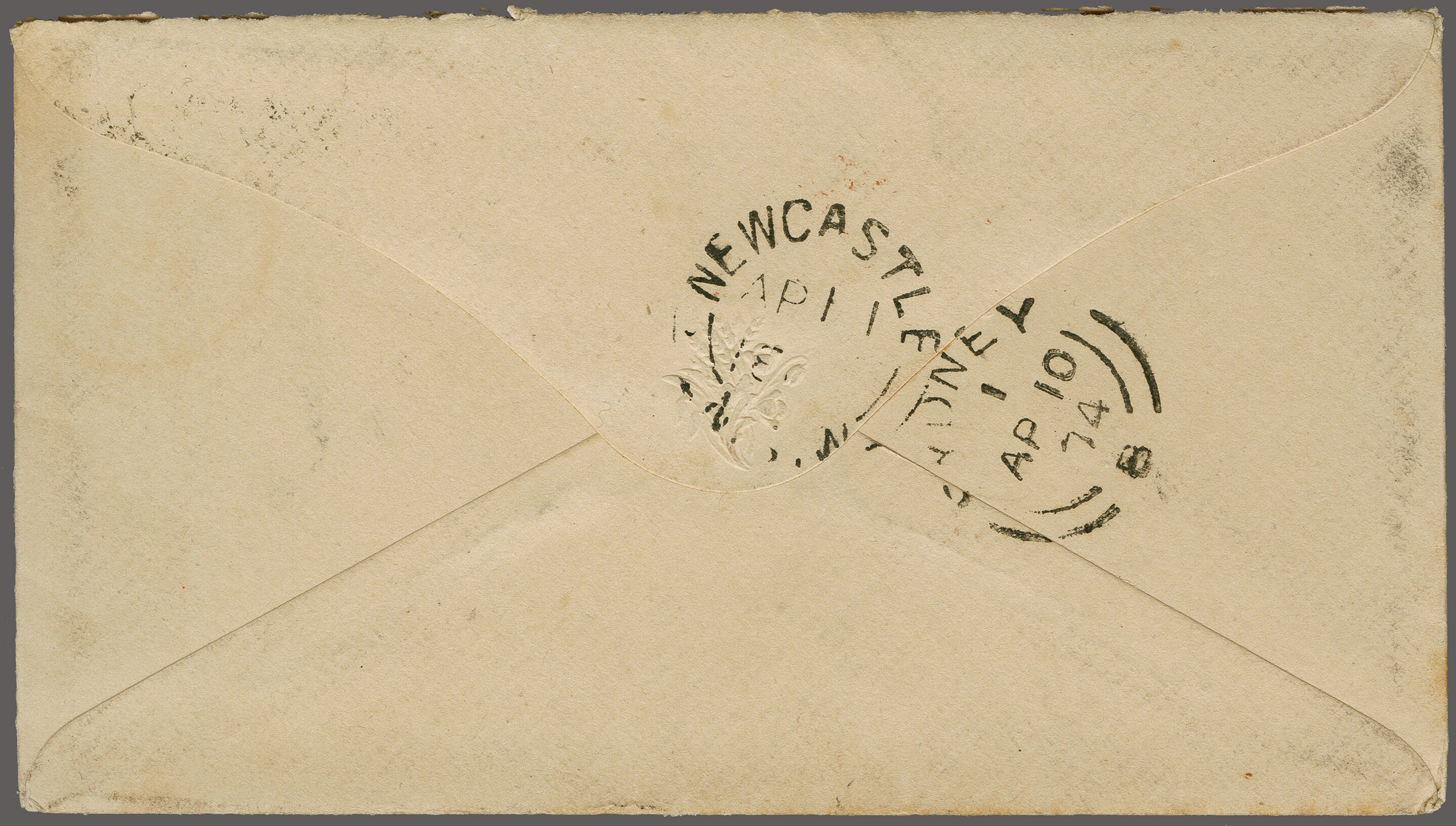 Wales. Obverse with very fine “GALLE / PAID” datestamp and Sydney and Newcastle datestampsp on reverse of a neat and fine cover. Route - P&O Line: Departed Galle 20 Feb 1874 per “Baroda” (7 March) via King Georges Sound (31 March) to Melbourne (3