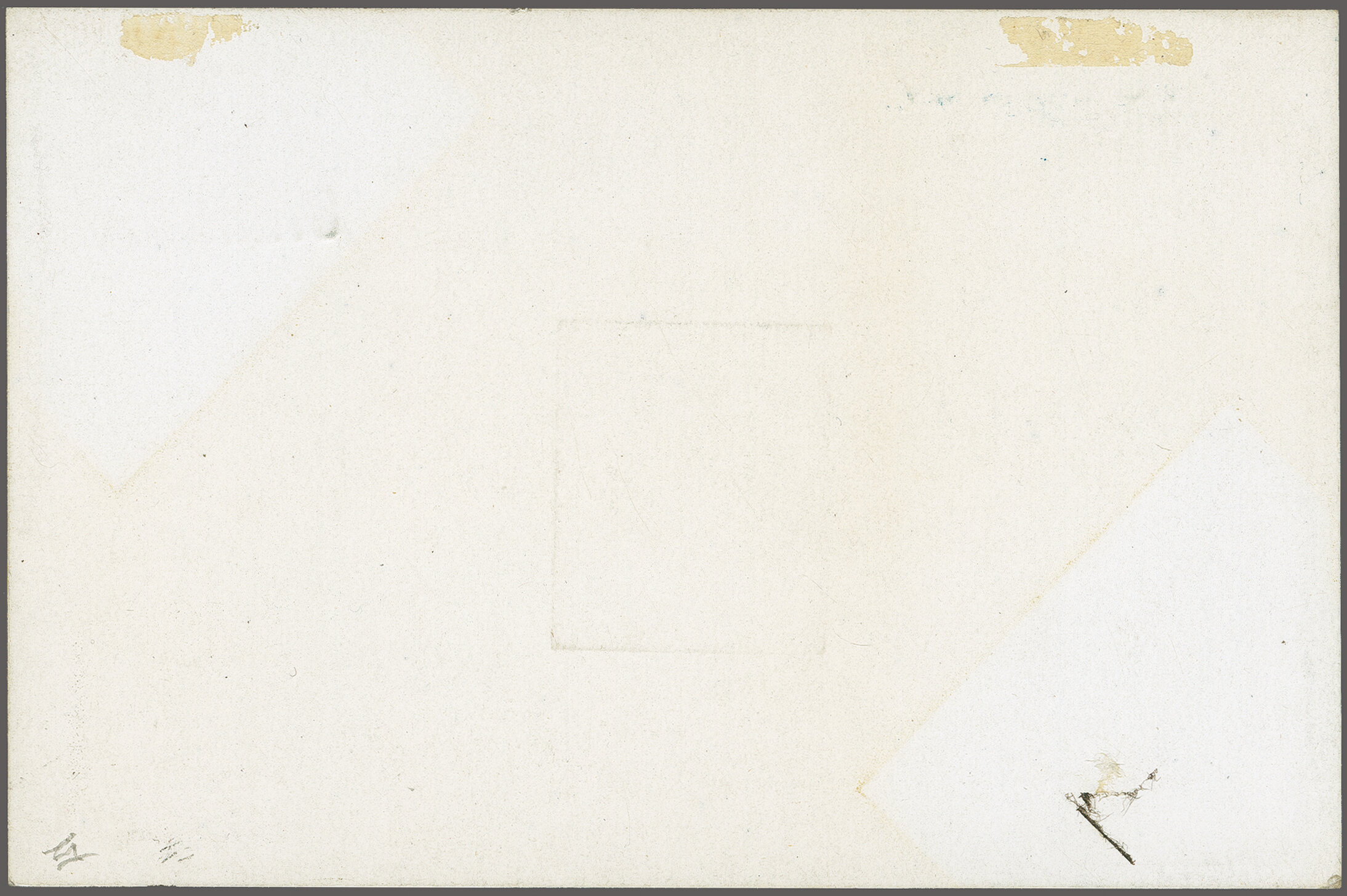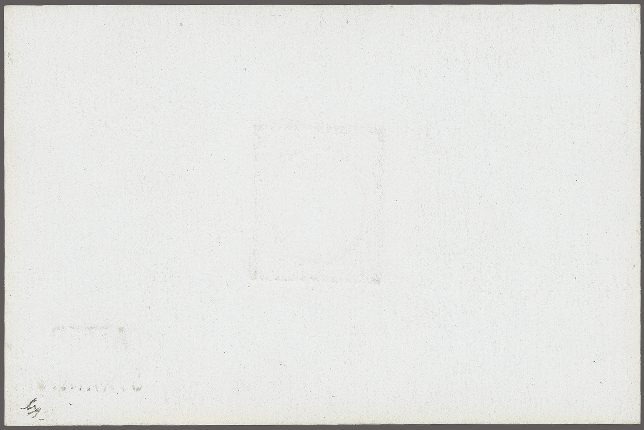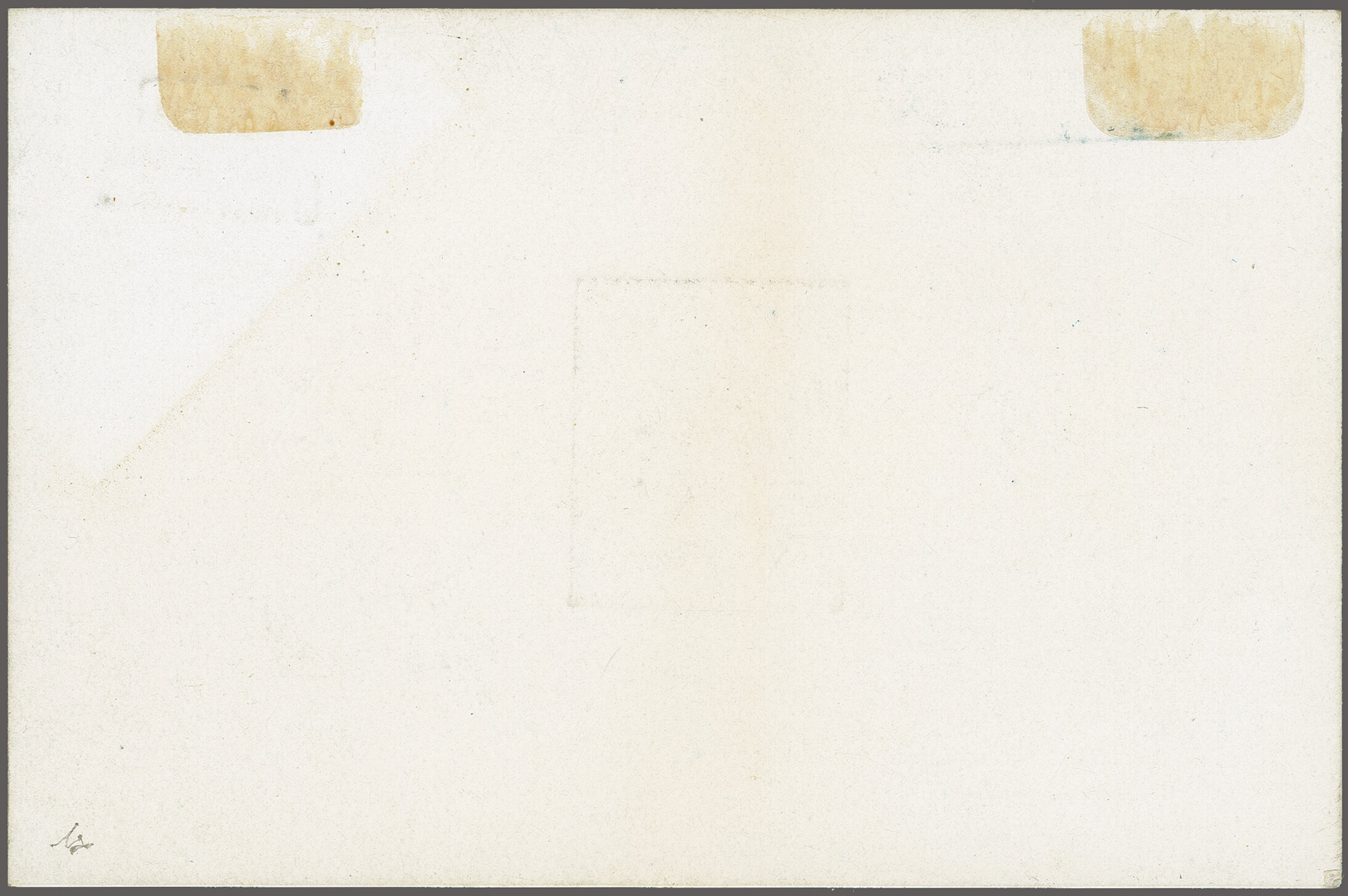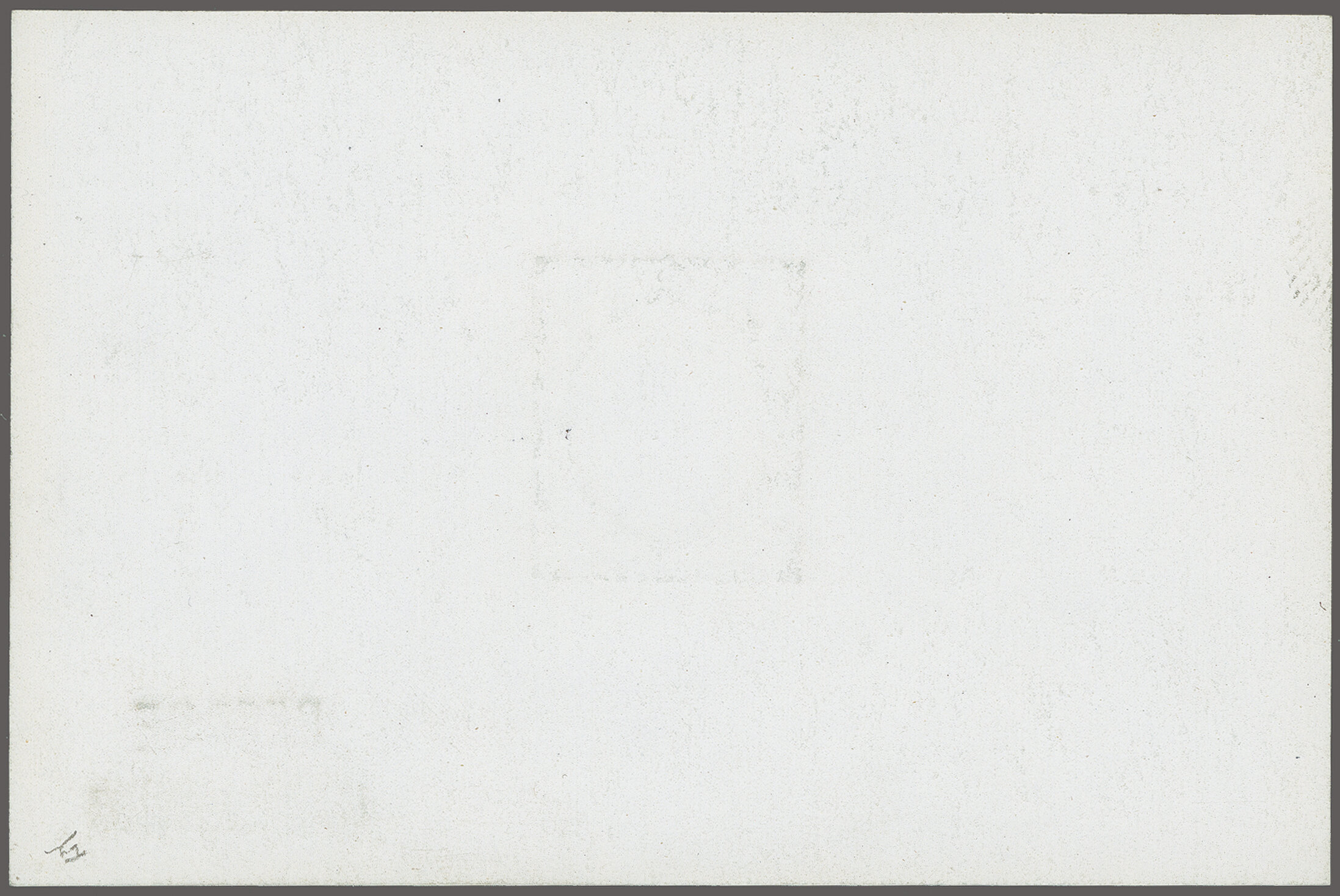 1927/29: De La Rue Die Proof for the 2 rupee value, frame only printed in black on glazed white card, handstamped "BEFORE / HARDENING" in black at lower right and manuscript dated "5/7/27" in ink. Scarce and very fine. (Image 1)