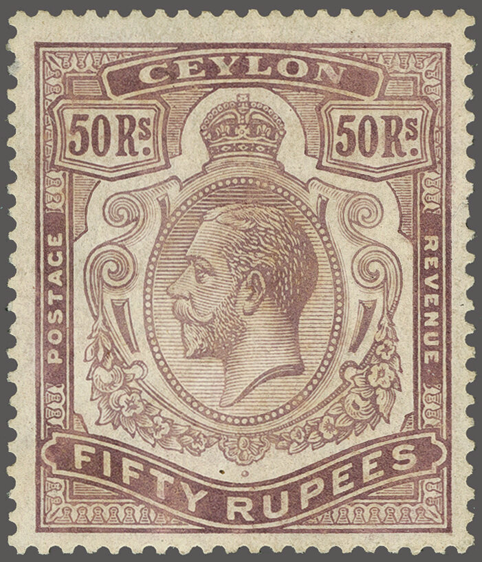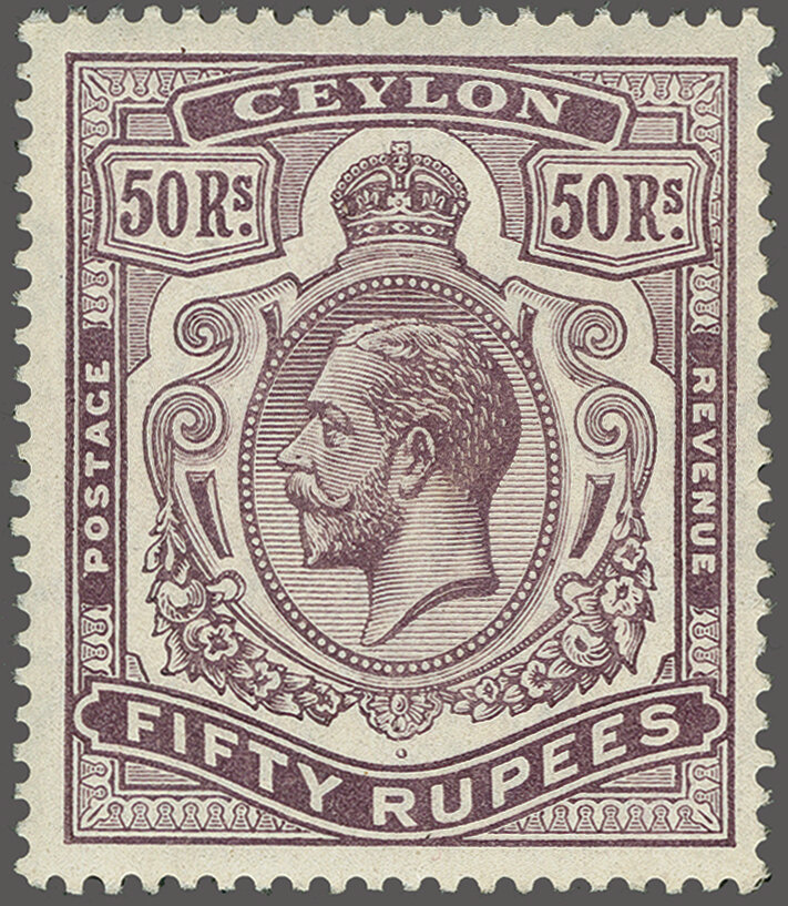 1921/32: Keyplate 50 r. dull purple, wmk. Multiple Script CA, a fine unused example of good centering and colour, superb large part og. Scarce stamp Gi = £ 850. (Image 1)