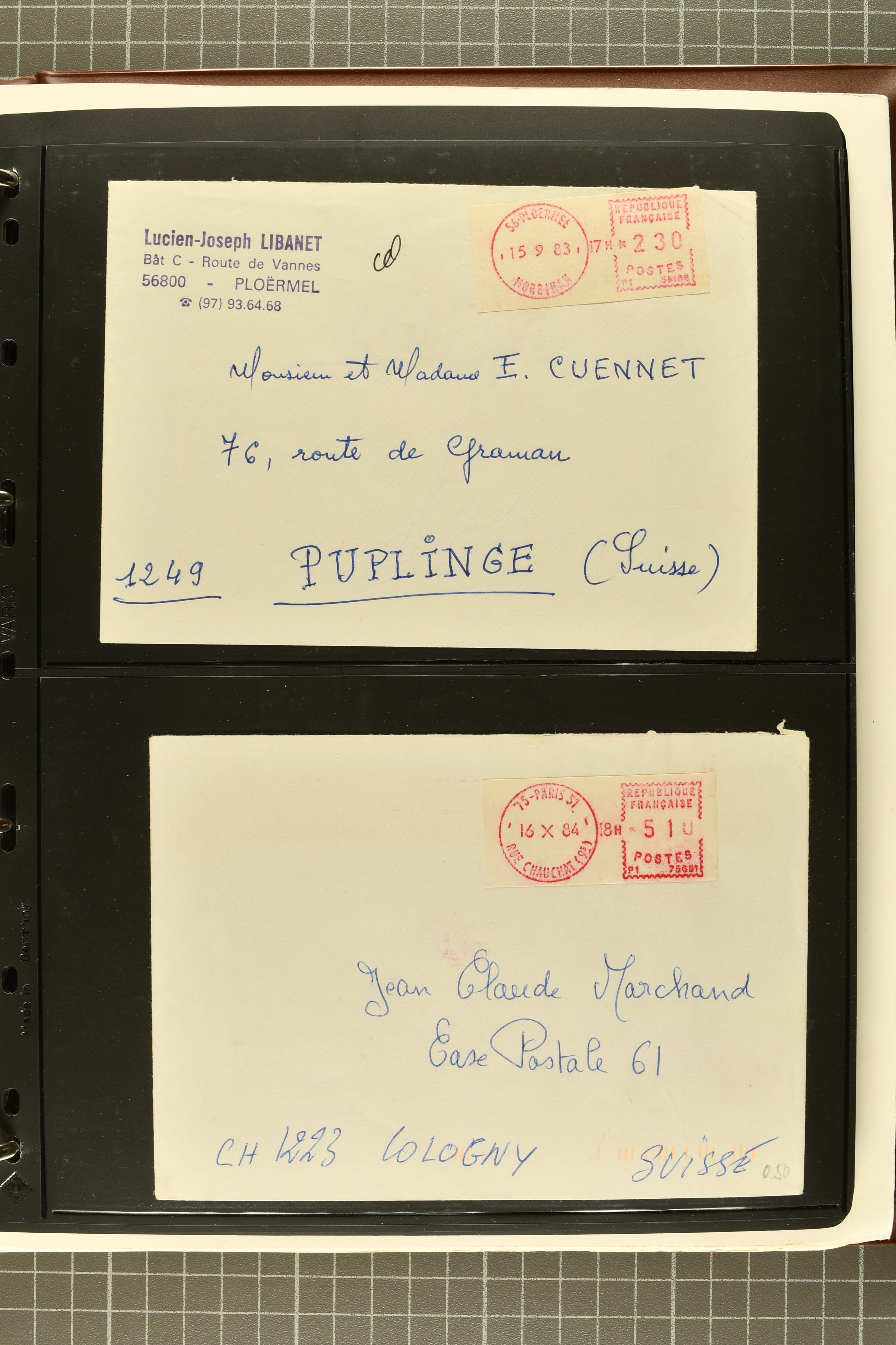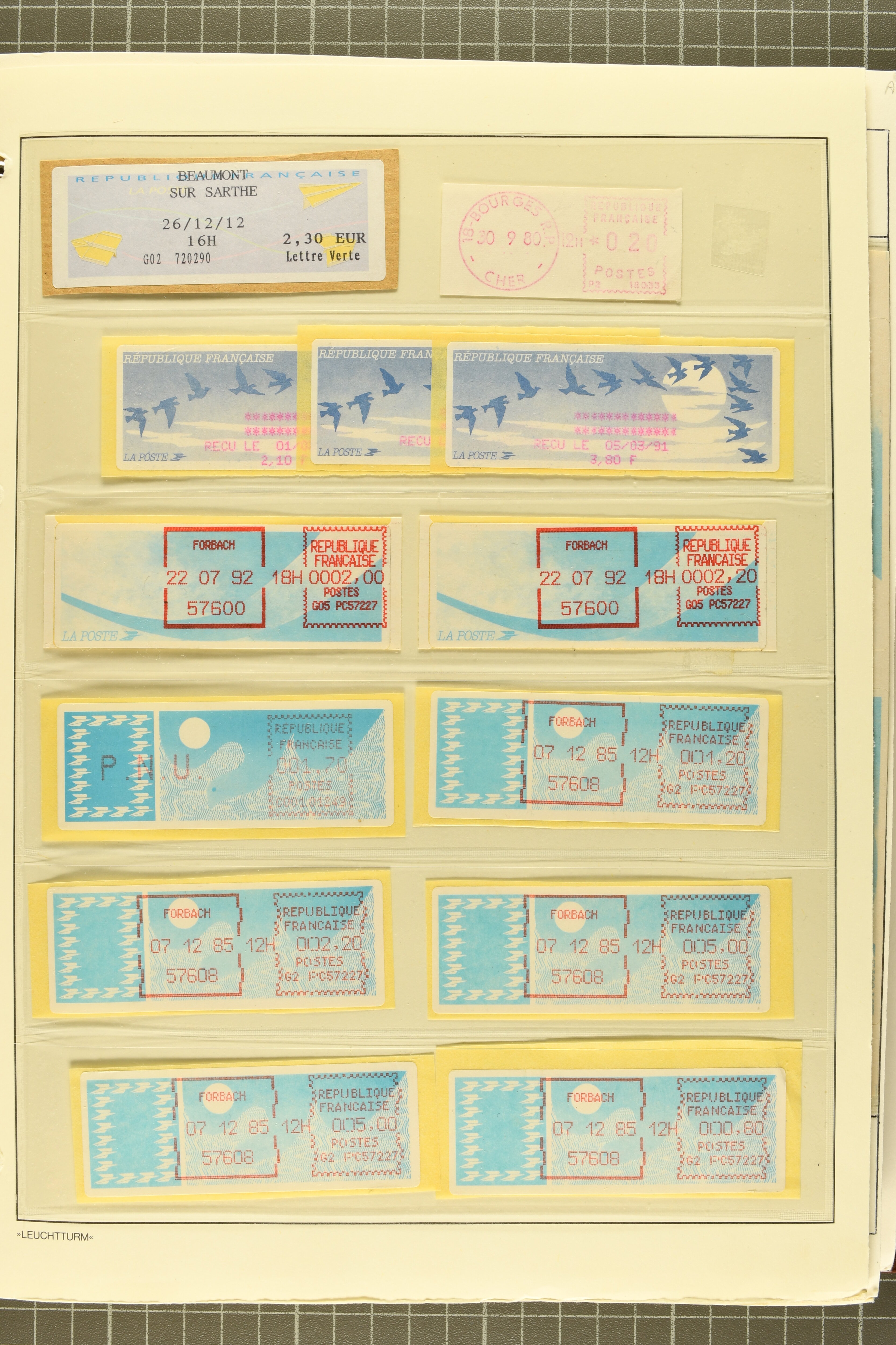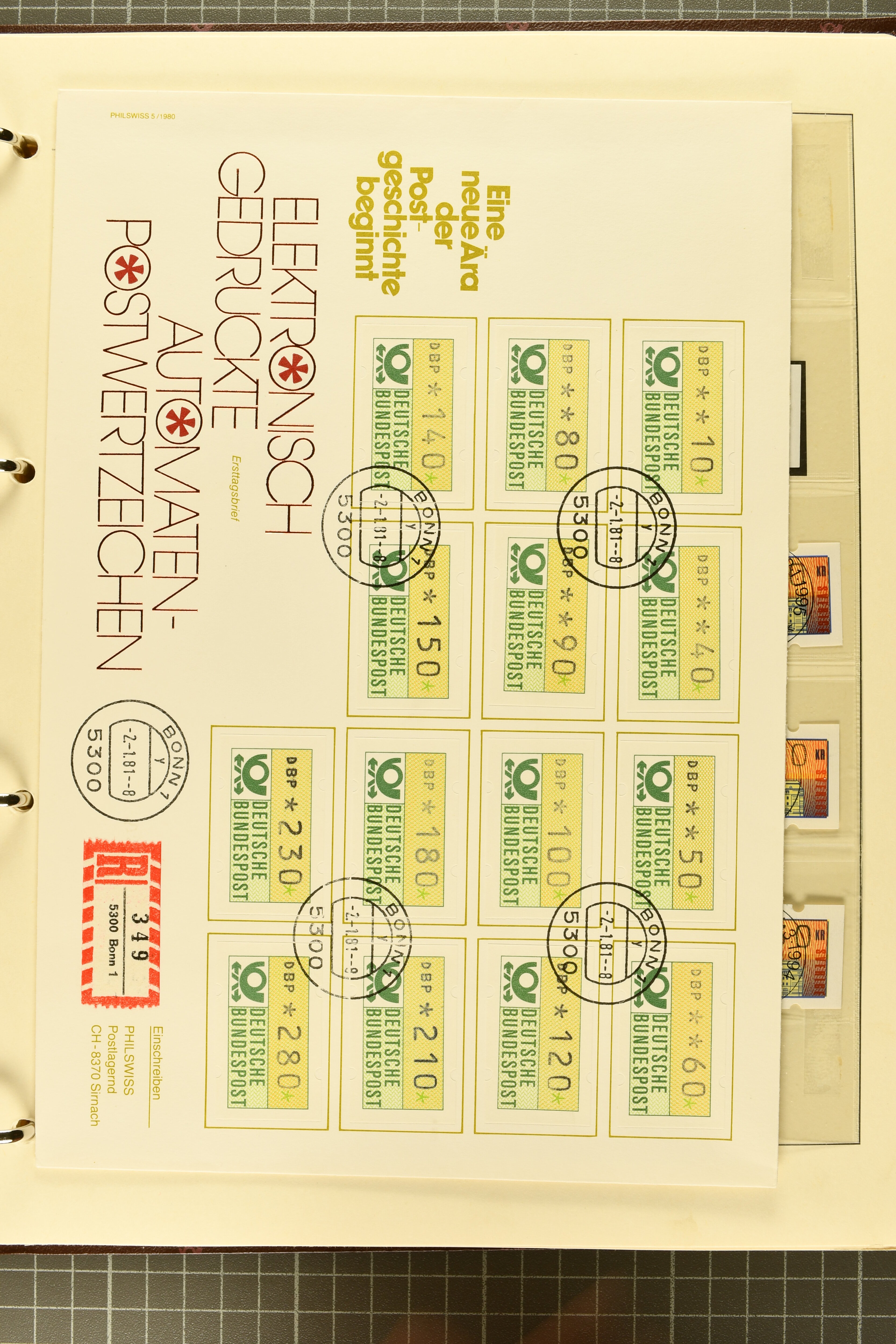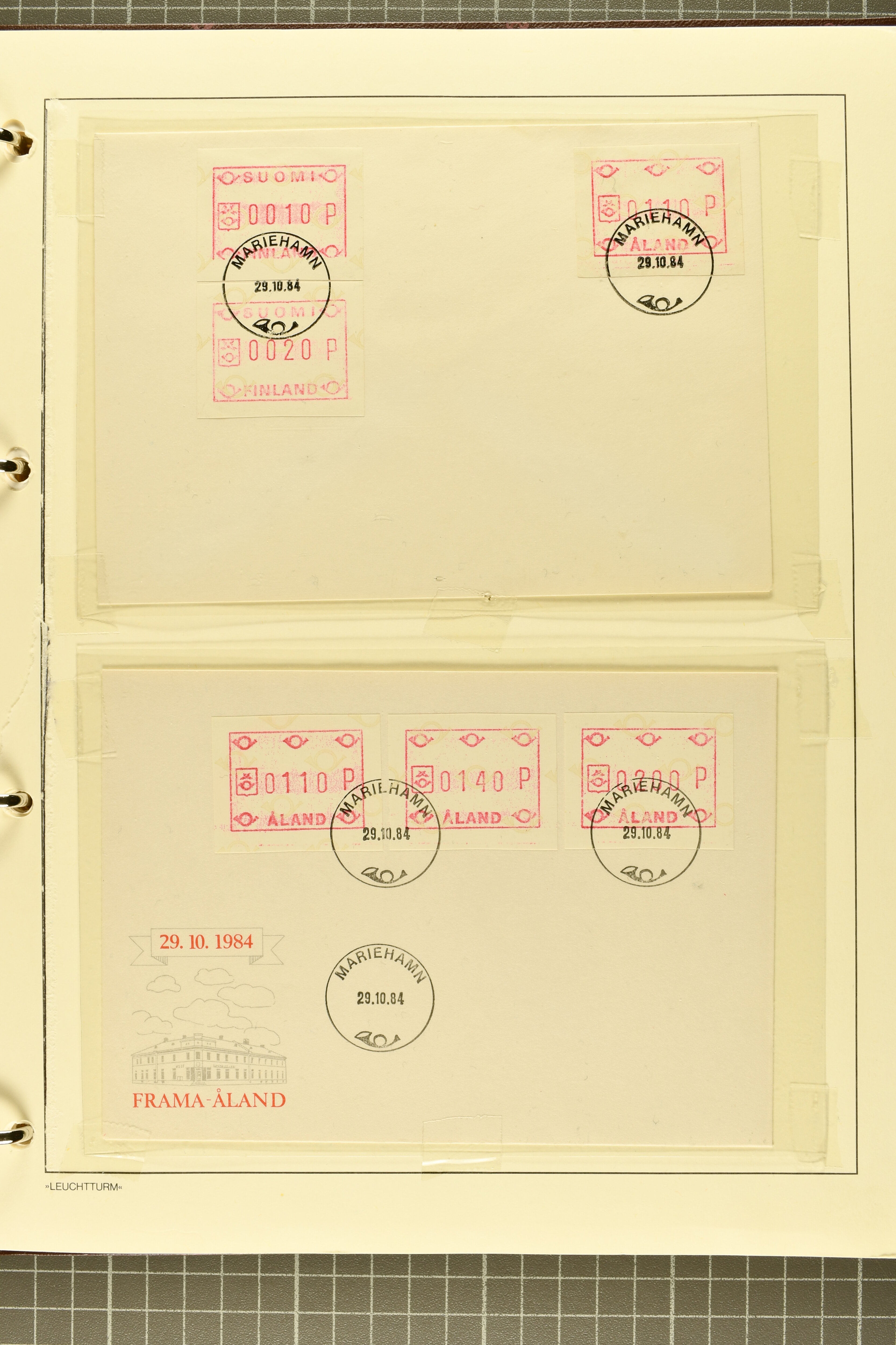 2722 image1975/90ca.: Extensive collection of ATM/Frama post automation stamps from various countries, meticulously arranged in six albums. The collection includes issues from Belgium, Cyprus, Finland, France, Germany, Norway, Israel, Portugal, and more. Additionally, it features coil stamps from the USA. The material is diverse, comprising both used and unused stamps, as well as covers, providing a comprehensive insight into automated postal systems worldwide. (Image 1) (Image 2) (Image 3) (Image 4) (Image 5) (Image 6) (Image 7) (Image 8) (Image 9) (Image 10) (Image 11) (Image 12) (Image 13) (Image 14) (Image 15) (Image 16) (Image 17) (Image 18) (Image 19) (Image 20) (Image 21) (Image 22) (Image 23) (Image 24) (Image 25)