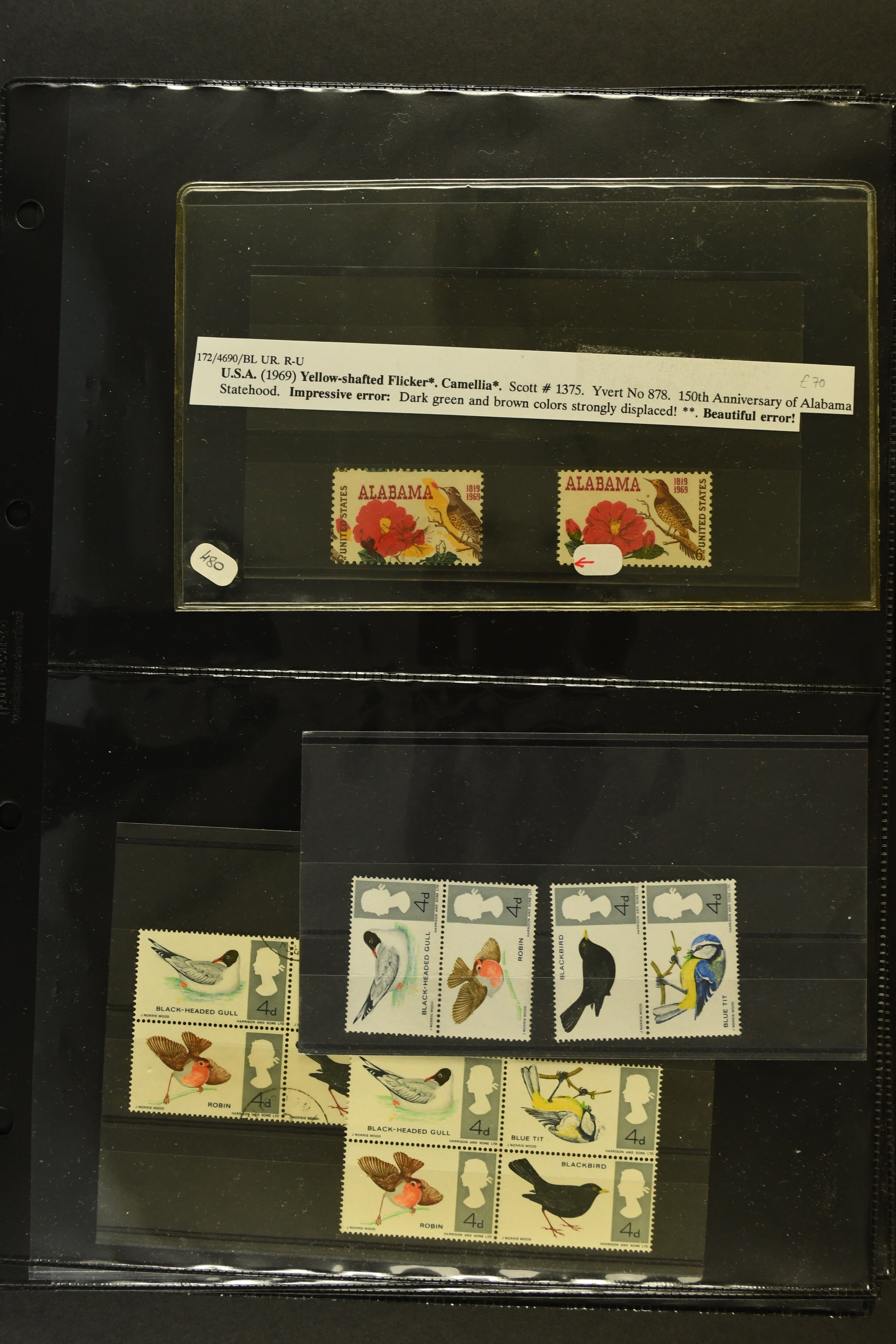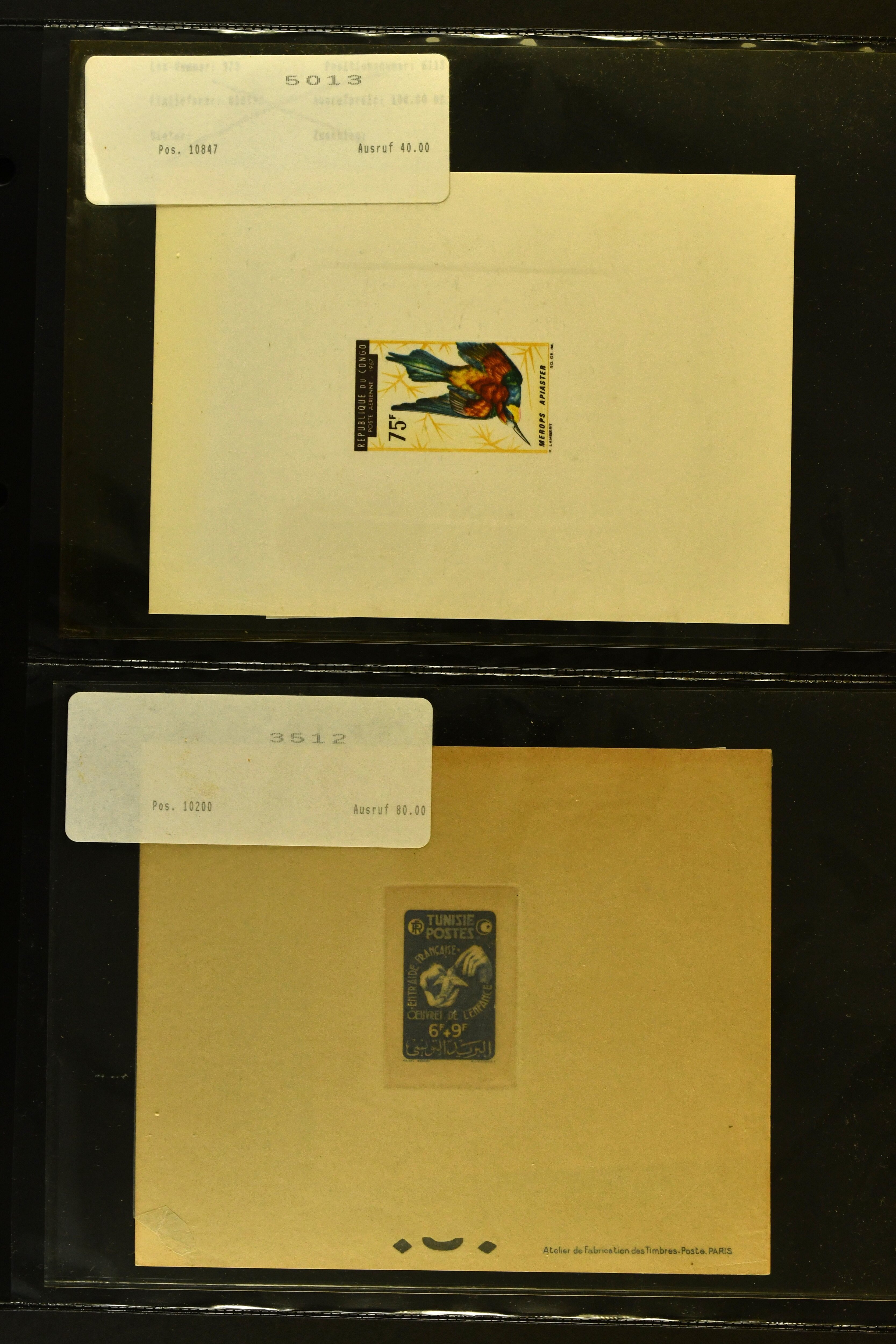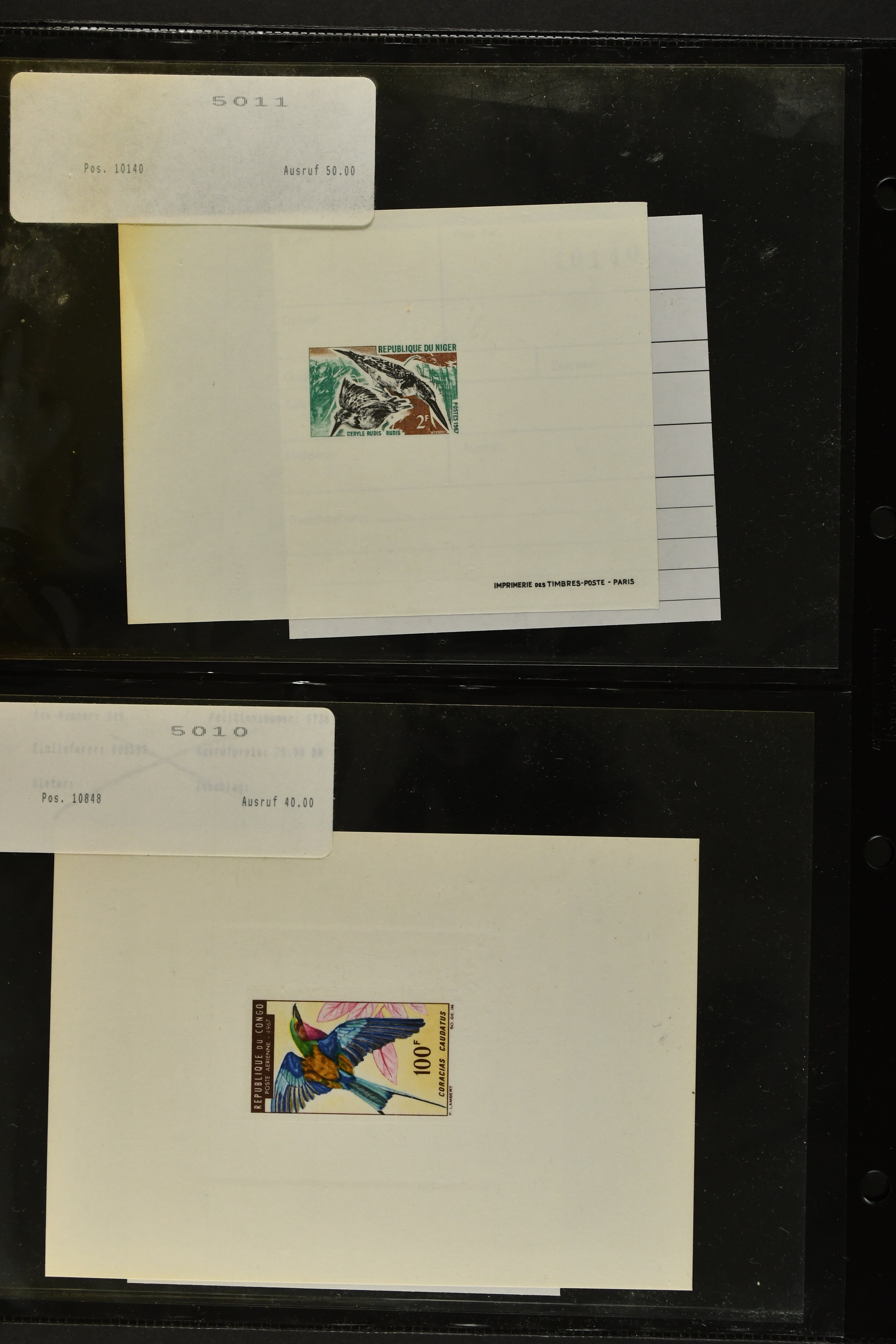 2758 imageTopical Selection Birds from Europe and North America, a special group of 32 primarily unused adhesives / multiples with varieties and proofs incl. USA 1966 Yellow-shafted Flicker with displaced colours, UK Songbirds Blackbird & Robin with missing legs, Blue Tit with missing colour blue, and strong colour shifts on diff. adhesives, 1926 booklet with 'Blackbird Fountpens' advertisement, British Virgin Islands with Audubon anniversary, Cockerels Ceylon 1966 with shifts and three colours omitted, Doves Sharjah 1965 colours omitted, Algeria epreuve de luxe Boy with dove, Crooks Austria 1950, two progressive die proofs, Swallows France 1949 Airmail 100f Grand Palais, Storks AOF 1947 Epreuve 100f., Birds of Prey, five proofs and Epreuves from Austria and diff. French Colonies, UK booklet cover with a Falcon, Owls seven issues with strongly missing and misplaced perfs and colours, and proofs, also two groups of UK booklet cover designs with diff. bird designs. A high catalogue value assemby. (Image 1) (Image 2) (Image 3) (Image 4) (Image 5) (Image 6) (Image 7) (Image 8) (Image 9) (Image 10) (Image 11) (Image 12) (Image 13) (Image 14)