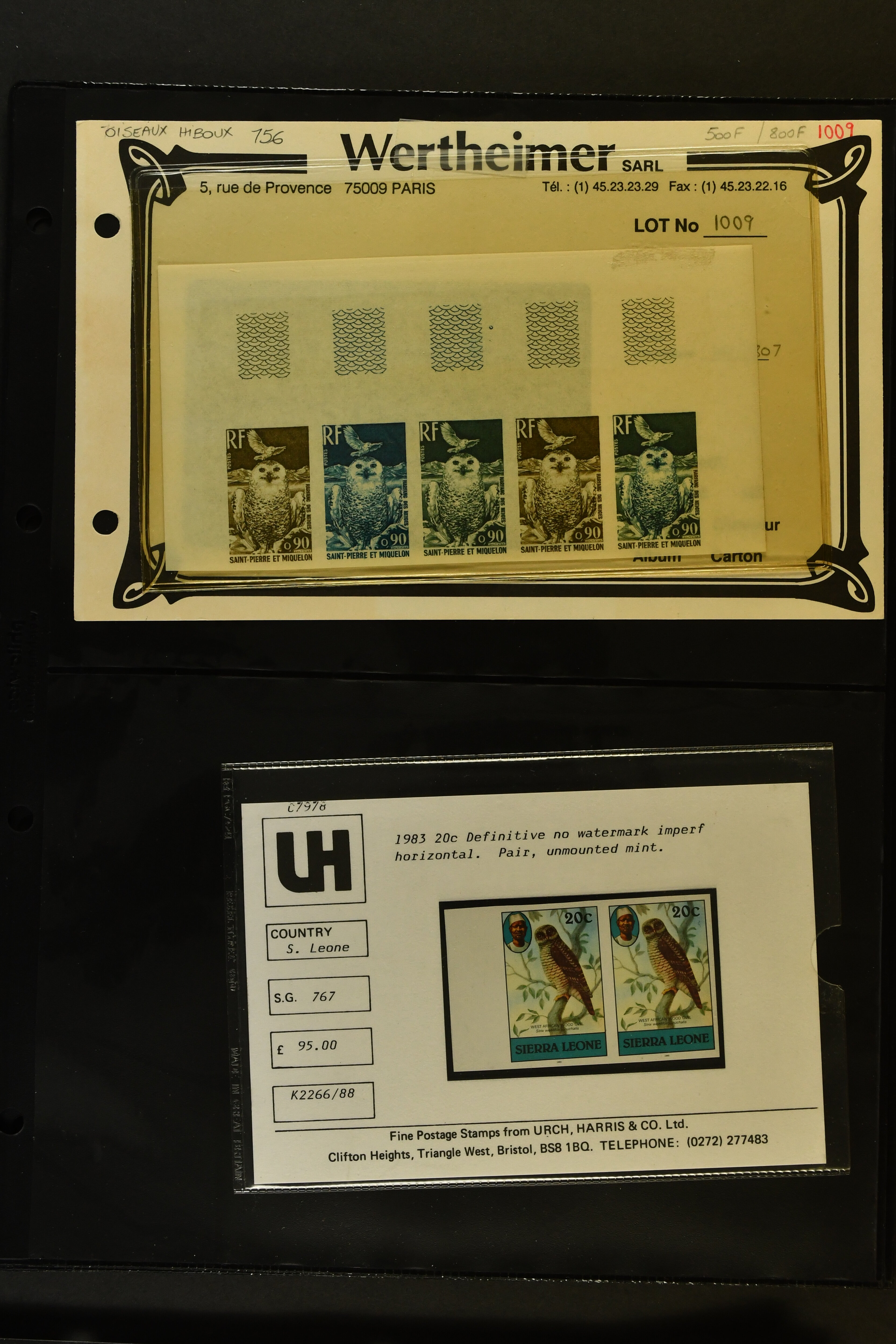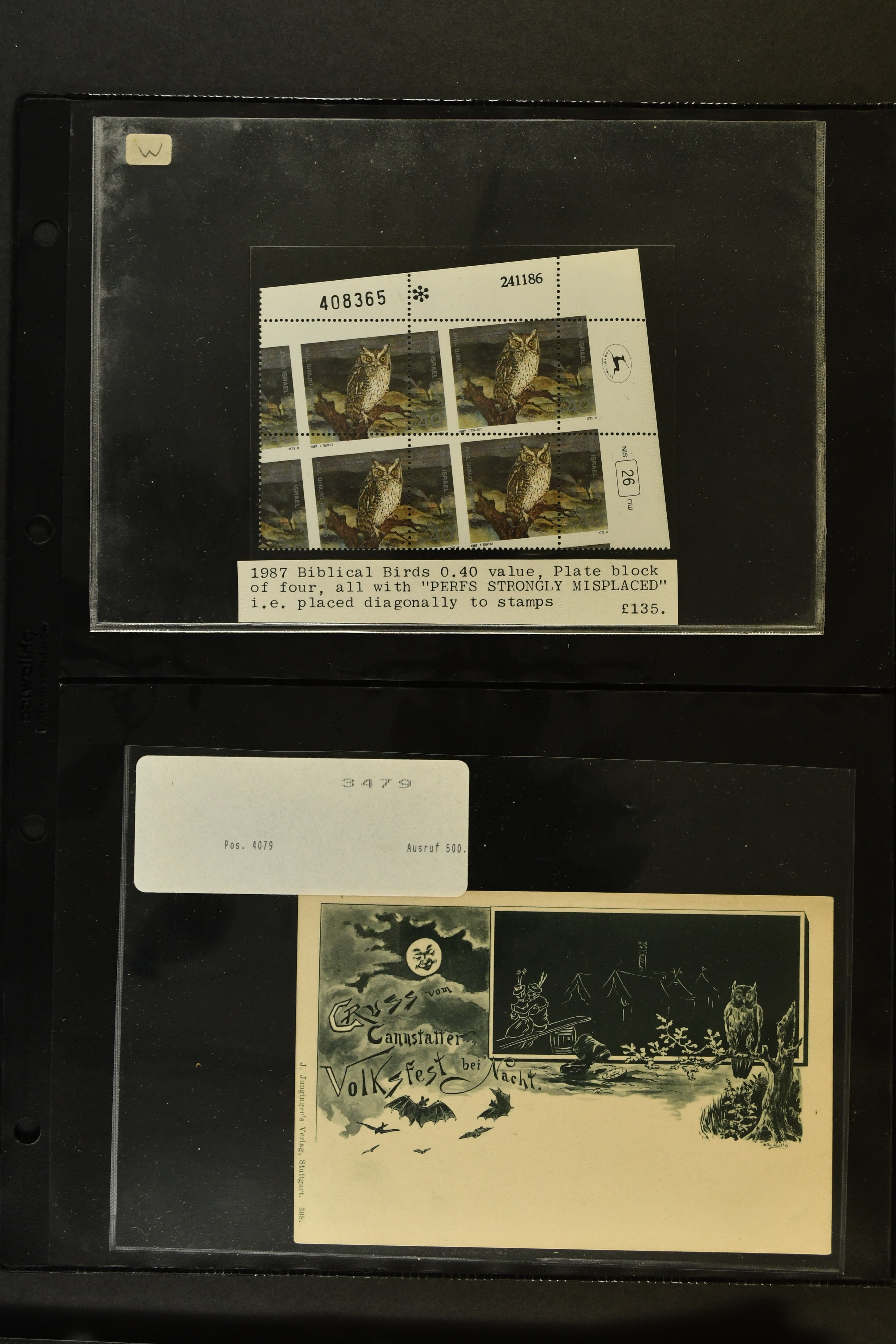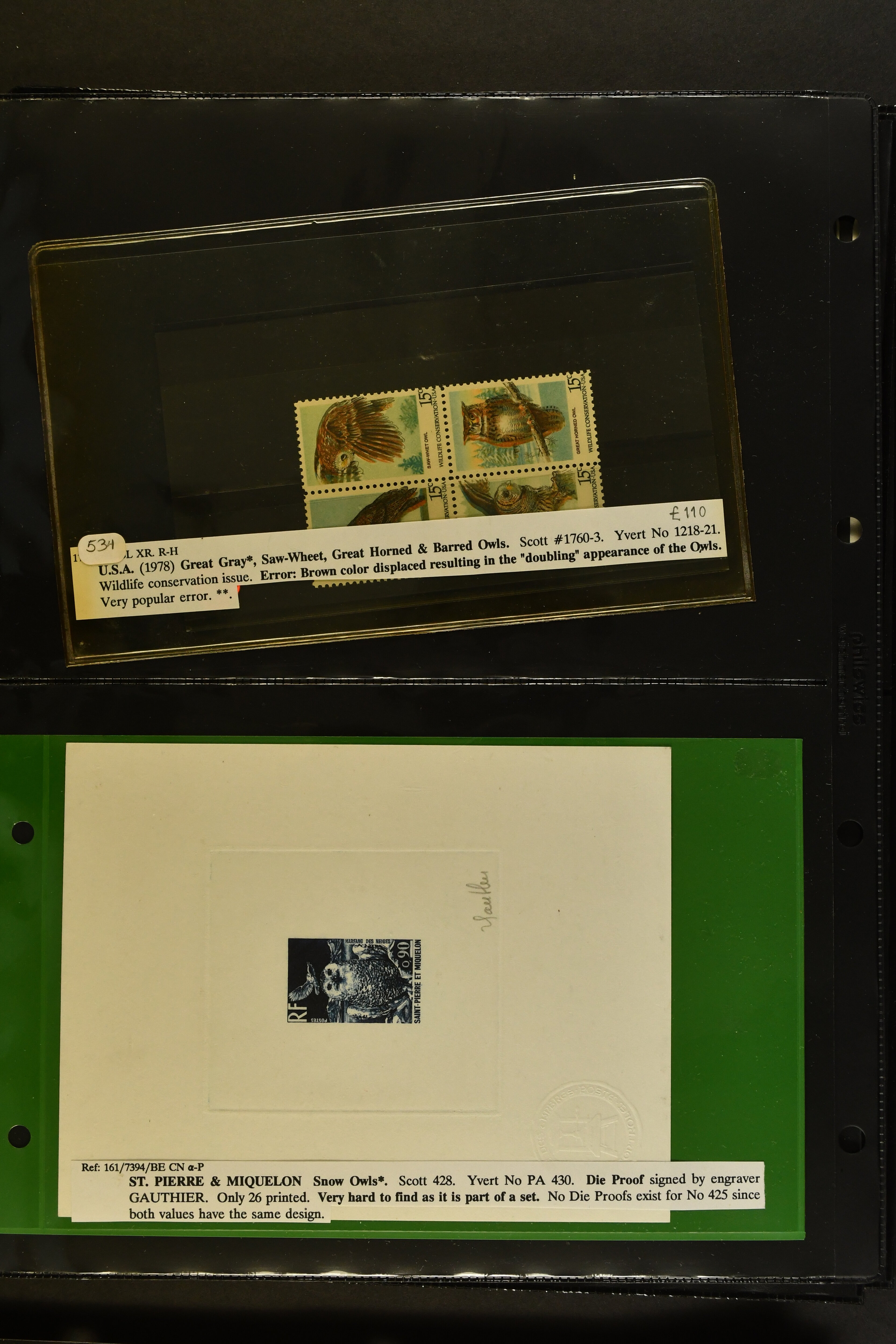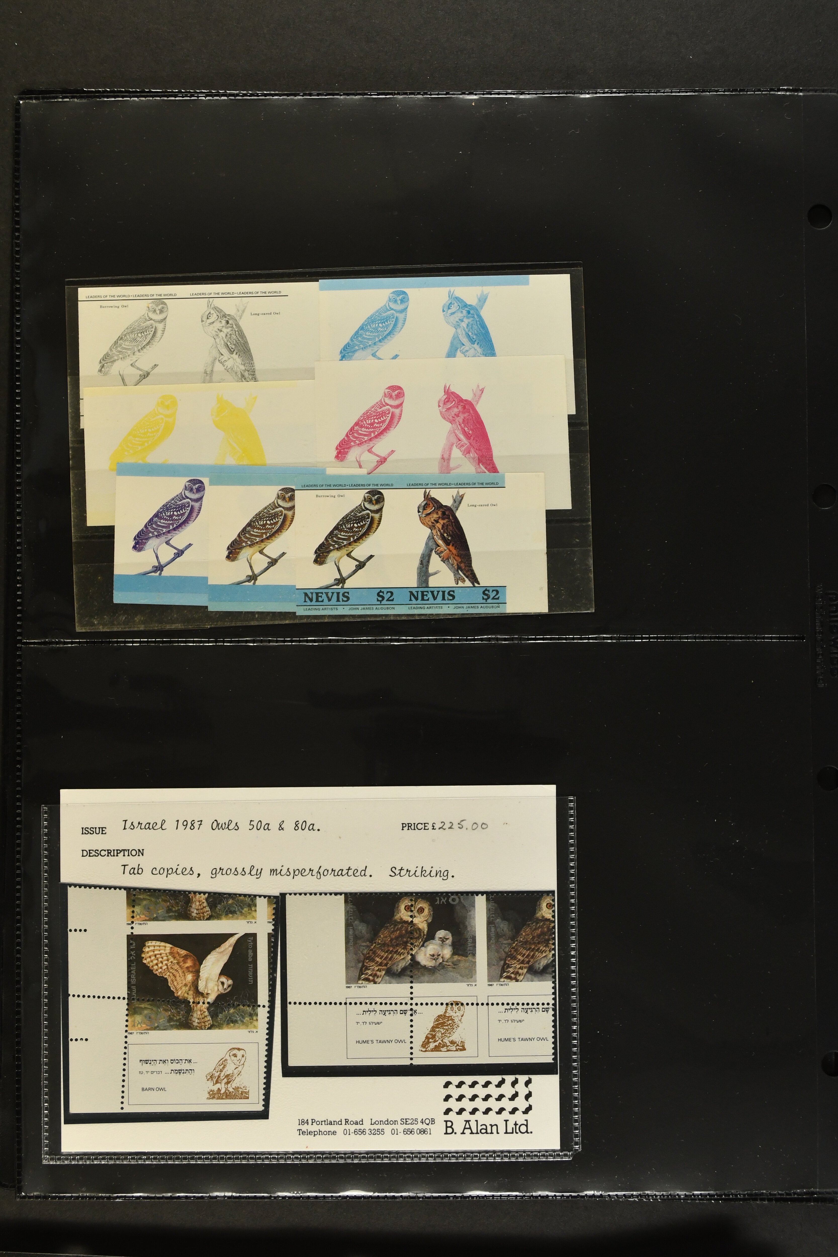 2758 imageTopical Selection Birds from Europe and North America, a special group of 32 primarily unused adhesives / multiples with varieties and proofs incl. USA 1966 Yellow-shafted Flicker with displaced colours, UK Songbirds Blackbird & Robin with missing legs, Blue Tit with missing colour blue, and strong colour shifts on diff. adhesives, 1926 booklet with 'Blackbird Fountpens' advertisement, British Virgin Islands with Audubon anniversary, Cockerels Ceylon 1966 with shifts and three colours omitted, Doves Sharjah 1965 colours omitted, Algeria epreuve de luxe Boy with dove, Crooks Austria 1950, two progressive die proofs, Swallows France 1949 Airmail 100f Grand Palais, Storks AOF 1947 Epreuve 100f., Birds of Prey, five proofs and Epreuves from Austria and diff. French Colonies, UK booklet cover with a Falcon, Owls seven issues with strongly missing and misplaced perfs and colours, and proofs, also two groups of UK booklet cover designs with diff. bird designs. A high catalogue value assemby. (Image 1) (Image 2) (Image 3) (Image 4) (Image 5) (Image 6) (Image 7) (Image 8) (Image 9) (Image 10) (Image 11) (Image 12) (Image 13) (Image 14)