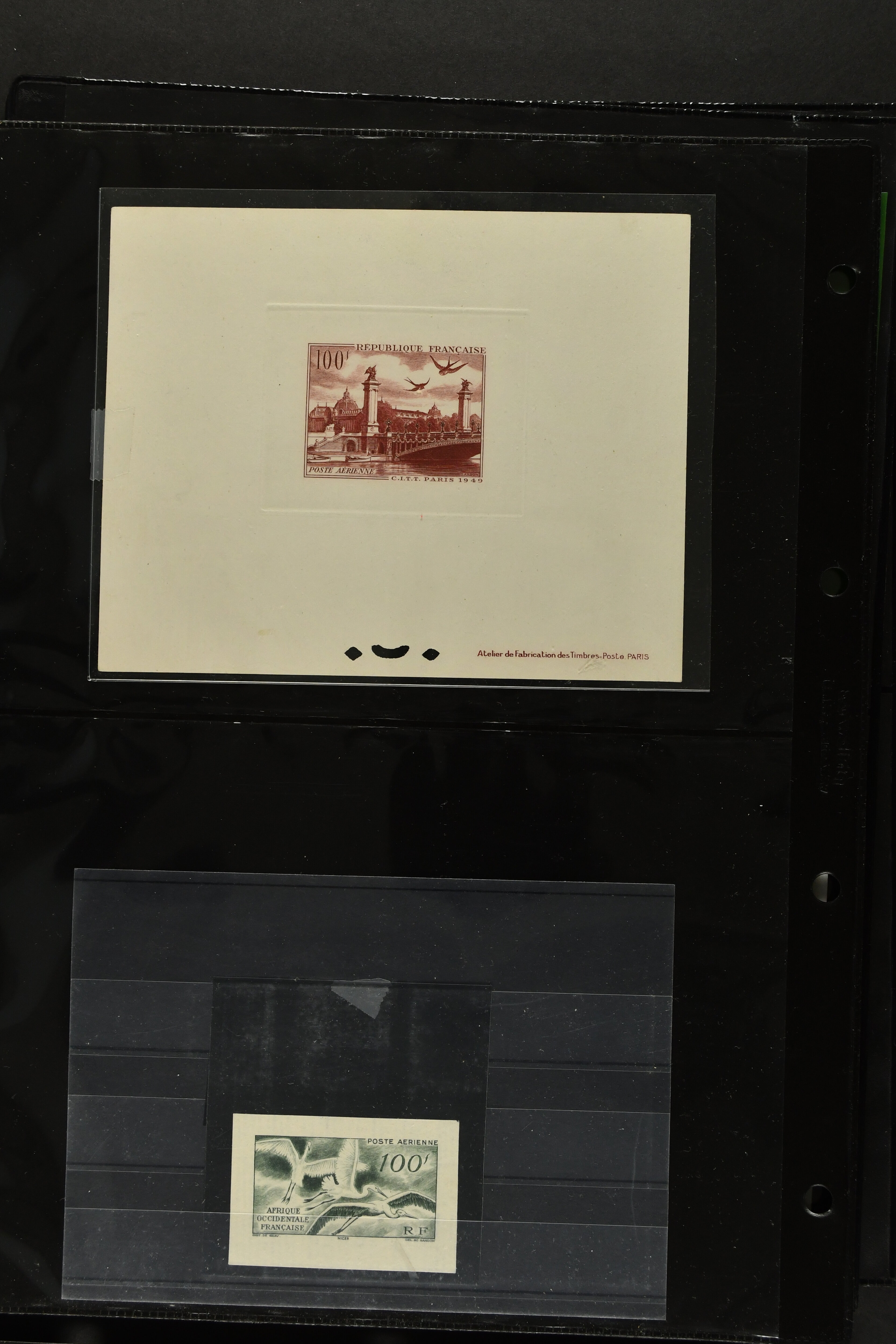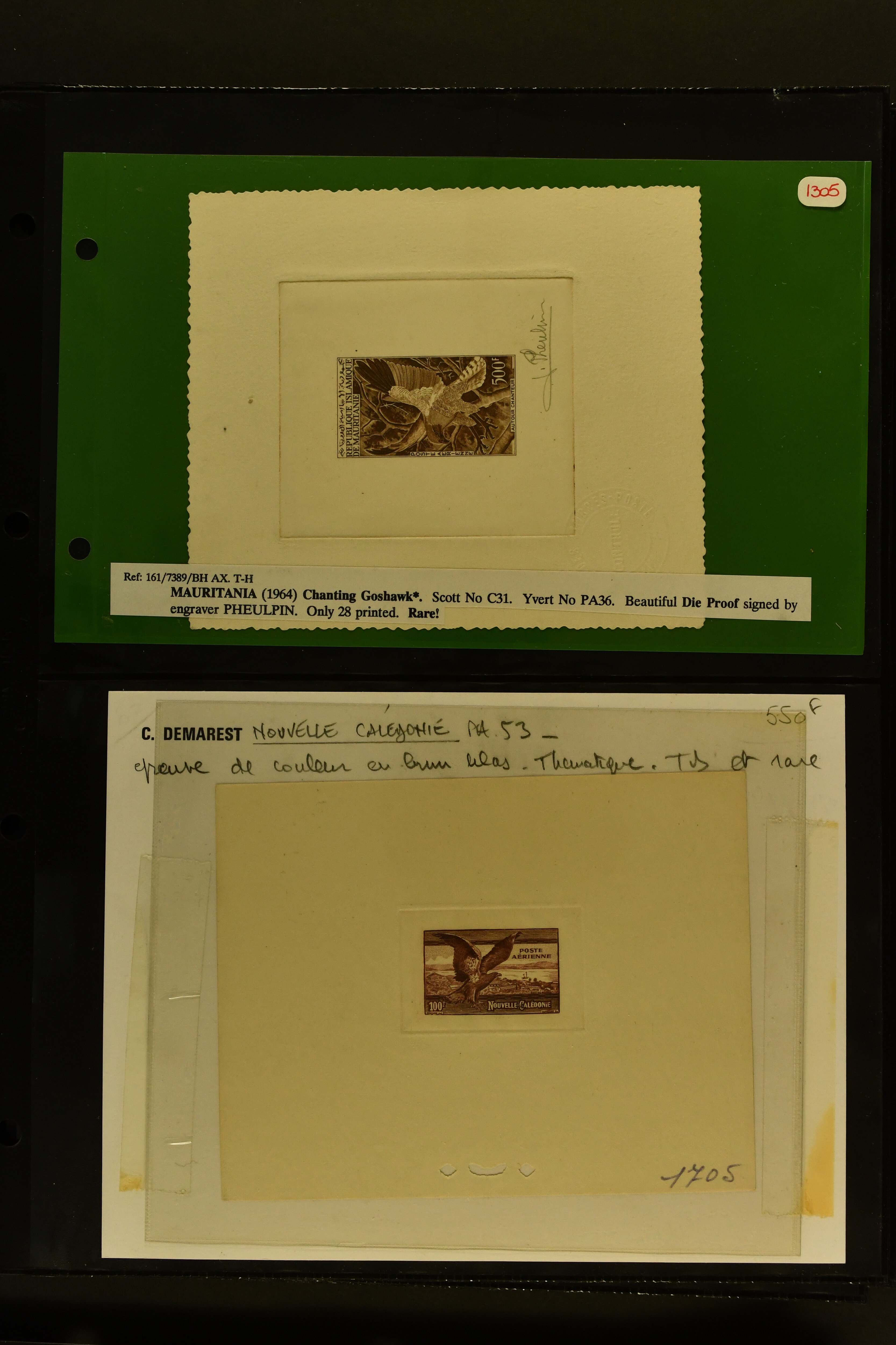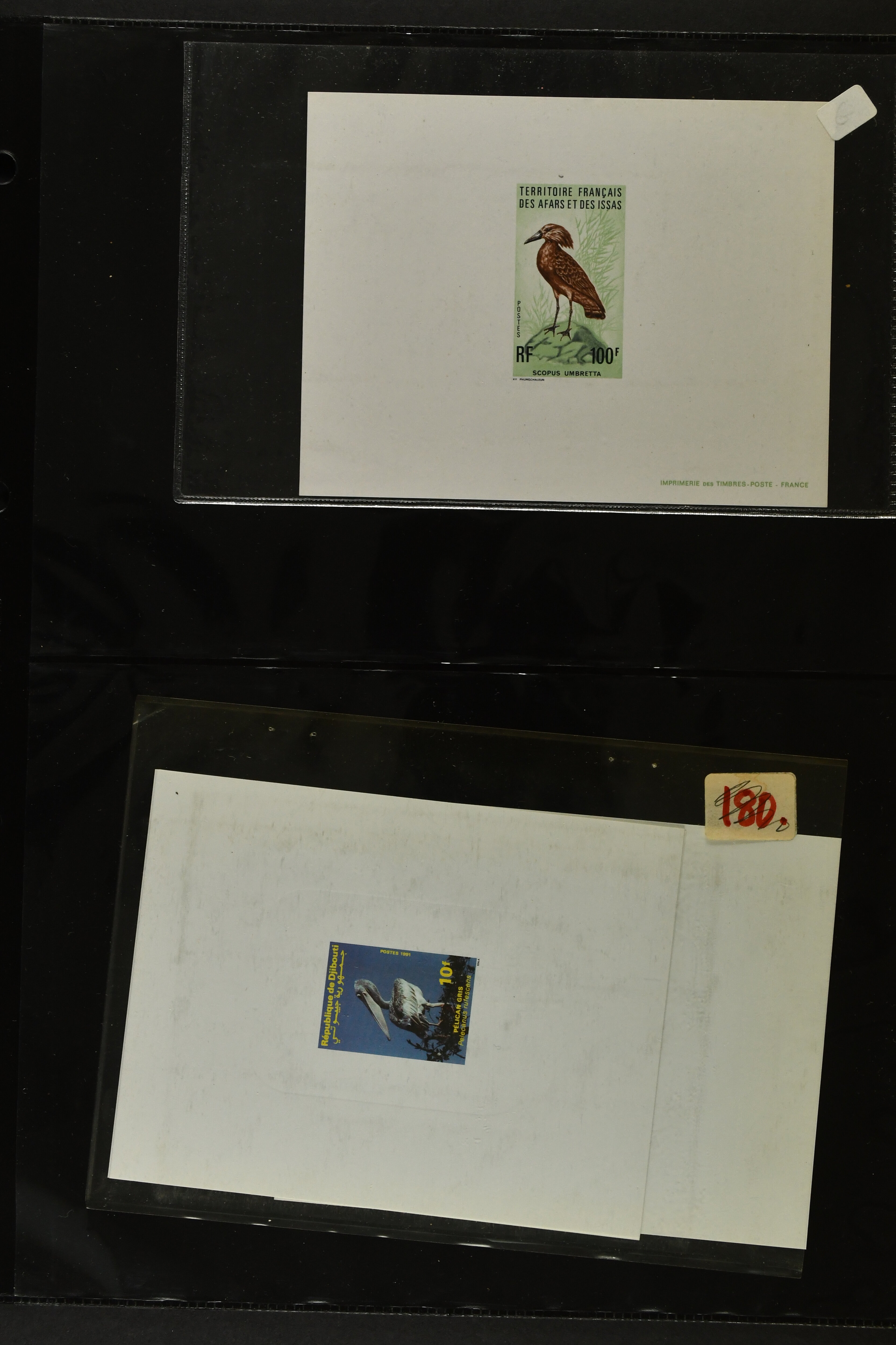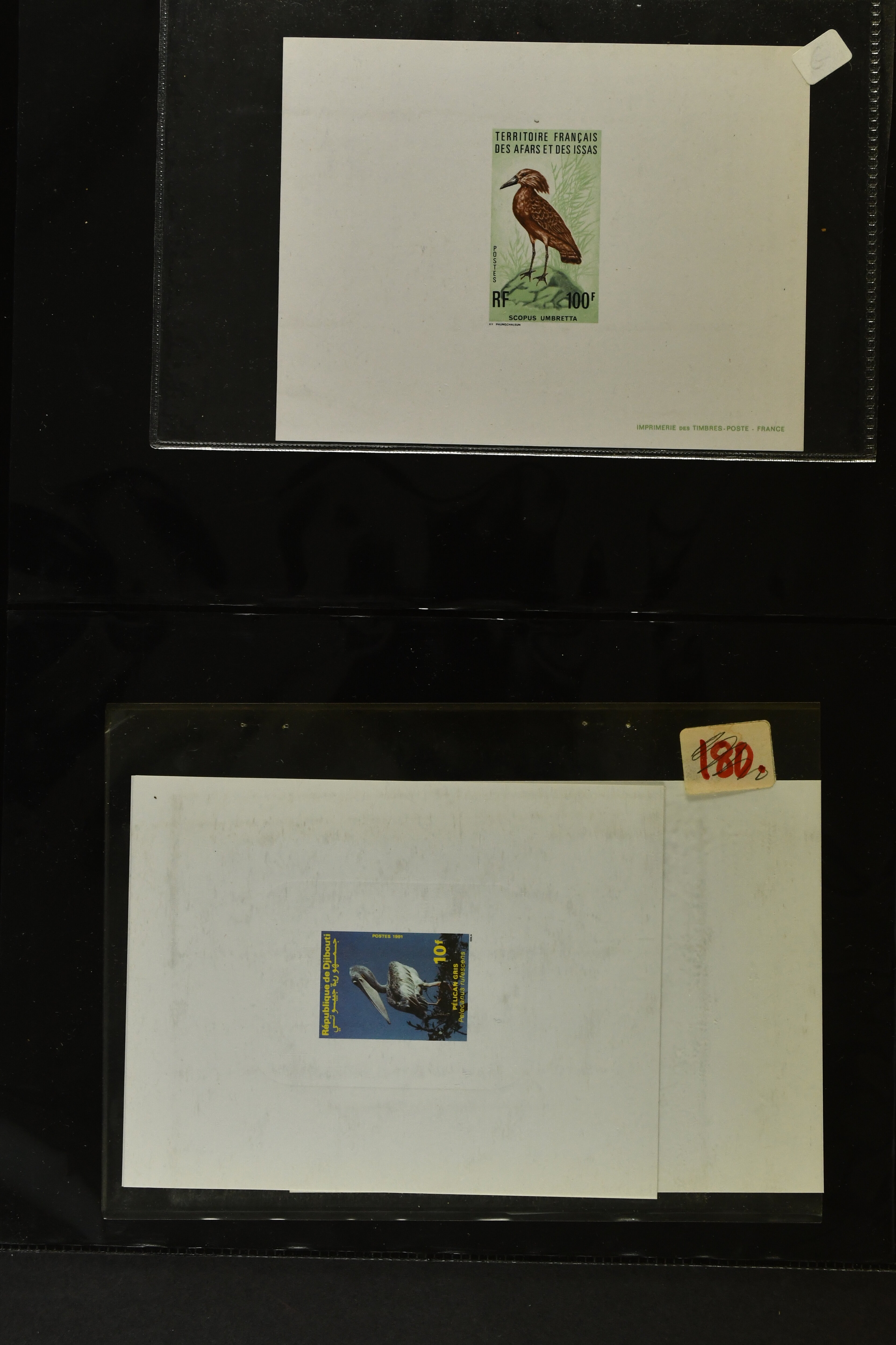 2757 imageTopical Selection Birds from Sweet and Salt Water, a special group of 16 primarily unused adhesives / multiples with varieties and proofs incl. UK 1988 Bewick's Swan in imperf. pair, UK 1989 Gannet with Silver flaw, Monaco 1955 Sea Birds, compl. set of four imperf., Pollution des Eaux de Mer Trial Colour proofs in a vertical strip of five, France 1960 Sarcelles / Teals in a strip of five colour proofs, St. Pierre et Miquelon Puffins Trial Colour plate proofs in a multicolour strip of five, Seabirds, three values 50 c., 1 f. and 2 f. in colours proofs and 2 f. as epreuve de luxe, Affars & Issas 1967 Sea Birds 10 f., 15 f. and 50 f. Trial Colour plate proofs in a multicolour strip of five, and two epreuves, one signed by the designer, two adhesives from New Zealand and Singapore with variety missing colour, Mauretania two multicolour proofs, one Audubon anniversary proof from Benin, a misfolded pair of miniature sheets from Uganda showing zebras and Cattle Egret; and finally Newfoundland, a sunk die proof depicting a Salmon - King of the Rivers (the describer knows that this is not a bird). (Image 1) (Image 2) (Image 3) (Image 4) (Image 5) (Image 6) (Image 7) (Image 8)