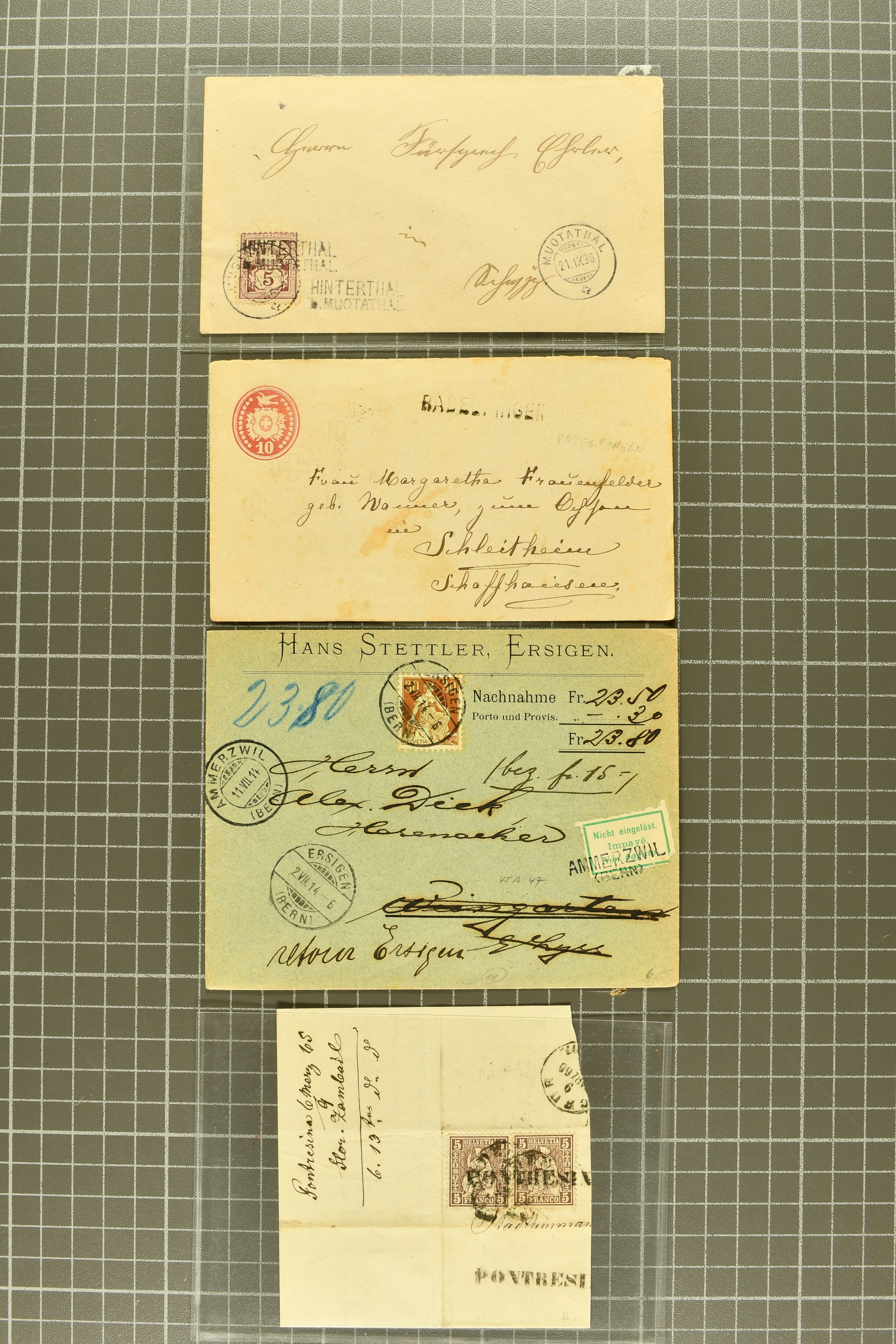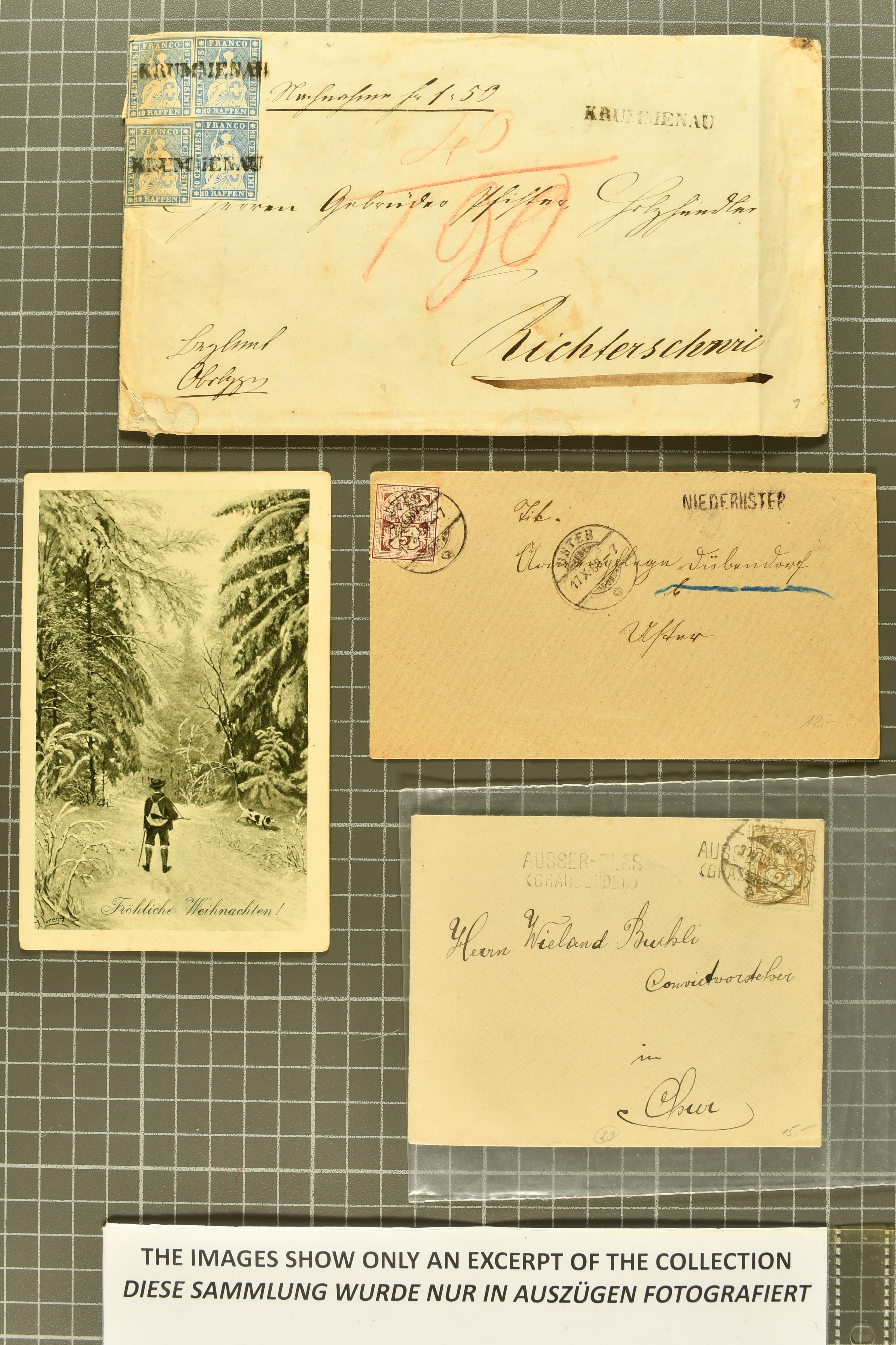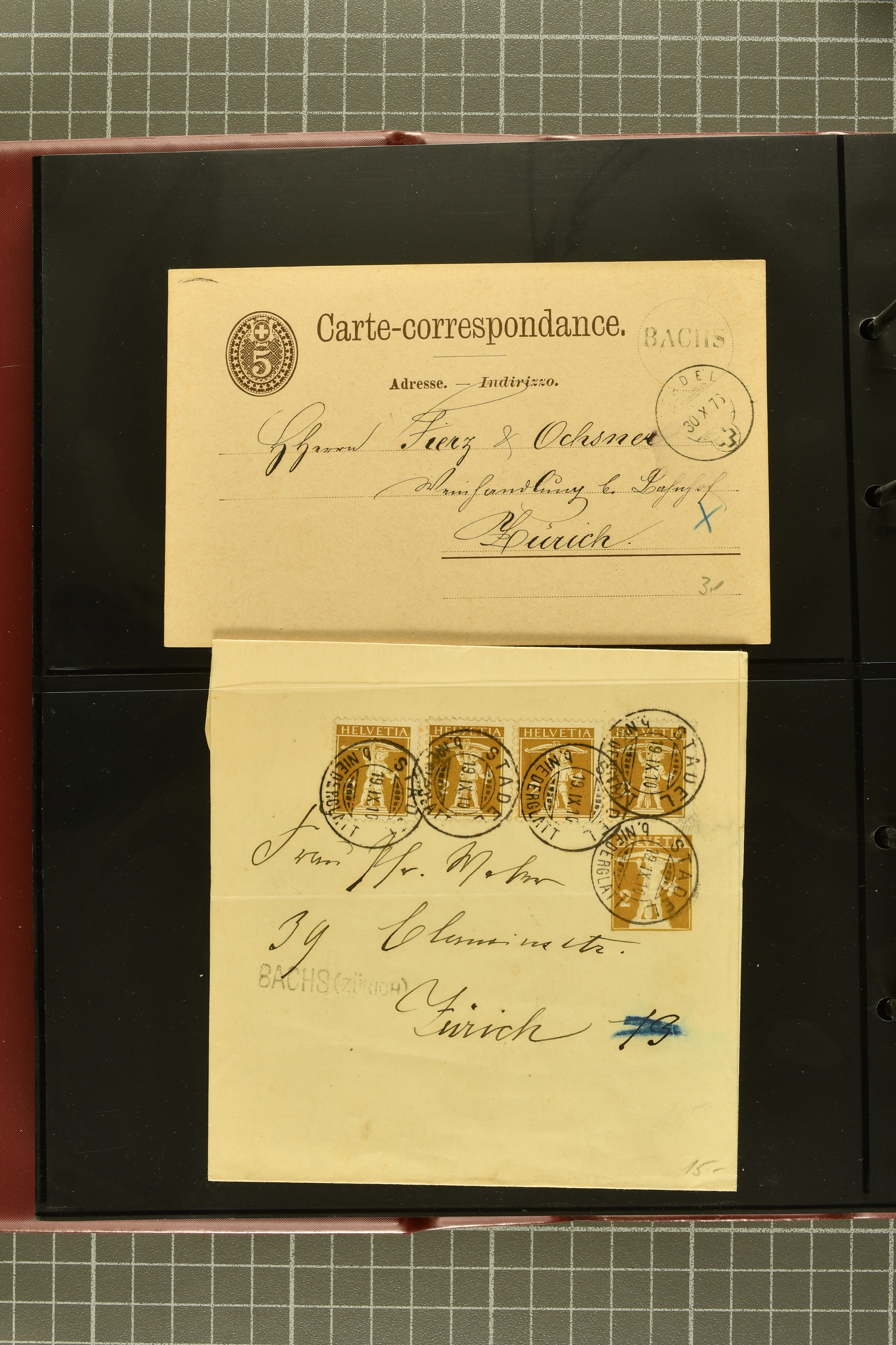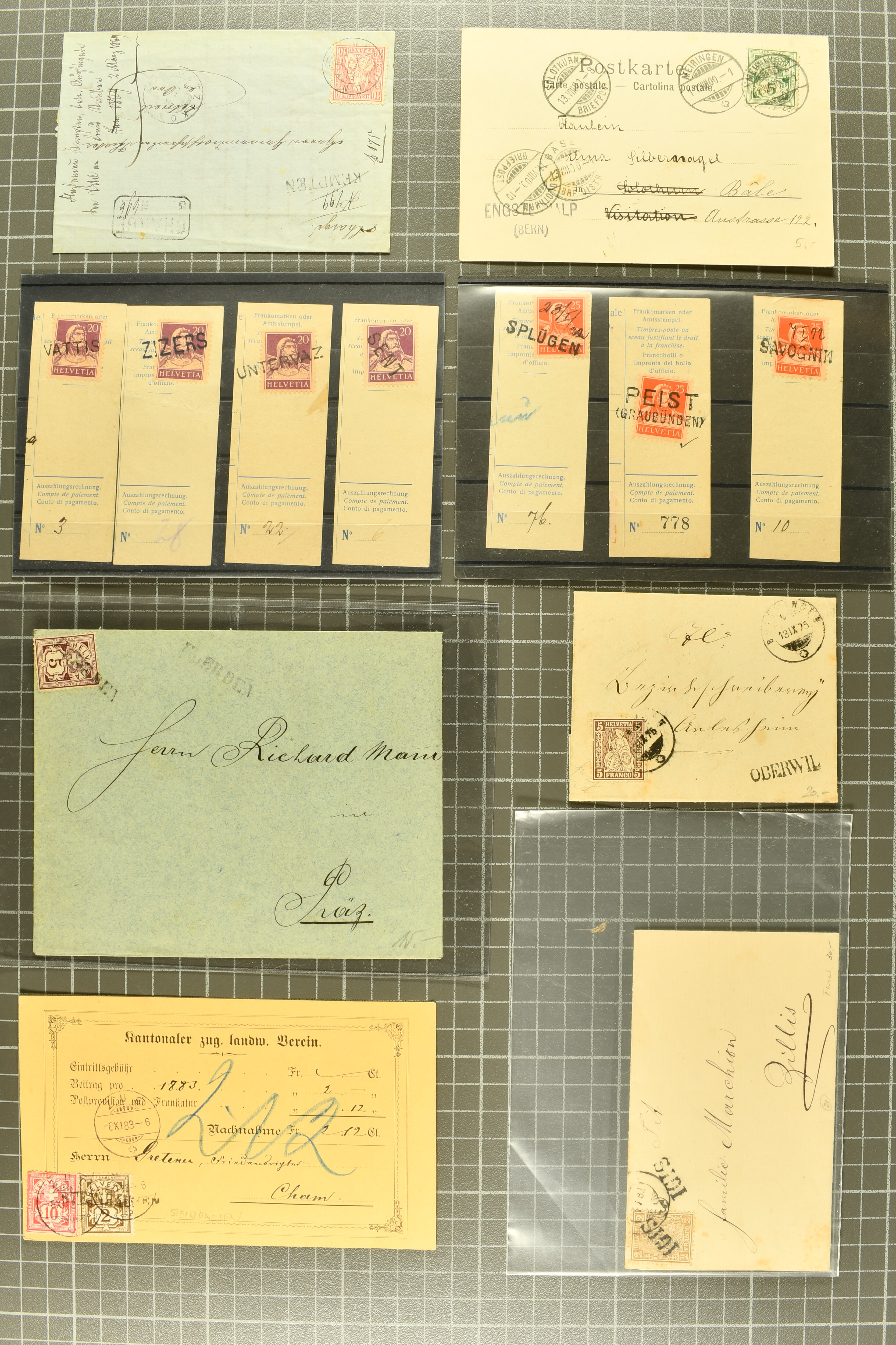 9692 cover image1808/1950ca.: Partie mit Balkenstempel in 2 Alben mit Belegen, dabei Briefe ohne Marken, Ganzssachen und frankierte Belege ab Strubel, Postkarten oder Briefe, eines der Alben enthält nur Belege aus dem Kanton Zürich; dazu Selektion von Belegen lose in Schachtel und kleines Steckalbum mit losen Marken. Vielfältig bei etwas gemischter Erhaltung. (Image 1) (Image 2) (Image 3) (Image 4) (Image 5) (Image 6) (Image 7) (Image 8) (Image 9) (Image 10) (Image 11) (Image 12) (Image 13) (Image 14) (Image 15) (Image 16) (Image 17) (Image 18) (Image 19) (Image 20) (Image 21) (Image 22) (Image 23) (Image 24) (Image 25) (Image 26) (Image 27) (Image 28) (Image 29) (Image 30) (Image 31) (Image 32)