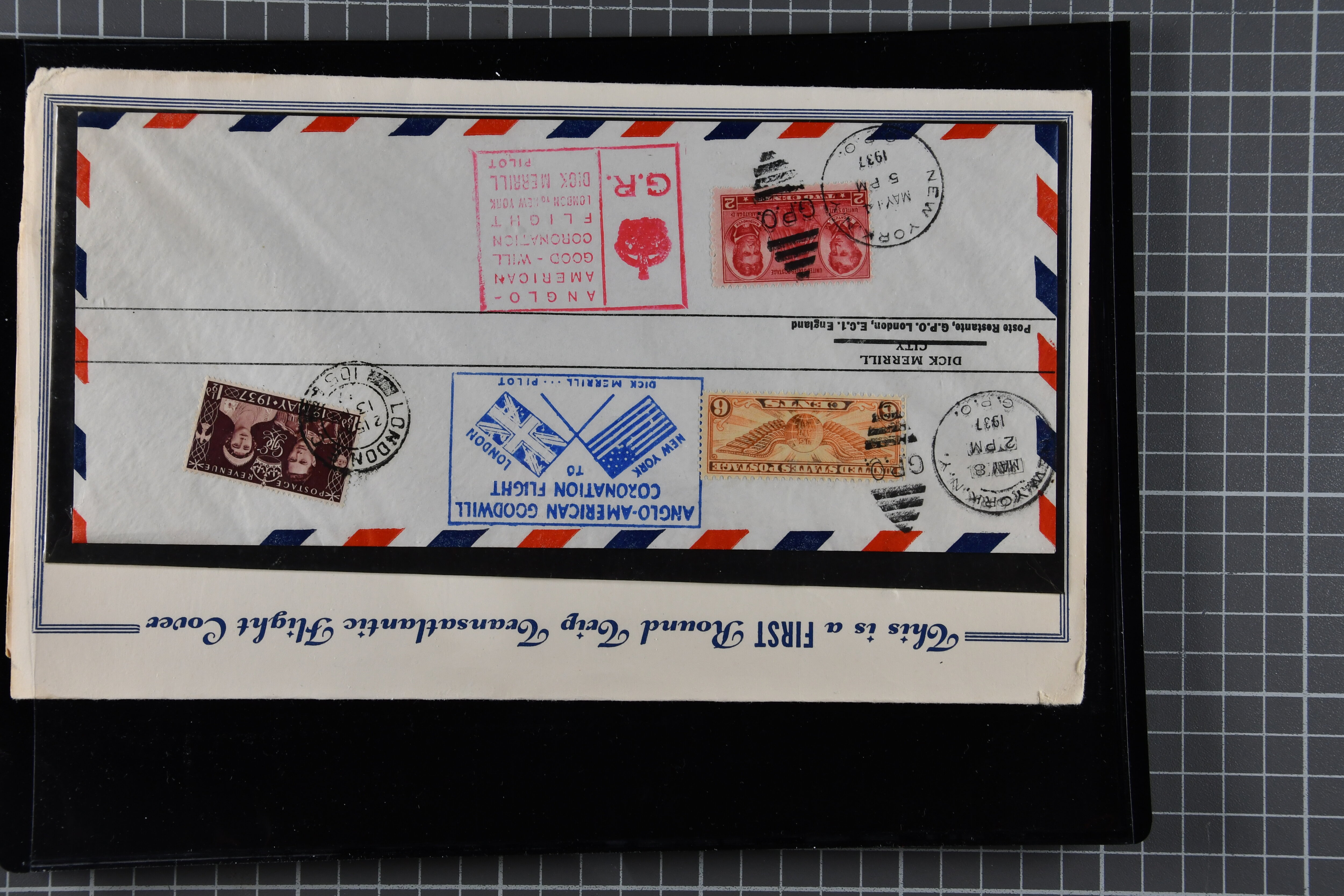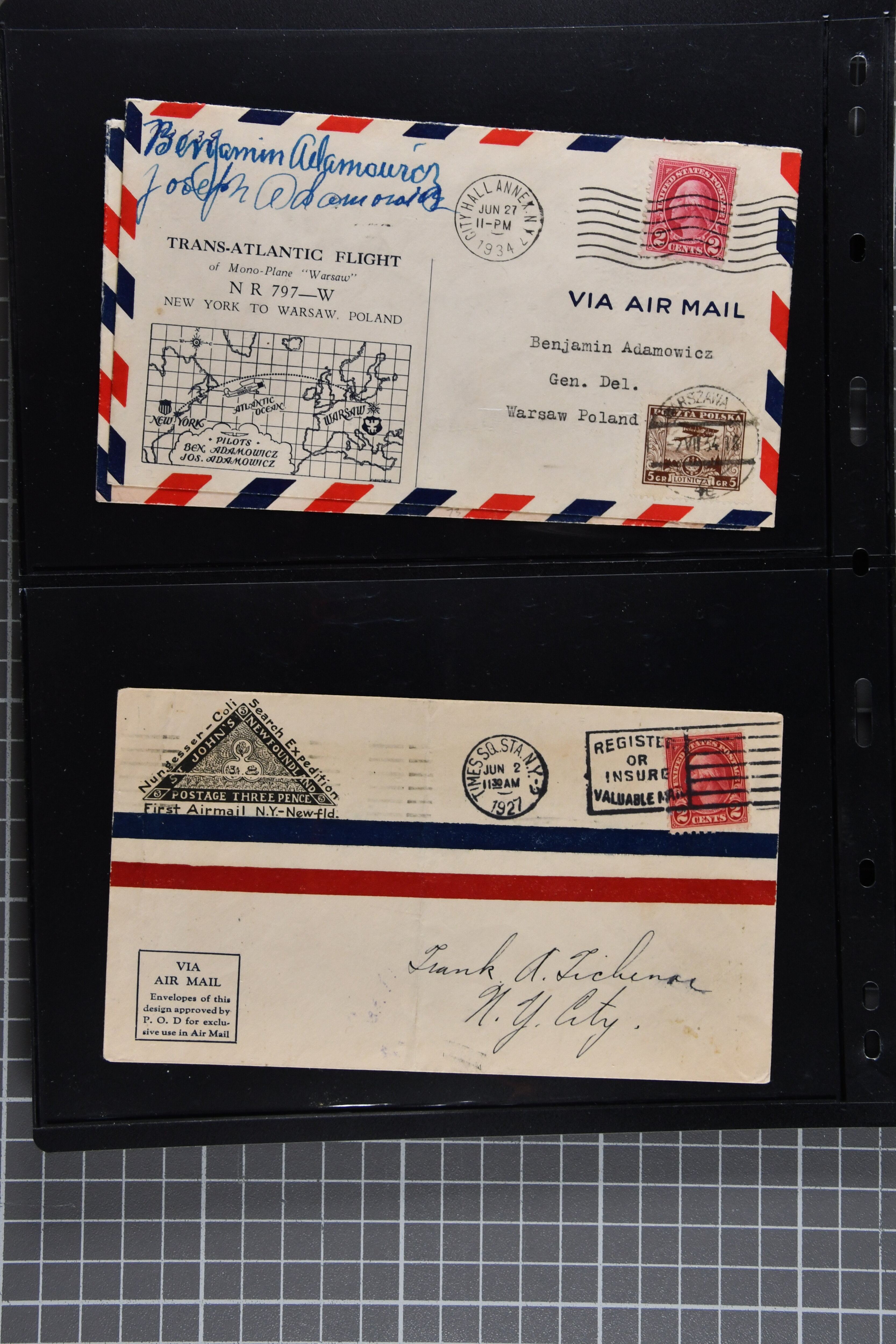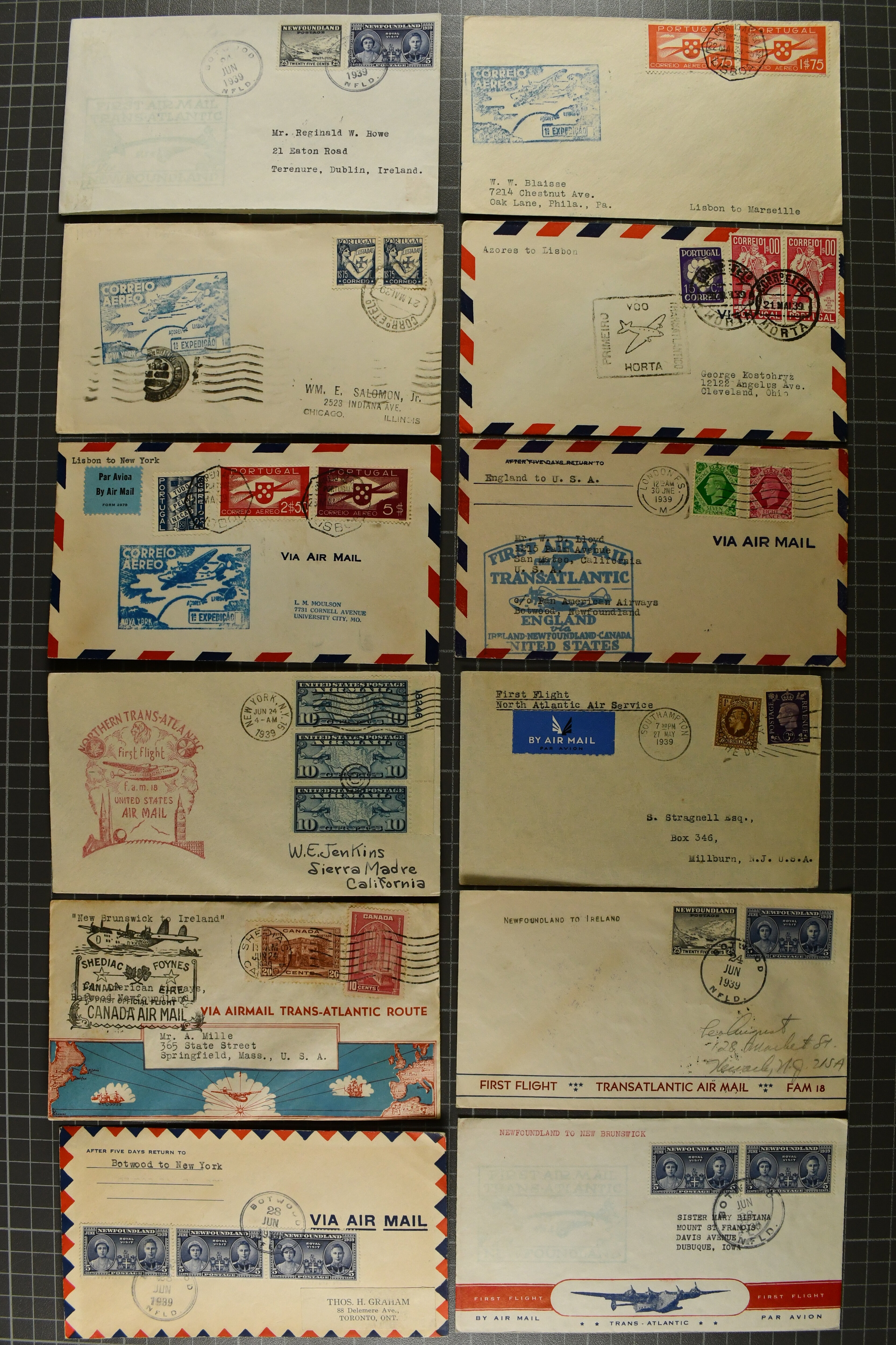 1775 cover imageTransatlantic Mail 1925/39: Group of 22 covers/cards, incl. 1925 'Amundsen - Ellsworth' North Pole Mail, 1927 Nungesser & Coli Search Expedition, 1931 Hilling and Hoiriis Transatlantic Flight, 1934 Benjamin and Joseph Adamowicz attempted non-stop flight New York to Warsaw (2), 1937 “Anglo-American Good Will Coronation Flight” (2), 1939 PAA flight Bogota - New York - Europe (Mu90), IA first flight Paramaribo - New York - Southampton to Holland (Mu51) as well as eight special printed 'Amon Carter' covers of 1939 'Yankee Clipper' flight New York - Azores - Lisbon - Marseilles FAM-18 inauguration flight. Some with edge wear, but generally fine. (Image 1) (Image 2) (Image 3) (Image 4) (Image 5) (Image 6) (Image 7) (Image 8) (Image 9) (Image 10) (Image 11) (Image 12)