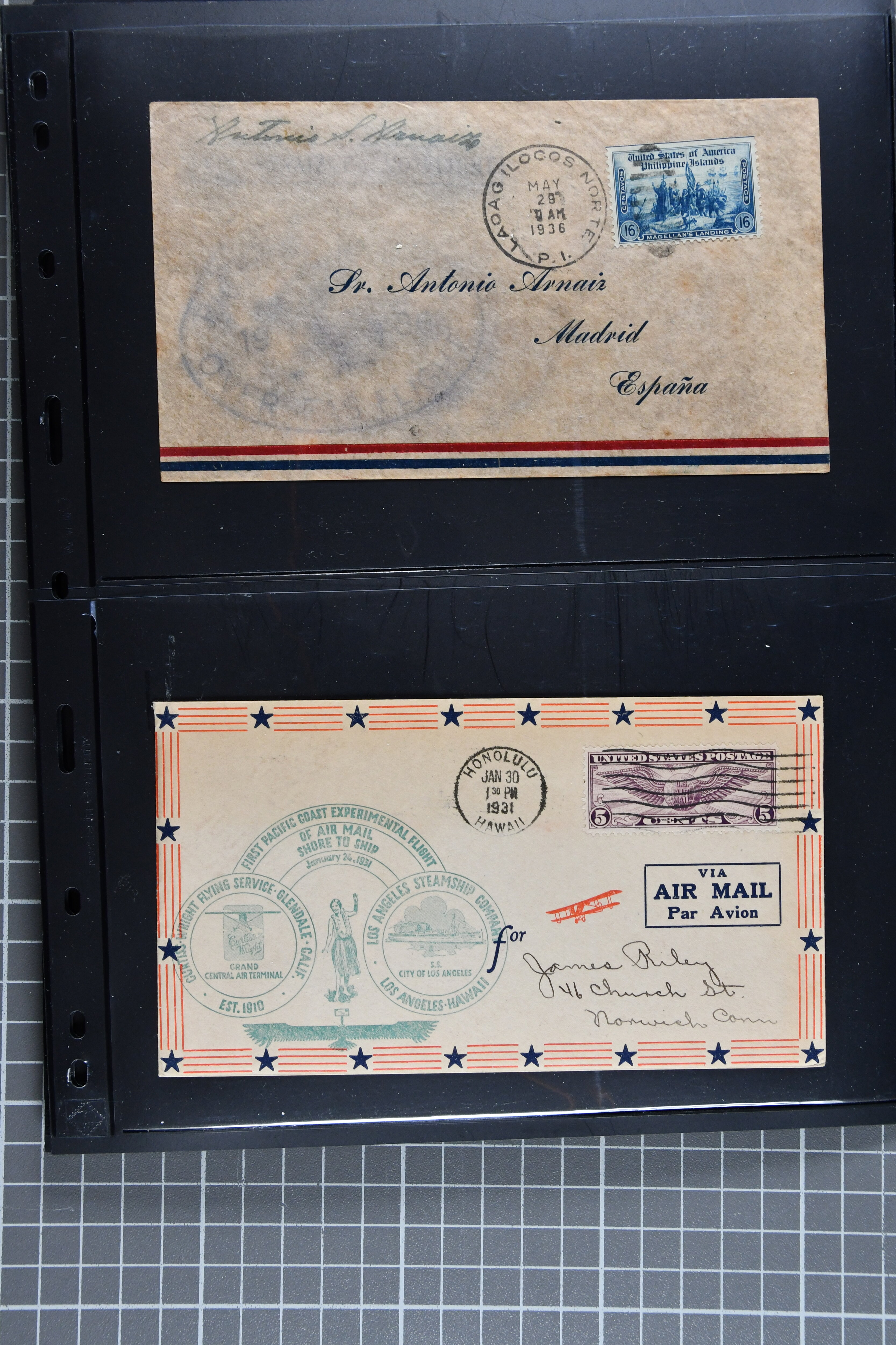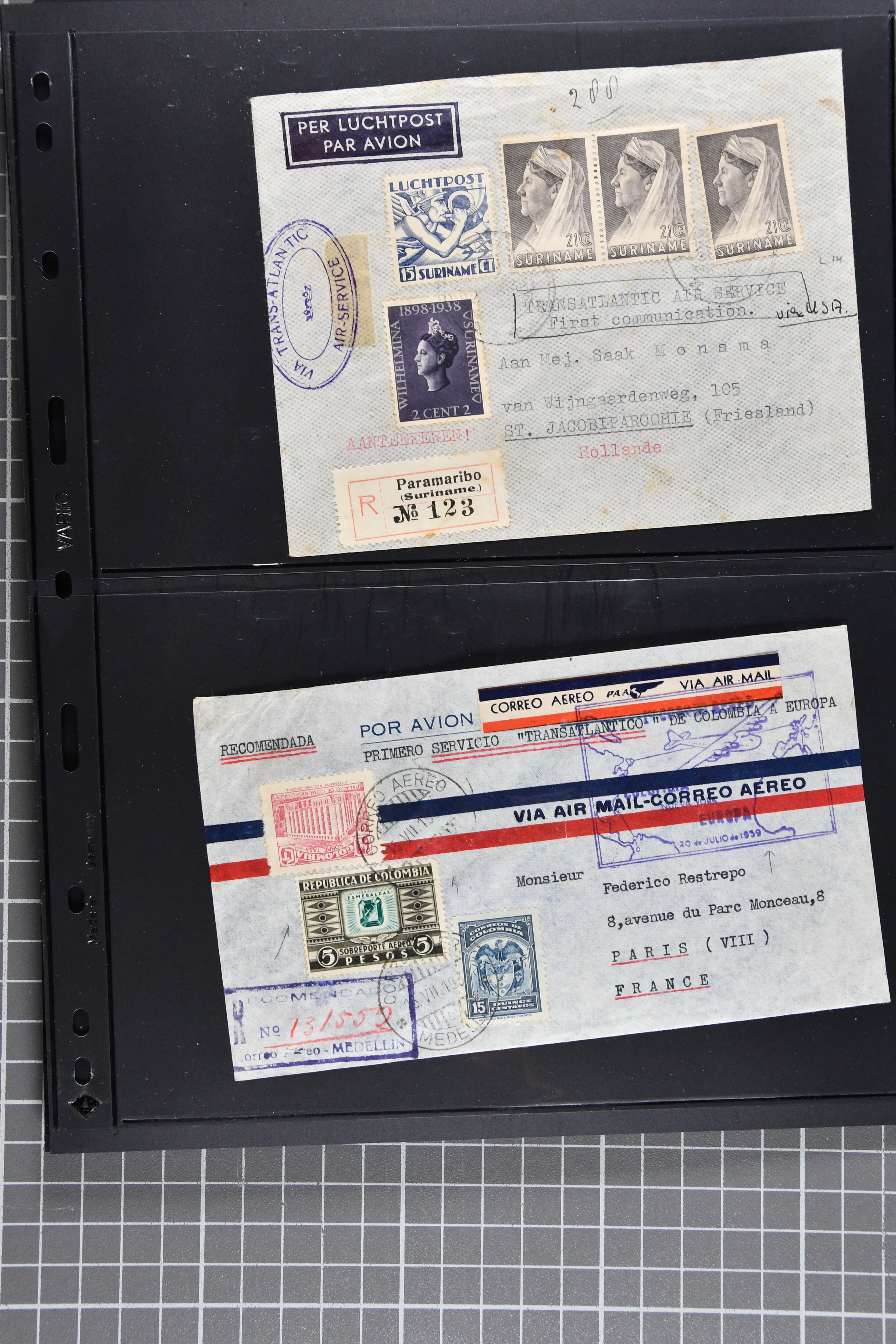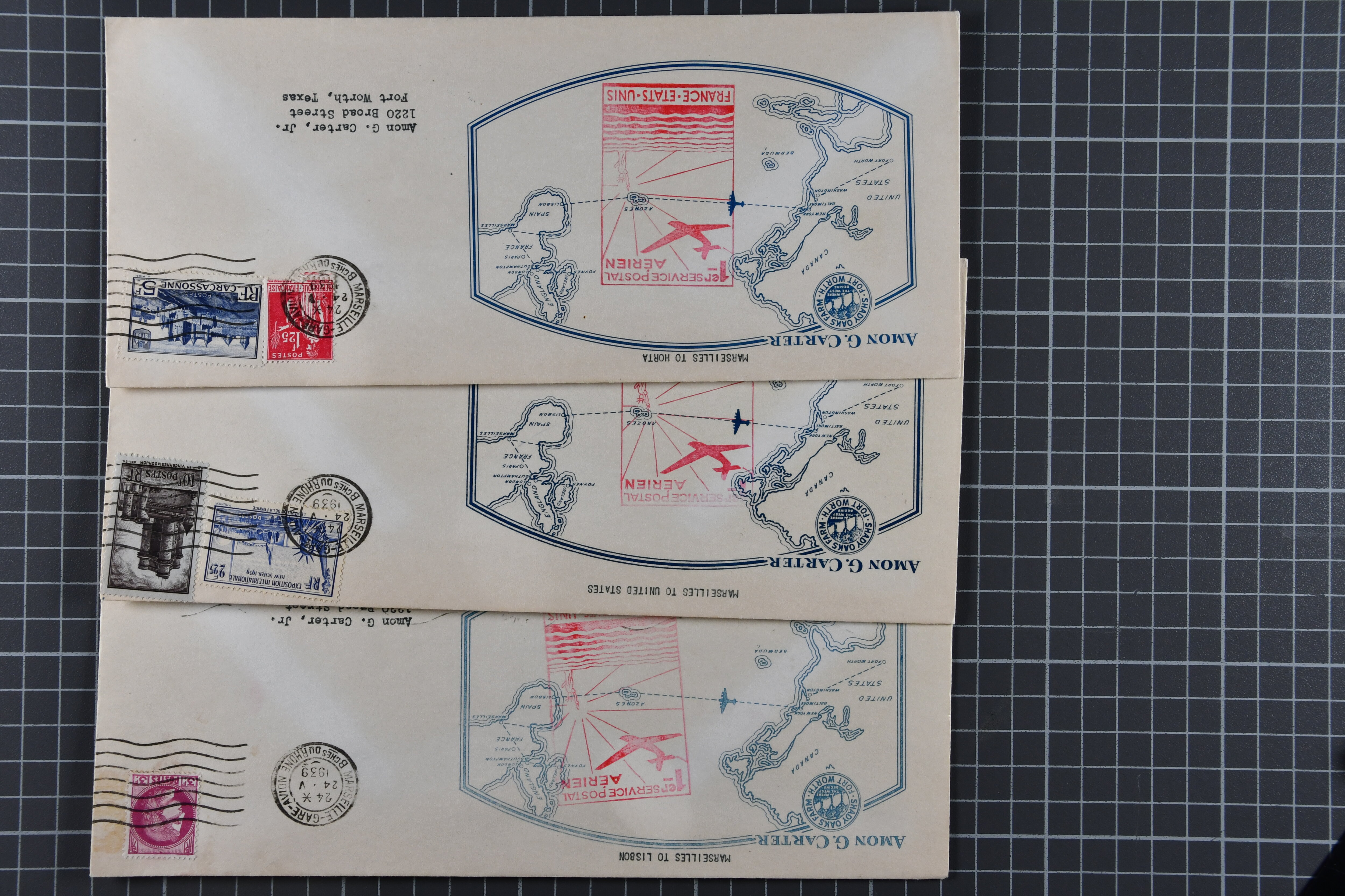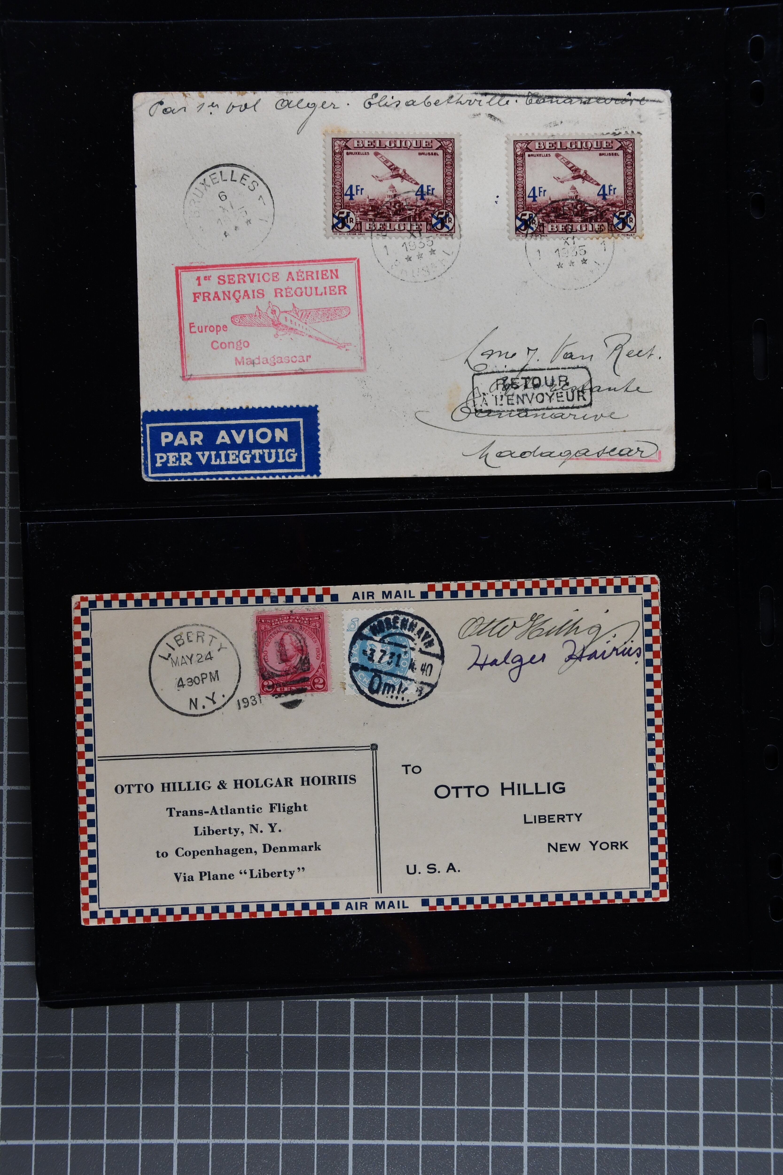 1775 cover imageTransatlantic Mail 1925/39: Group of 22 covers/cards, incl. 1925 'Amundsen - Ellsworth' North Pole Mail, 1927 Nungesser & Coli Search Expedition, 1931 Hilling and Hoiriis Transatlantic Flight, 1934 Benjamin and Joseph Adamowicz attempted non-stop flight New York to Warsaw (2), 1937 “Anglo-American Good Will Coronation Flight” (2), 1939 PAA flight Bogota - New York - Europe (Mu90), IA first flight Paramaribo - New York - Southampton to Holland (Mu51) as well as eight special printed 'Amon Carter' covers of 1939 'Yankee Clipper' flight New York - Azores - Lisbon - Marseilles FAM-18 inauguration flight. Some with edge wear, but generally fine. (Image 1) (Image 2) (Image 3) (Image 4) (Image 5) (Image 6) (Image 7) (Image 8) (Image 9) (Image 10) (Image 11) (Image 12)