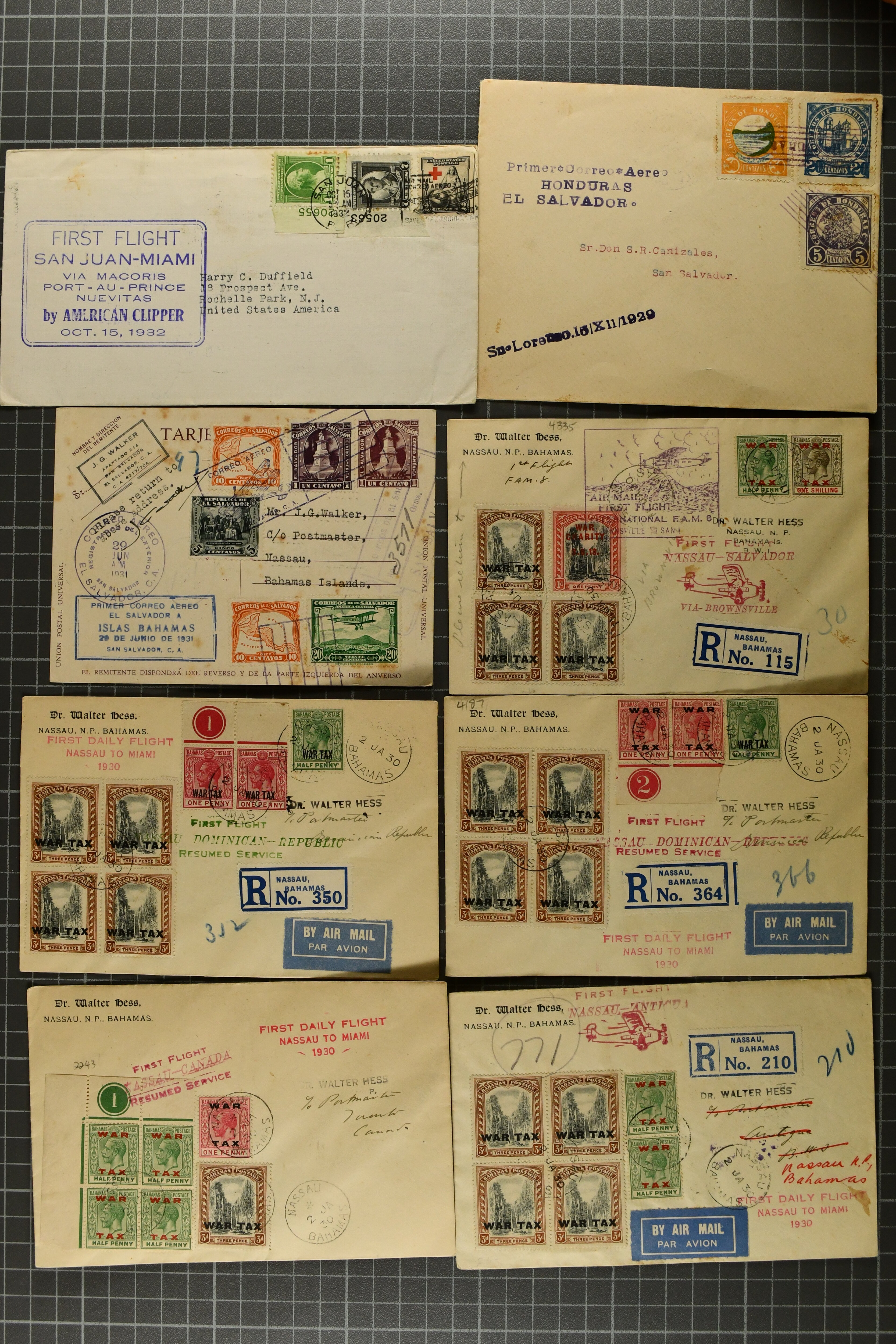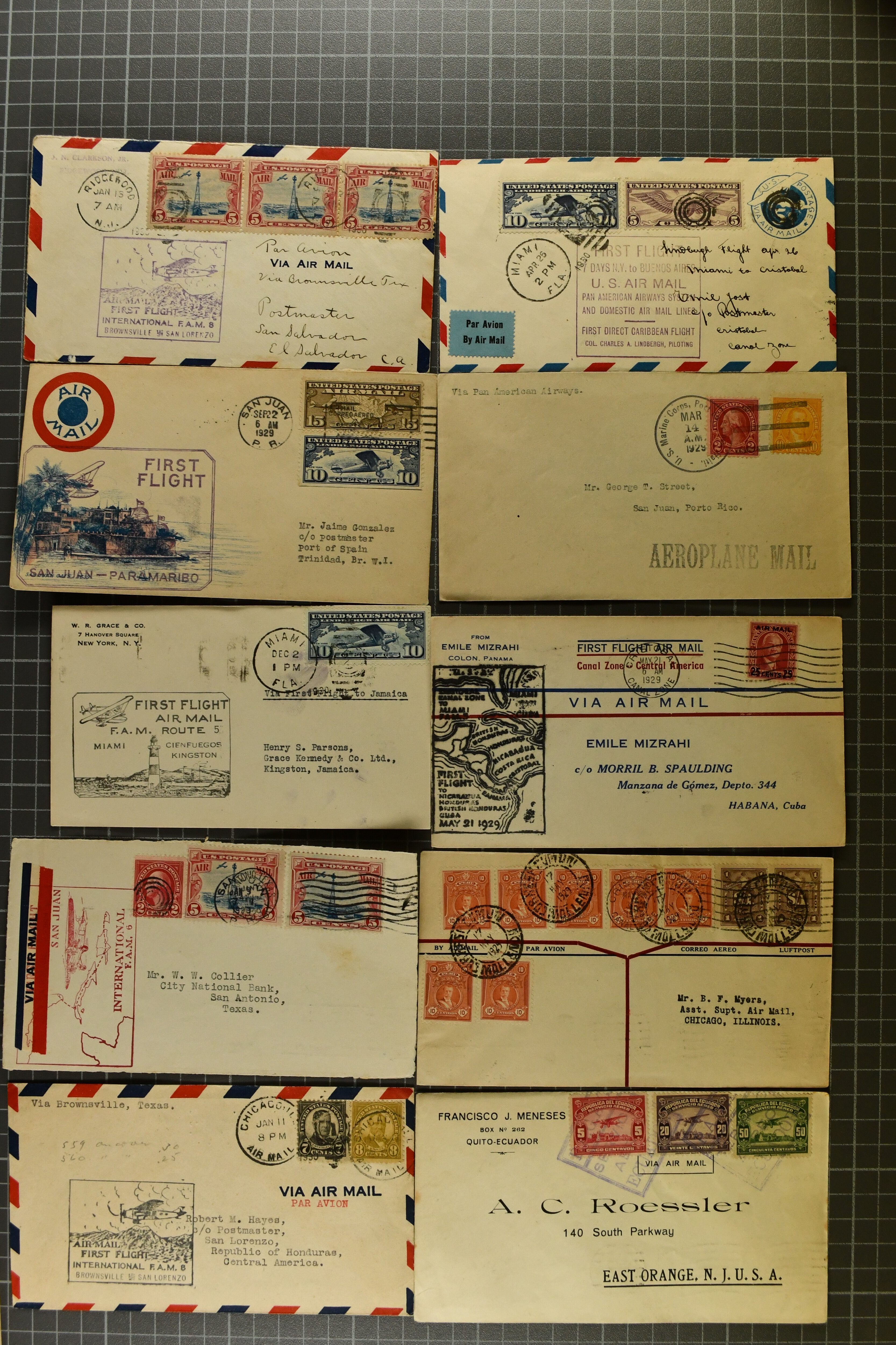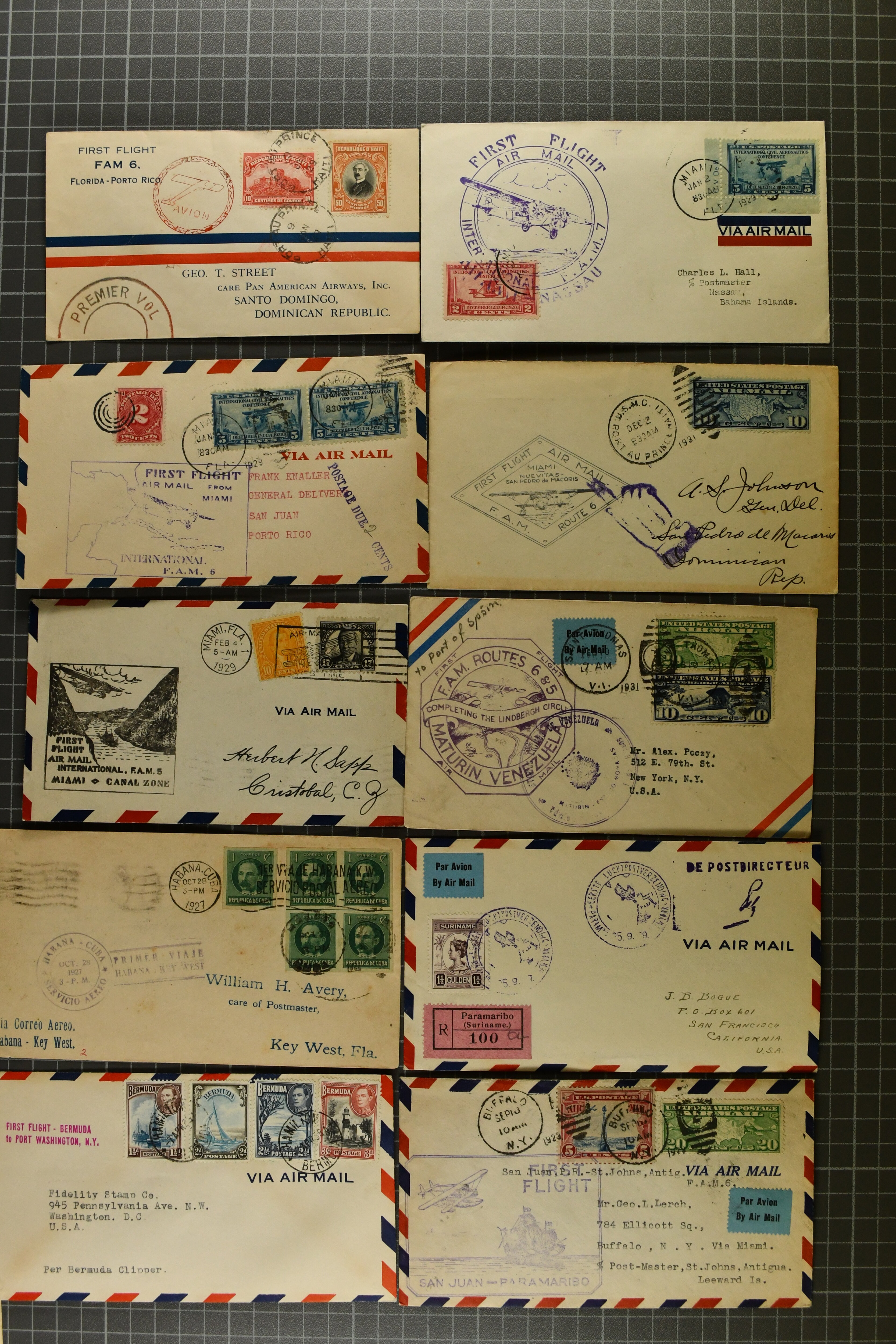 1776 cover imageCarribbean and Bermuda Airmail 1927/38: Lot 65 First Flight covers used under the FAM 4-9 system, trying to represent the milestones in the process of creating the Lindbergh Circle, further 1935 (May 18) two covers of 'Havanna-Miami Air-Train' service with one franked with imperf. Cuban 10c. stamp ovpted by 'Primer Tren Aereo Internacional 1935 O'Meara, du Pont' in black. (Image 1) (Image 2) (Image 3) (Image 4) (Image 5) (Image 6)