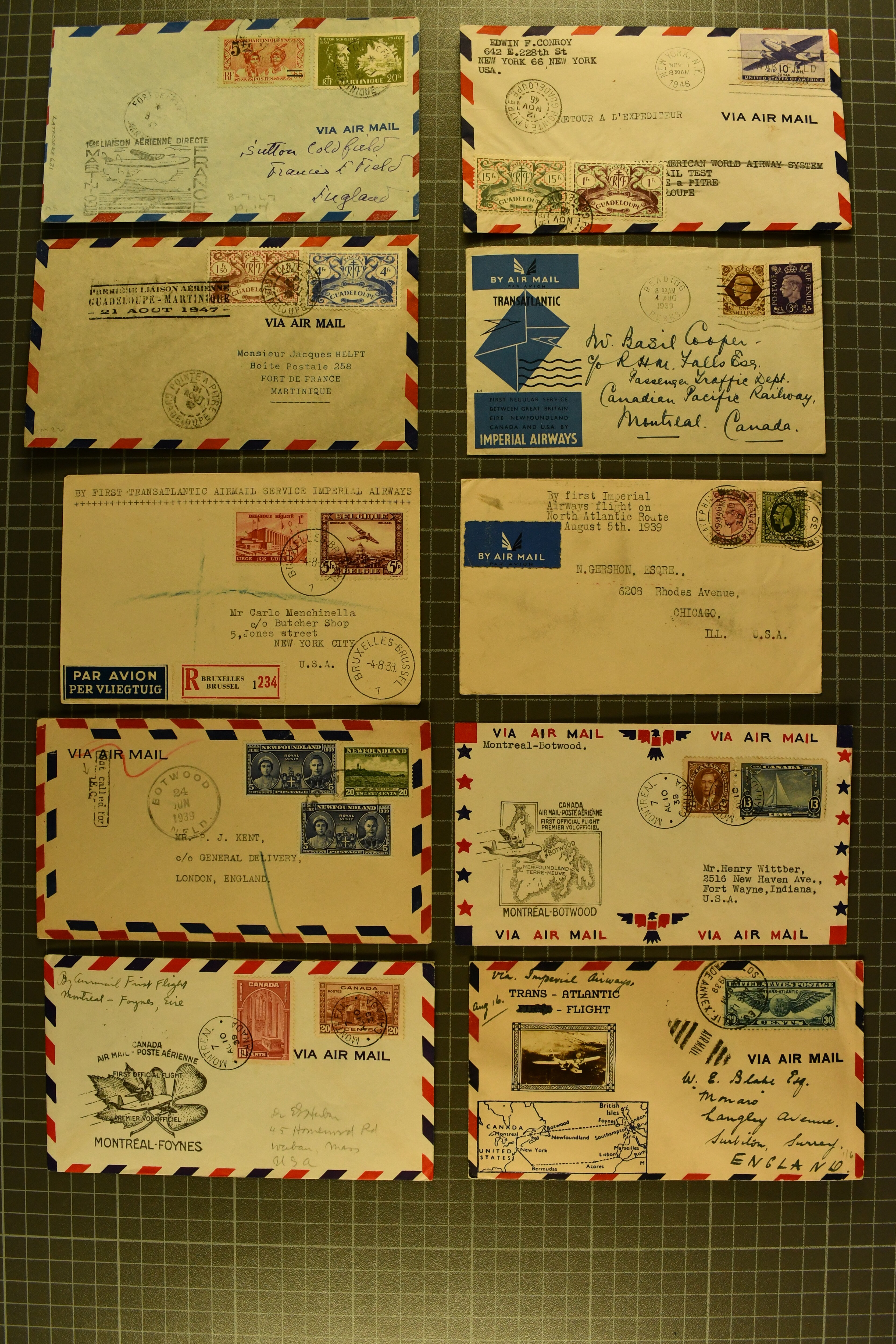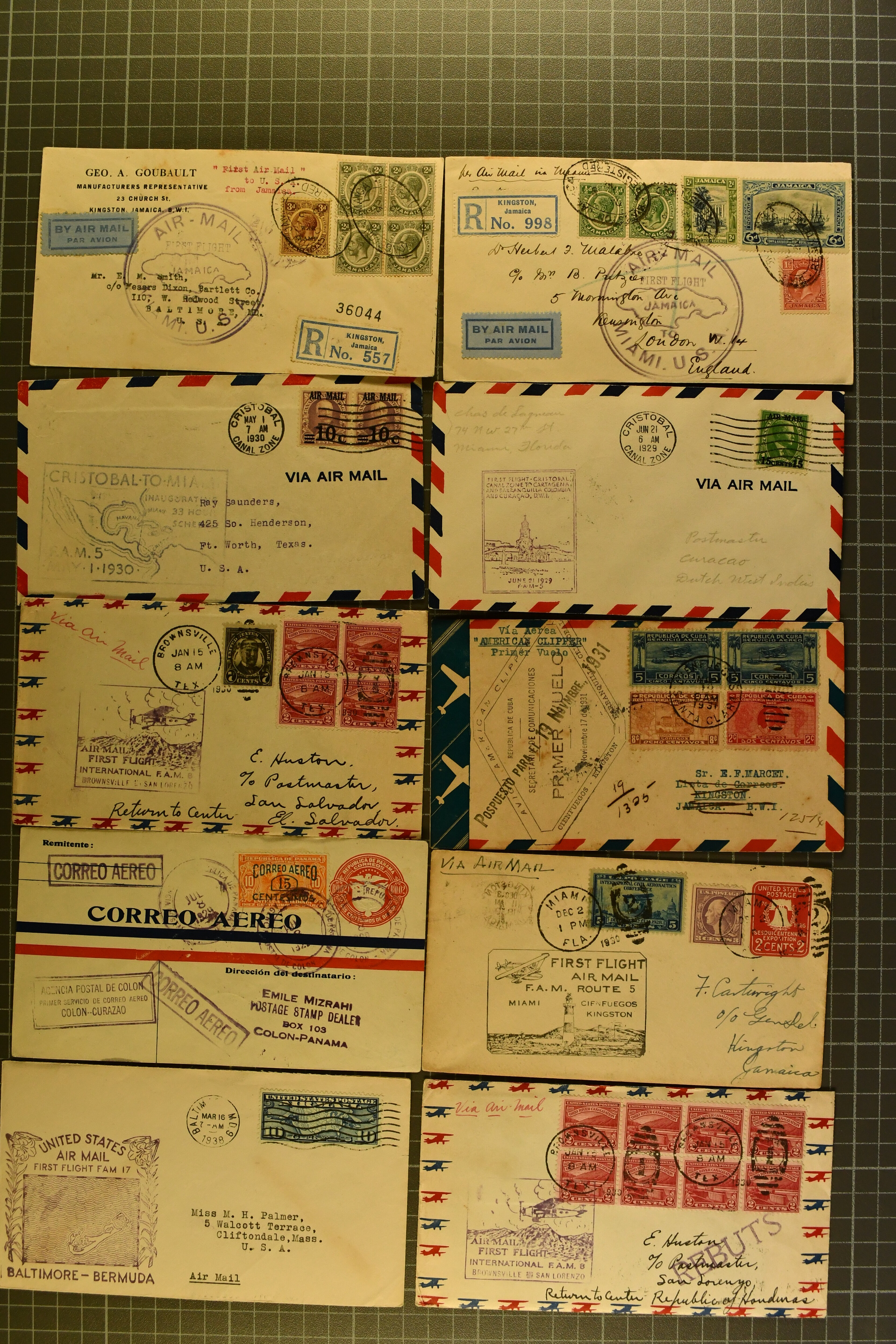 1774 cover imageTransatlantic Mail 1938/47: Lot 60 airmail covers, including 23 different PAA First Flight covers used under FAM-18 scheme, further seven different Imperial Airways First Flight covers, some Clipper mail from Colombia, Guatemala, Haiti, Mexico as well as some 1947 usages from Martinique. A fine assembly. (Image 1) (Image 2) (Image 3) (Image 4) (Image 5) (Image 6)