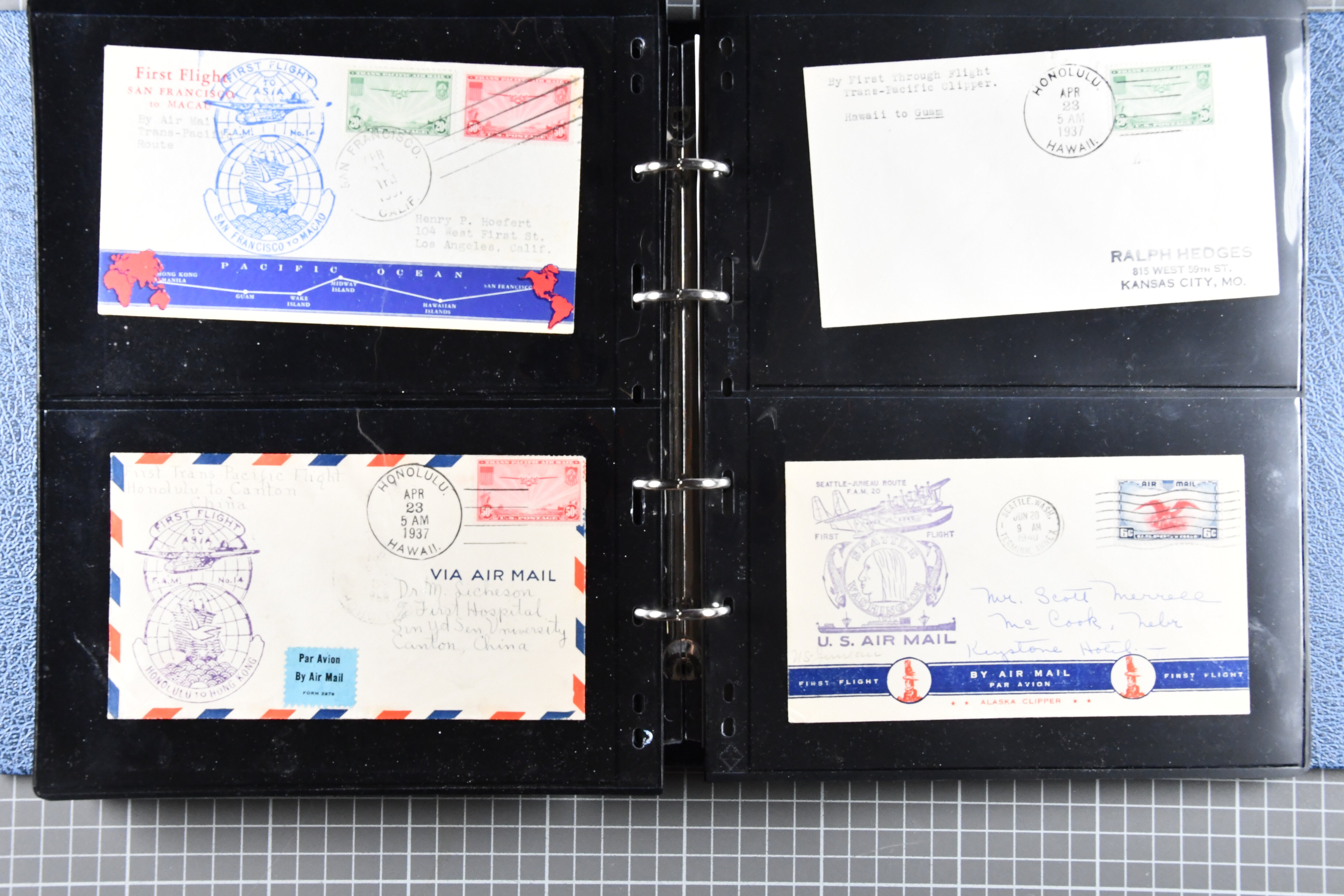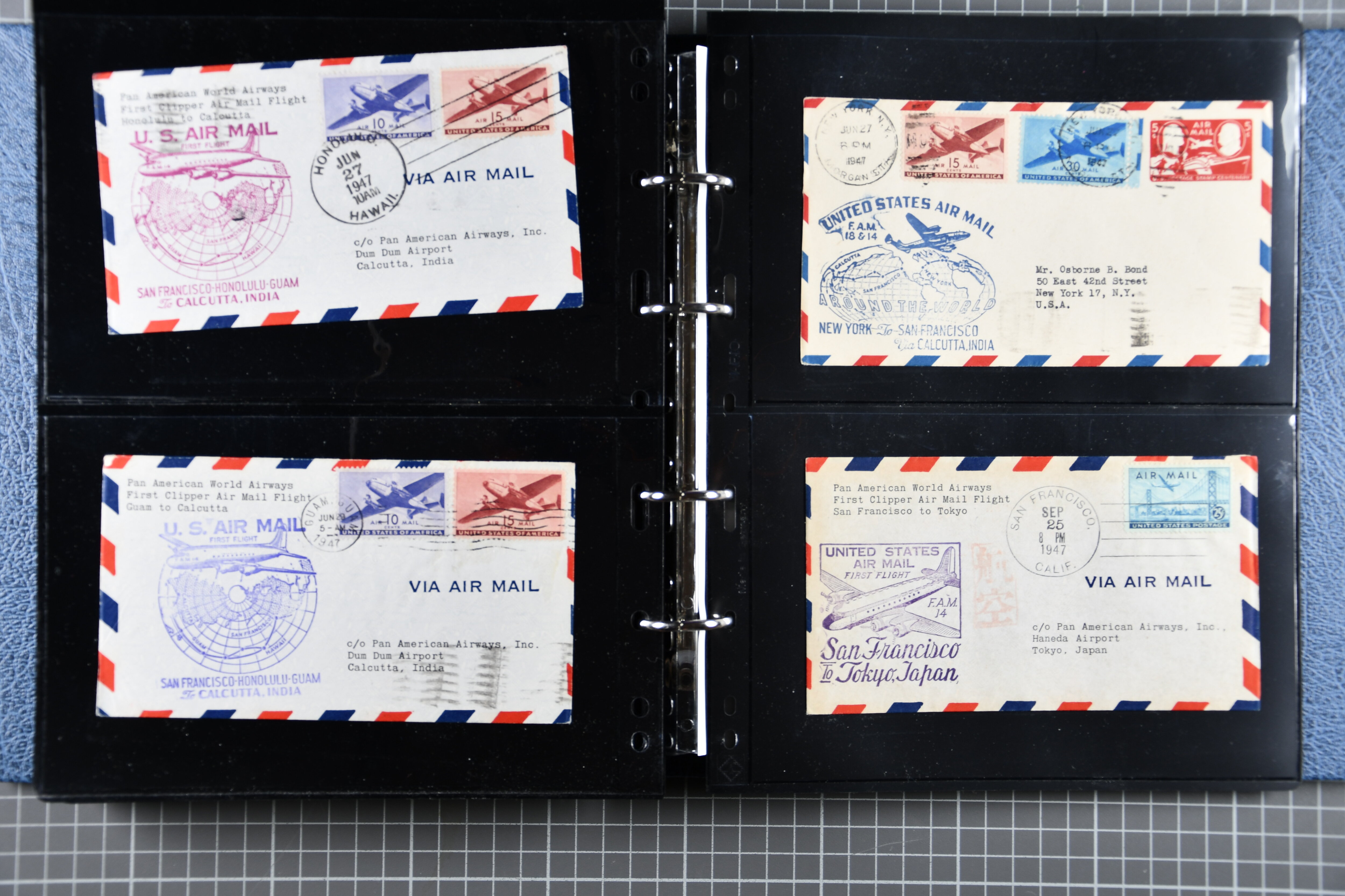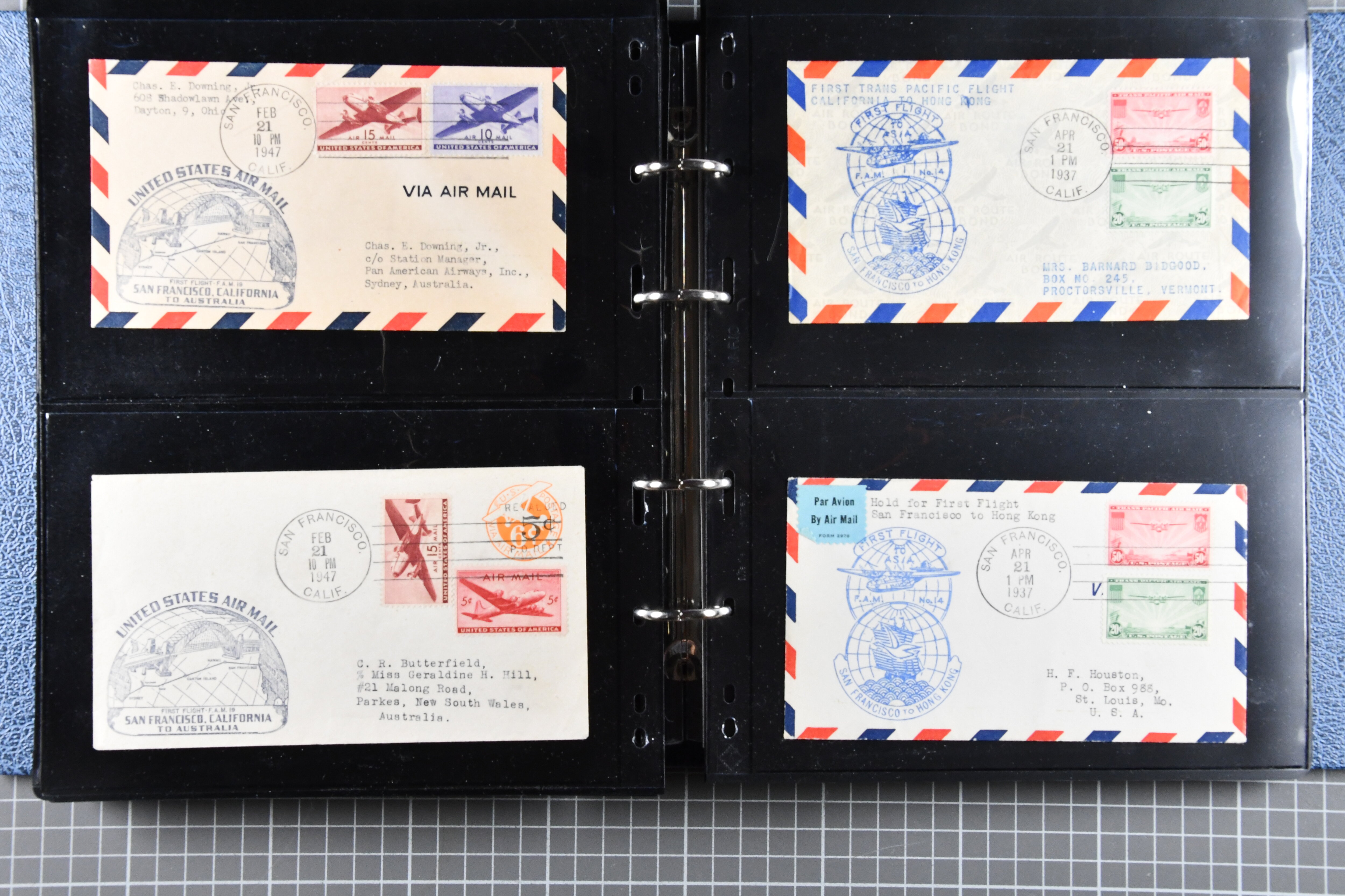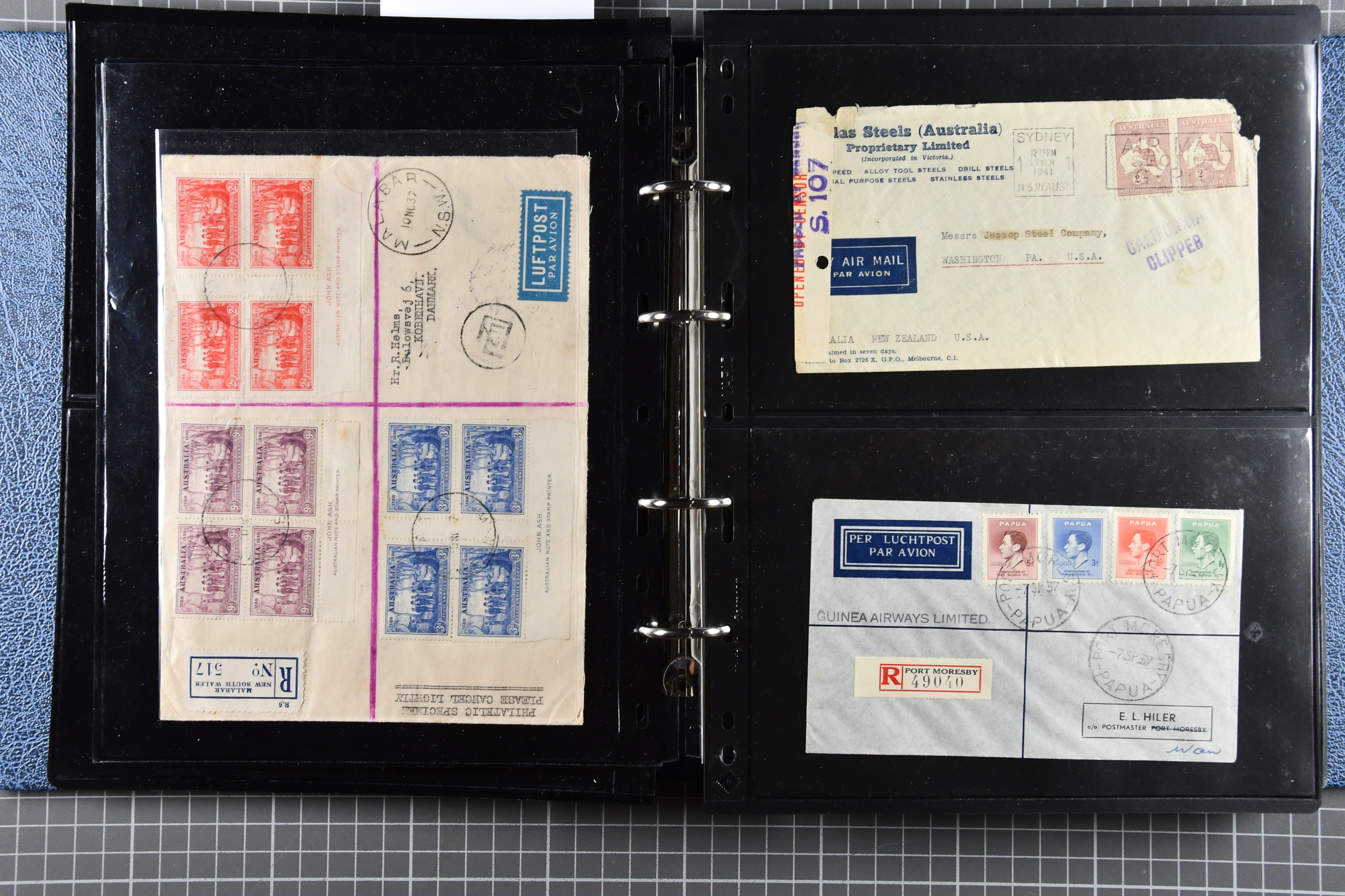 1773 cover imageTrans-Pacific Airmail 1938/44: Lot 55 airmail covers, incl. six commercial airmail covers carried by Clipper through the FAM 14 system, among them a rare commercial air mail usage by Naval Air Transport Service NATS, which was only used for military mail, further 1933/44 First Flight Covers (16) from Australia, Papua and New Zealand as well as 33 Trans-Pacific First Flight covers, all flown under FAM 14-19-20-1 scheme. (Image 1) (Image 2) (Image 3) (Image 4) (Image 5) (Image 6) (Image 7) (Image 8) (Image 9) (Image 10) (Image 11) (Image 12) (Image 13) (Image 14) (Image 15)