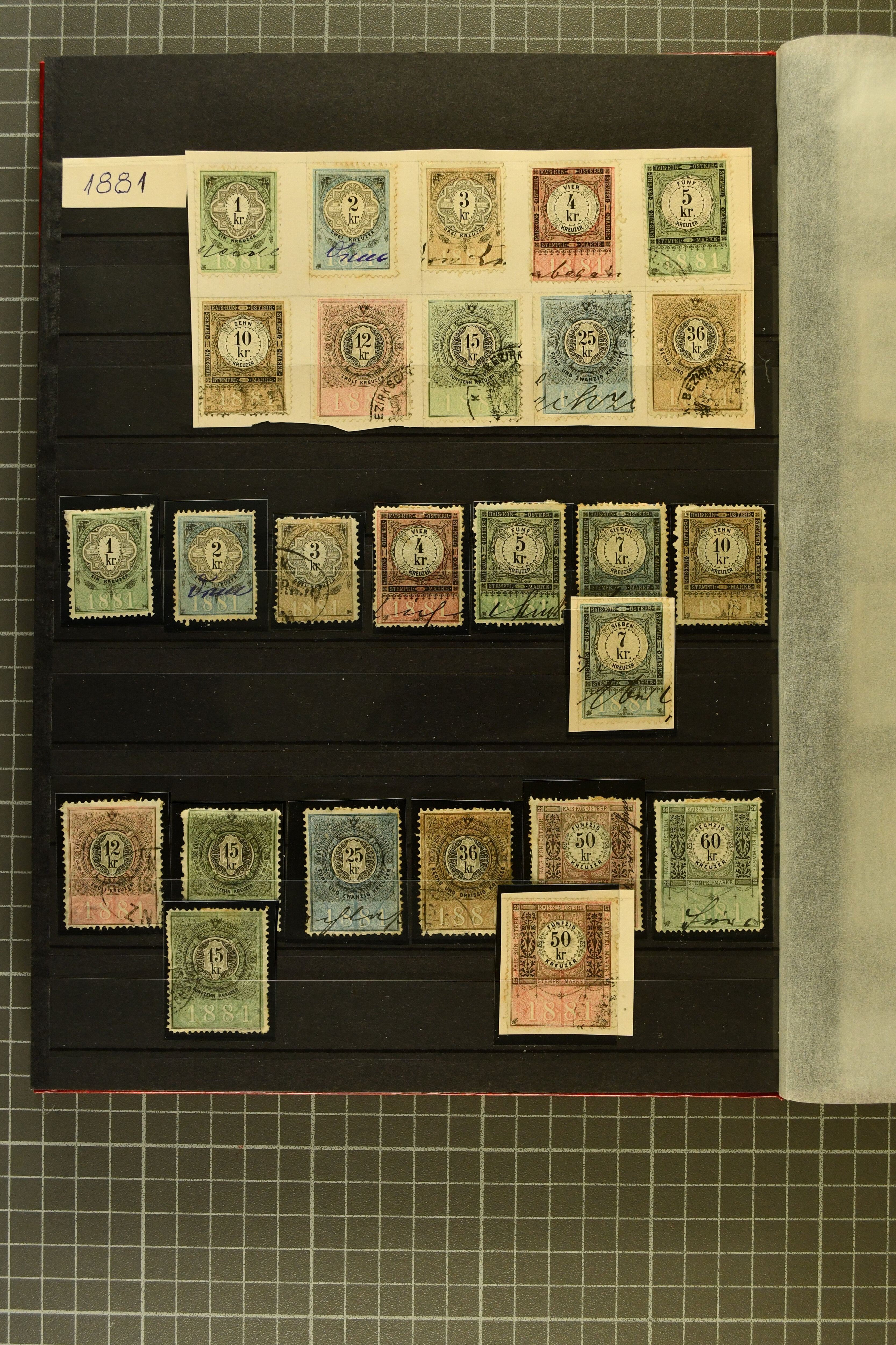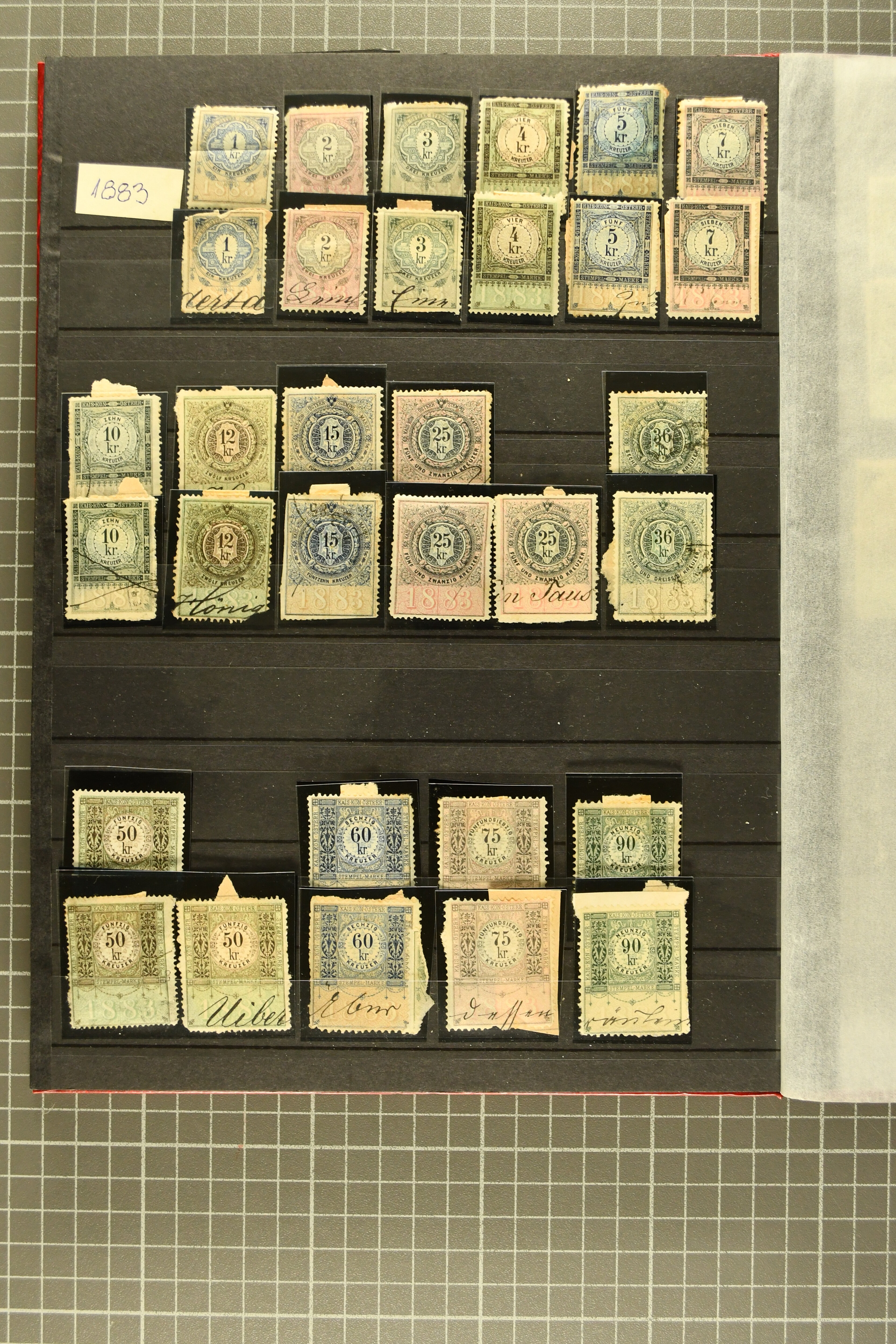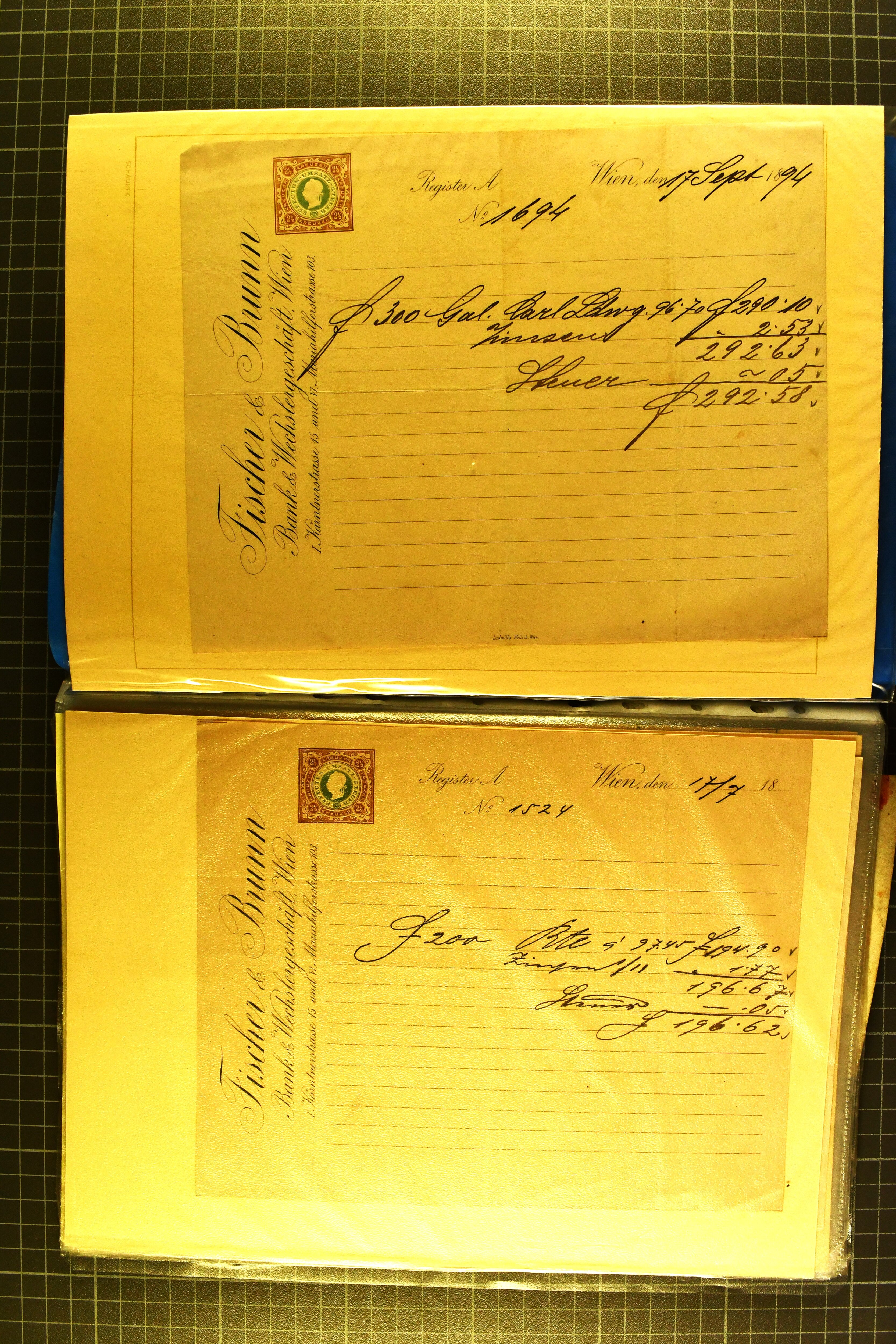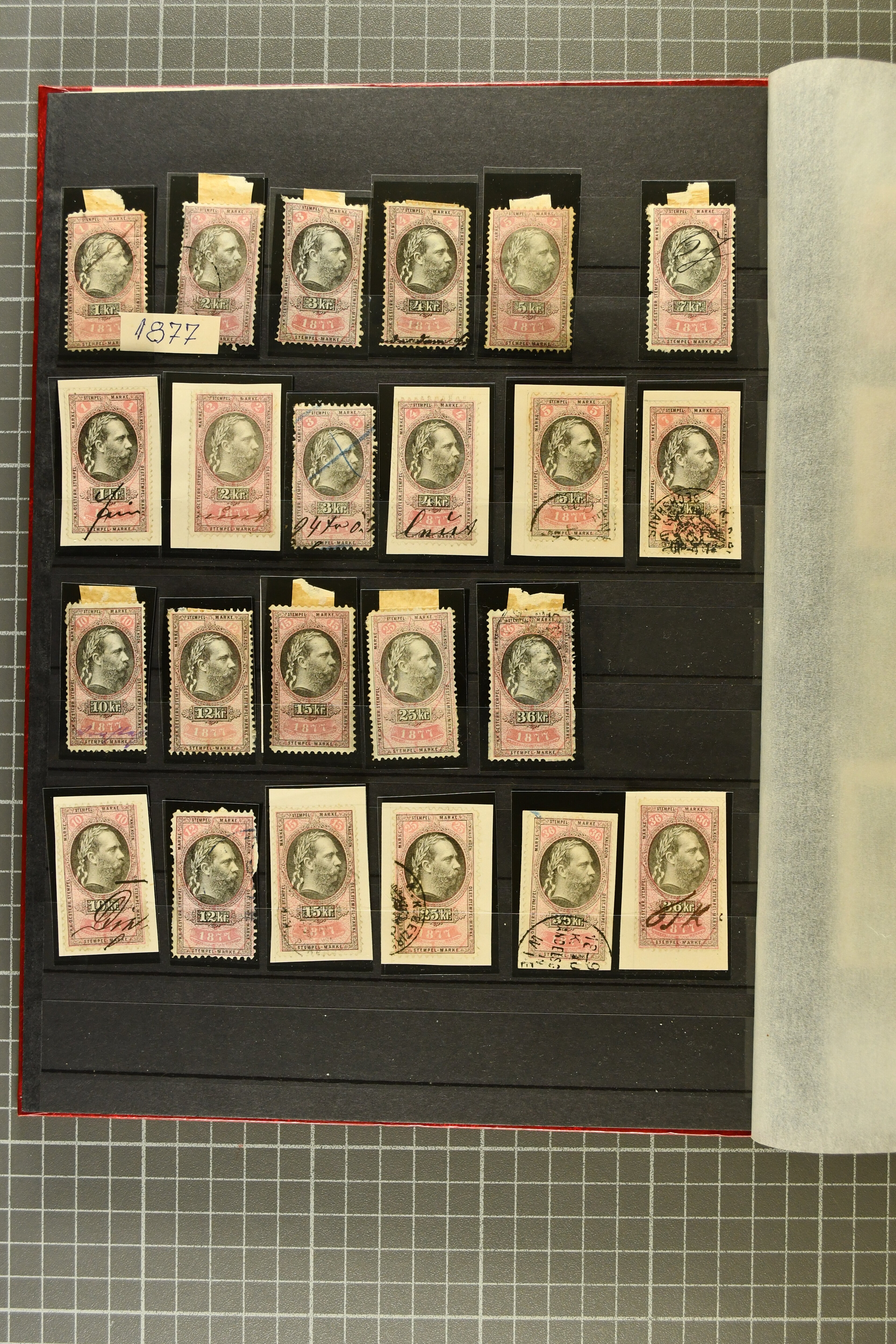 Gulden enthält. Zudem eine Sammlung von Ausschnitten, jeweils mit der Stempelmarke auf Blättern, einige vollständige Originalbelege sowie ein grossformatiges Einsteckbuch mit einer weiteren Sammlung verschiedenster Stempelmarken, oft mit hohen