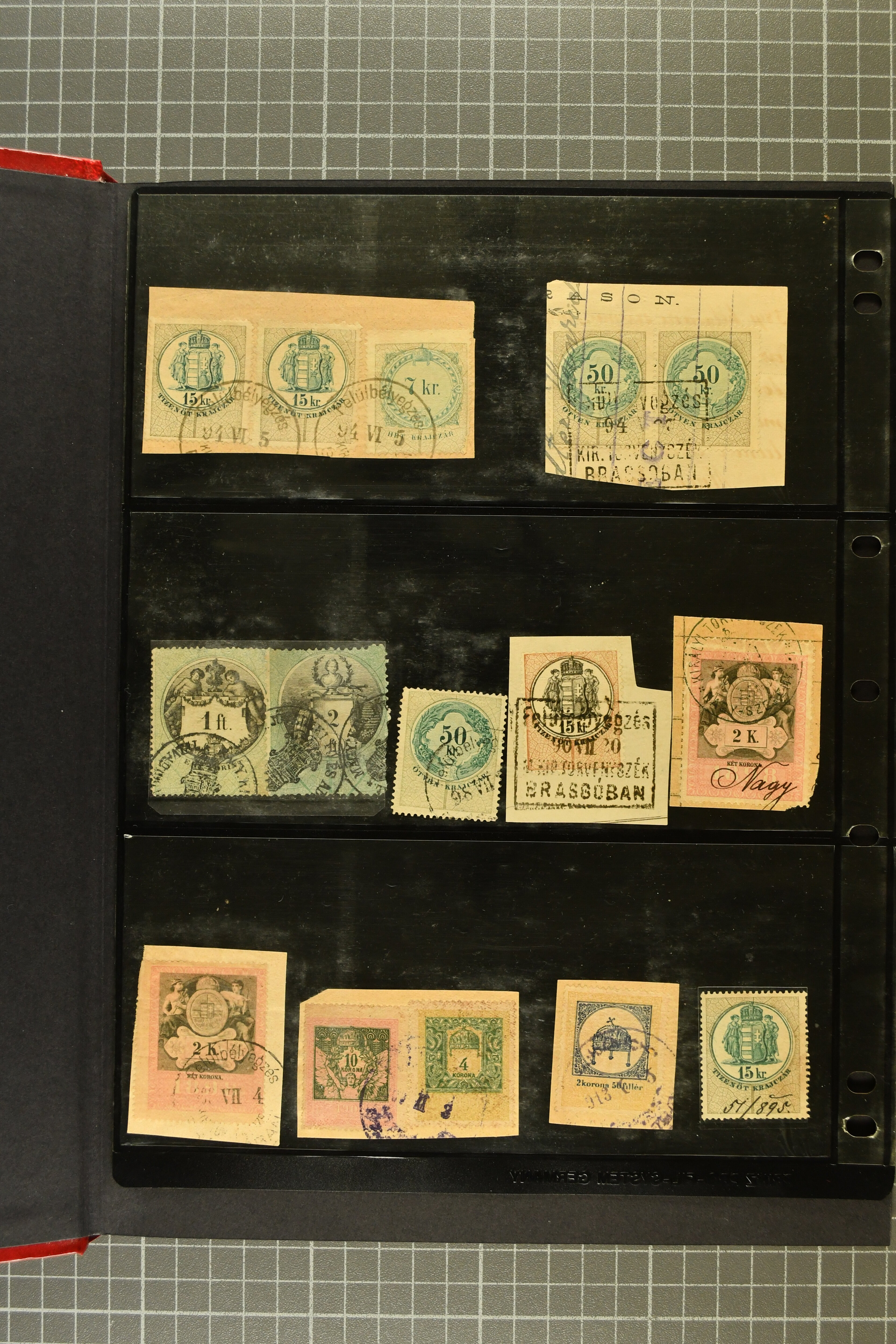 1838/90ca.: Zusammenstellung von Stempelmarken von Österreich und Ungarn, darunter teilweise sogenannte Signellen, mit unter anderem einem Blatt, das die Abdrucke einer kompletten Serie von 3 Kreuzer bis 100