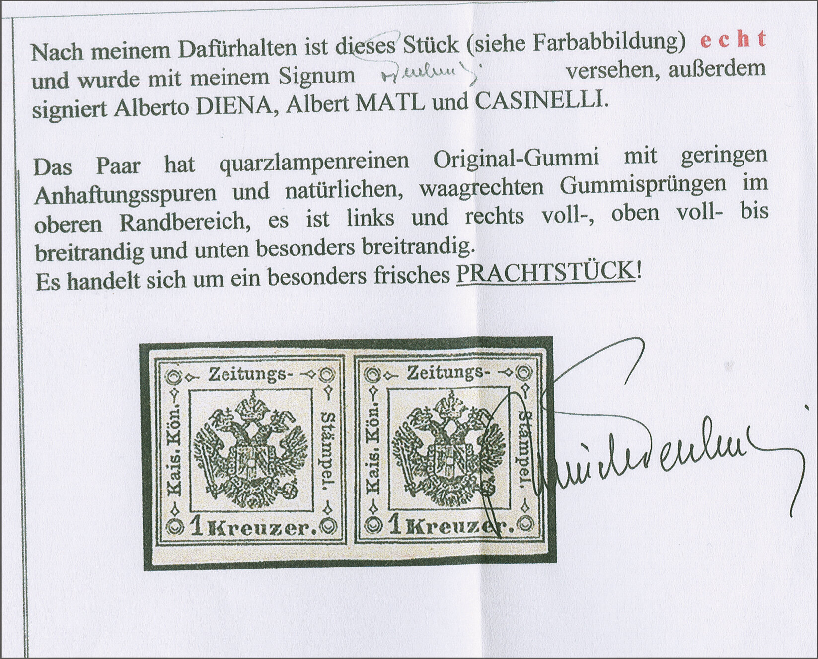 A. Diena, Matl & Casinelli; Attest Ferchenbauer (2023) Ferchenbauer = € 6'500 für ein ungest. Paar (Image 1)